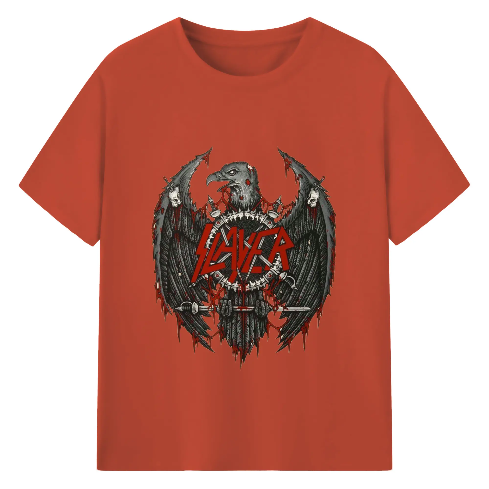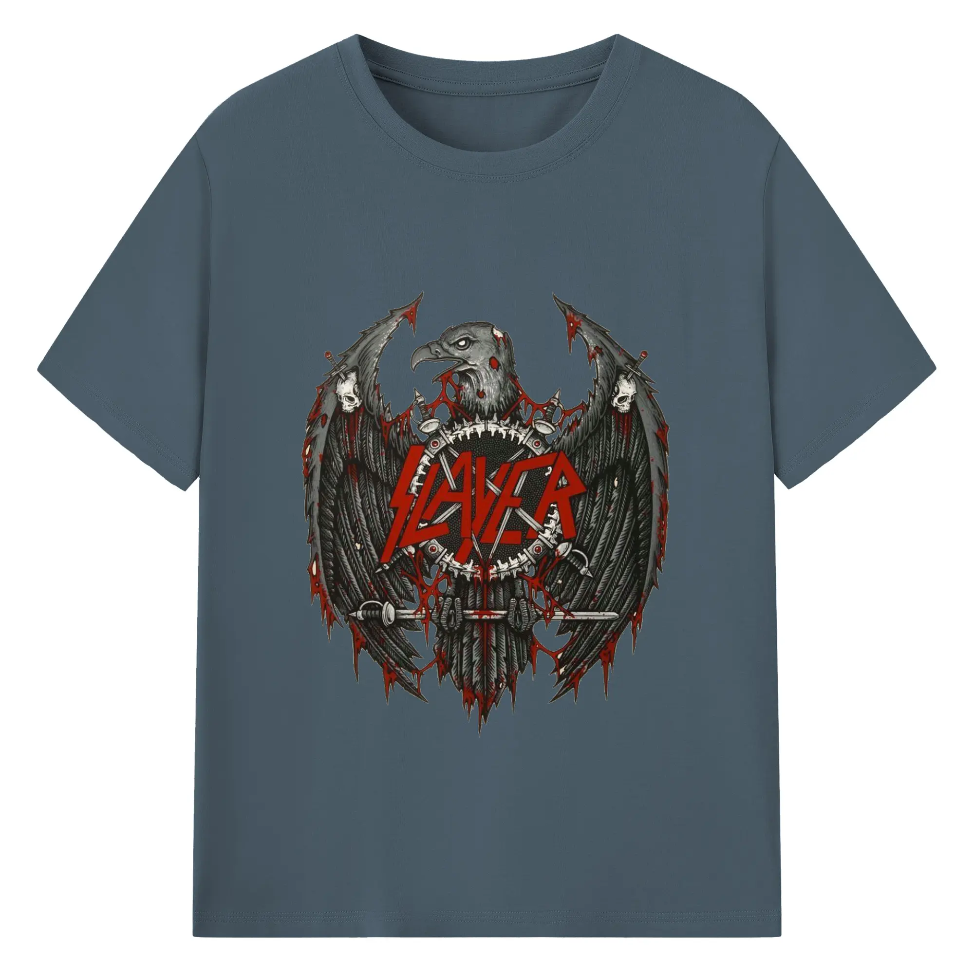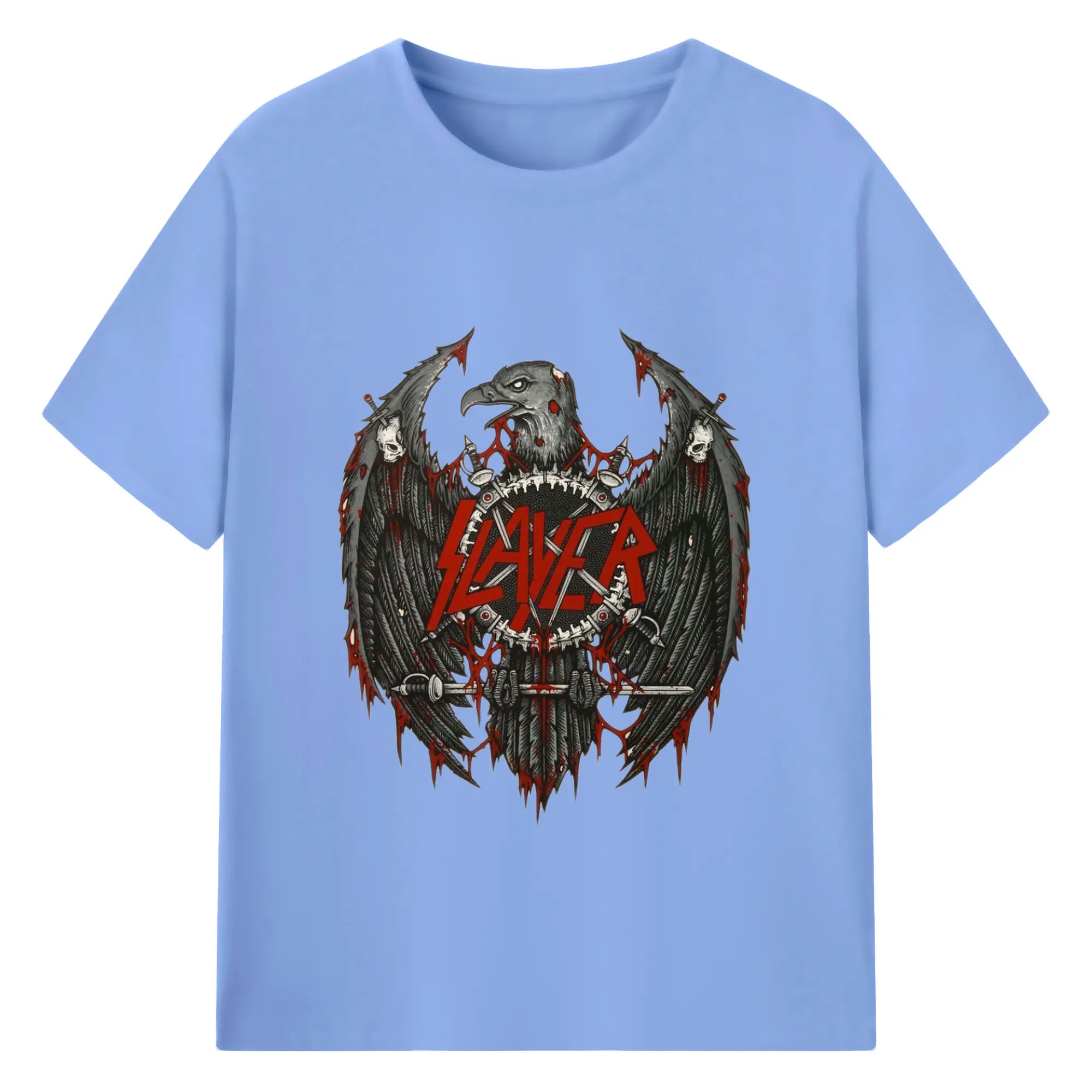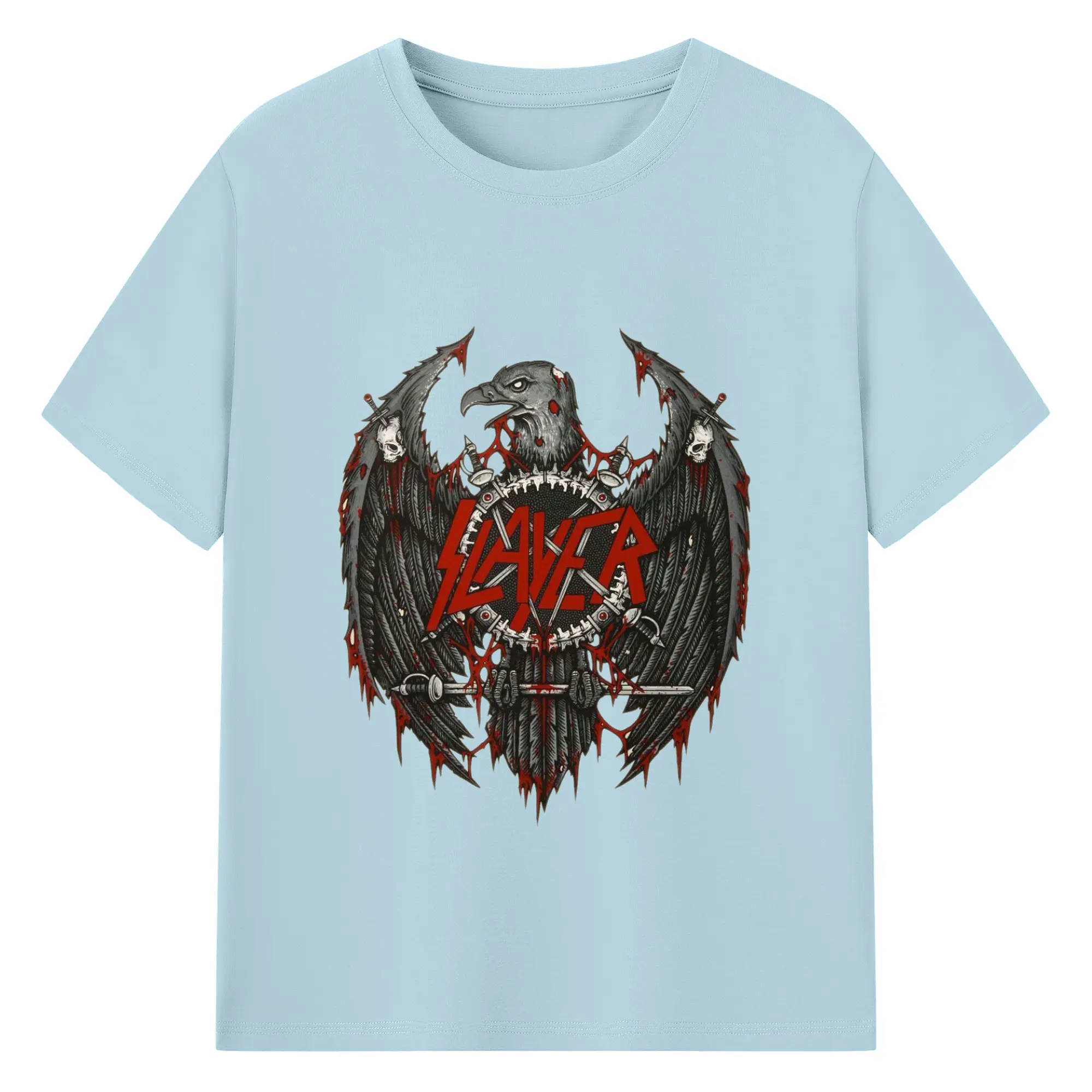 Slayer Thrash Metal Dark Eagle DIY Shirt - 180g Cotton T-Shirt With Front Heat Transfer Print – Soft, Lightweight, Fitted Design – Comfortable Casual Wear For Sports & Everyday Use