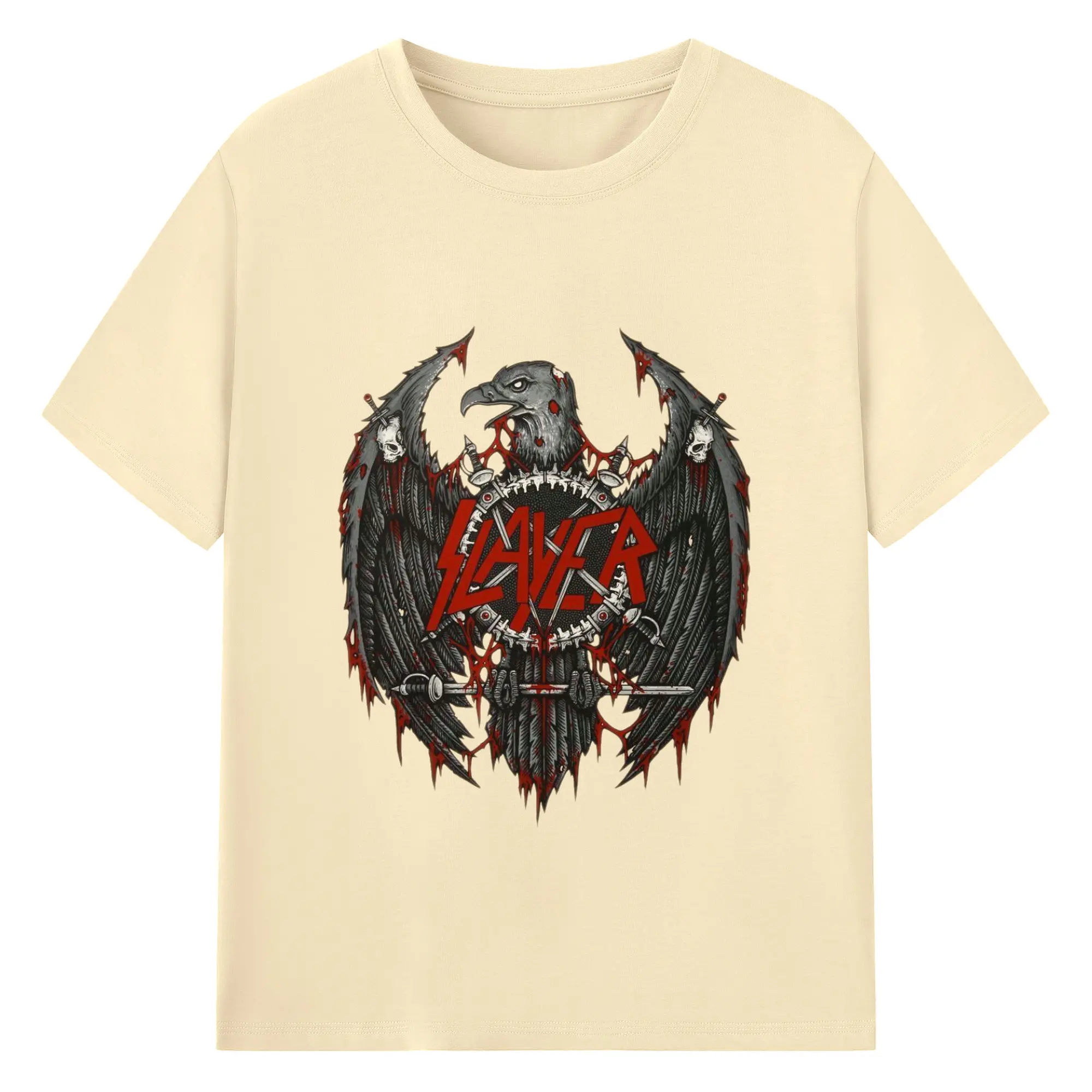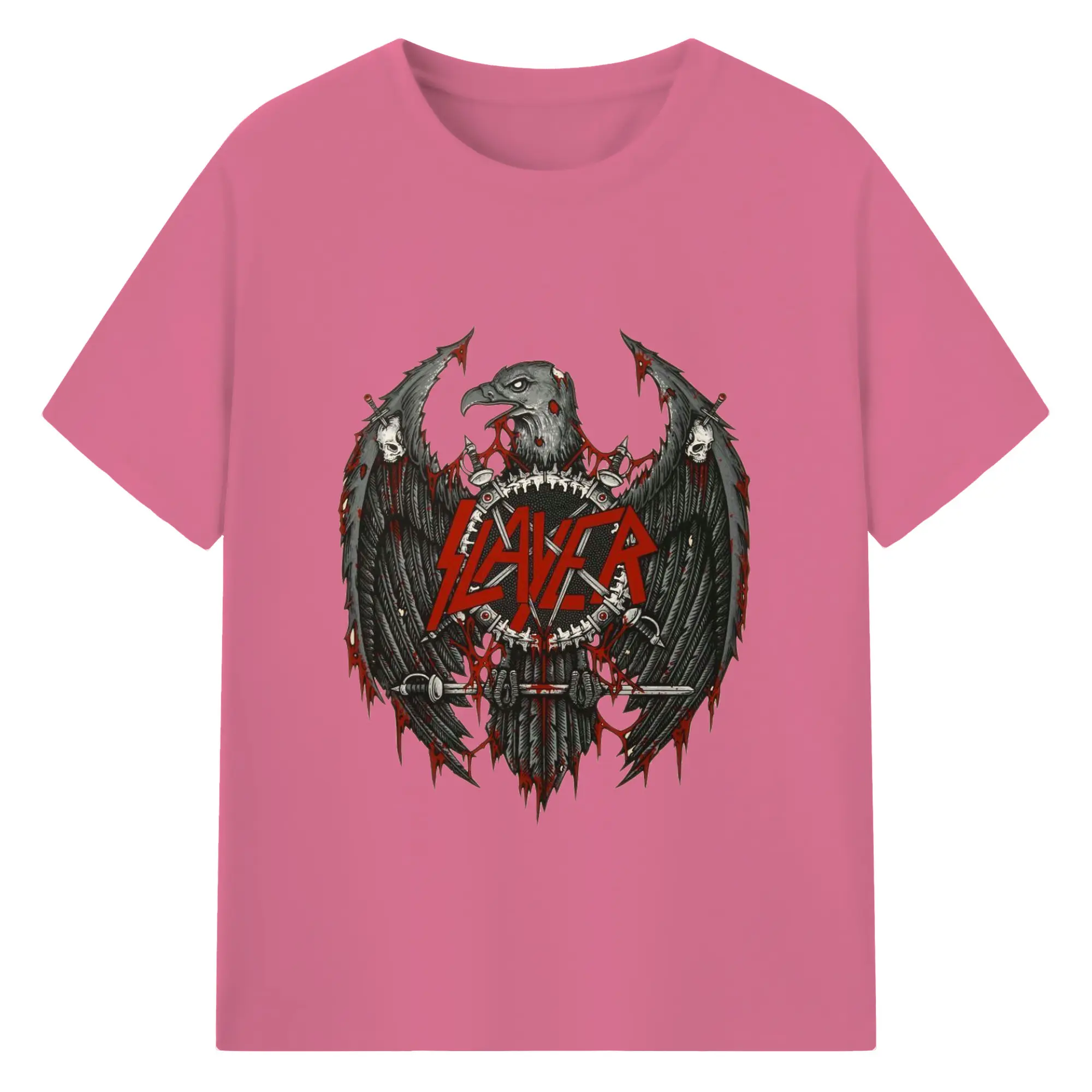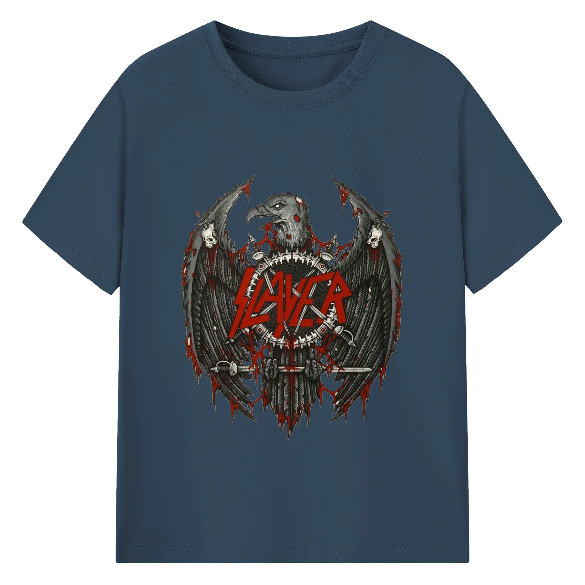 Slayer Thrash Metal Dark Eagle DIY Shirt - 180g Cotton T-Shirt With Front Heat Transfer Print – Soft, Lightweight, Fitted Design – Comfortable Casual Wear For Sports & Everyday Use