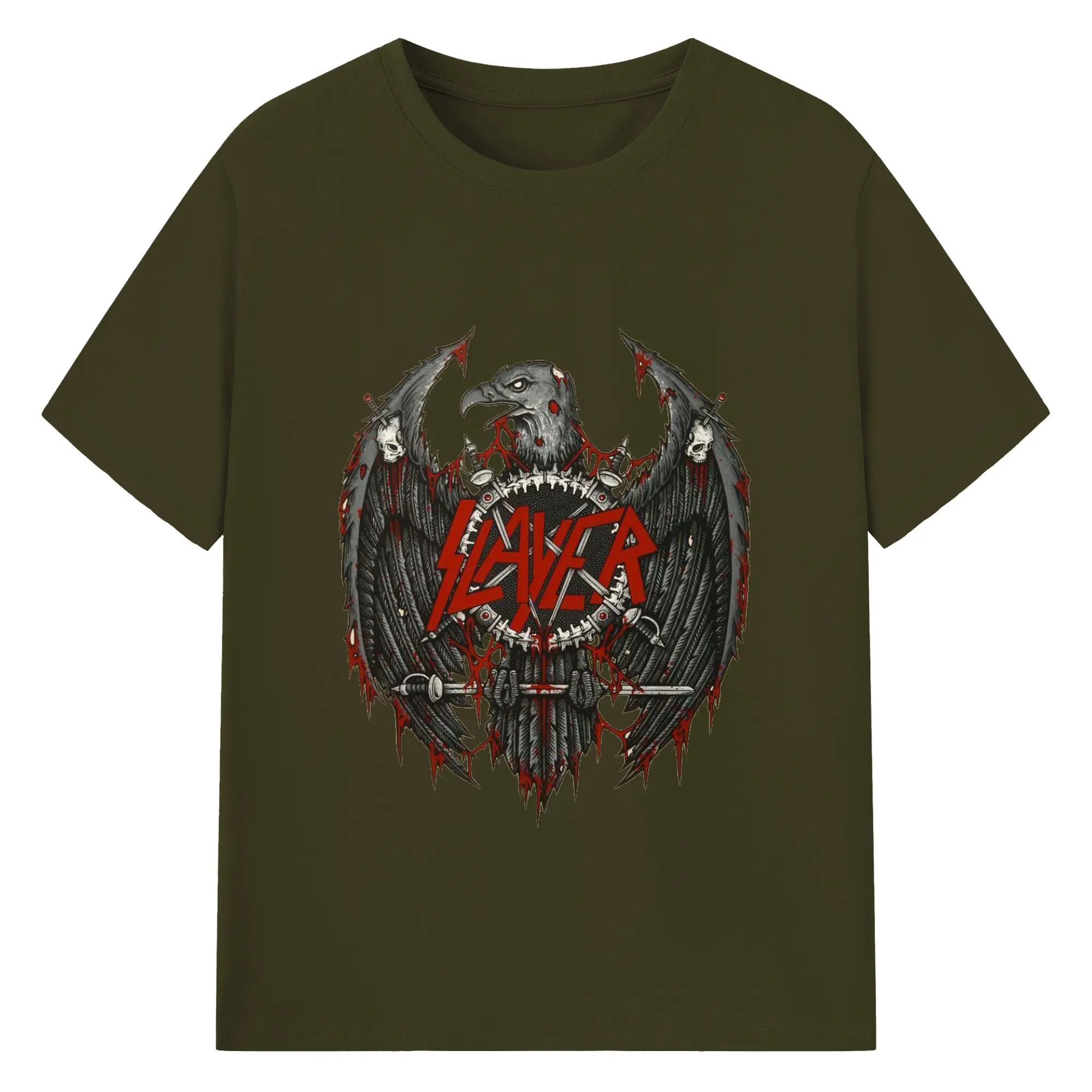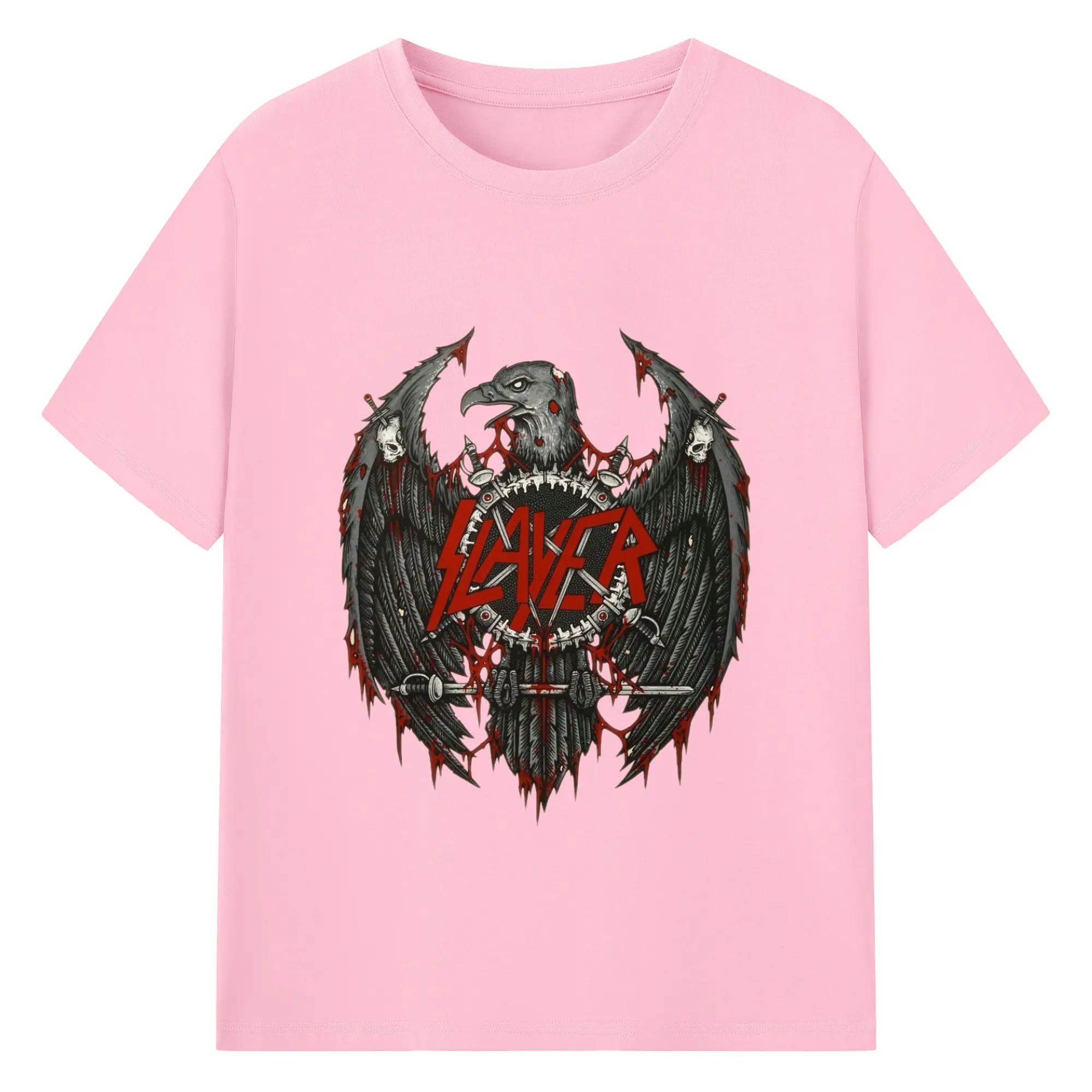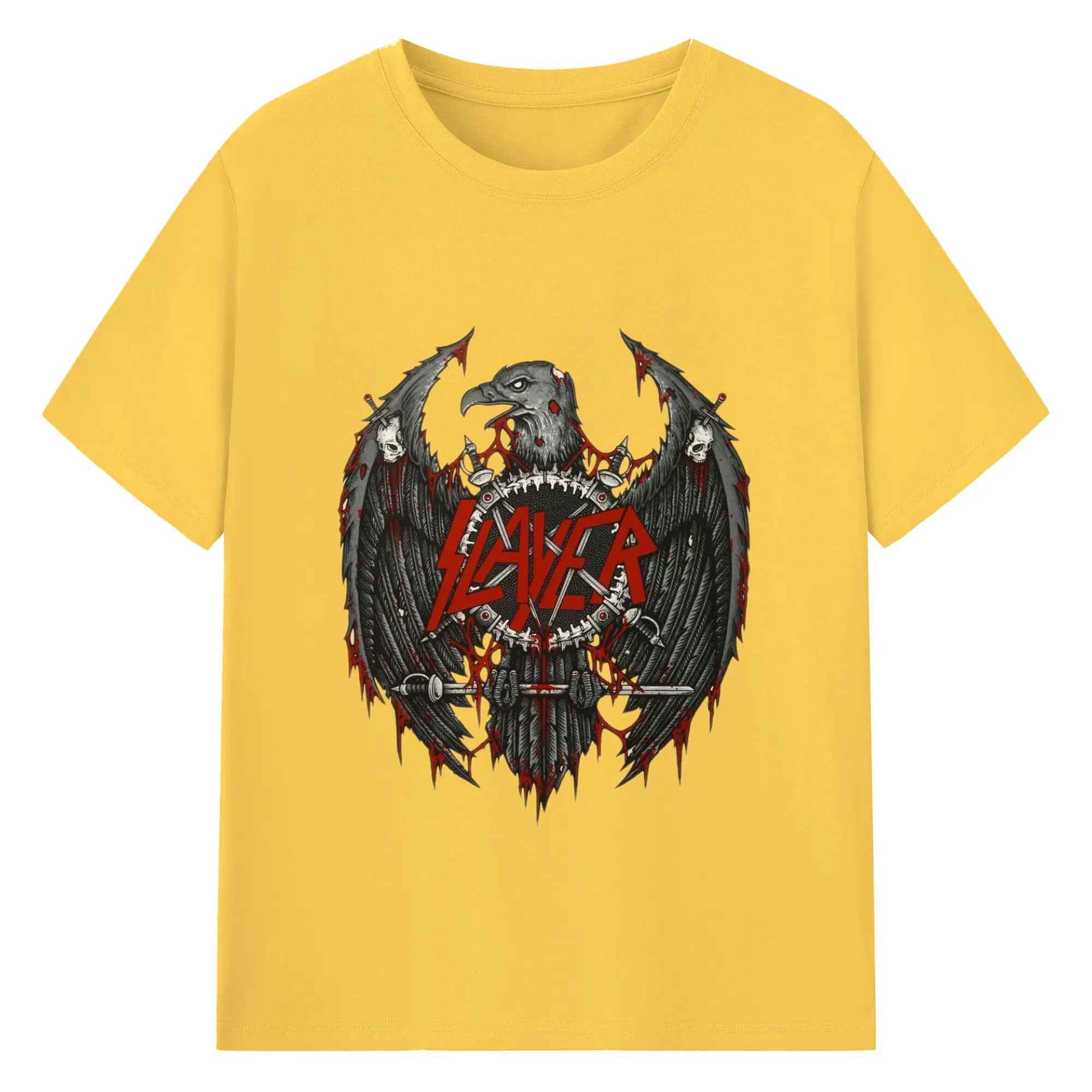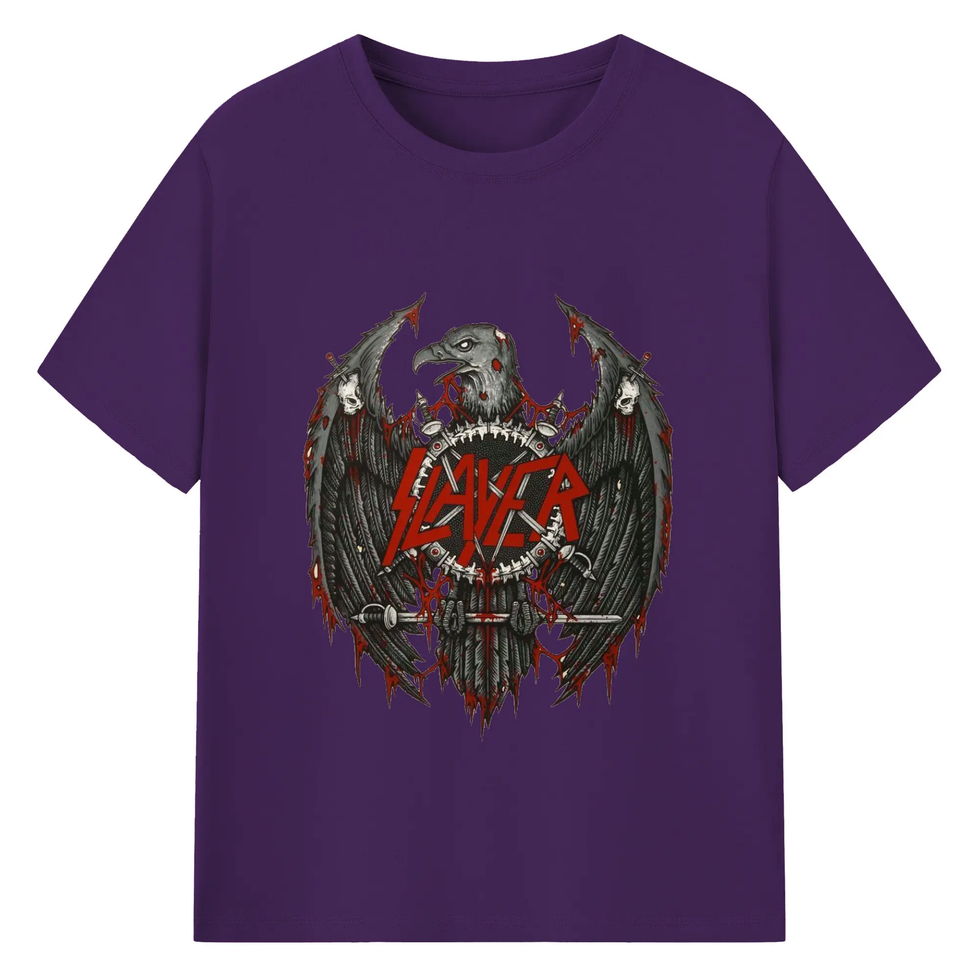 Slayer Thrash Metal Dark Eagle DIY Shirt - 180g Cotton T-Shirt With Front Heat Transfer Print – Soft, Lightweight, Fitted Design – Comfortable Casual Wear For Sports & Everyday Use