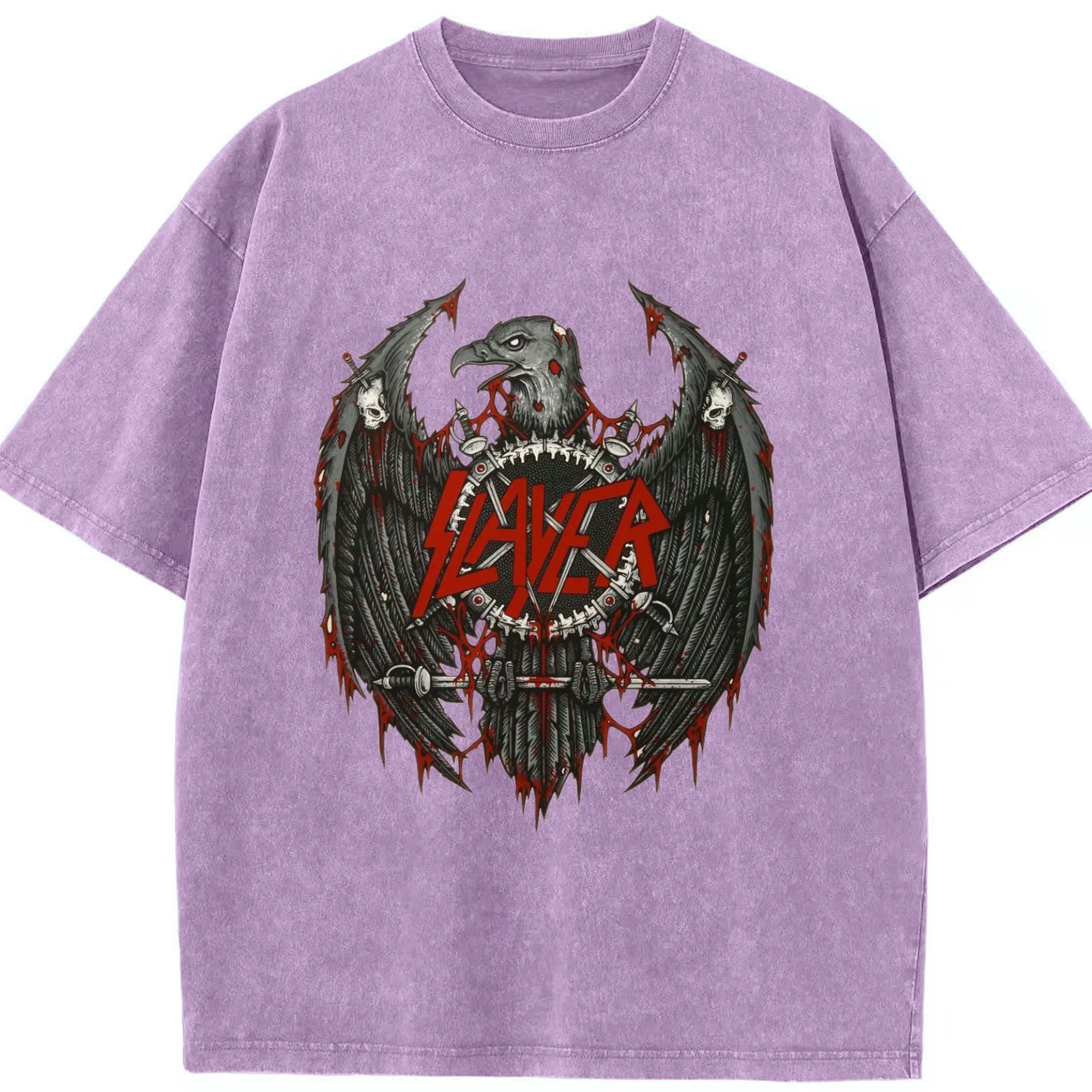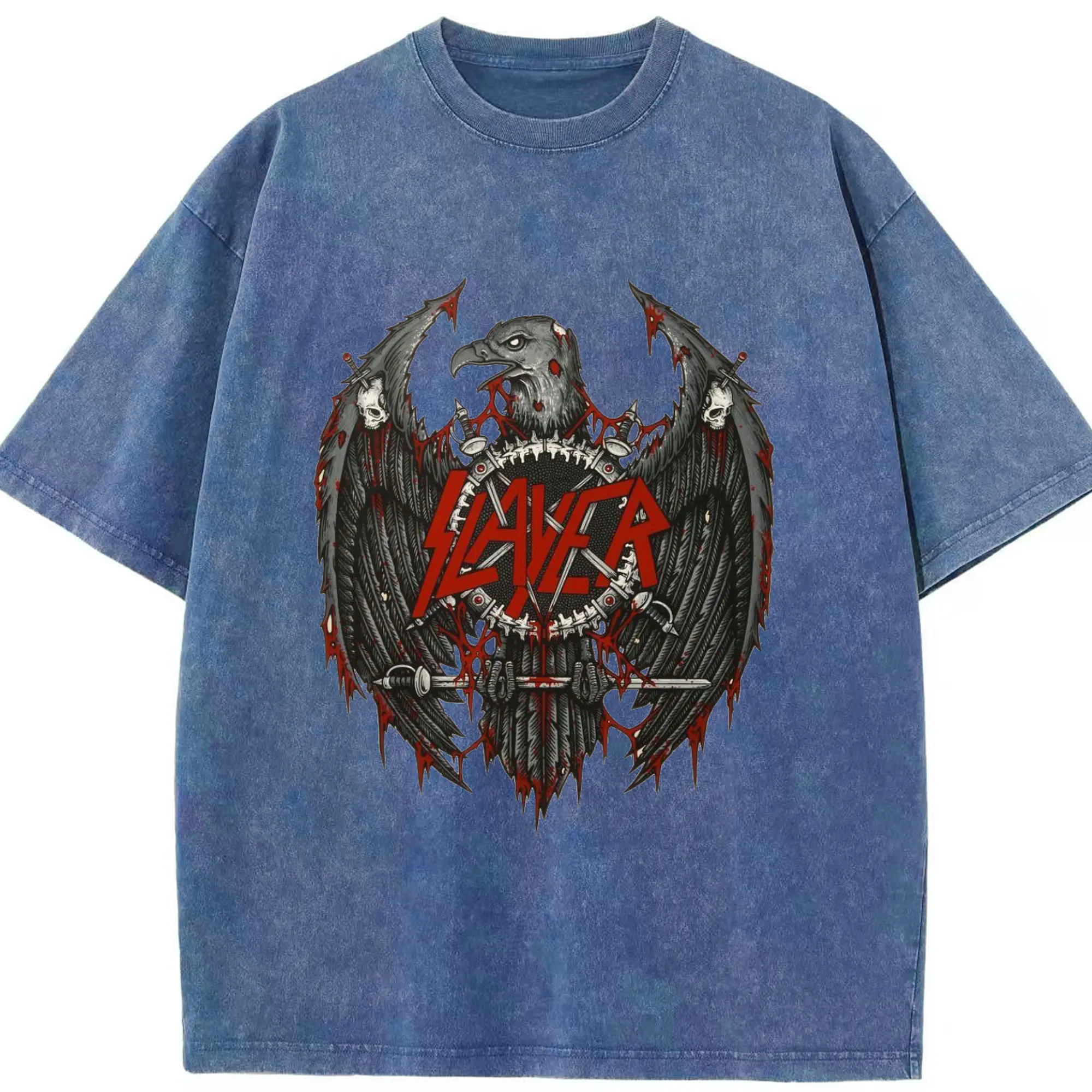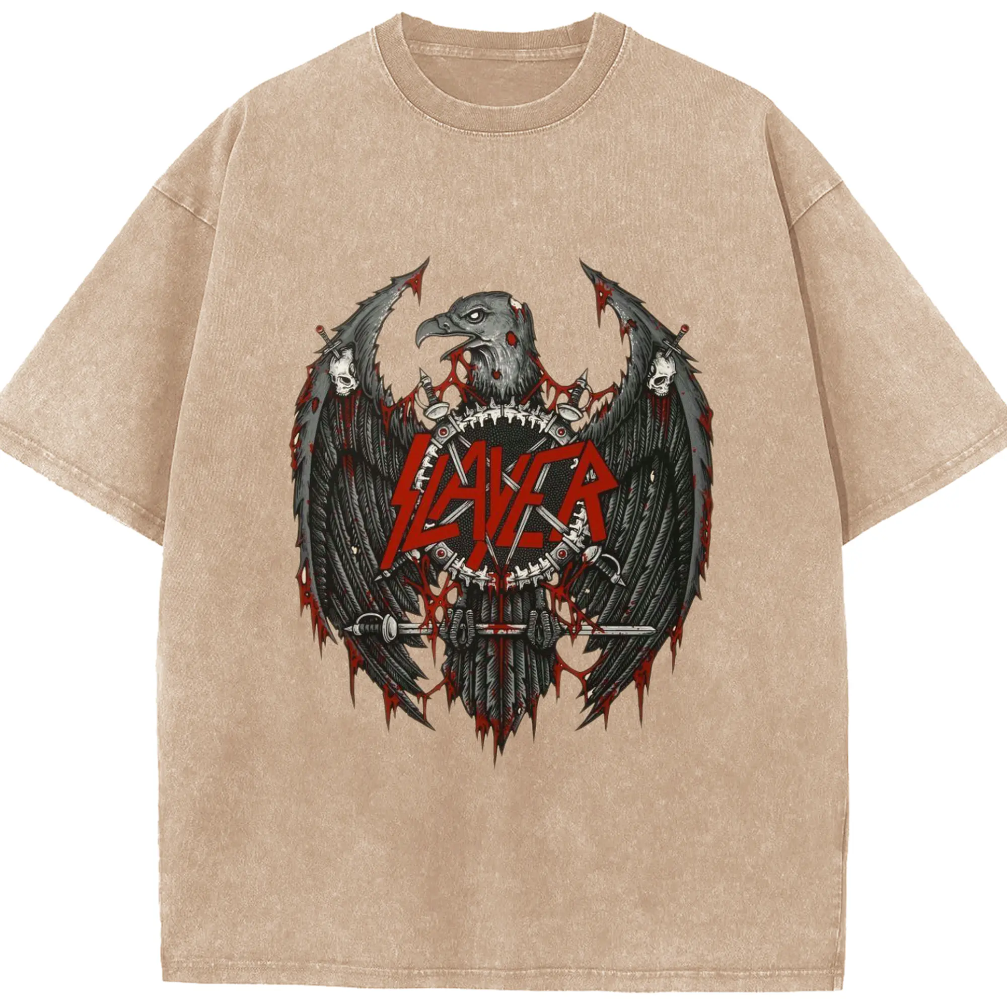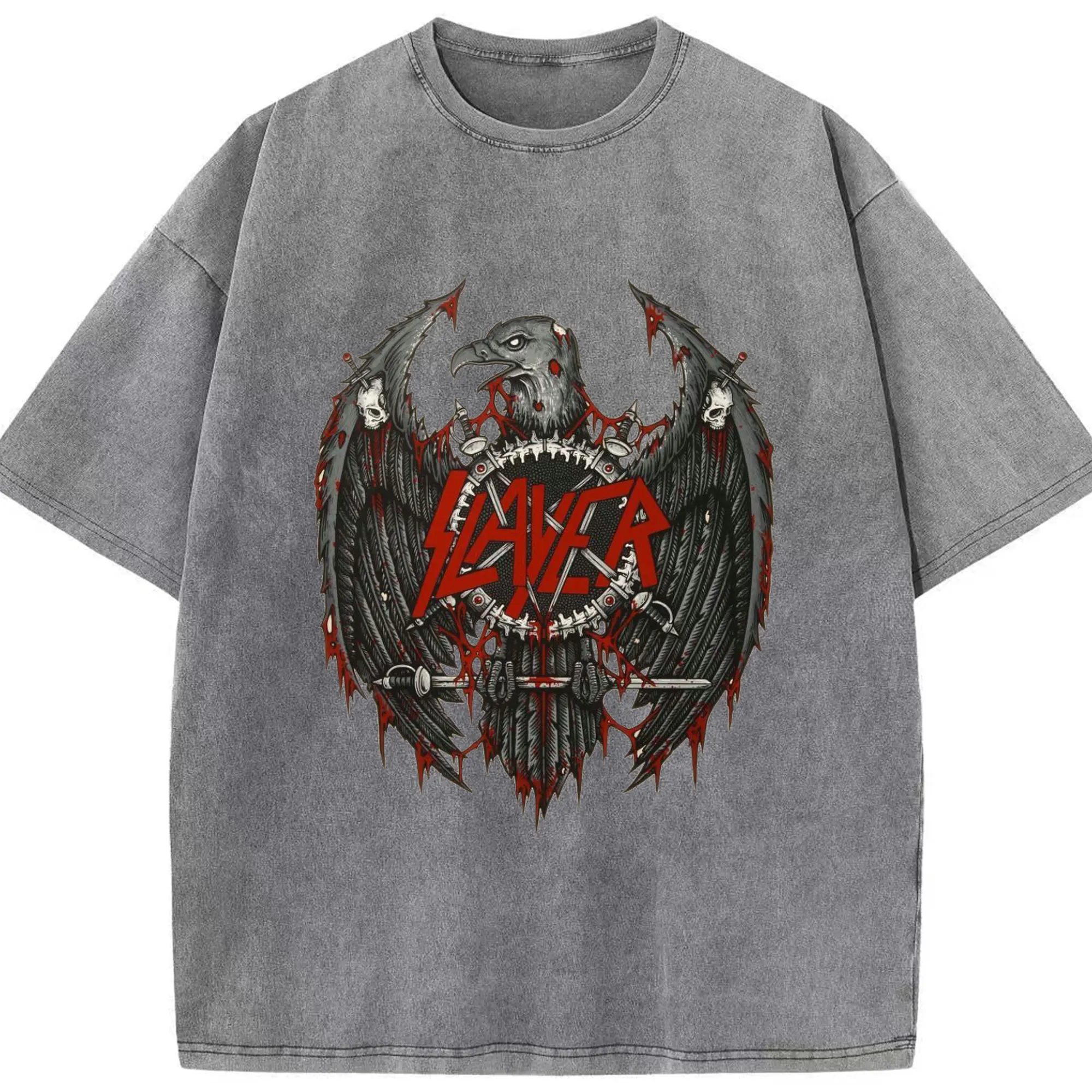 Slayer Thrash Metal Dark Eagle DIY Shirt - Washed Vintage Look 230g Cotton Oversized T-Shirt With Front Heat Transfer Print – Soft, Lightweight, Stylish Fit – Comfortable Casual Wear For Sports & Everyday Use