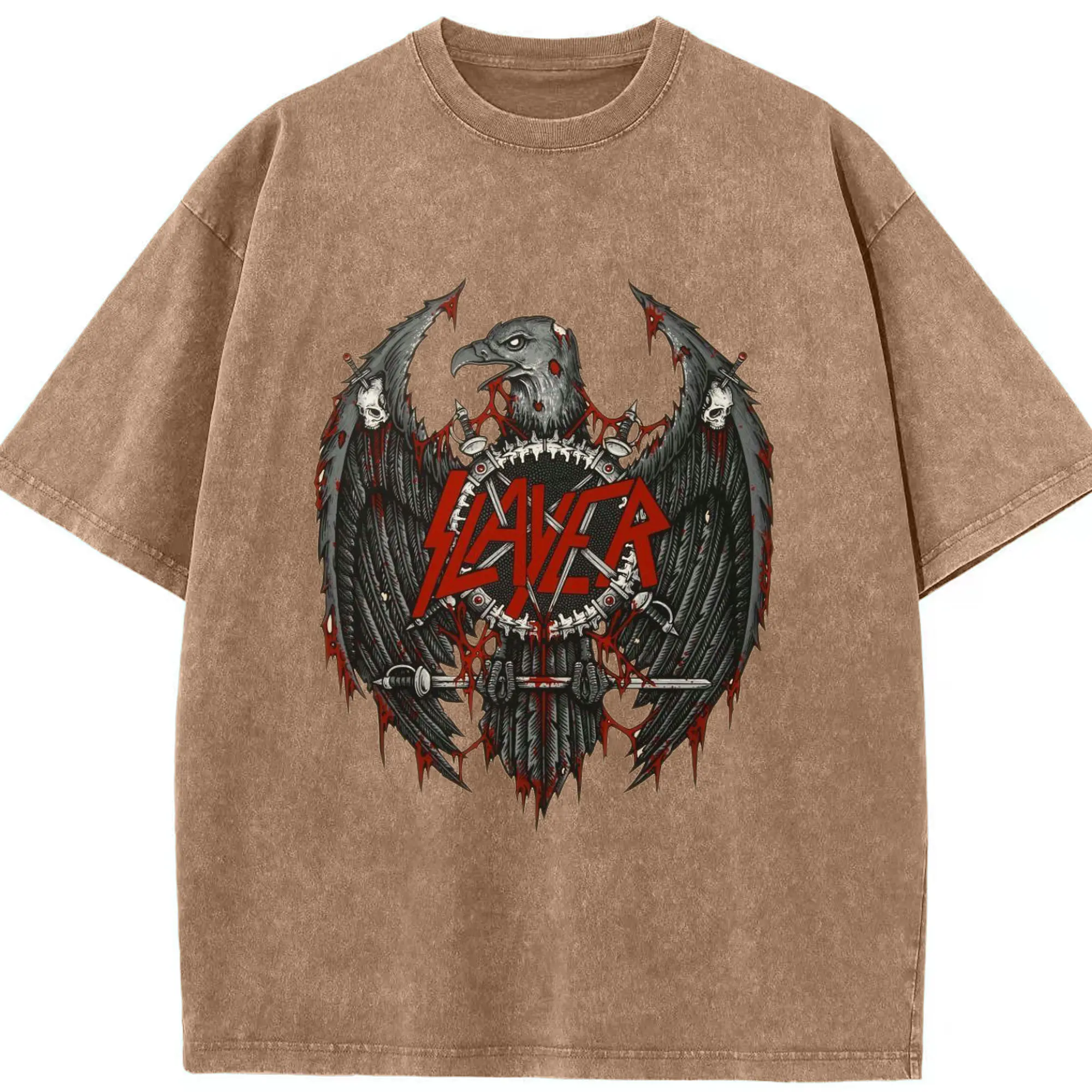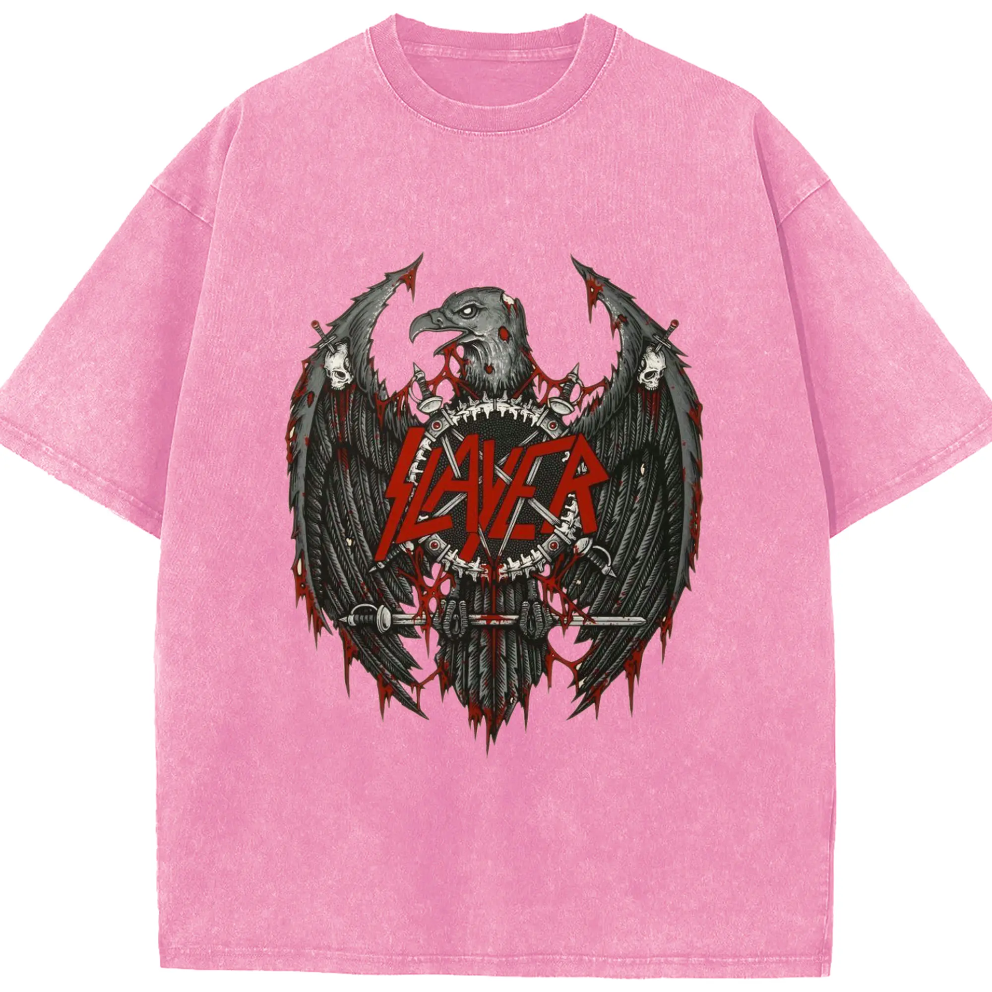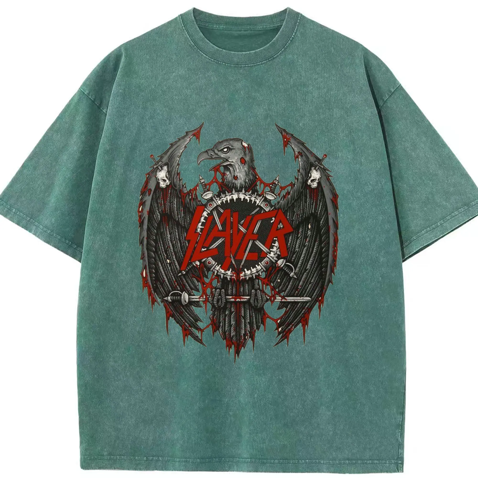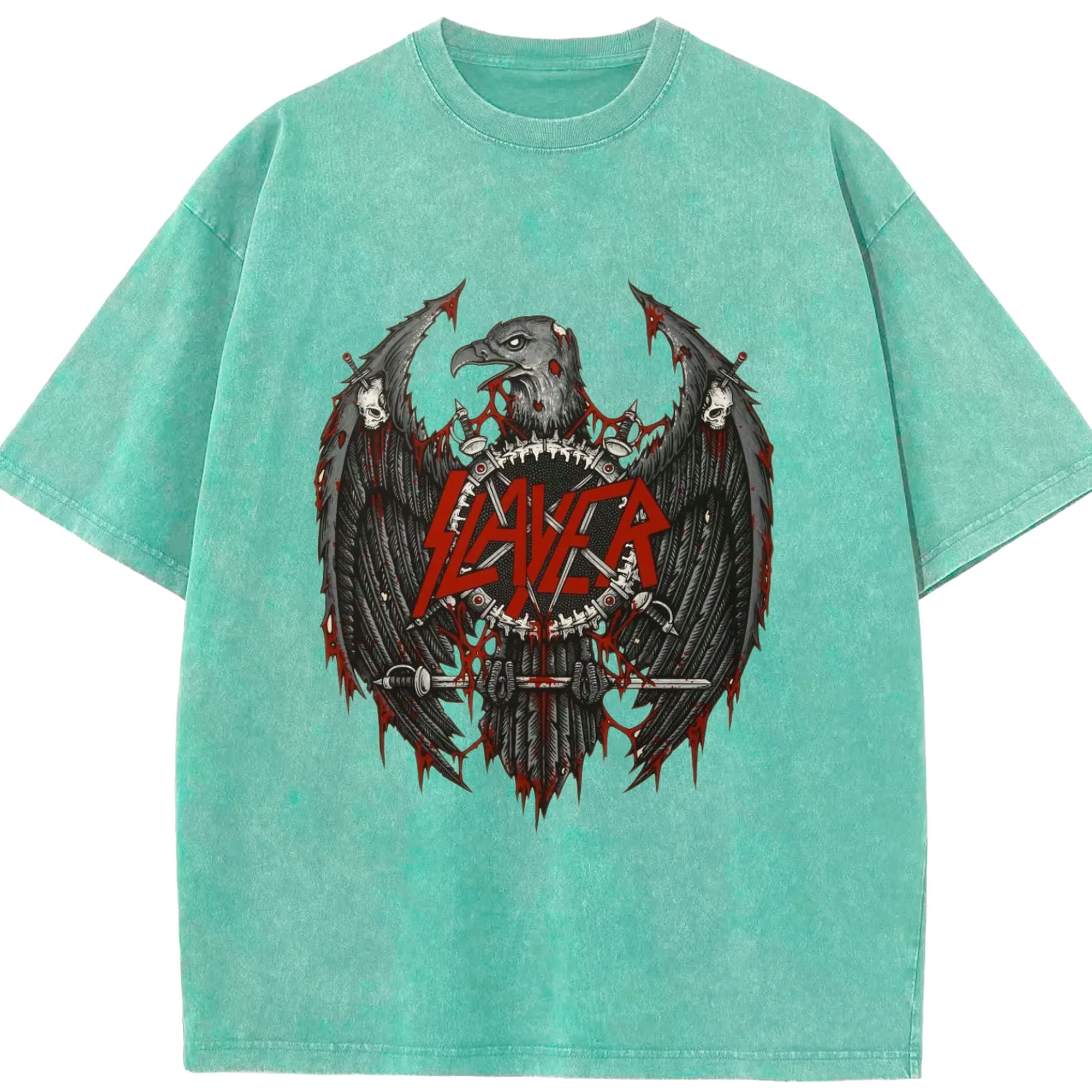 Slayer Thrash Metal Dark Eagle DIY Shirt - Washed Vintage Look 230g Cotton Oversized T-Shirt With Front Heat Transfer Print – Soft, Lightweight, Stylish Fit – Comfortable Casual Wear For Sports & Everyday Use