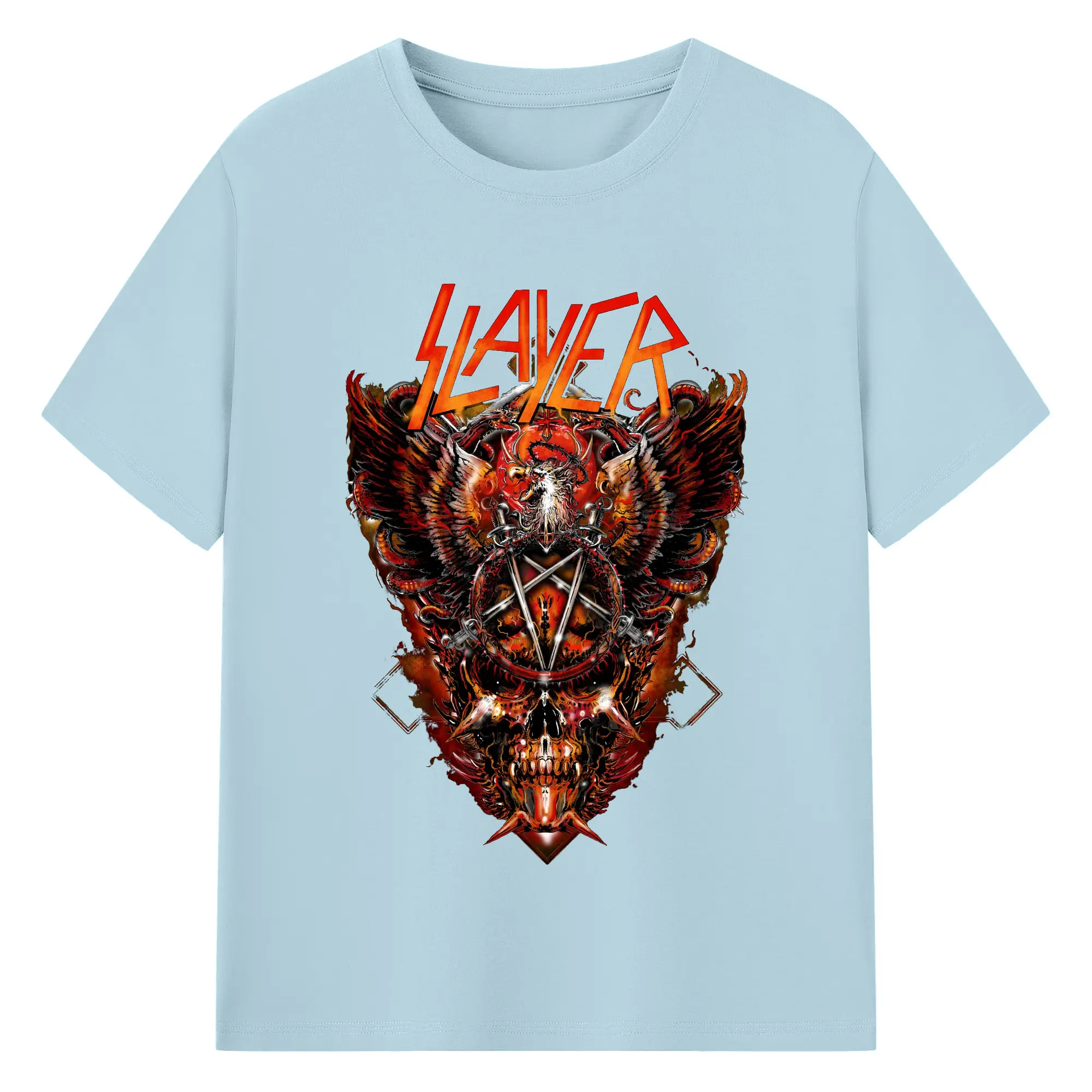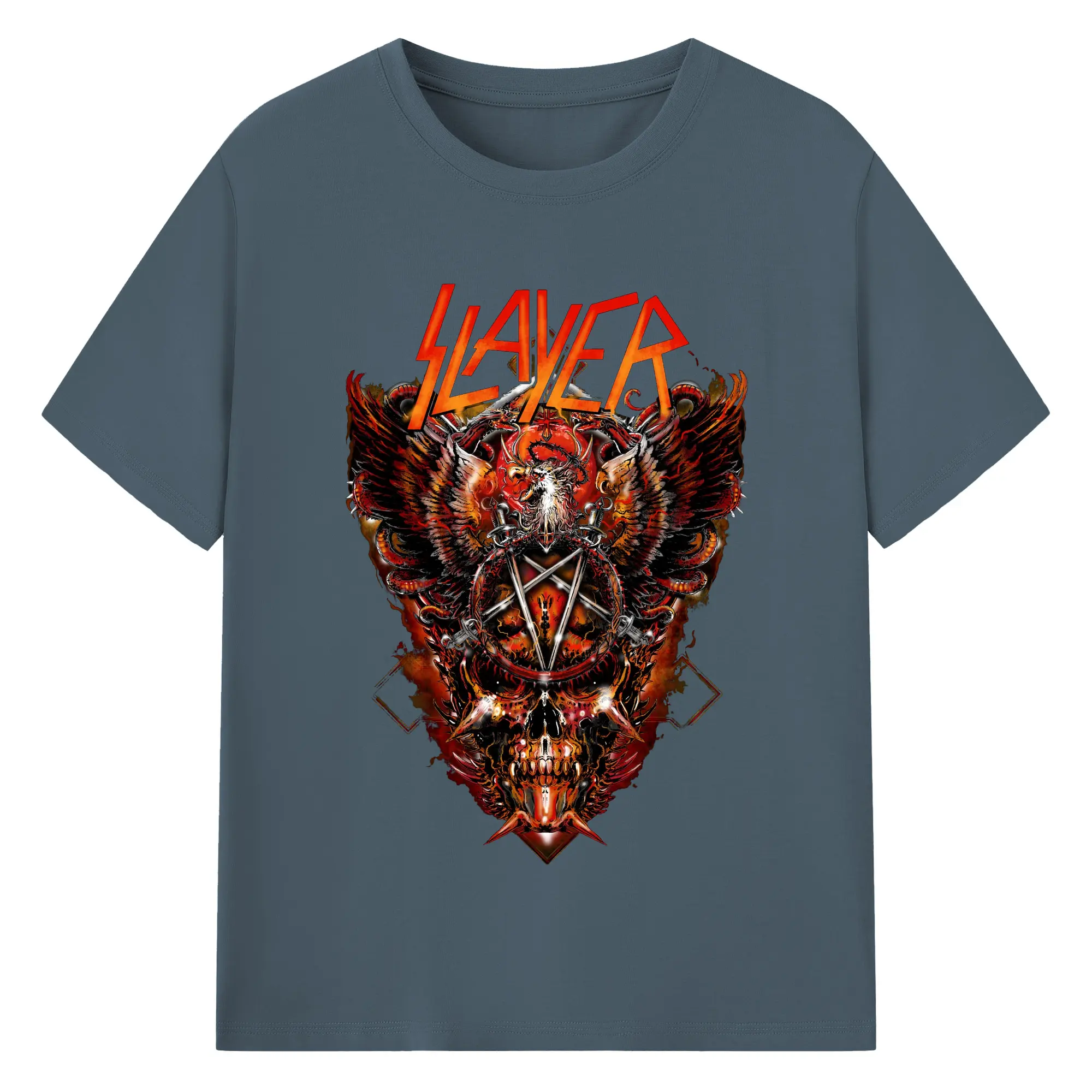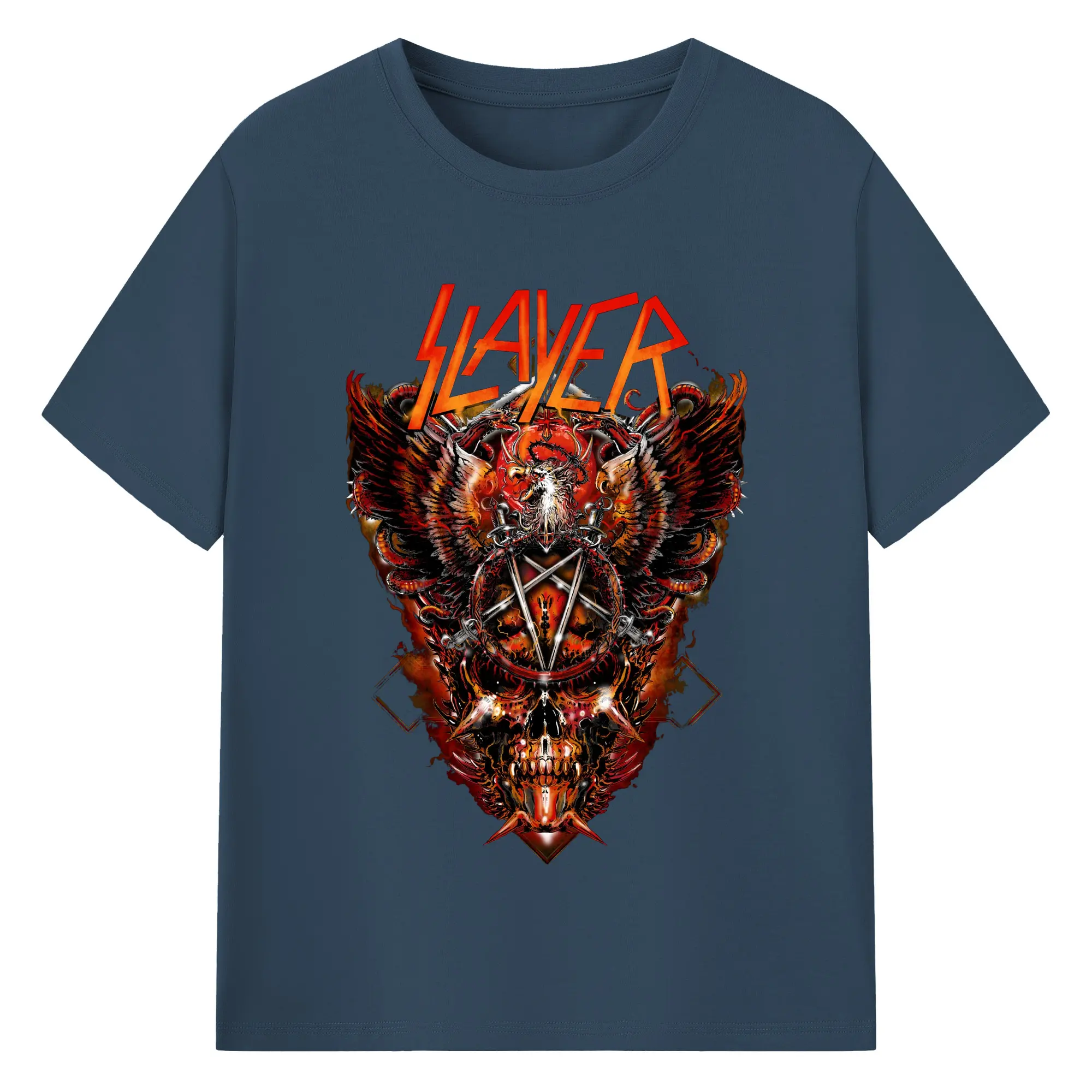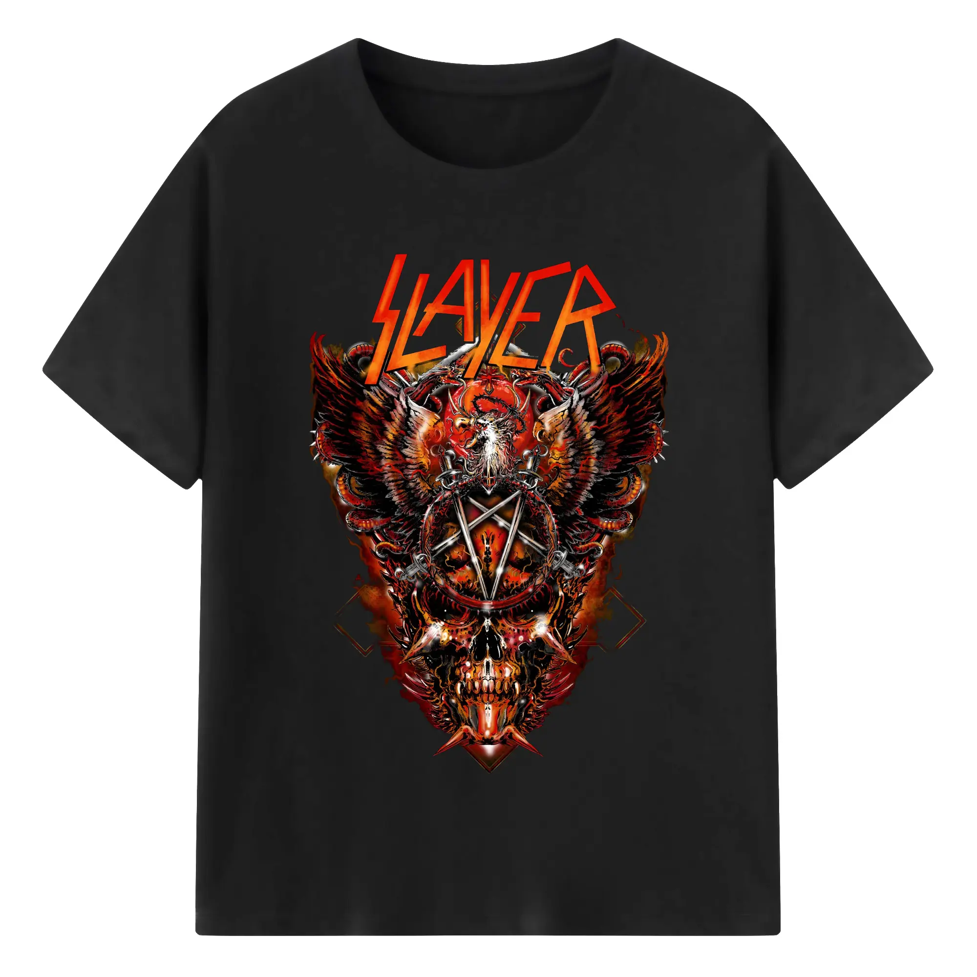 Slayer Thrash Metal Dark Pentagram DIY Shirt - 180g Cotton T-Shirt With Front Heat Transfer Print – Soft, Lightweight, Fitted Design – Comfortable Casual Wear For Sports & Everyday Use