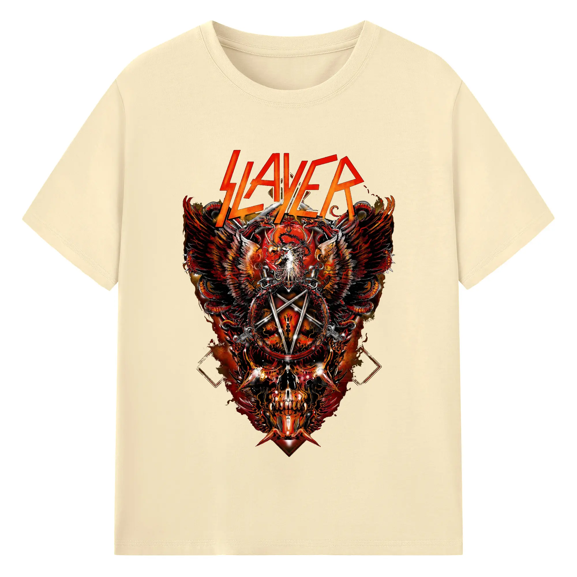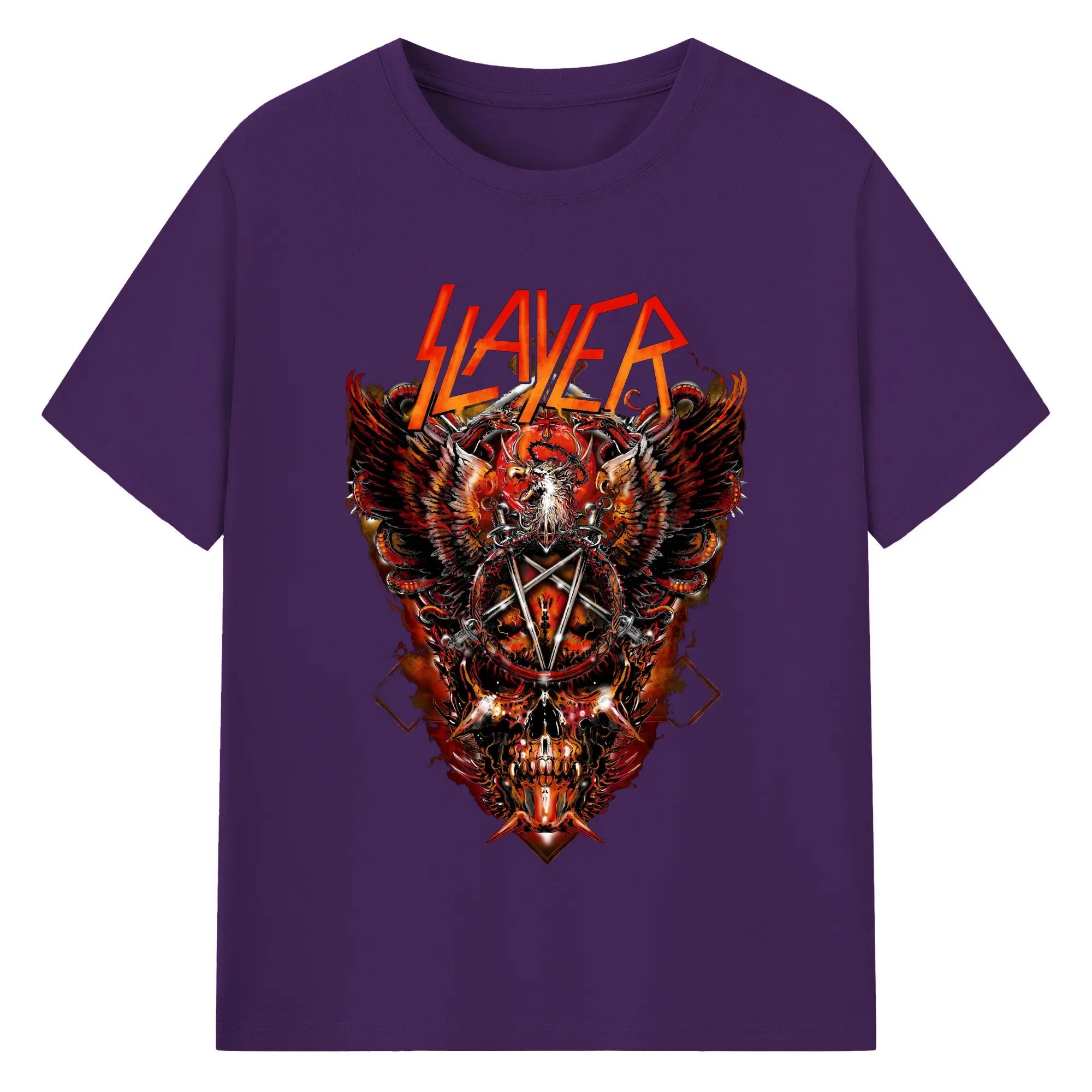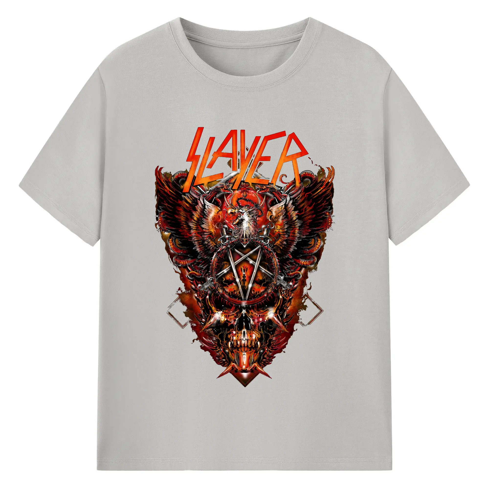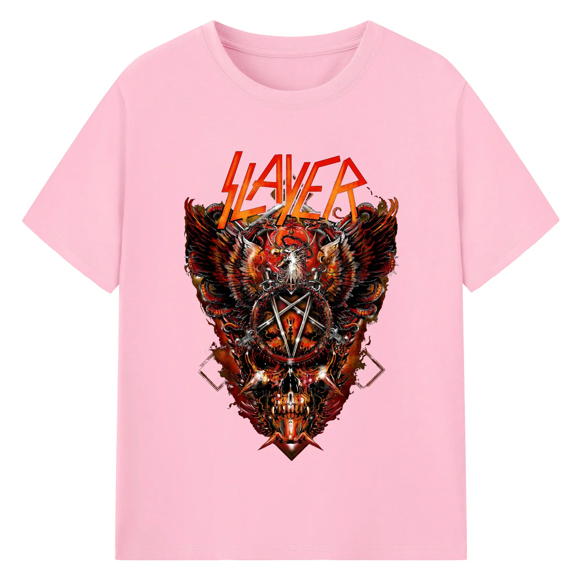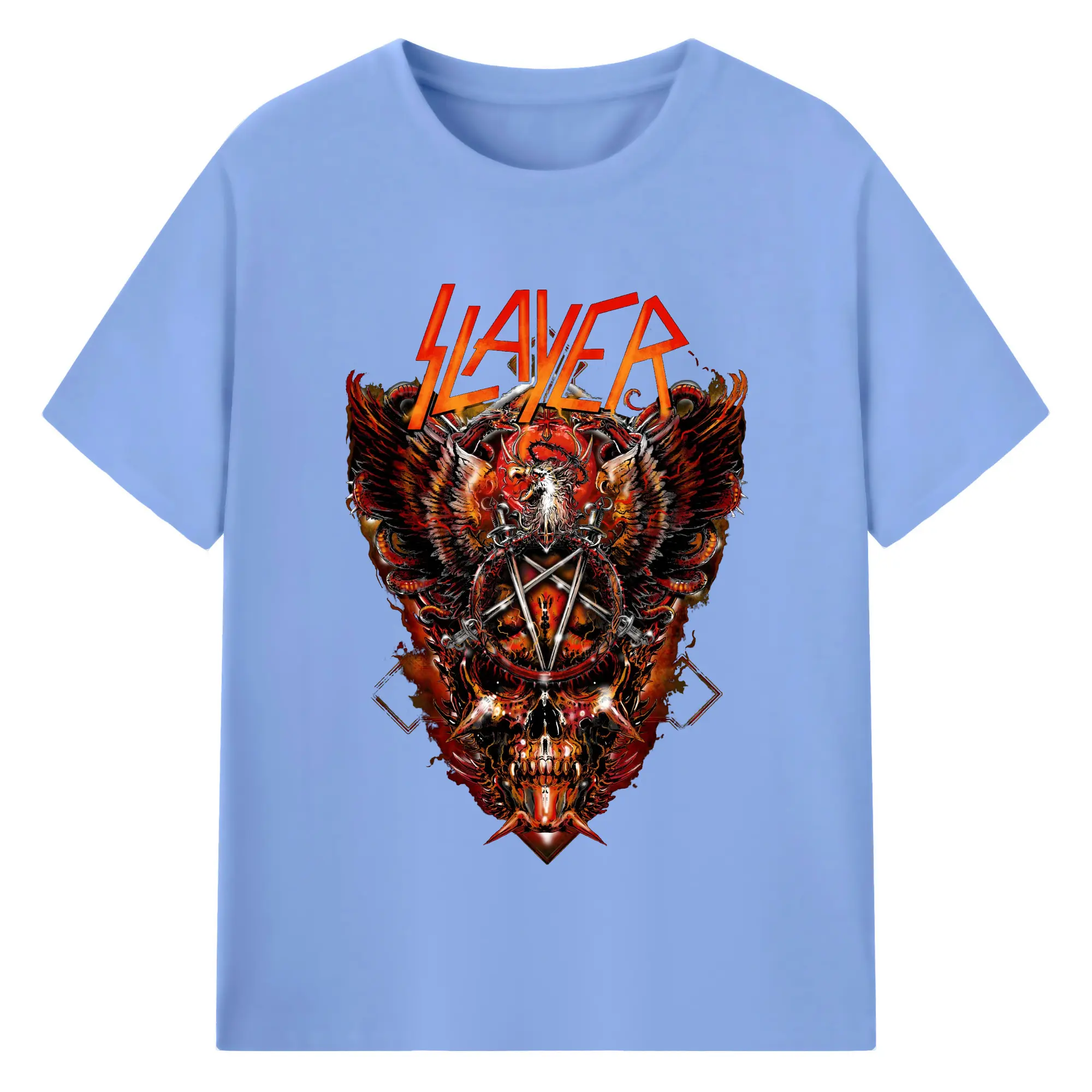 Slayer Thrash Metal Dark Pentagram DIY Shirt - 180g Cotton T-Shirt With Front Heat Transfer Print – Soft, Lightweight, Fitted Design – Comfortable Casual Wear For Sports & Everyday Use