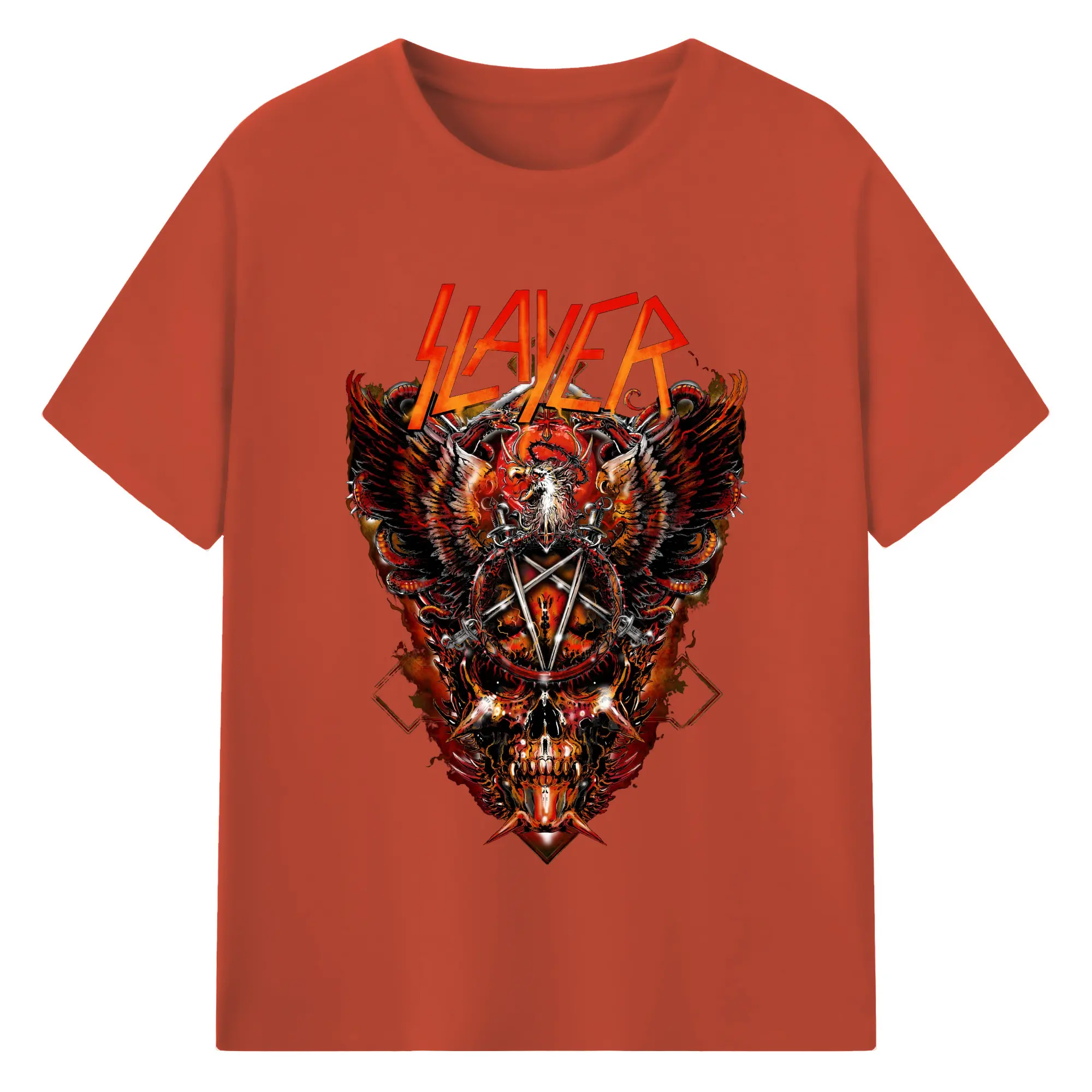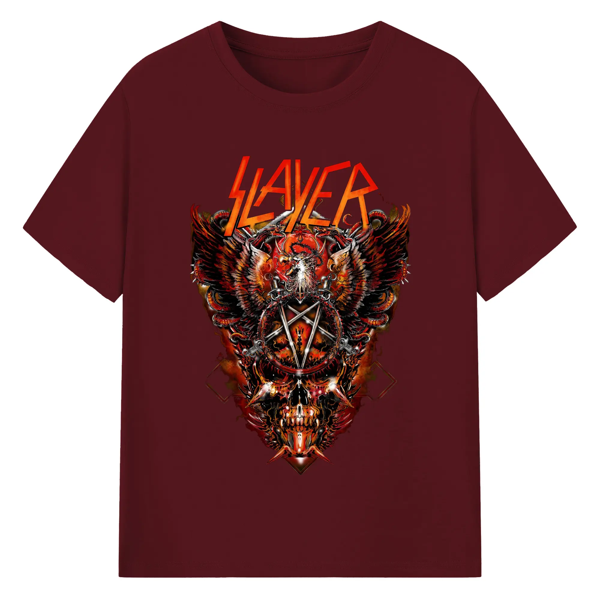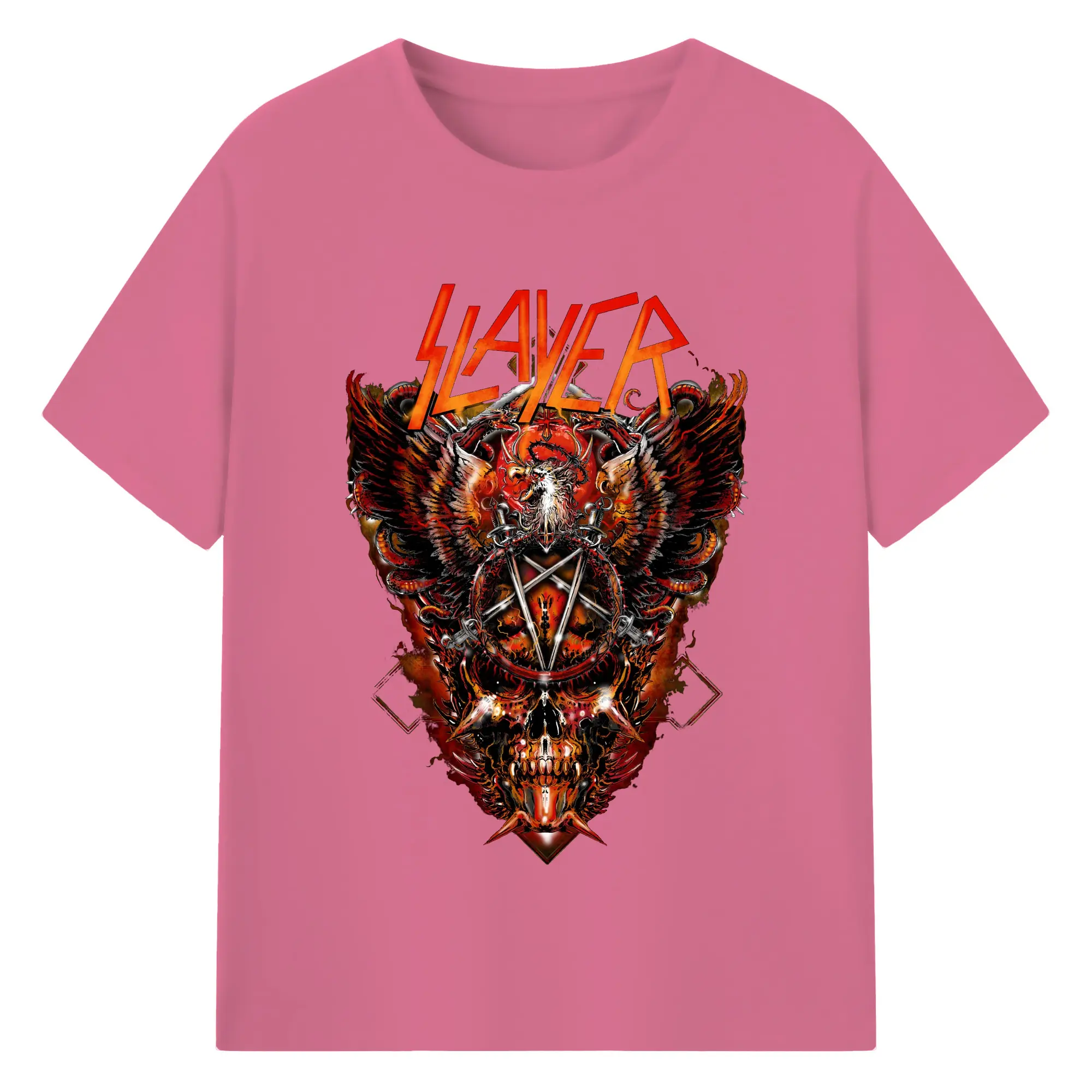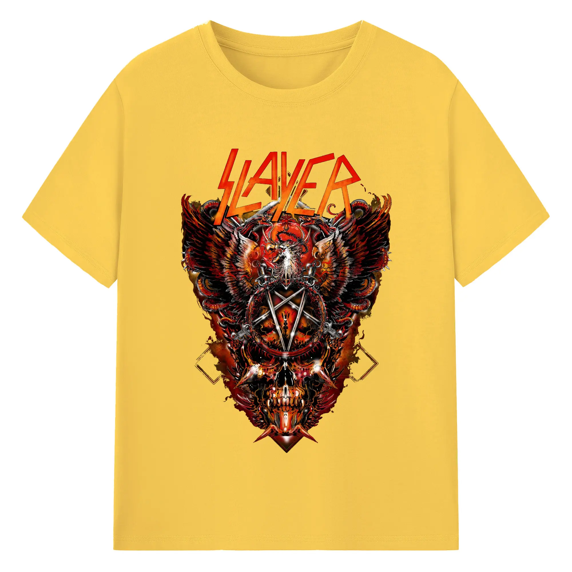 Slayer Thrash Metal Dark Pentagram DIY Shirt - 180g Cotton T-Shirt With Front Heat Transfer Print – Soft, Lightweight, Fitted Design – Comfortable Casual Wear For Sports & Everyday Use