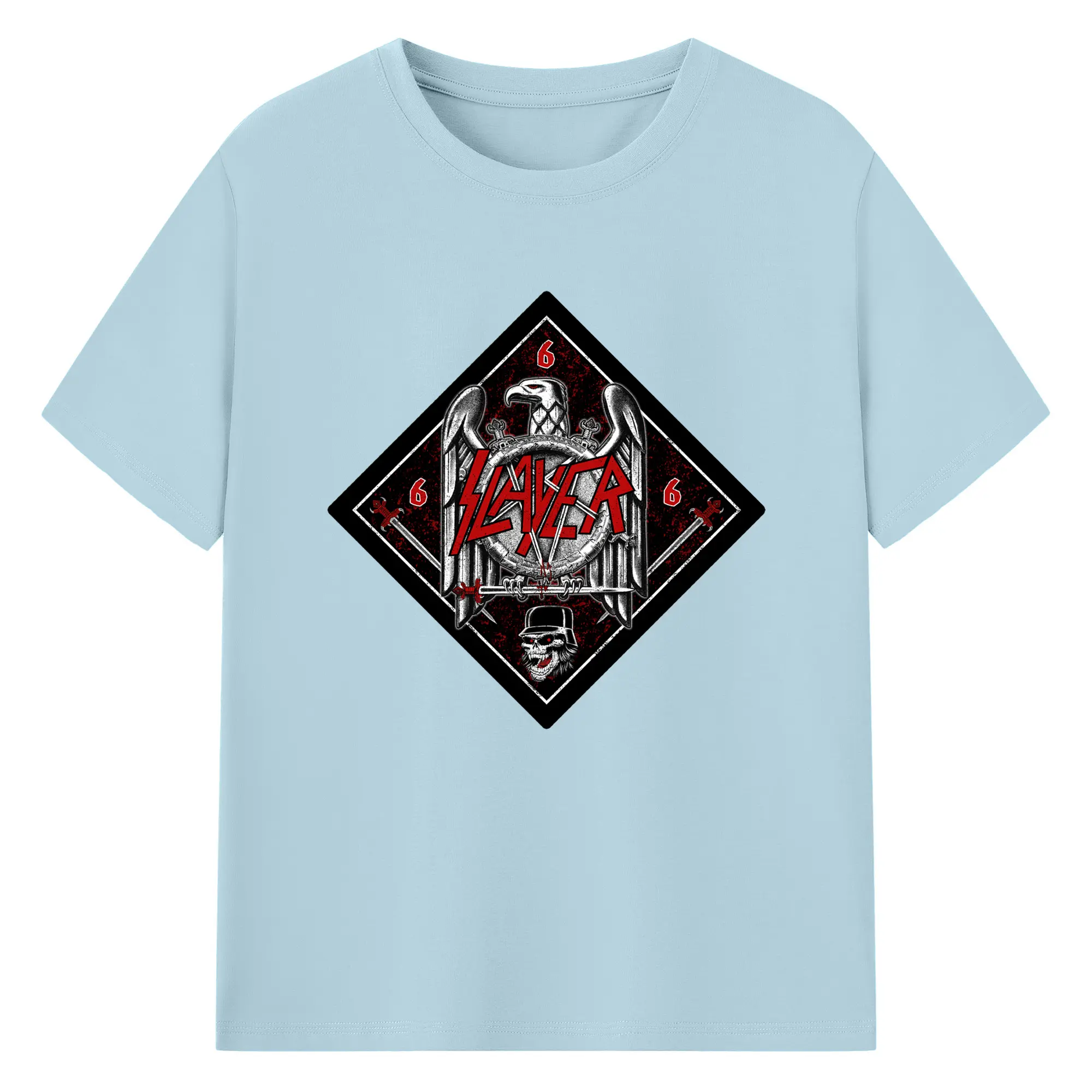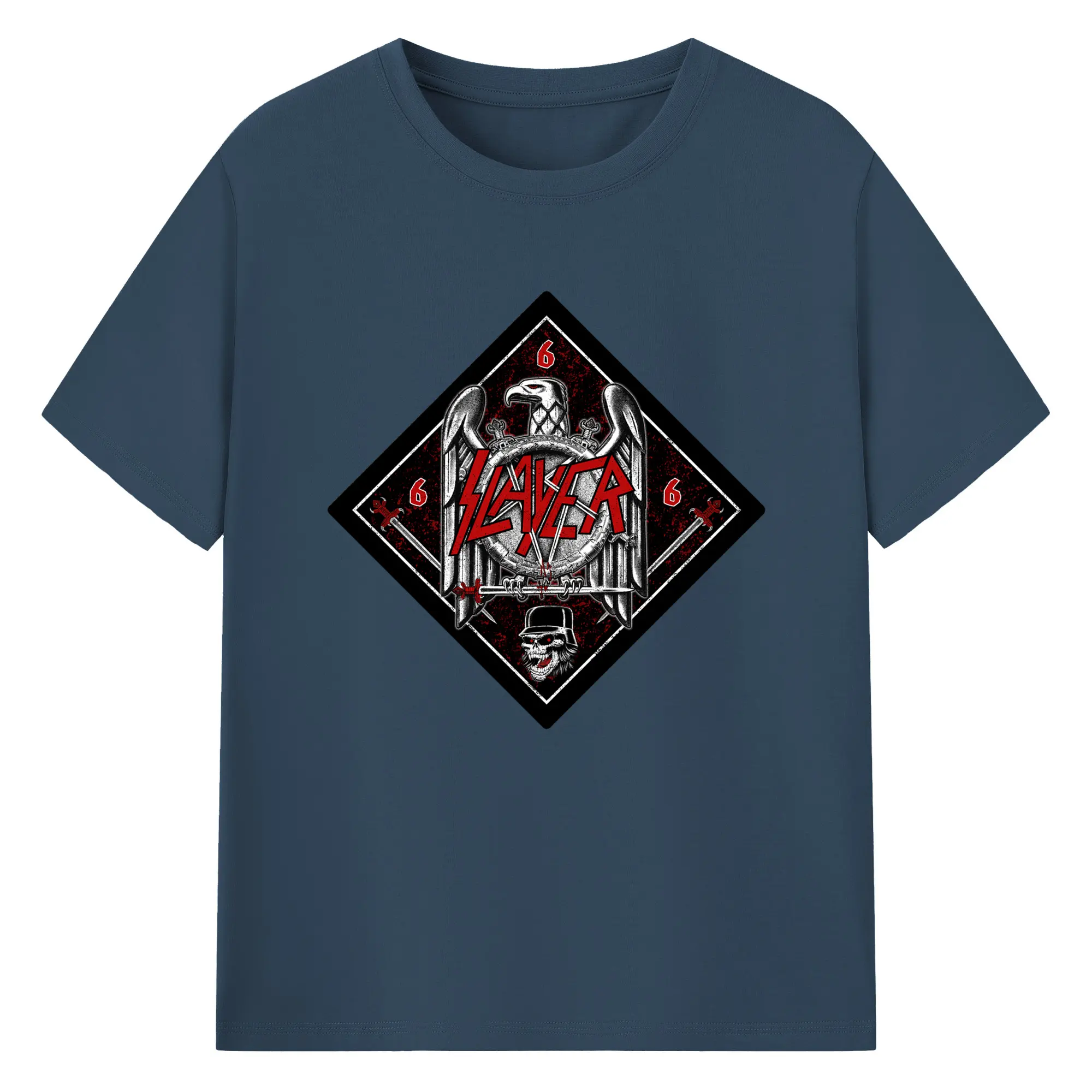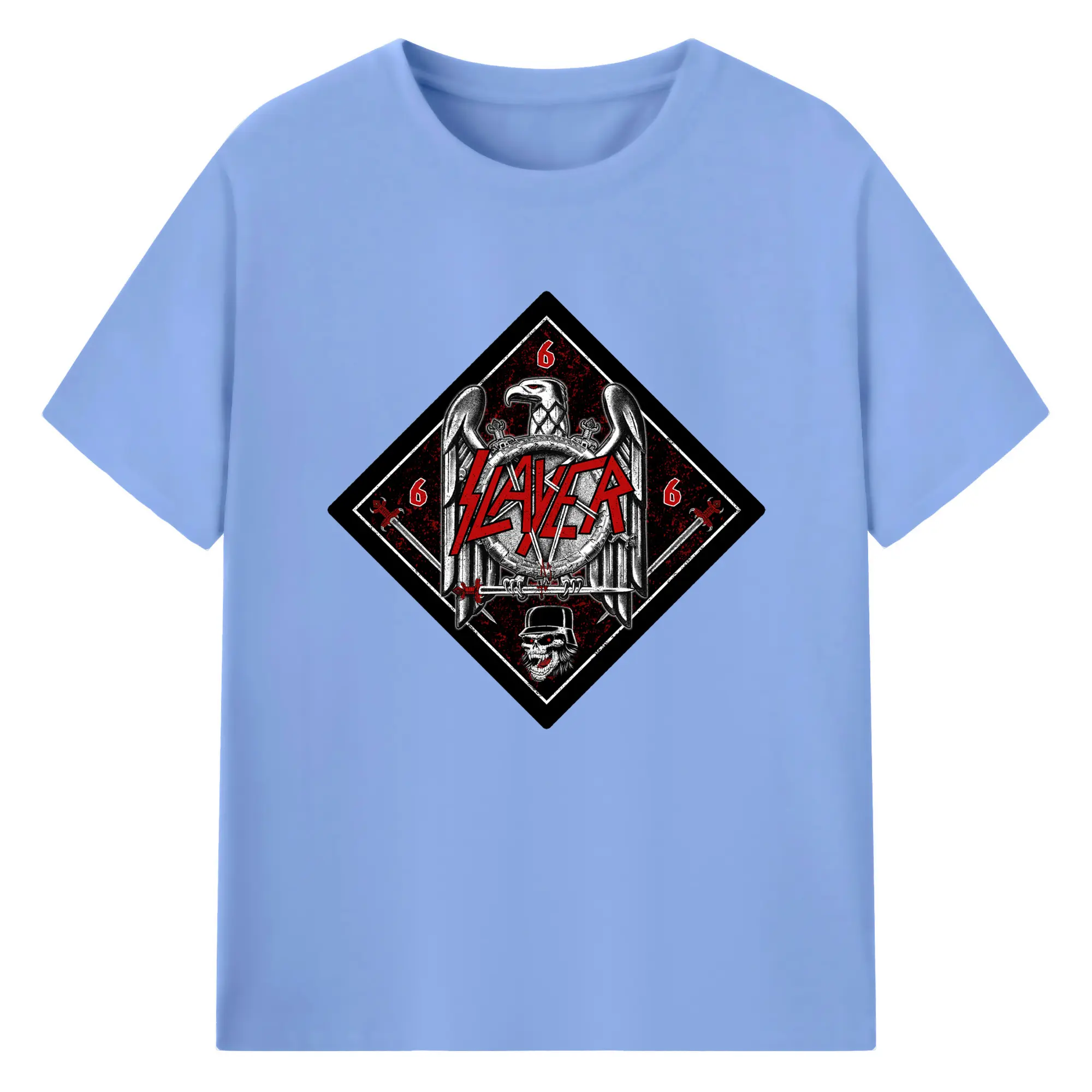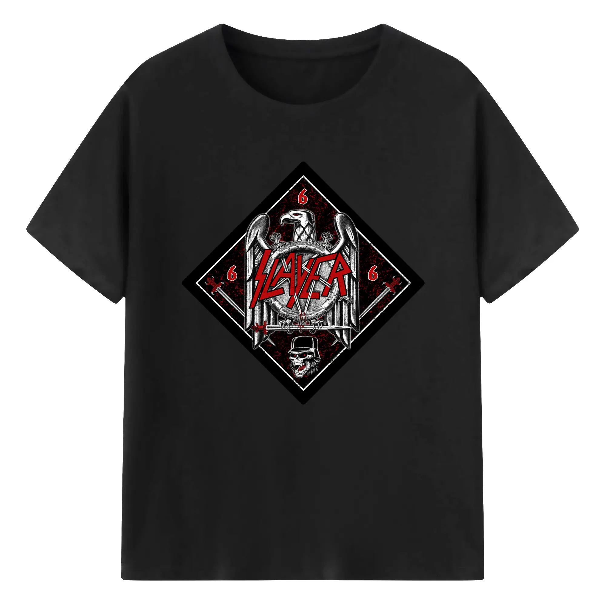 Slayer Thrash Metal Satanic Eagle DIY Shirt - 180g Cotton T-Shirt With Front Heat Transfer Print – Soft, Lightweight, Fitted Design – Comfortable Casual Wear For Sports & Everyday Use
