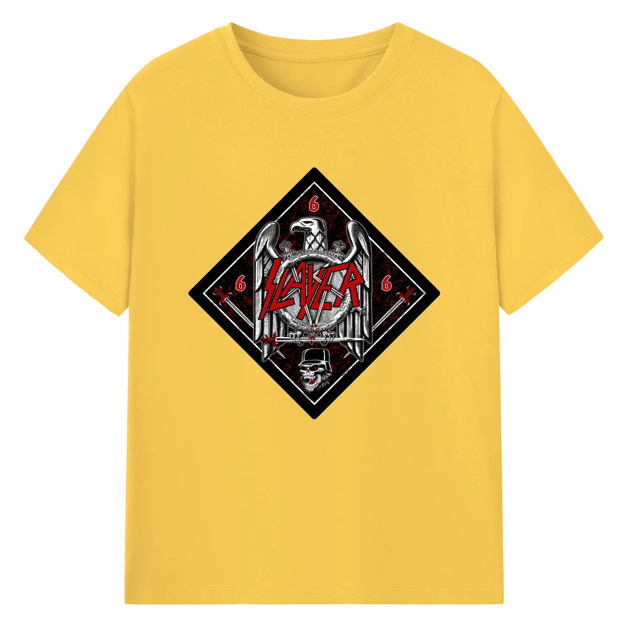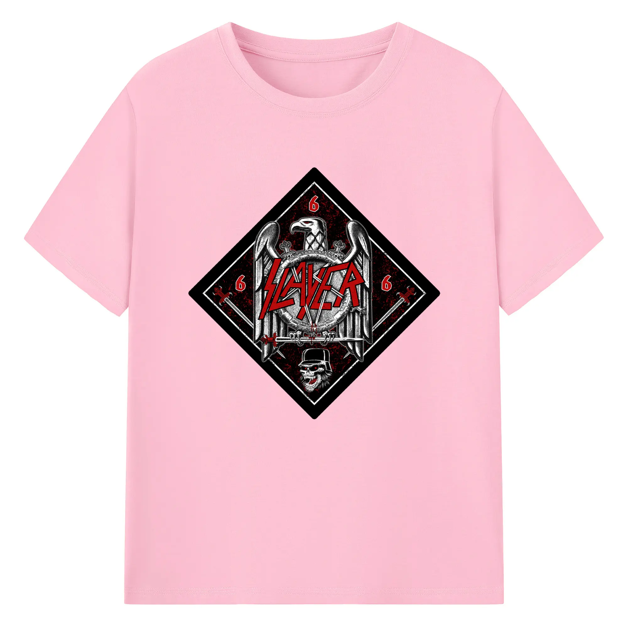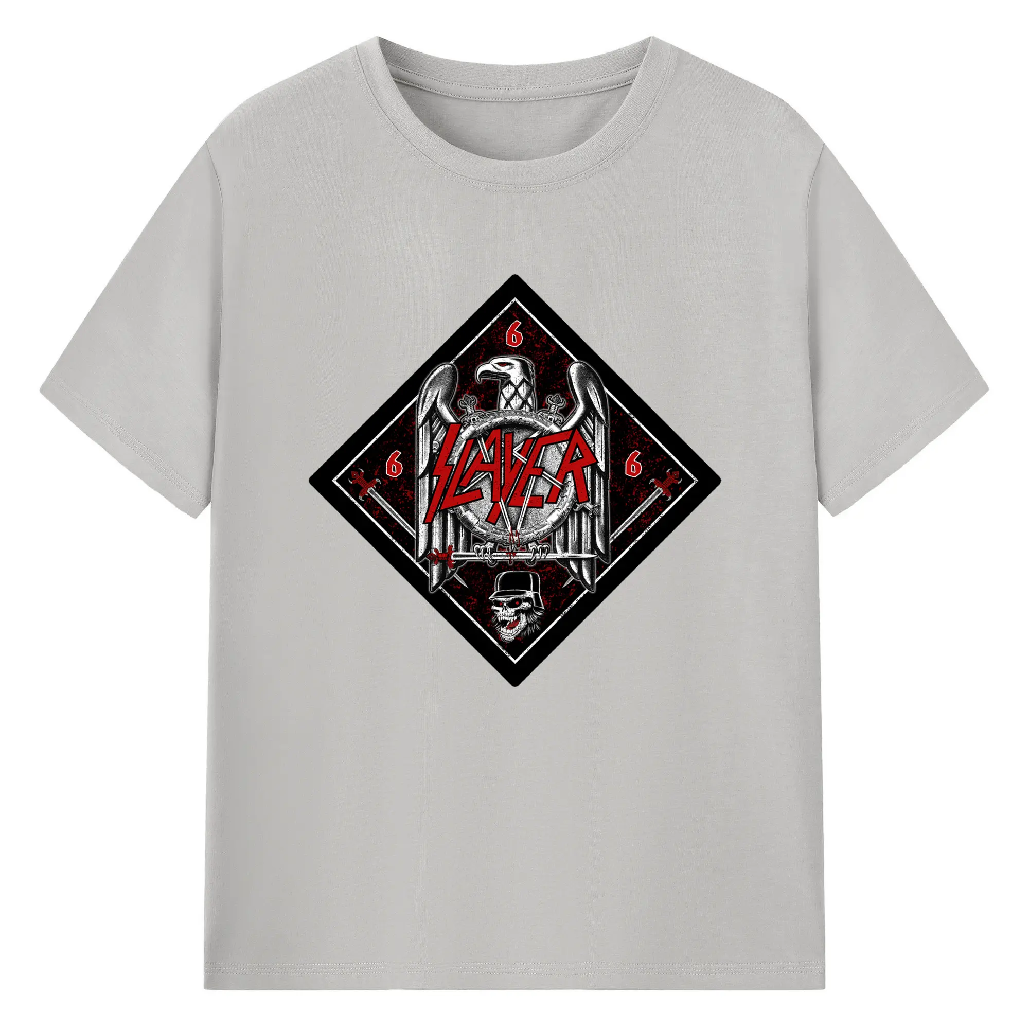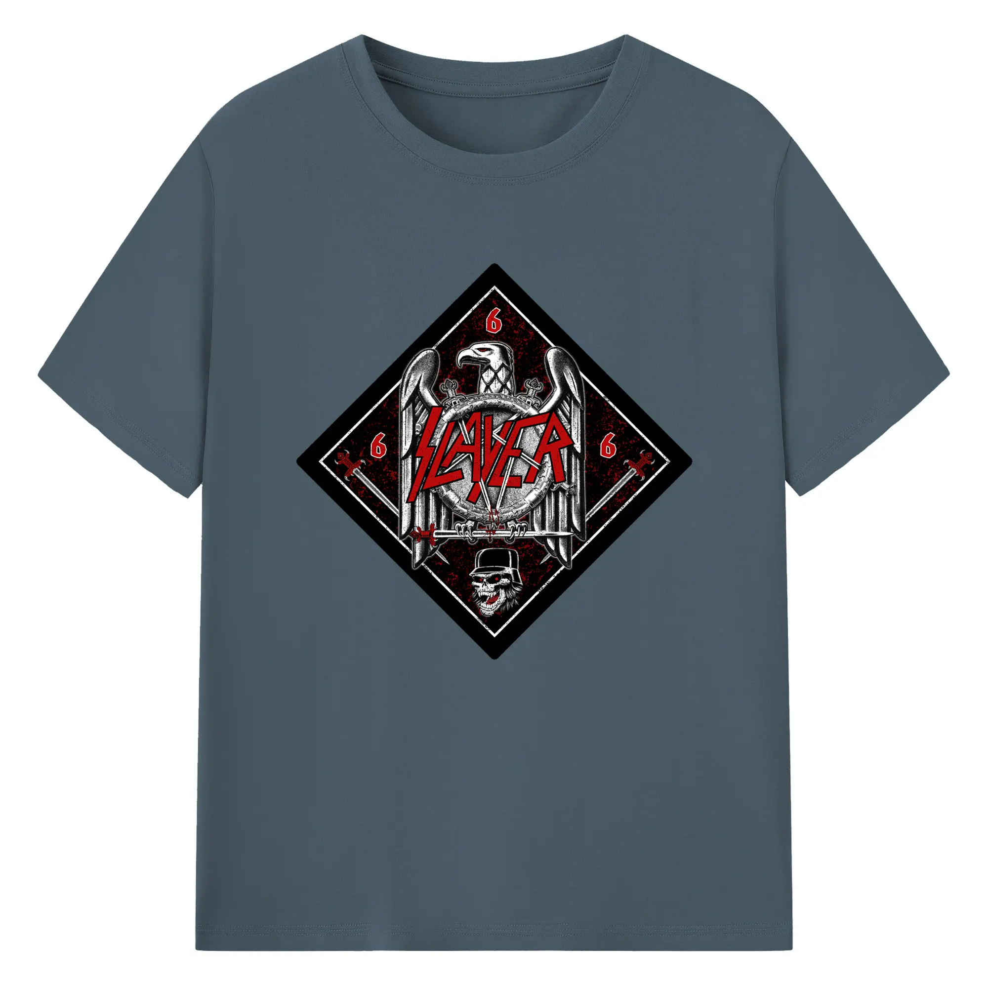 Slayer Thrash Metal Satanic Eagle DIY Shirt - 180g Cotton T-Shirt With Front Heat Transfer Print – Soft, Lightweight, Fitted Design – Comfortable Casual Wear For Sports & Everyday Use
