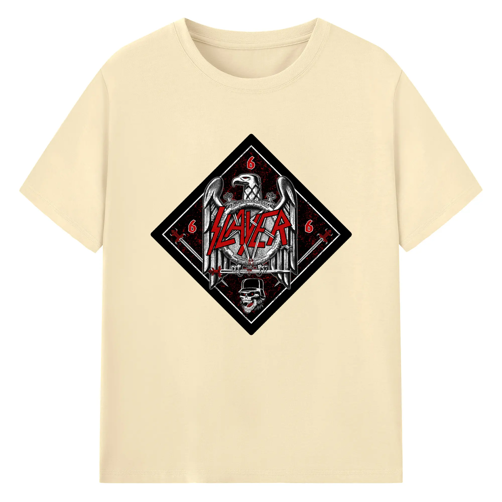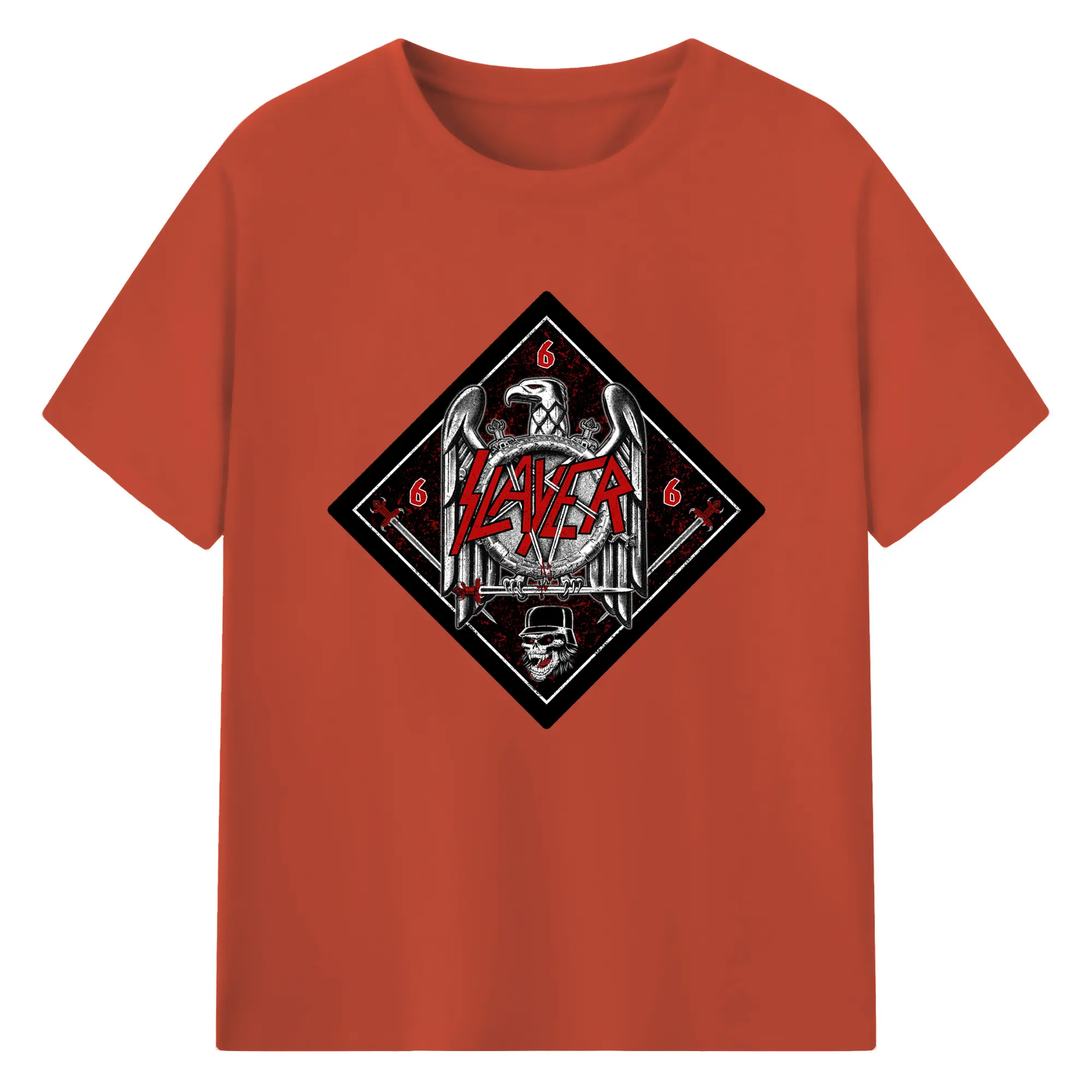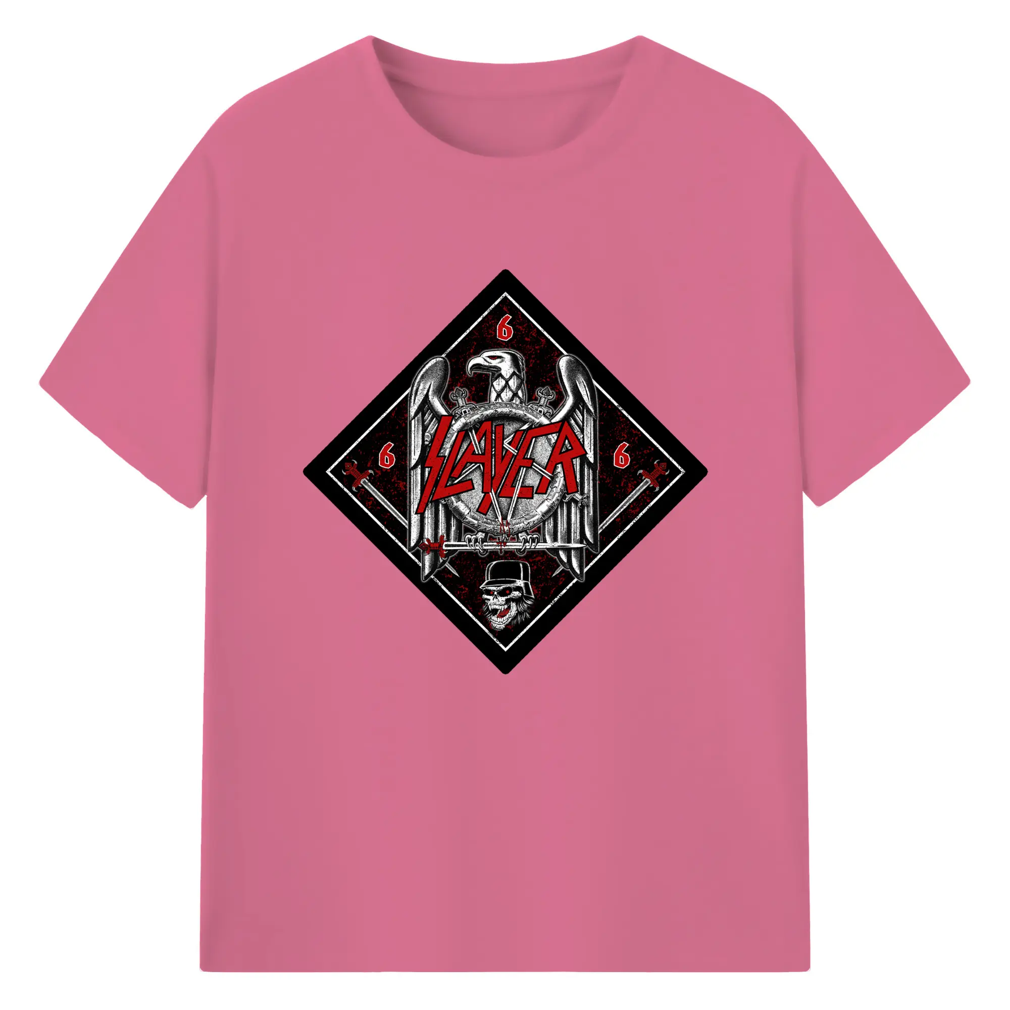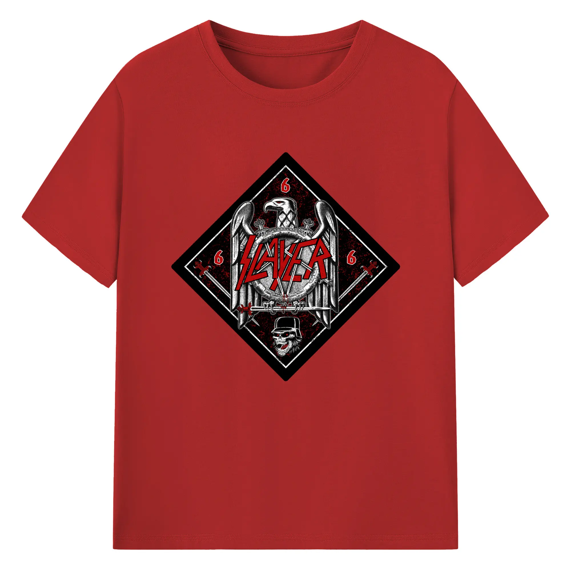 Slayer Thrash Metal Satanic Eagle DIY Shirt - 180g Cotton T-Shirt With Front Heat Transfer Print – Soft, Lightweight, Fitted Design – Comfortable Casual Wear For Sports & Everyday Use