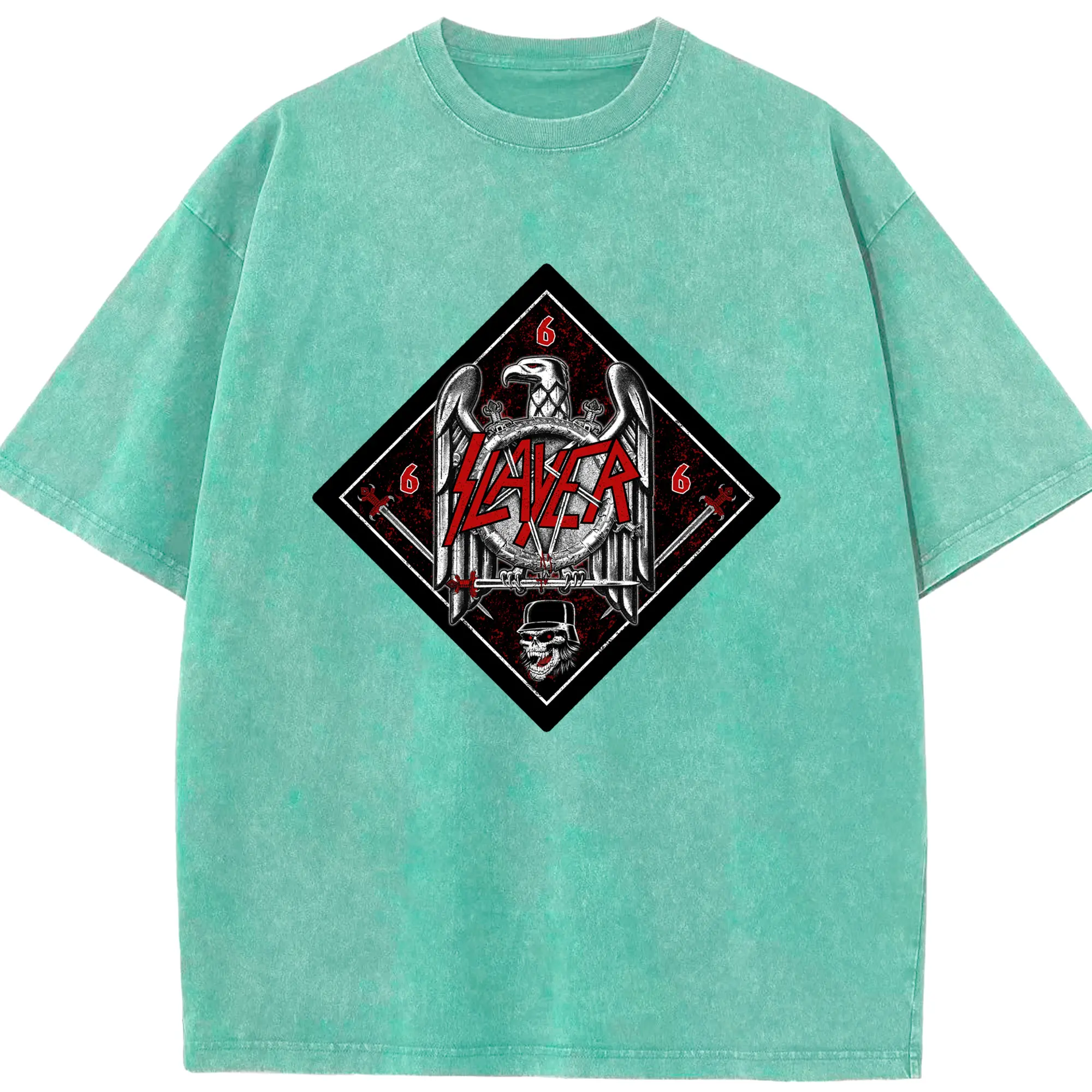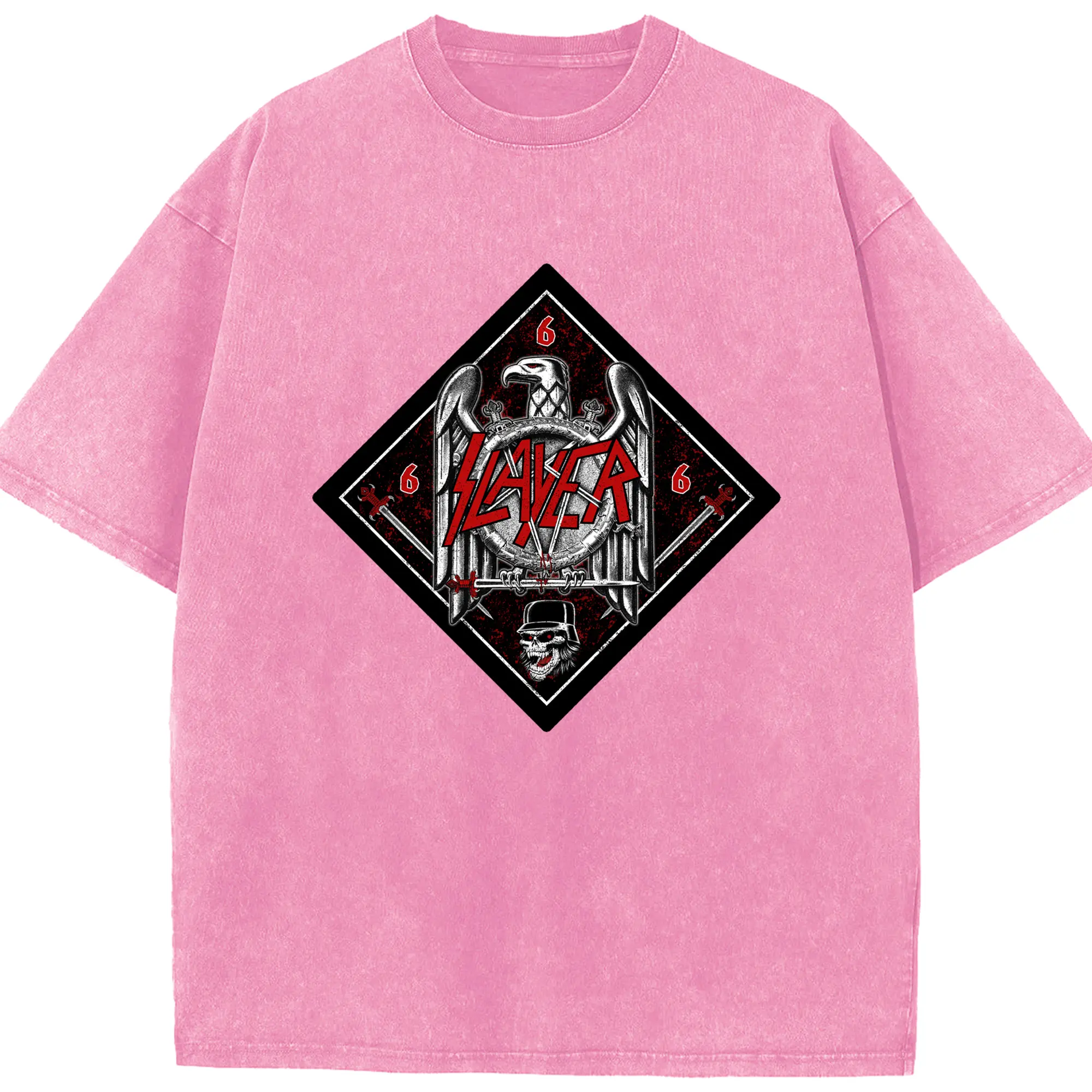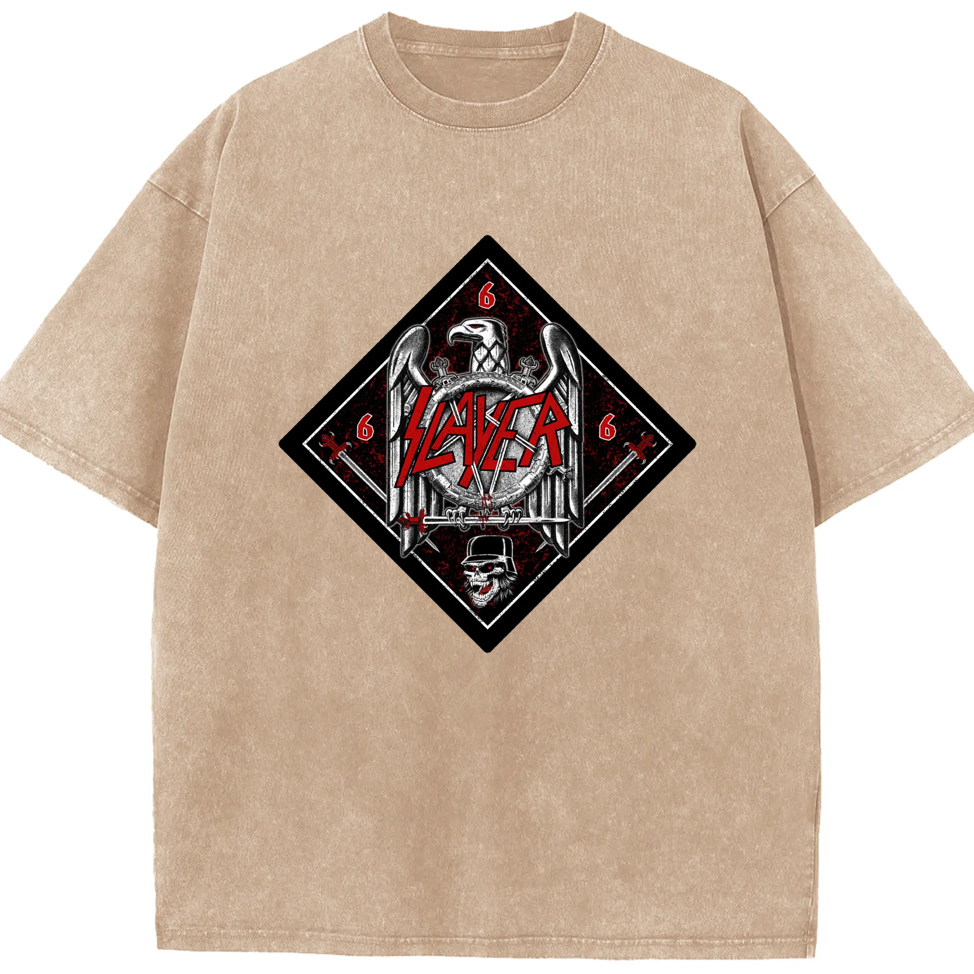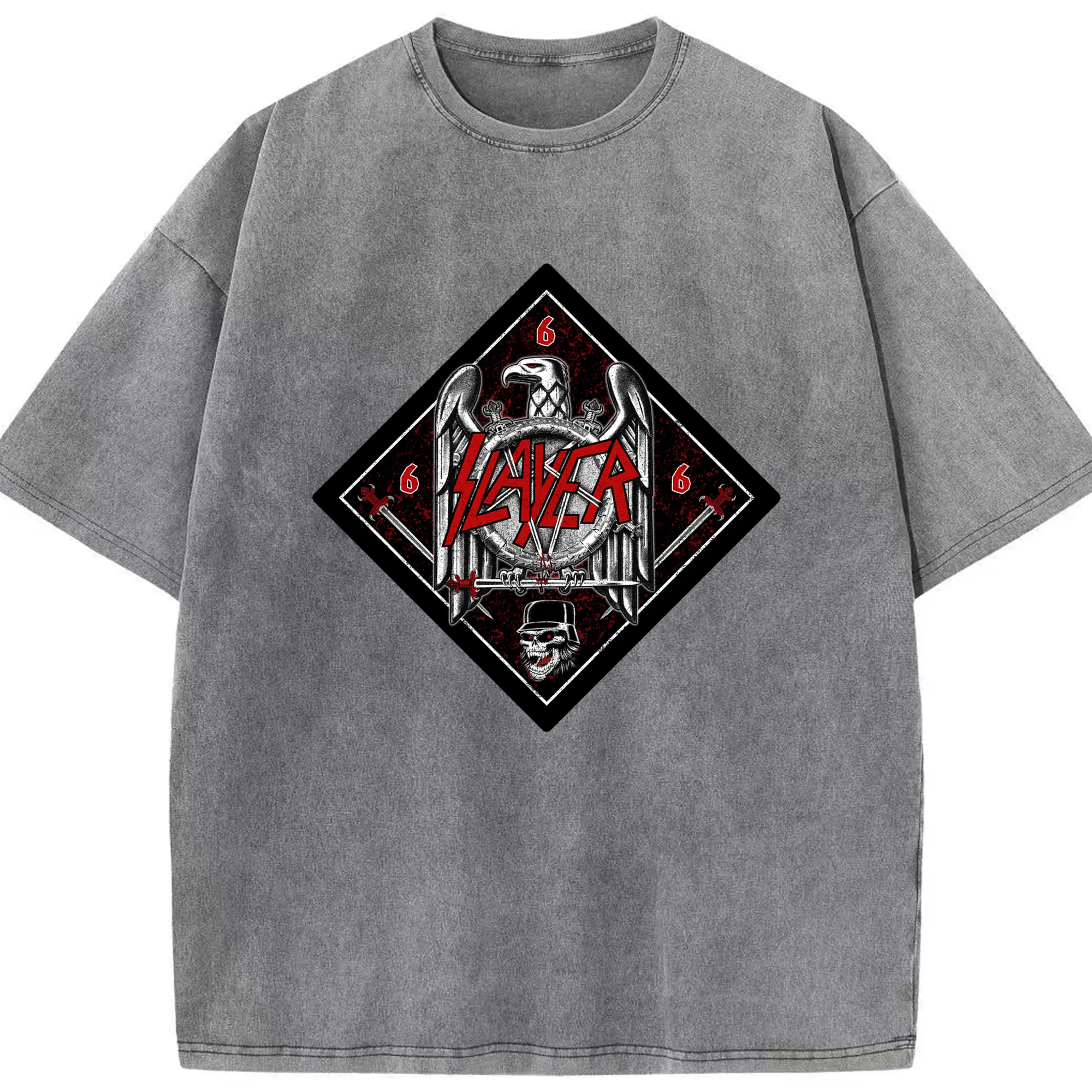 Slayer Thrash Metal Satanic Eagle DIY Shirt - Washed Vintage Look 230g Cotton Oversized T-Shirt With Front Heat Transfer Print – Soft, Lightweight, Stylish Fit – Comfortable Casual Wear For Sports & Everyday Use
