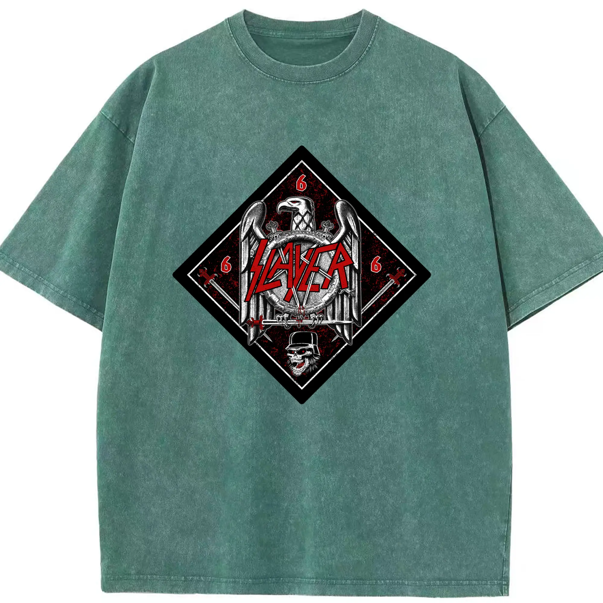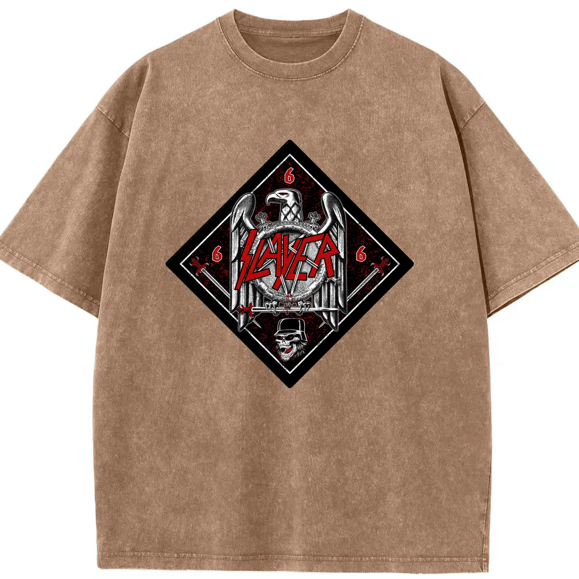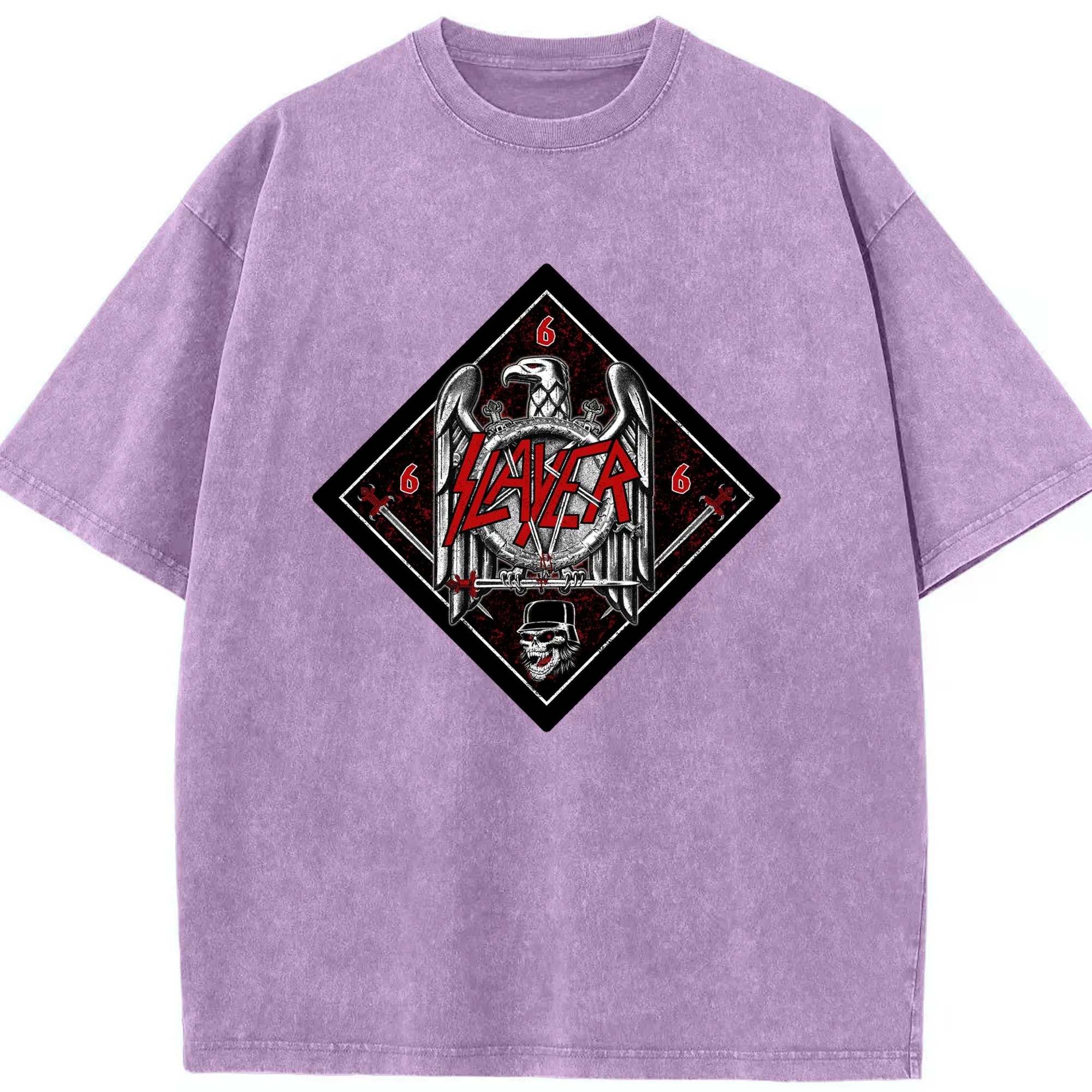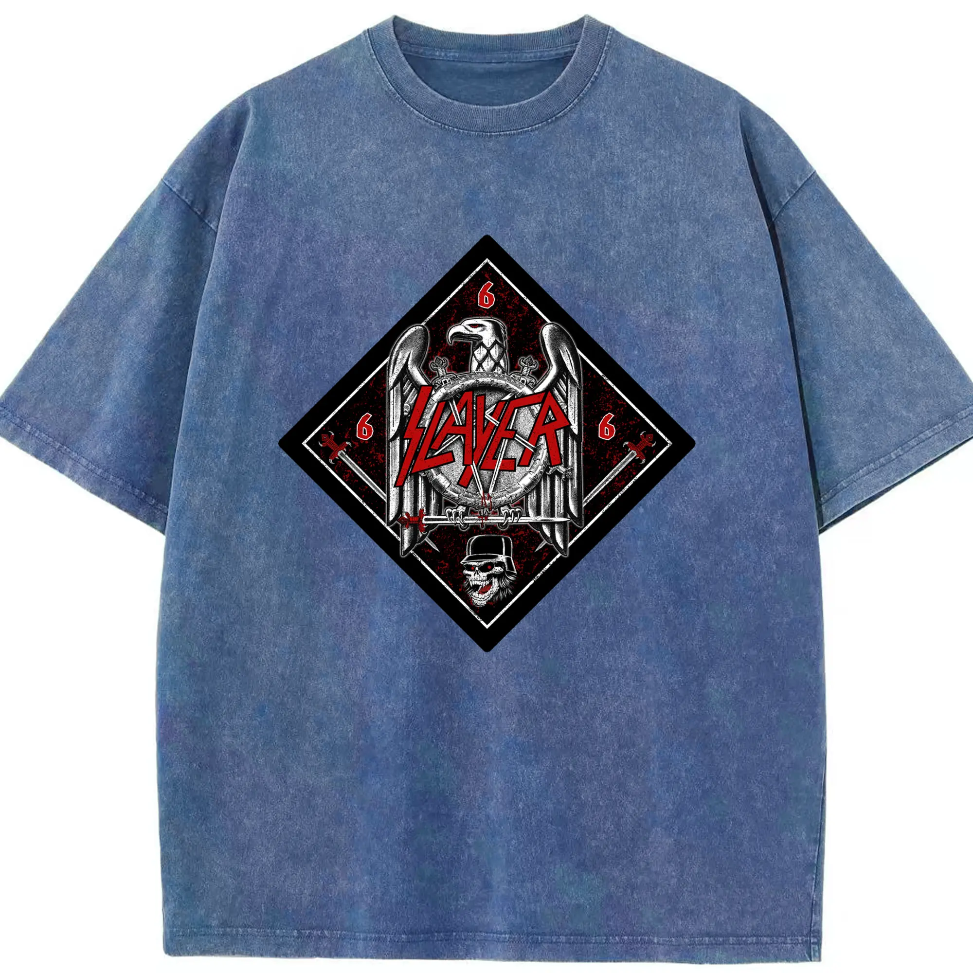 Slayer Thrash Metal Satanic Eagle DIY Shirt - Washed Vintage Look 230g Cotton Oversized T-Shirt With Front Heat Transfer Print – Soft, Lightweight, Stylish Fit – Comfortable Casual Wear For Sports & Everyday Use