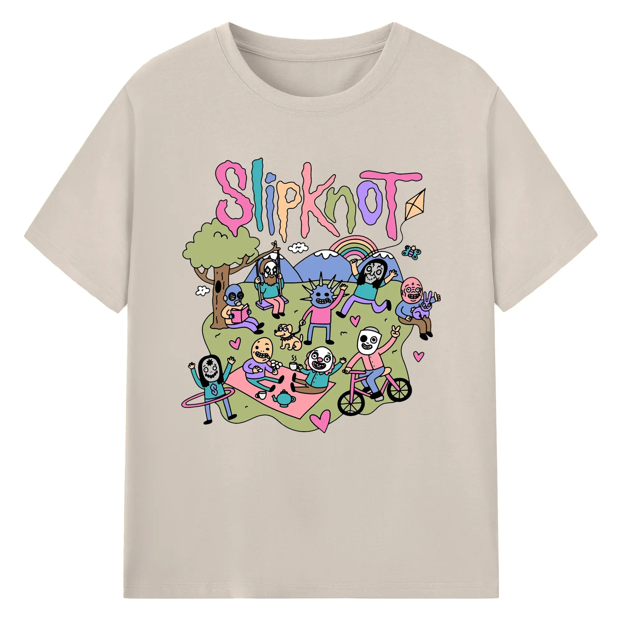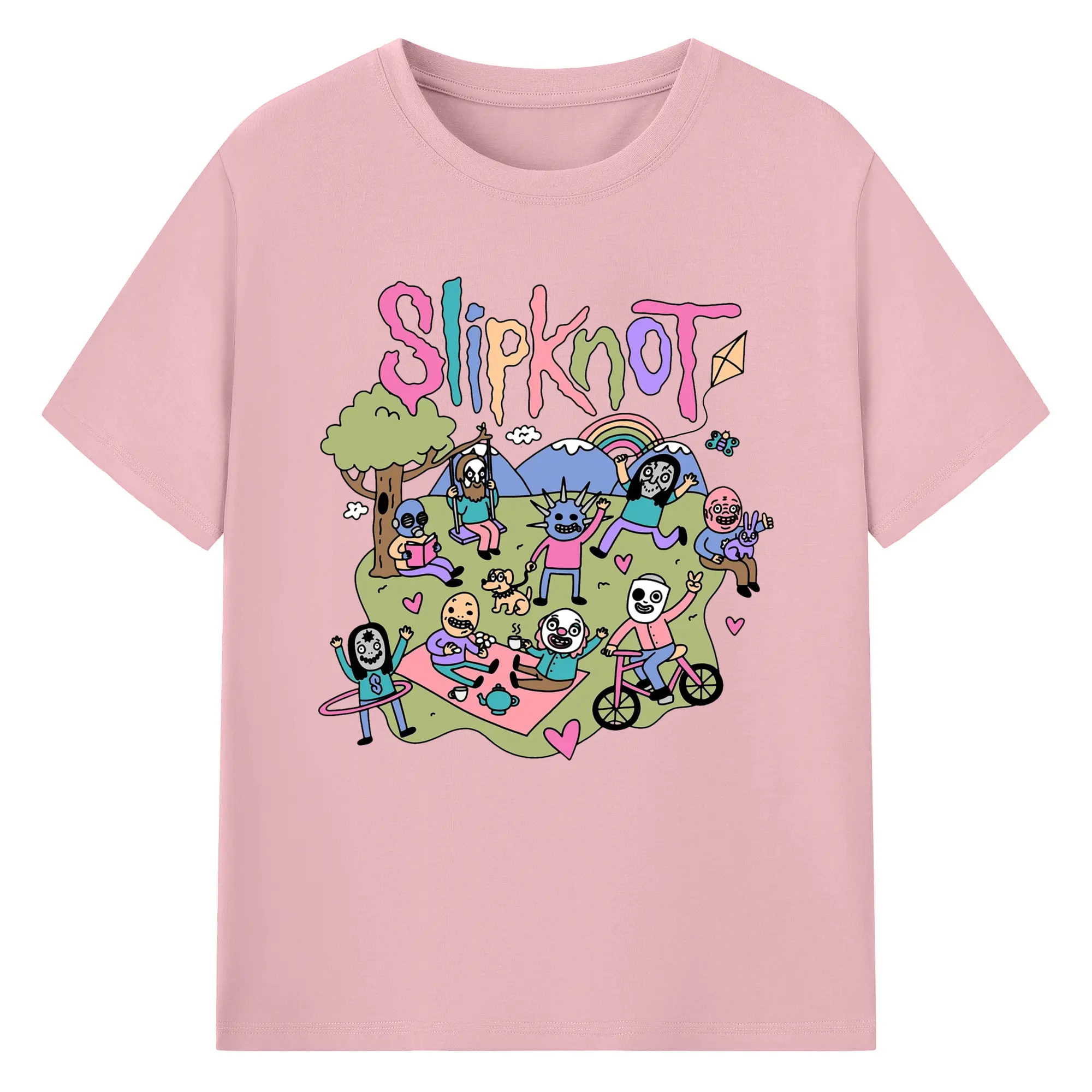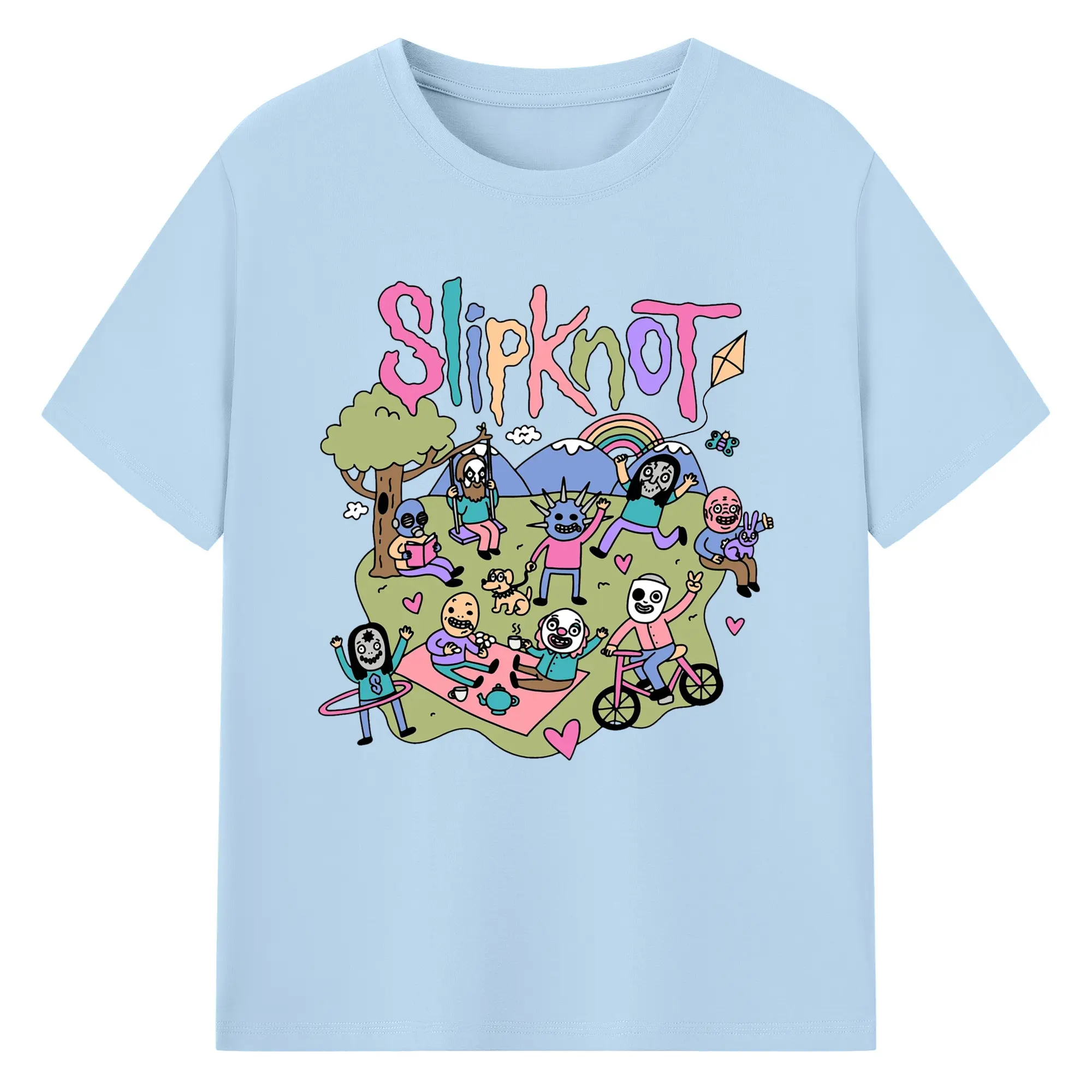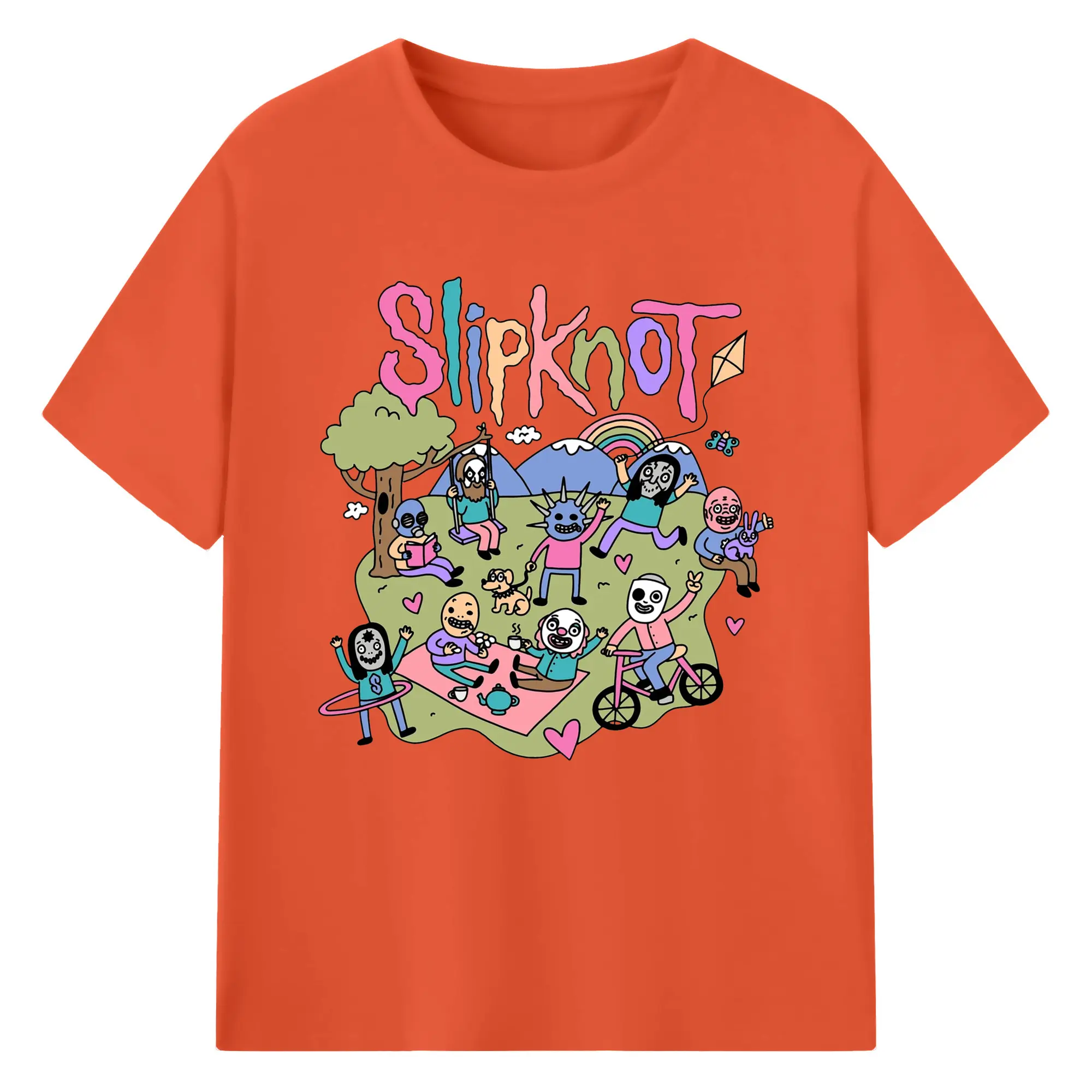 Slipknot Cute Cartoon DIY Shirt - 180g Cotton T-Shirt With Front Heat Transfer Print – Soft, Lightweight, Fitted Design – Comfortable Casual Wear For Sports & Everyday Use