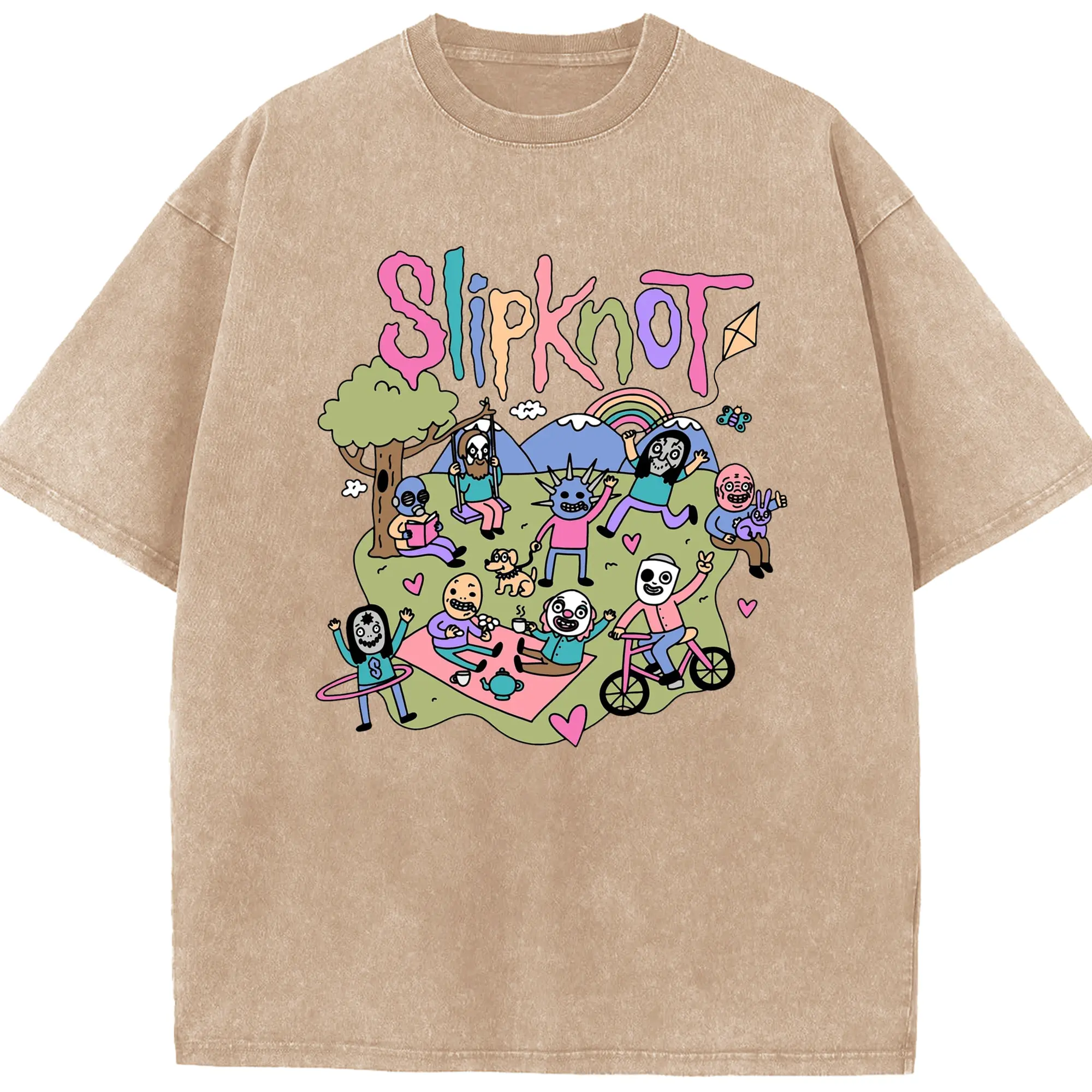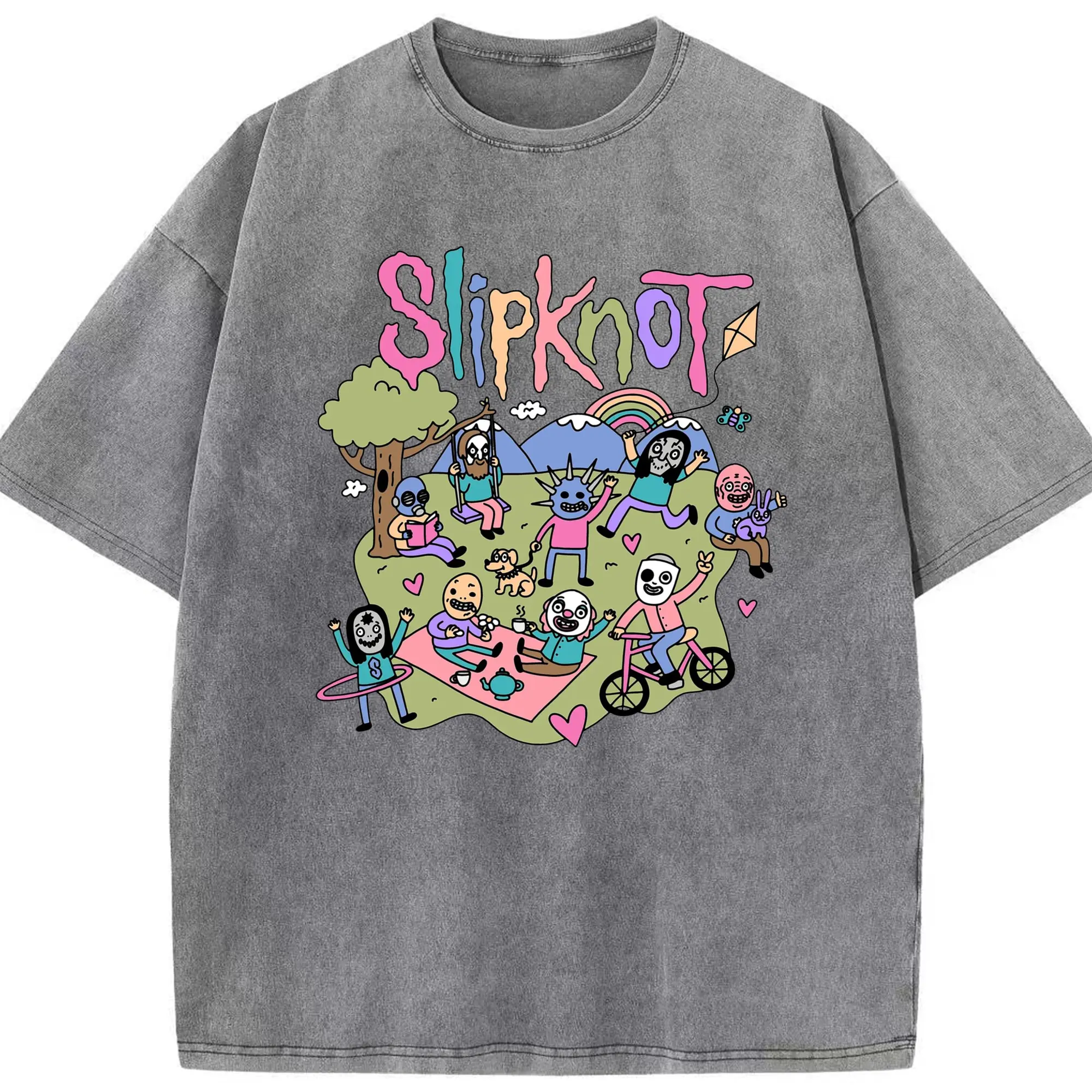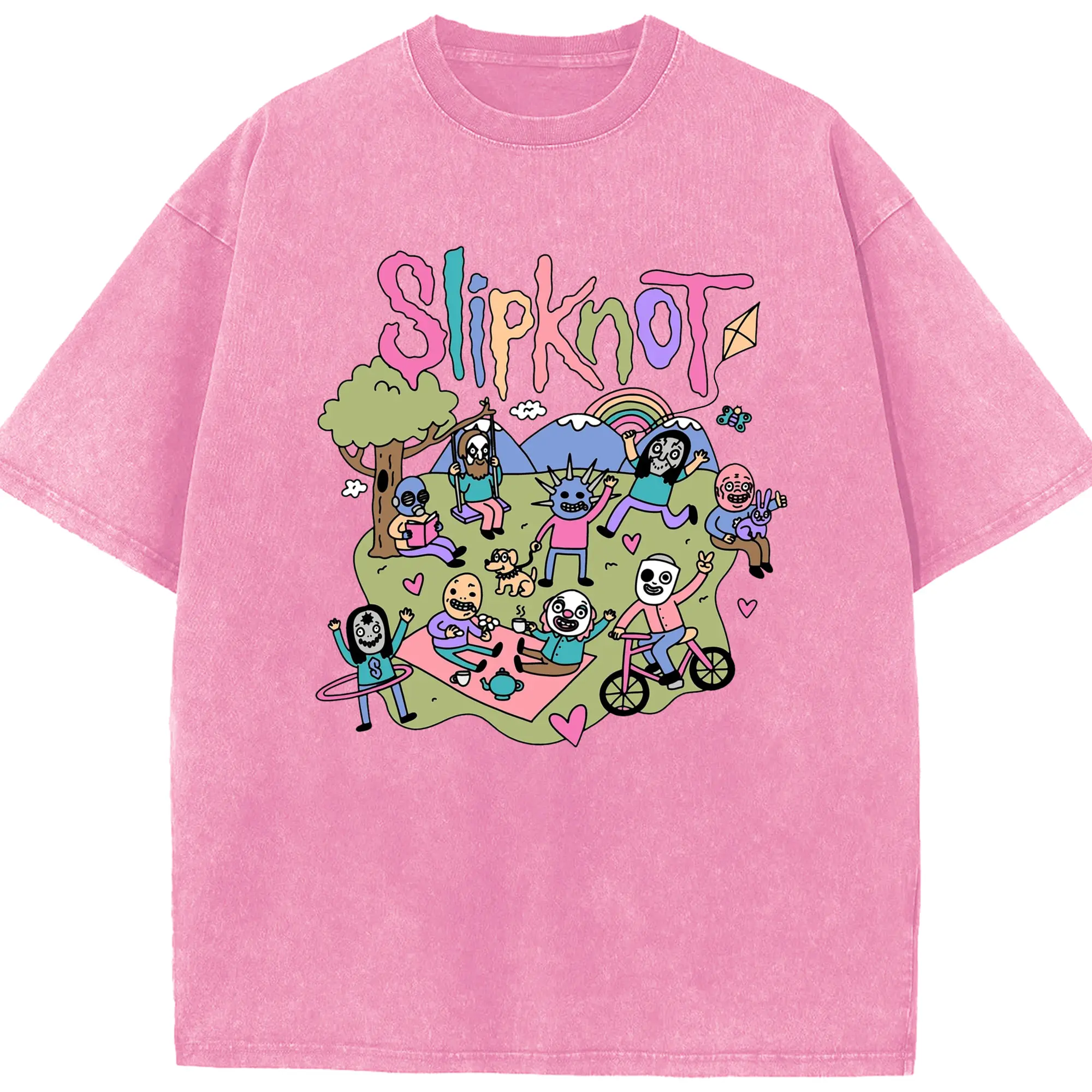 Slipknot Cute Cartoon DIY Shirt - Washed Vintage Look 230g Cotton Oversized T-Shirt With Front Heat Transfer Print – Soft, Lightweight, Stylish Fit – Comfortable Casual Wear For Sports & Everyday Use