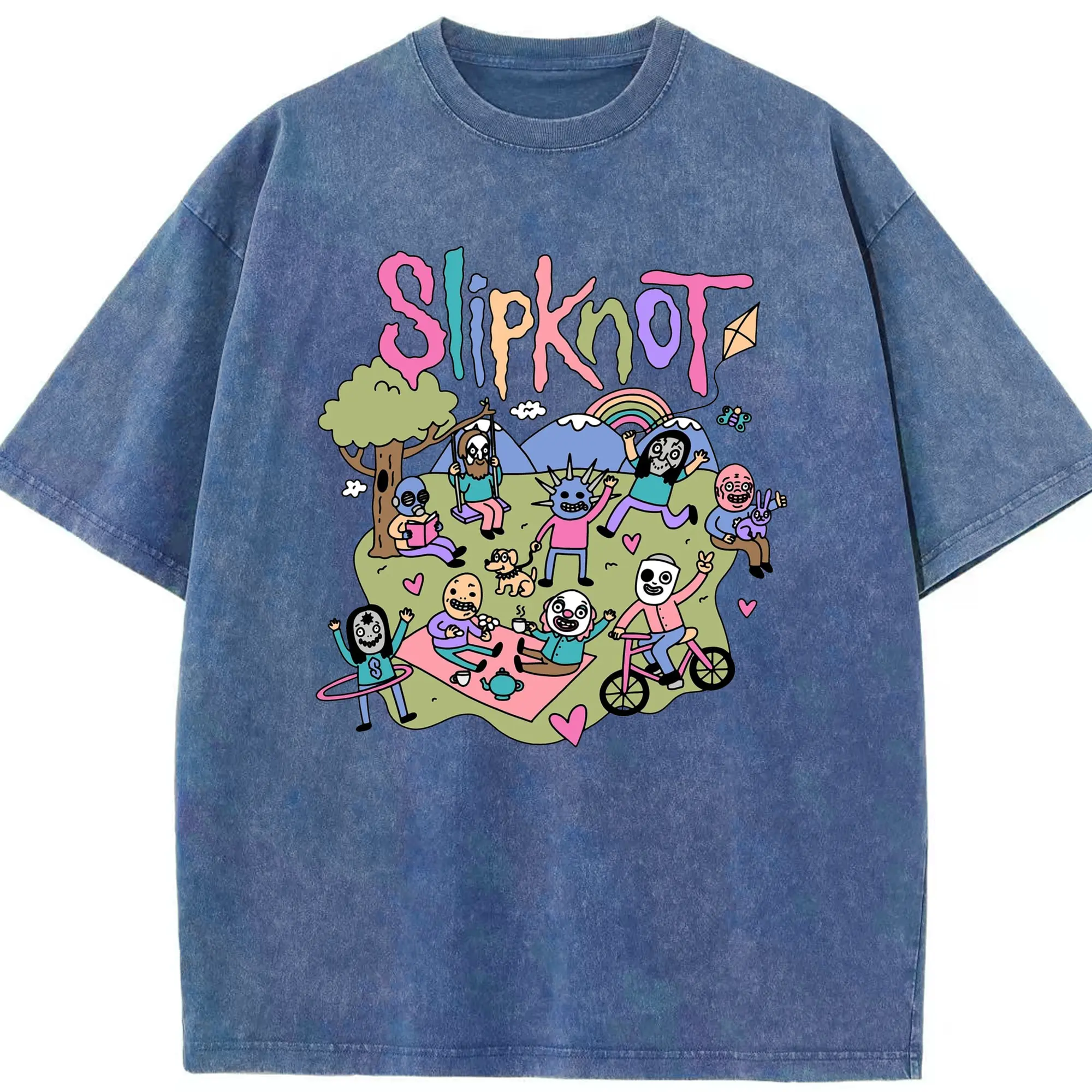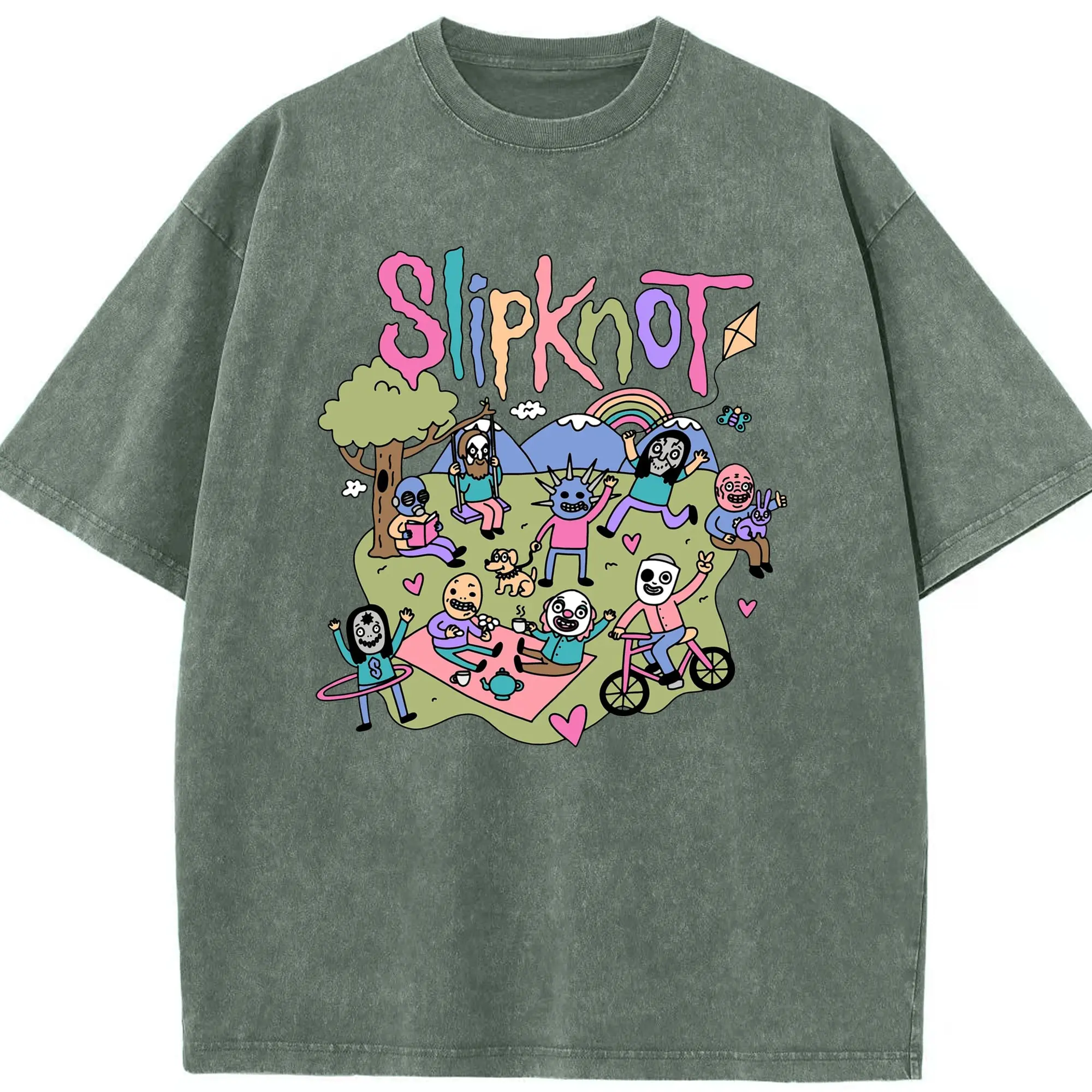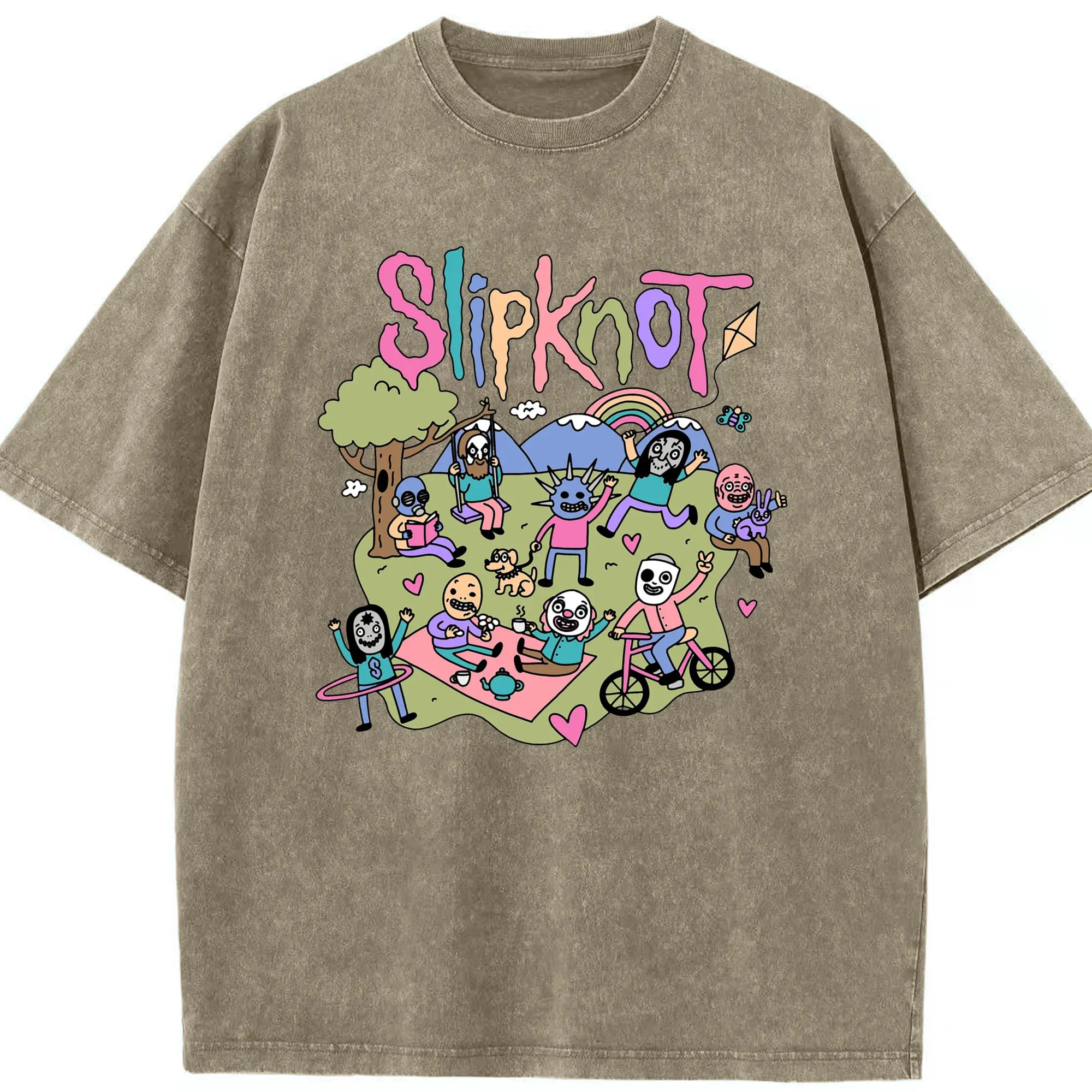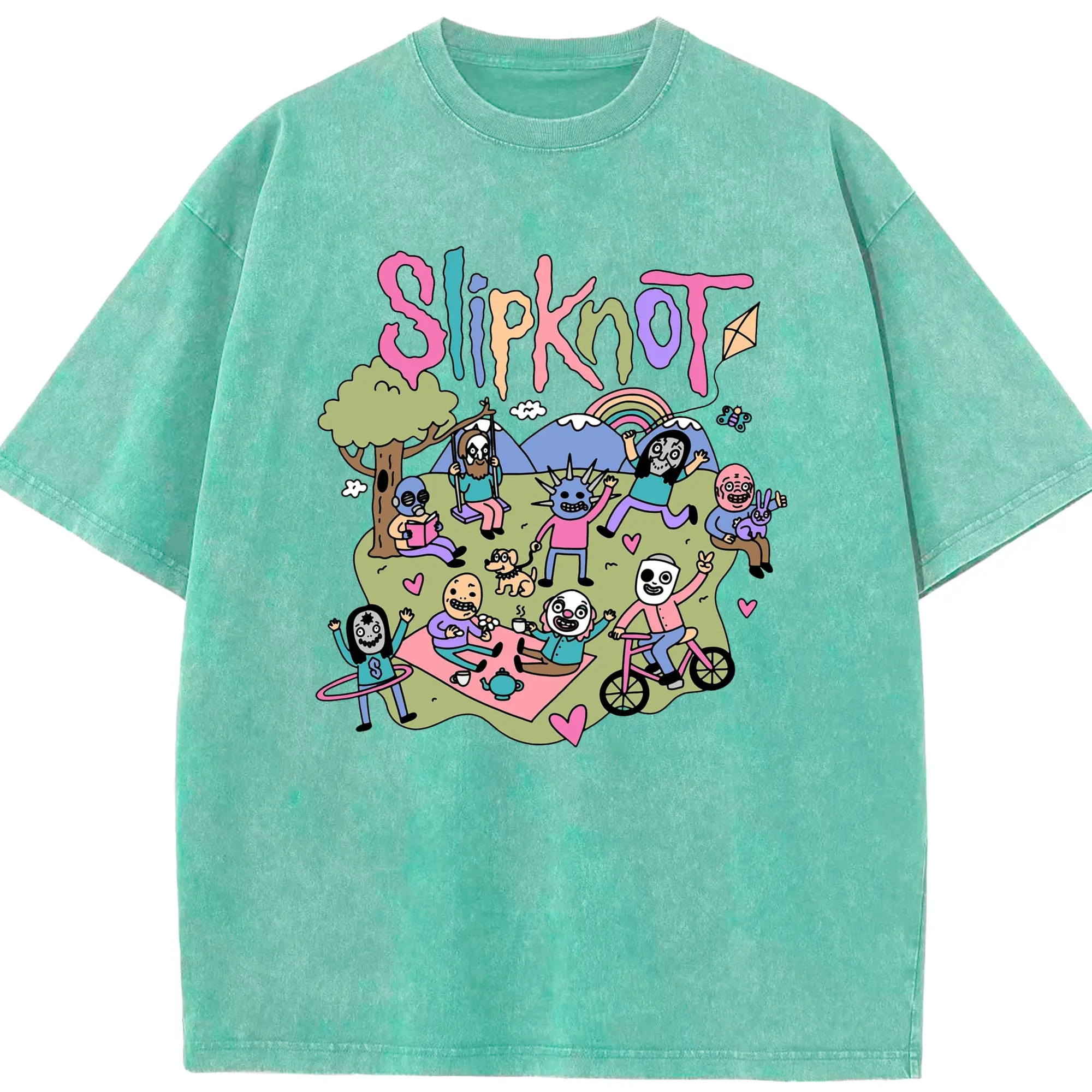 Slipknot Cute Cartoon DIY Shirt - Washed Vintage Look 230g Cotton Oversized T-Shirt With Front Heat Transfer Print – Soft, Lightweight, Stylish Fit – Comfortable Casual Wear For Sports & Everyday Use