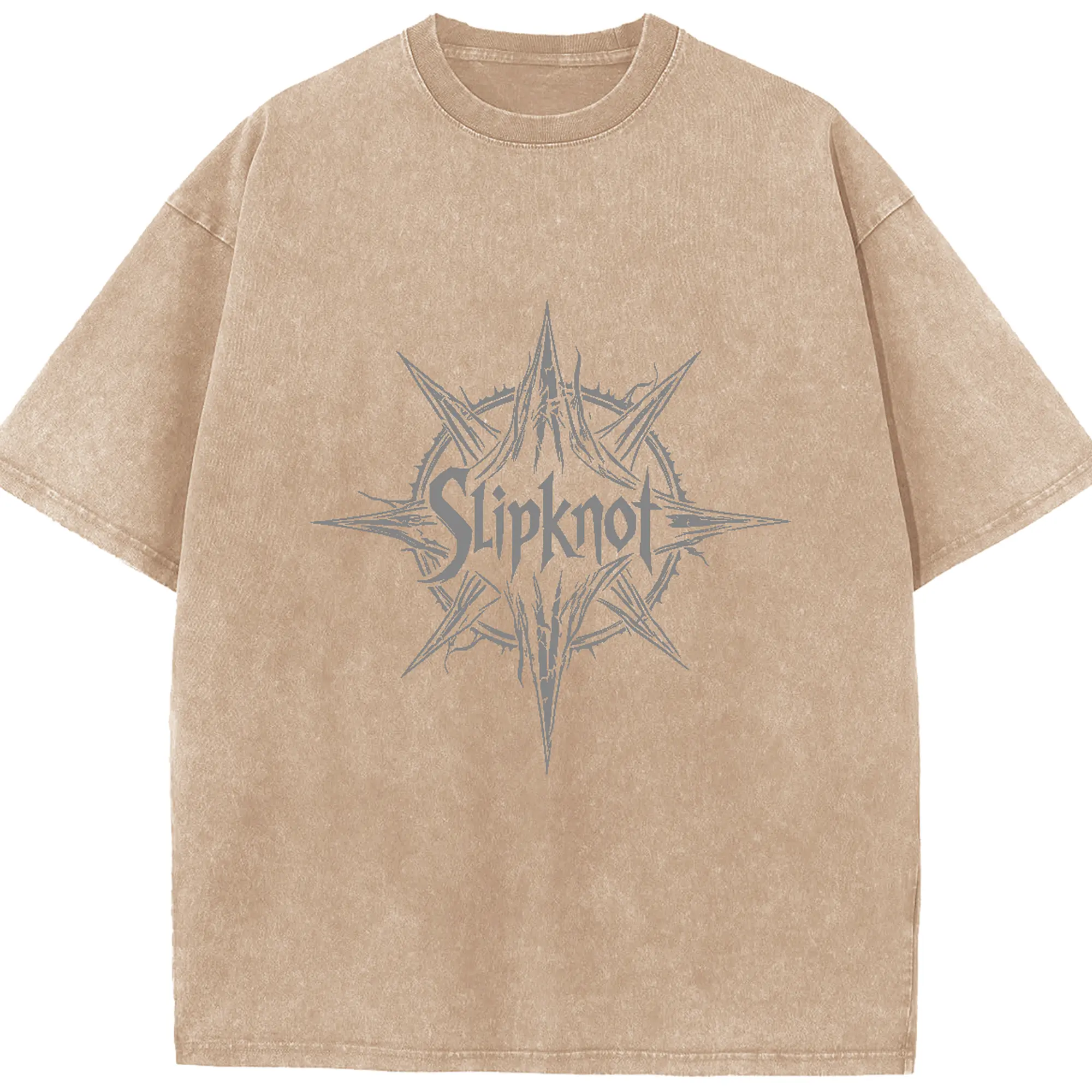 Slipknot Star Logo DIY Shirt - Washed Vintage Look 230g Cotton Oversized T-Shirt With Front Heat Transfer Print – Soft, Lightweight, Stylish Fit – Comfortable Casual Wear For Sports & Everyday Use