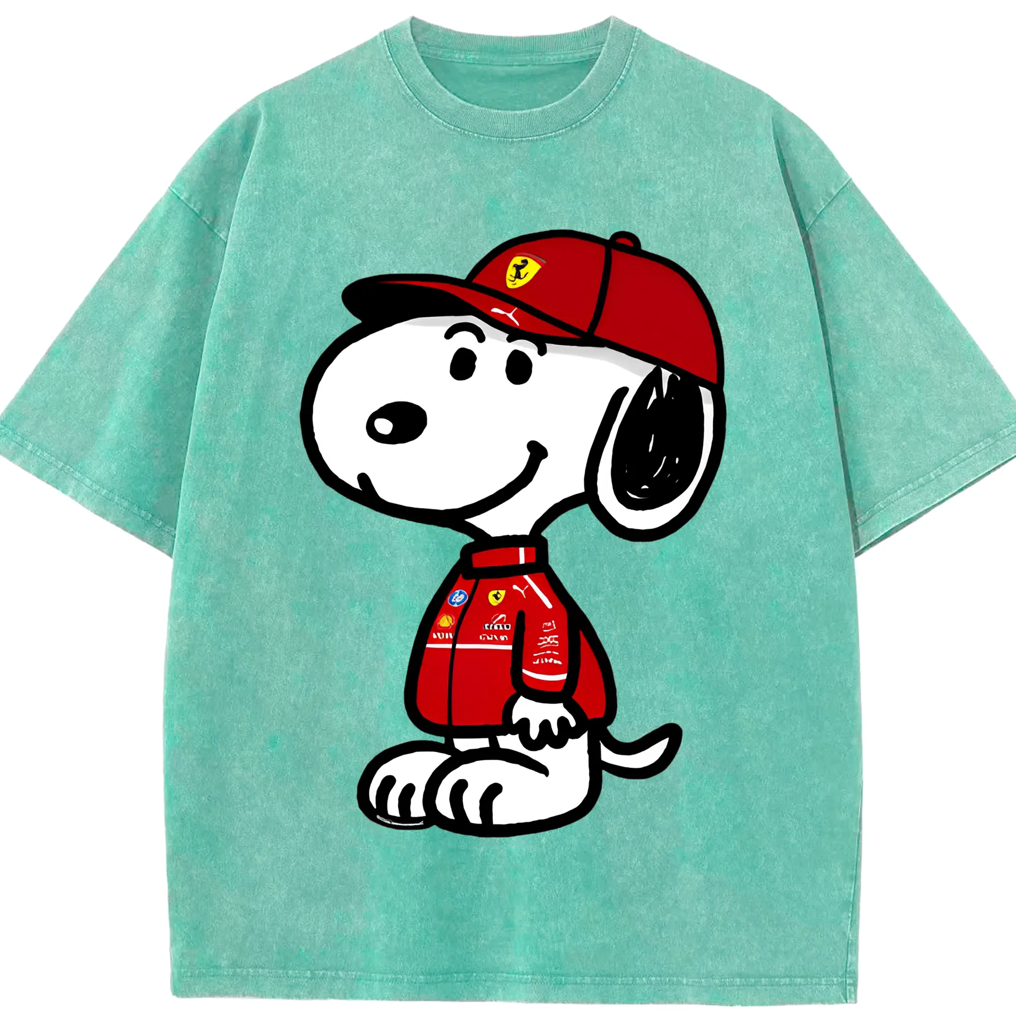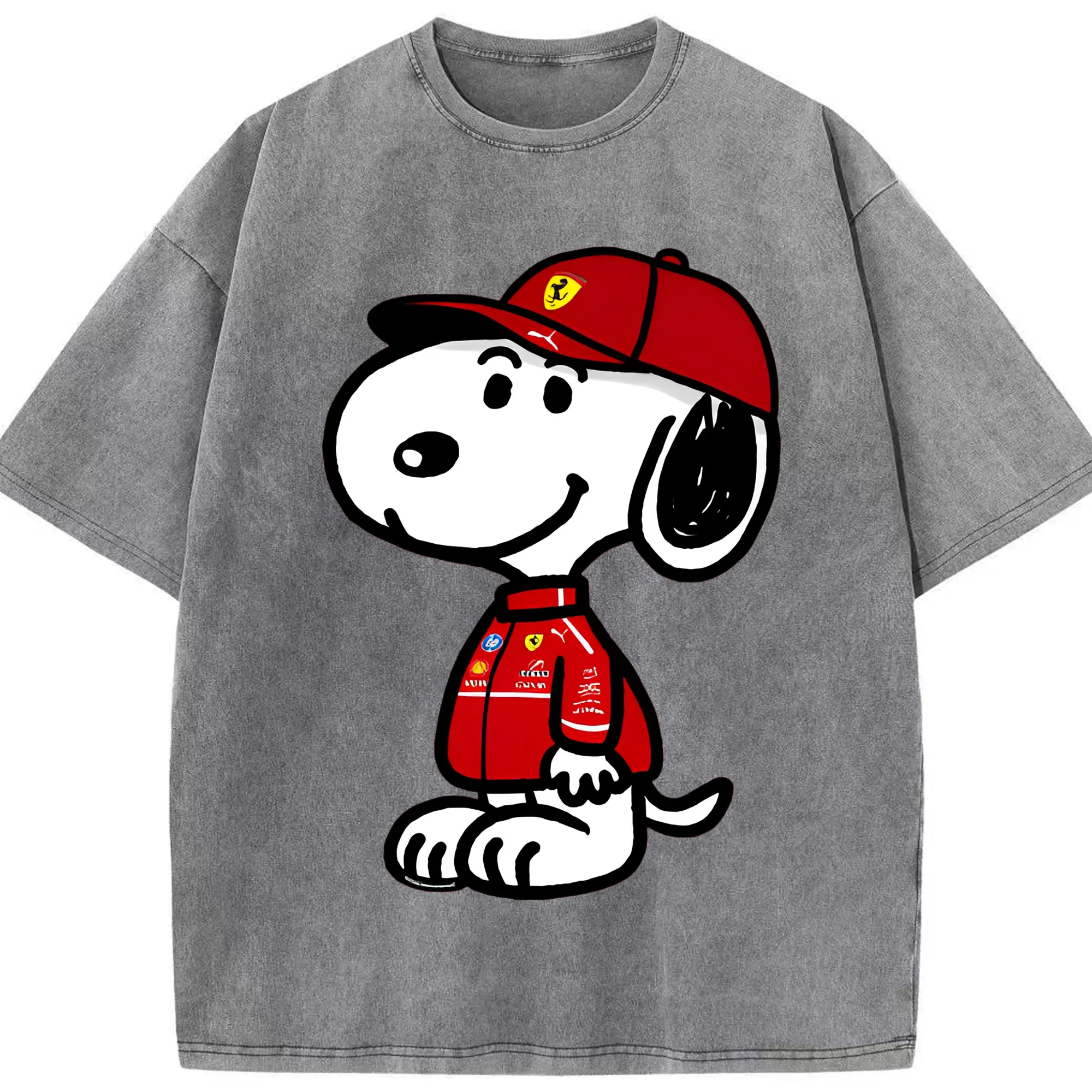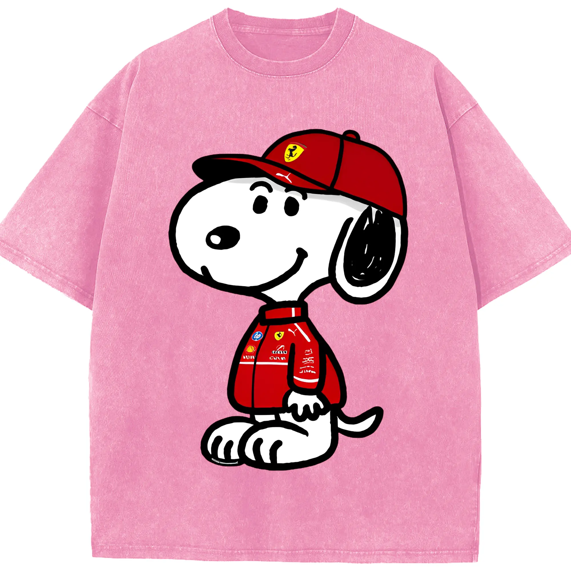 Snoopy Ferrari F1 Team DIY - Washed Vintage Look 230g Cotton Oversized T-Shirt With Front Heat Transfer Print – Soft, Lightweight, Stylish Fit – Comfortable Casual Wear For Sports & Everyday Use