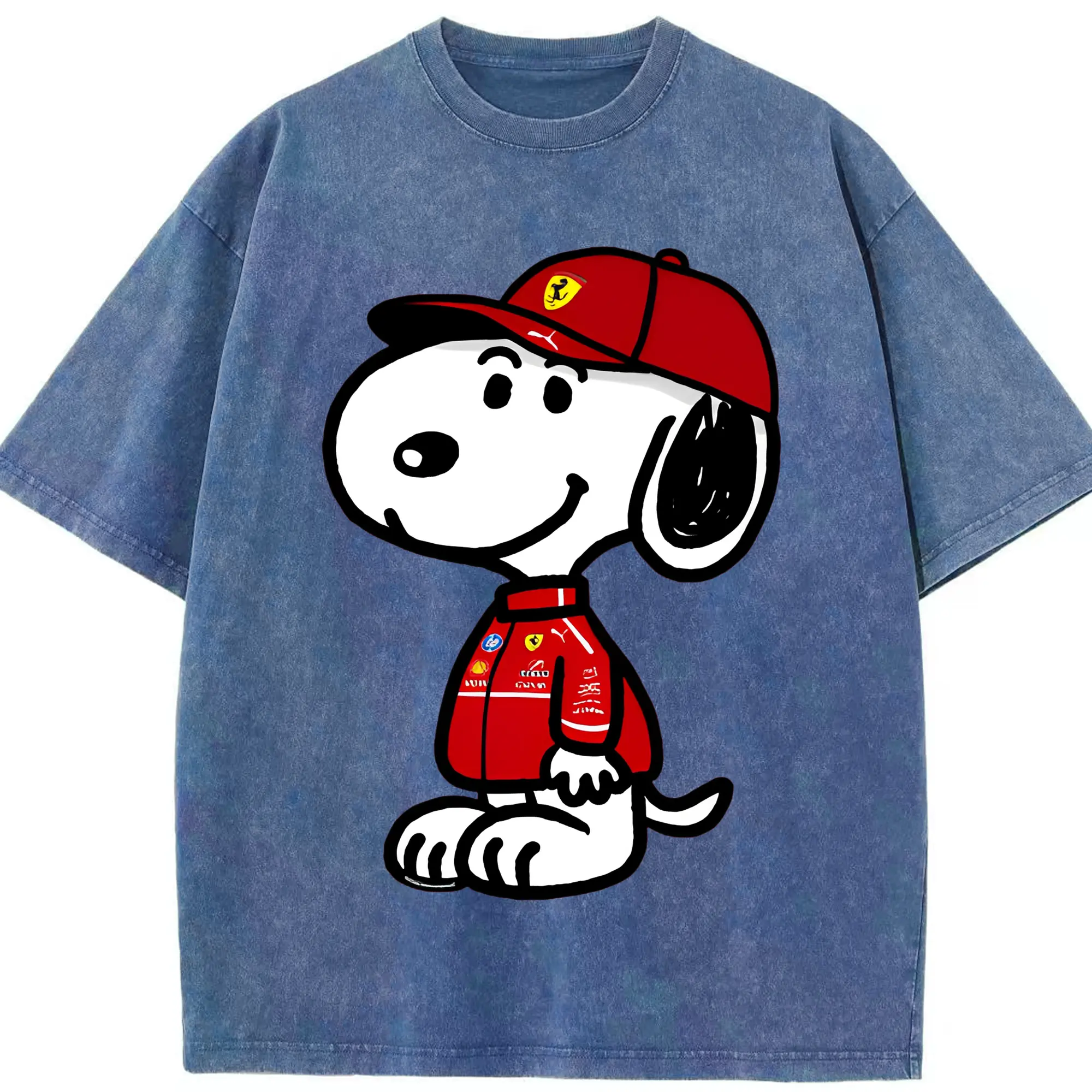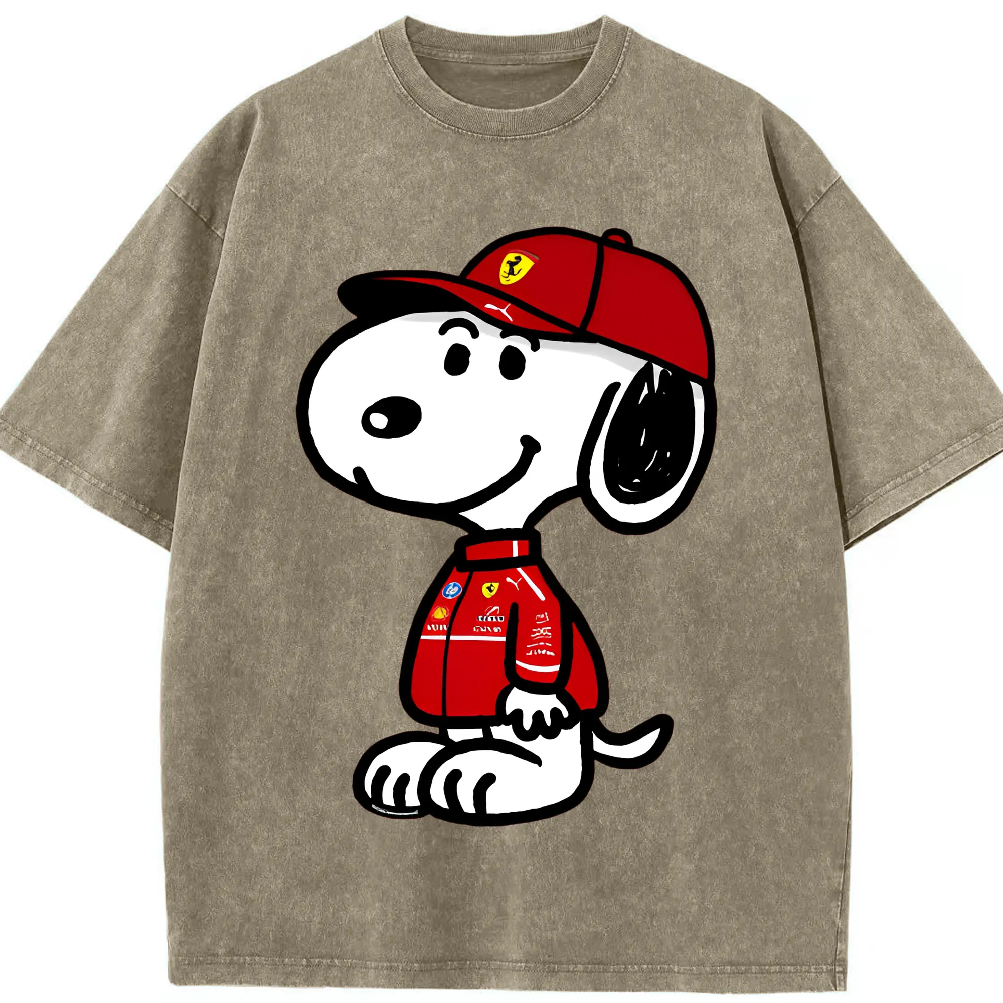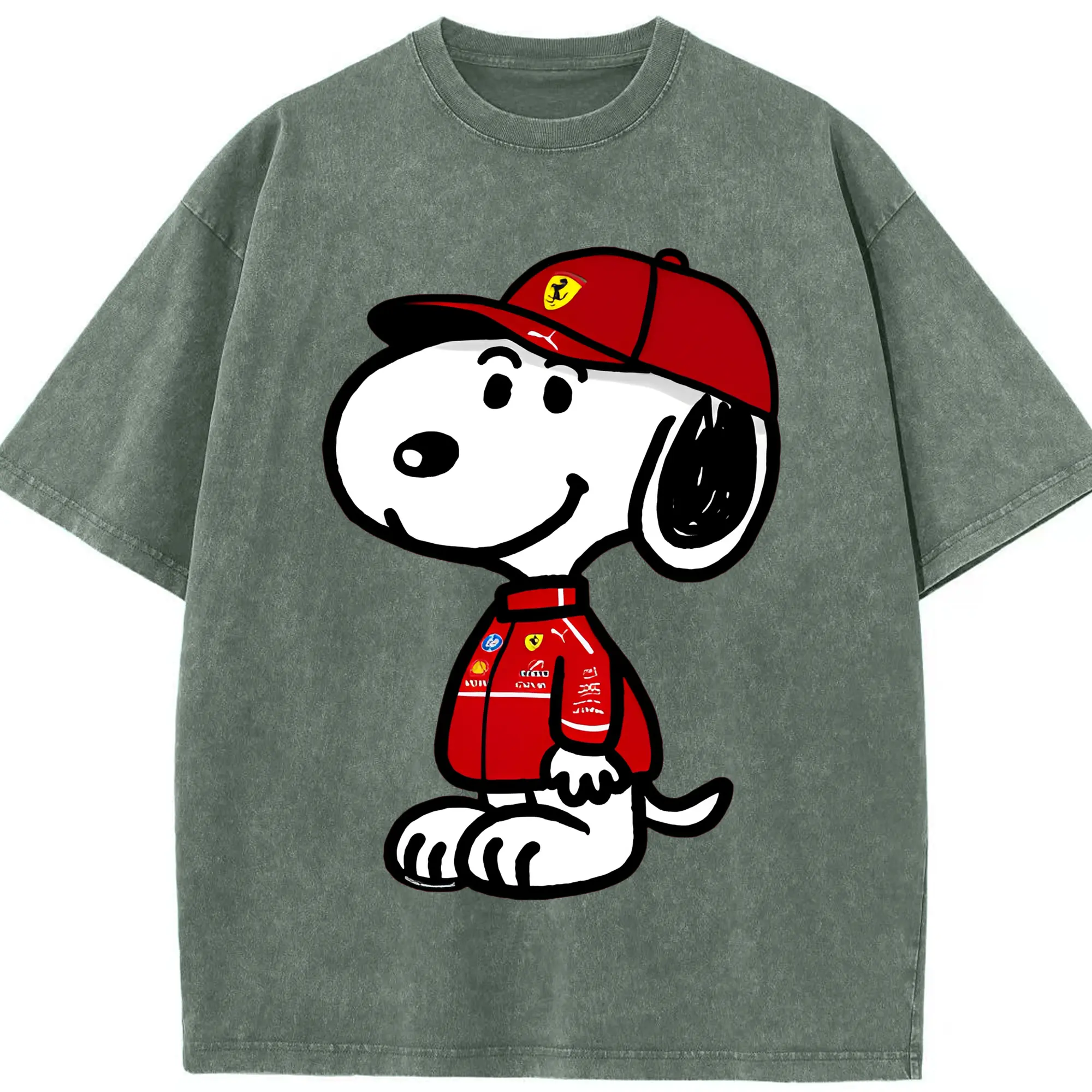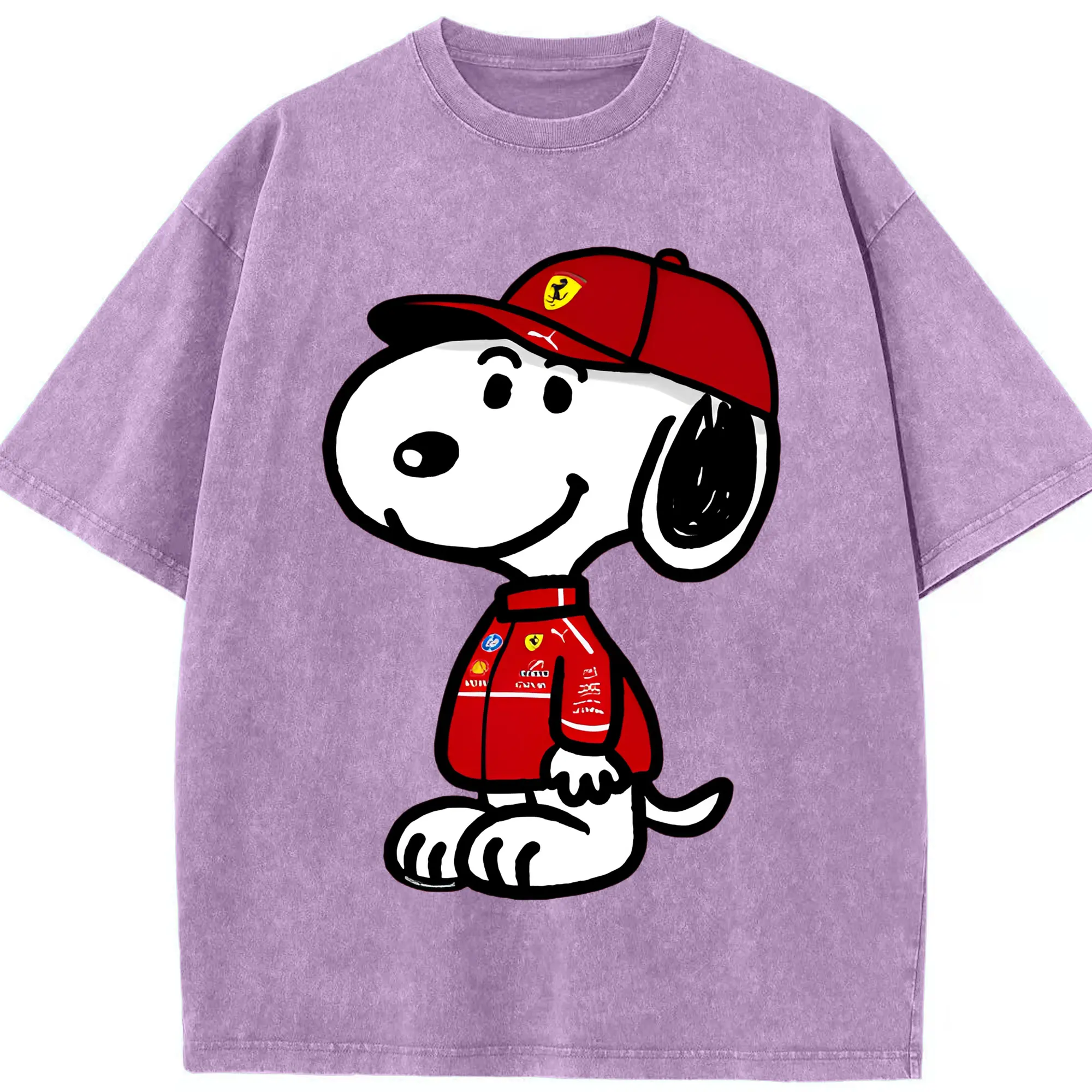 Snoopy Ferrari F1 Team DIY - Washed Vintage Look 230g Cotton Oversized T-Shirt With Front Heat Transfer Print – Soft, Lightweight, Stylish Fit – Comfortable Casual Wear For Sports & Everyday Use