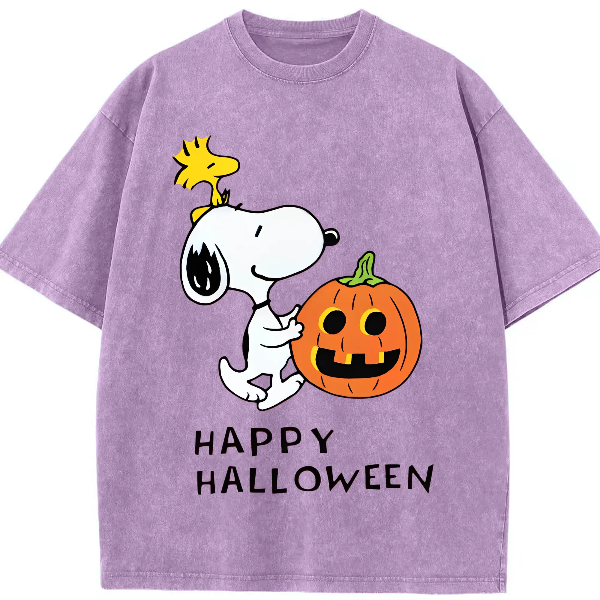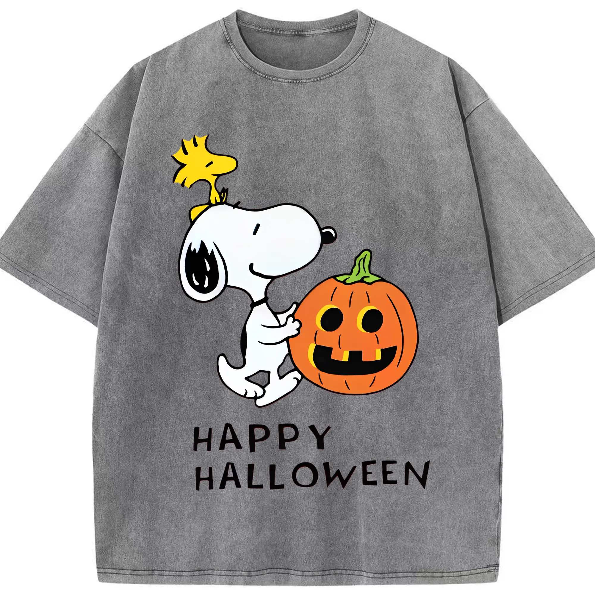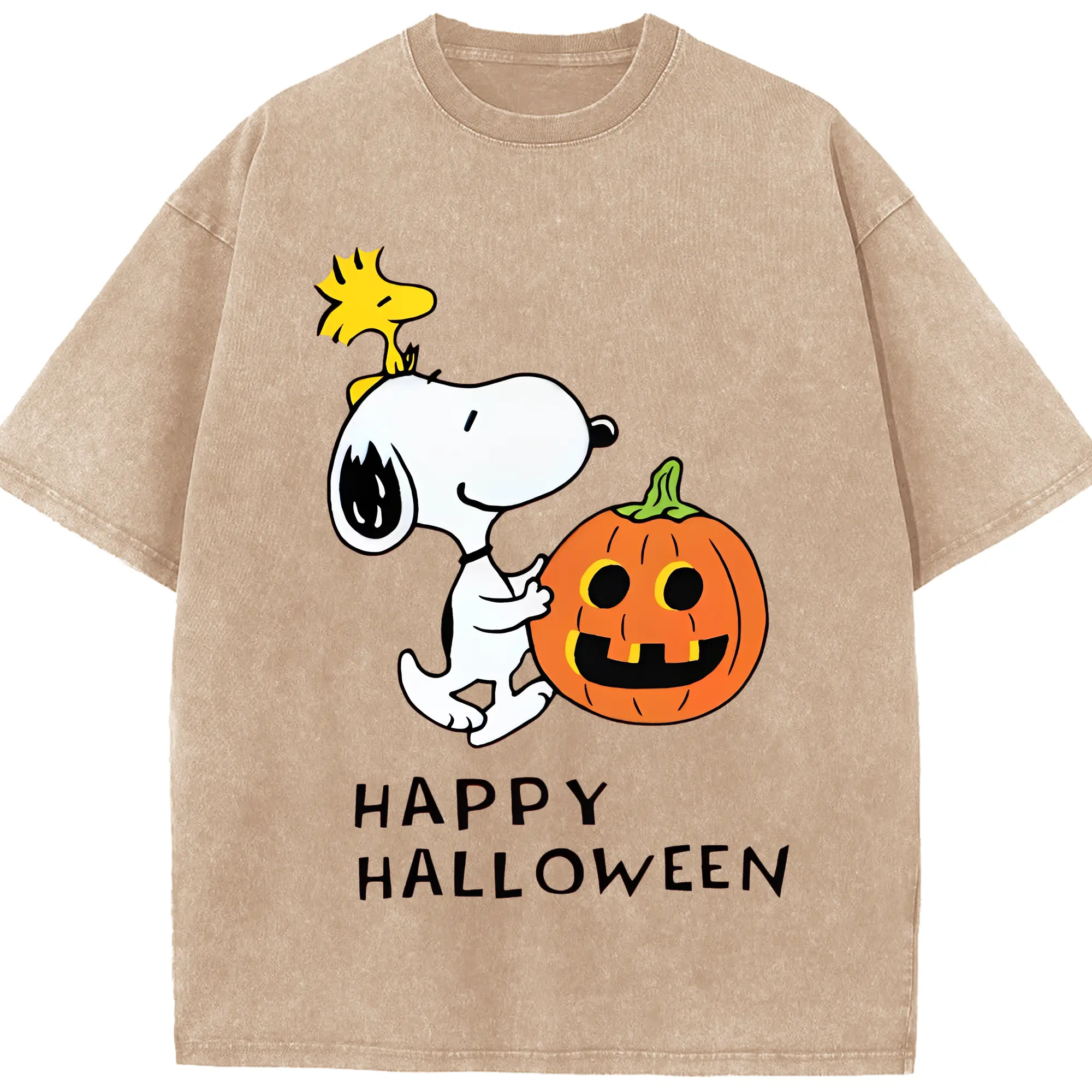 Snoopy Halloween Pumpkin DIY - Washed Vintage Look 230g Cotton Oversized T-Shirt With Front Heat Transfer Print – Soft, Lightweight, Stylish Fit – Comfortable Casual Wear For Sports & Everyday Use