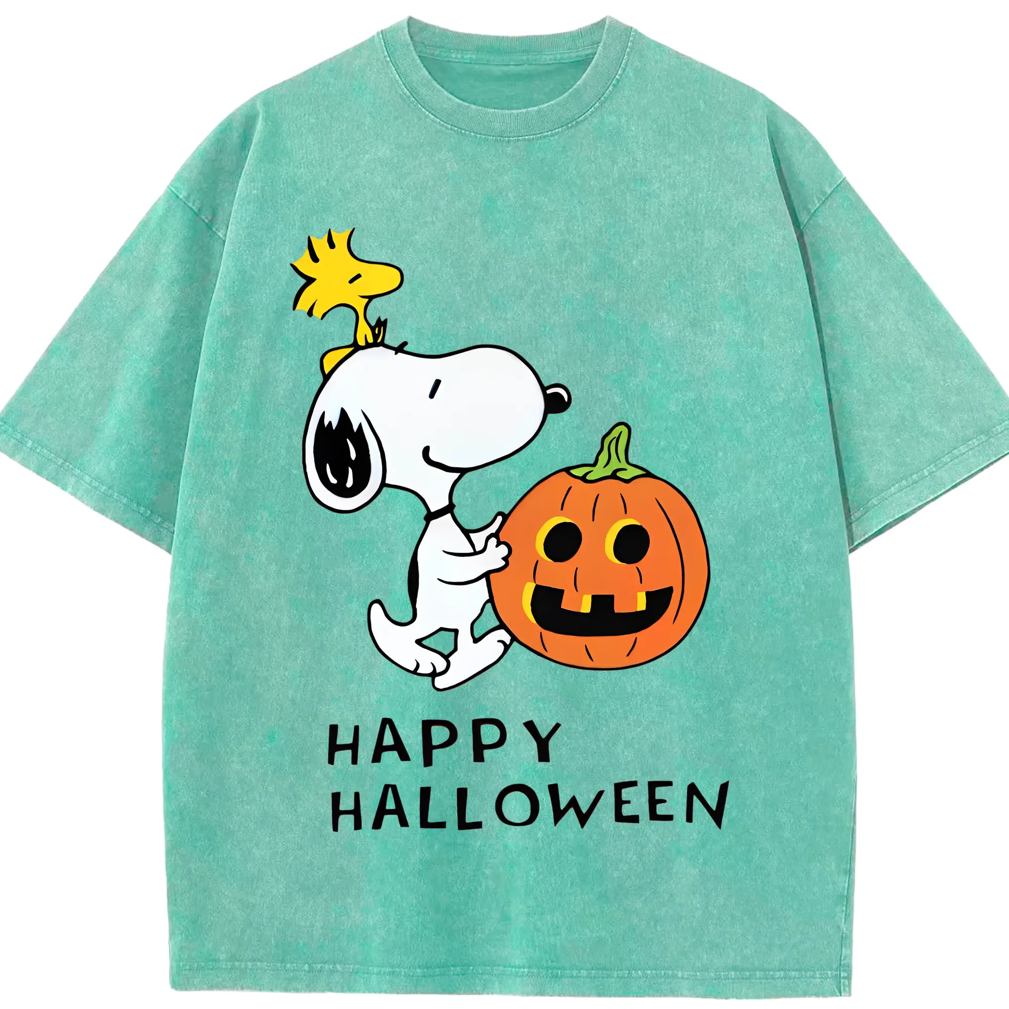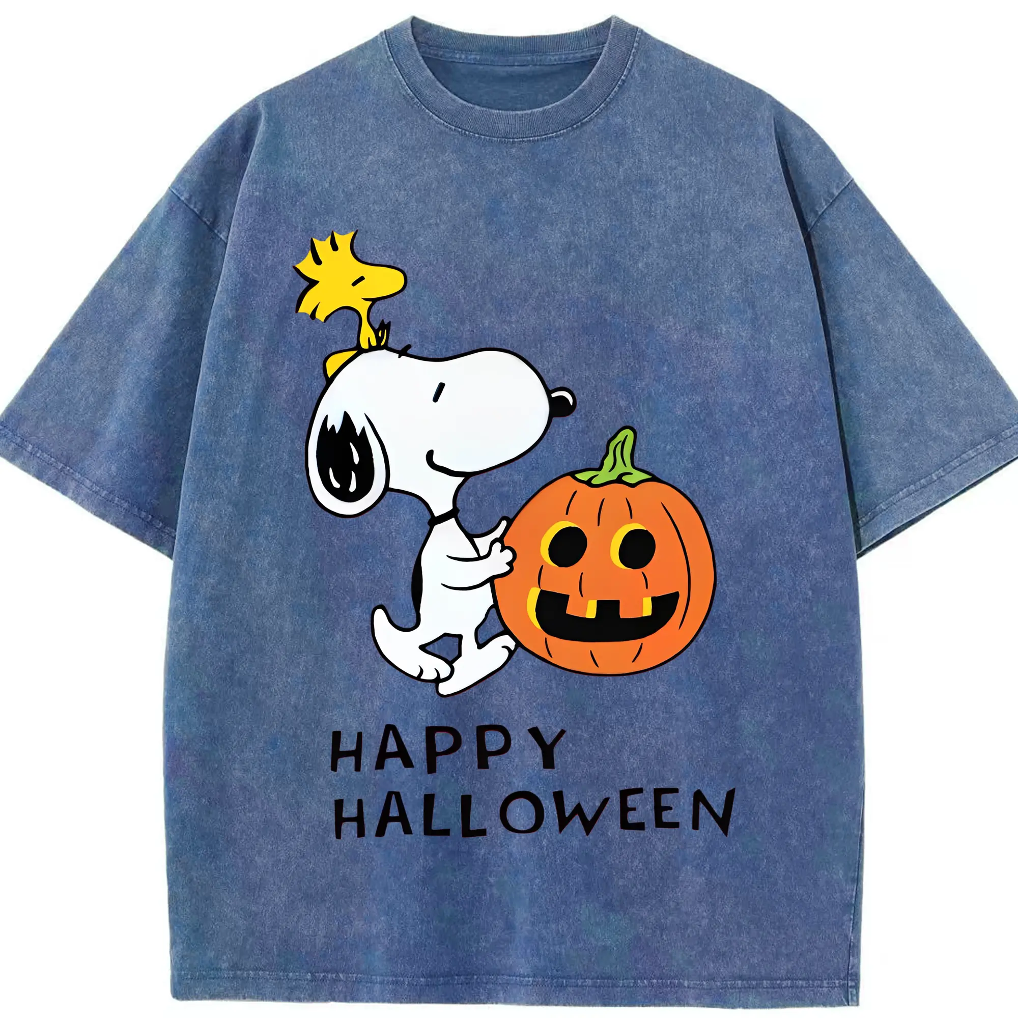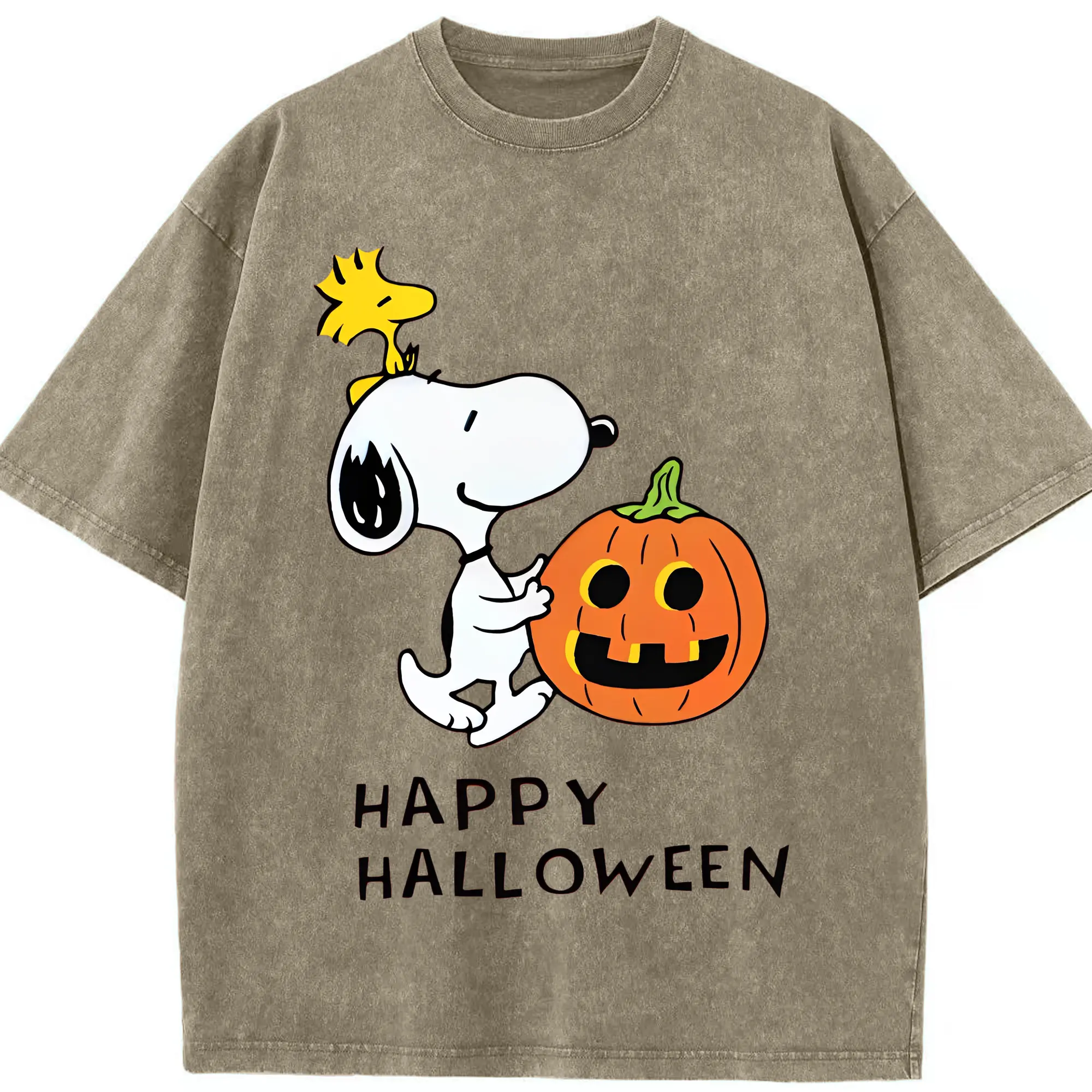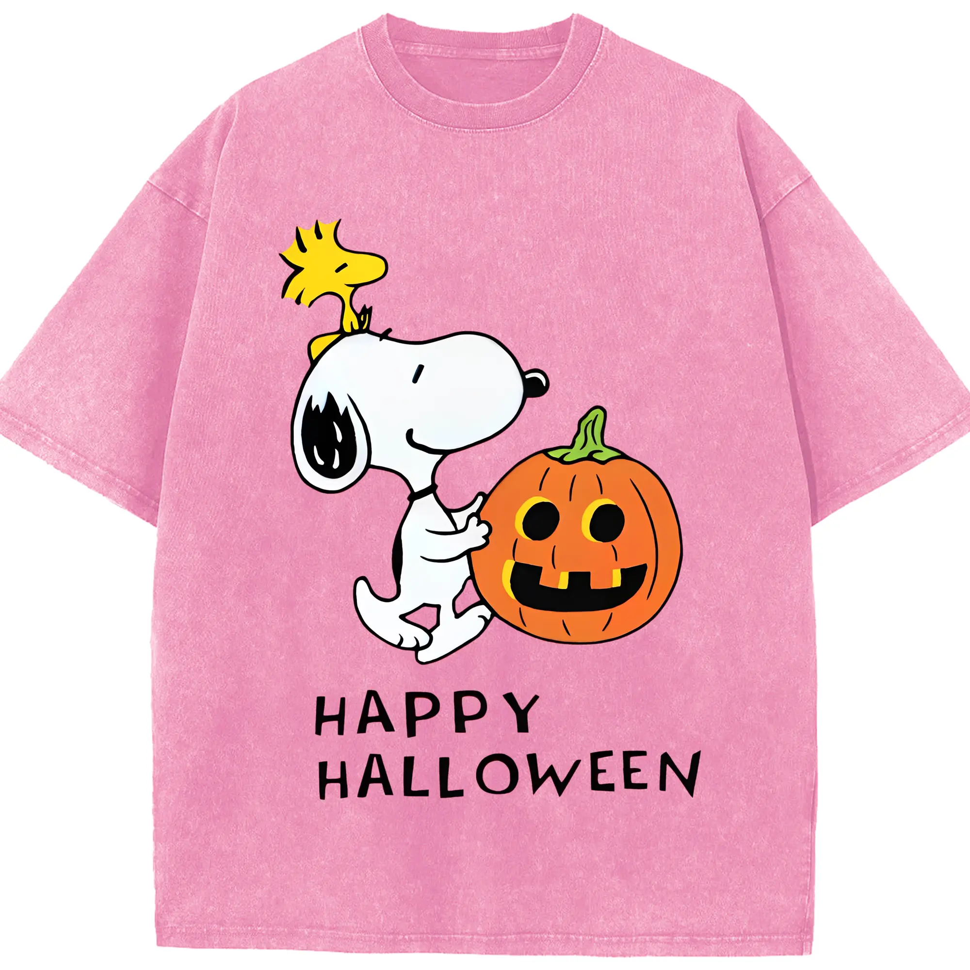 Snoopy Halloween Pumpkin DIY - Washed Vintage Look 230g Cotton Oversized T-Shirt With Front Heat Transfer Print – Soft, Lightweight, Stylish Fit – Comfortable Casual Wear For Sports & Everyday Use