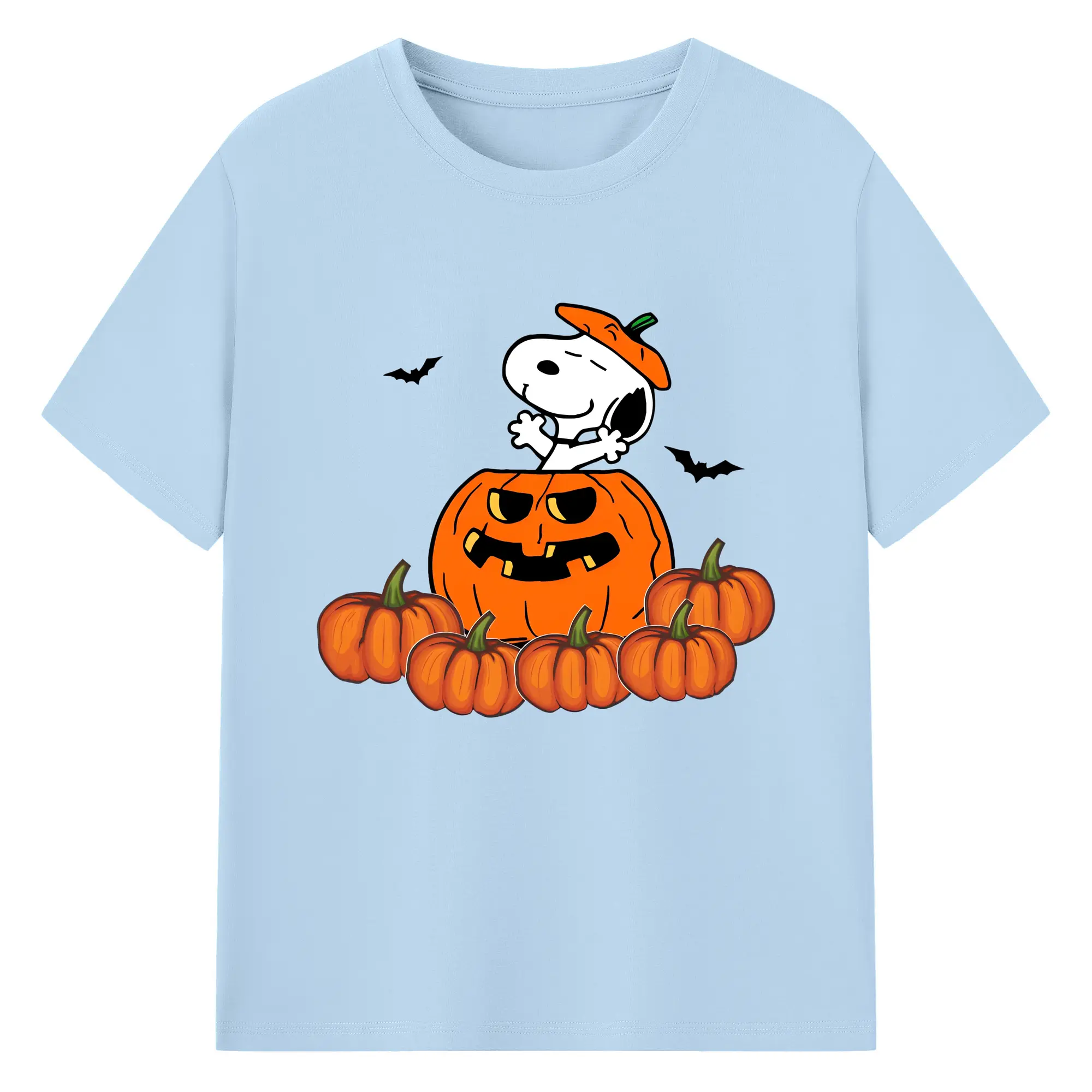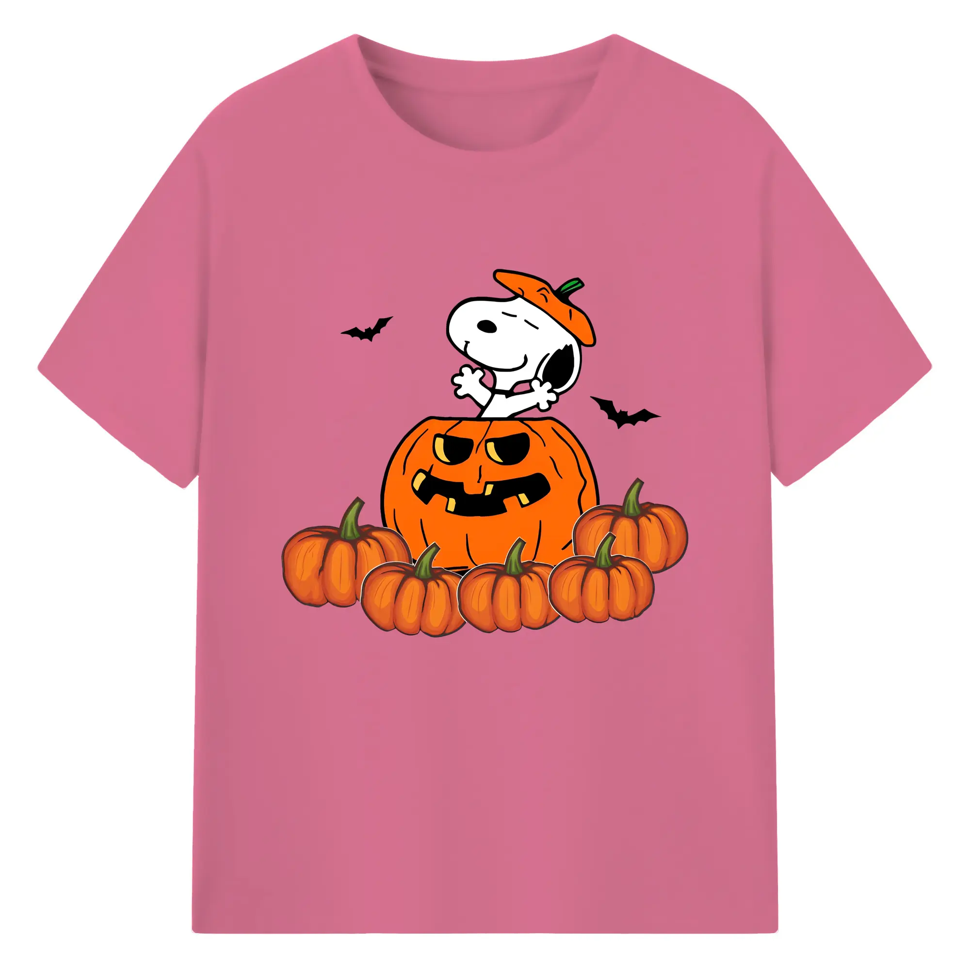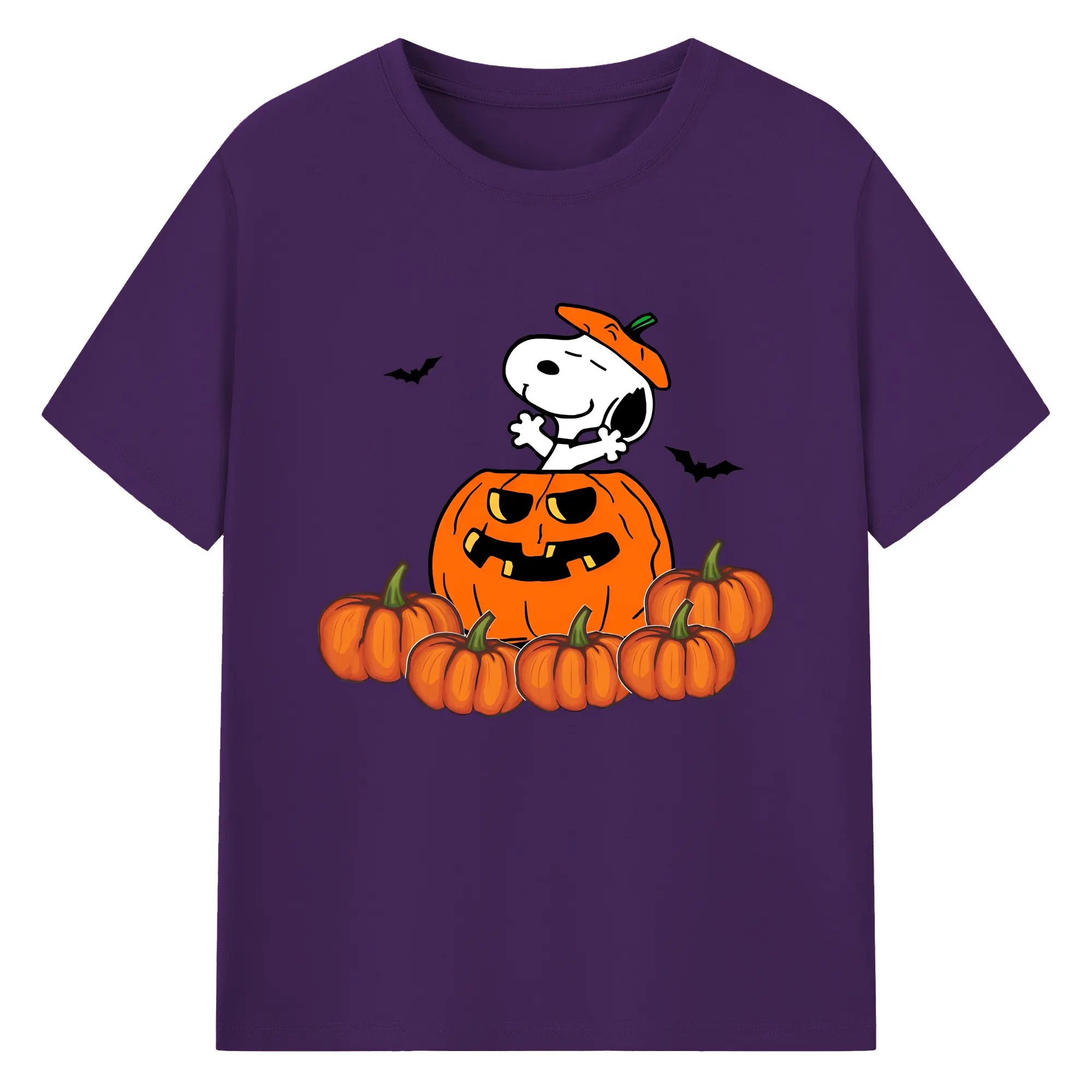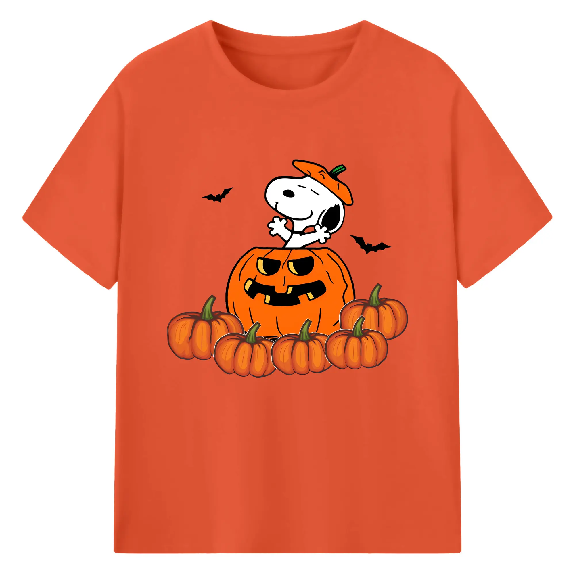 Snoopy Halloween Pumpkin Party - 180g Cotton T-Shirt With Front Heat Transfer Print – Soft, Lightweight, Fitted Design – Comfortable Casual Wear For Sports & Everyday Use