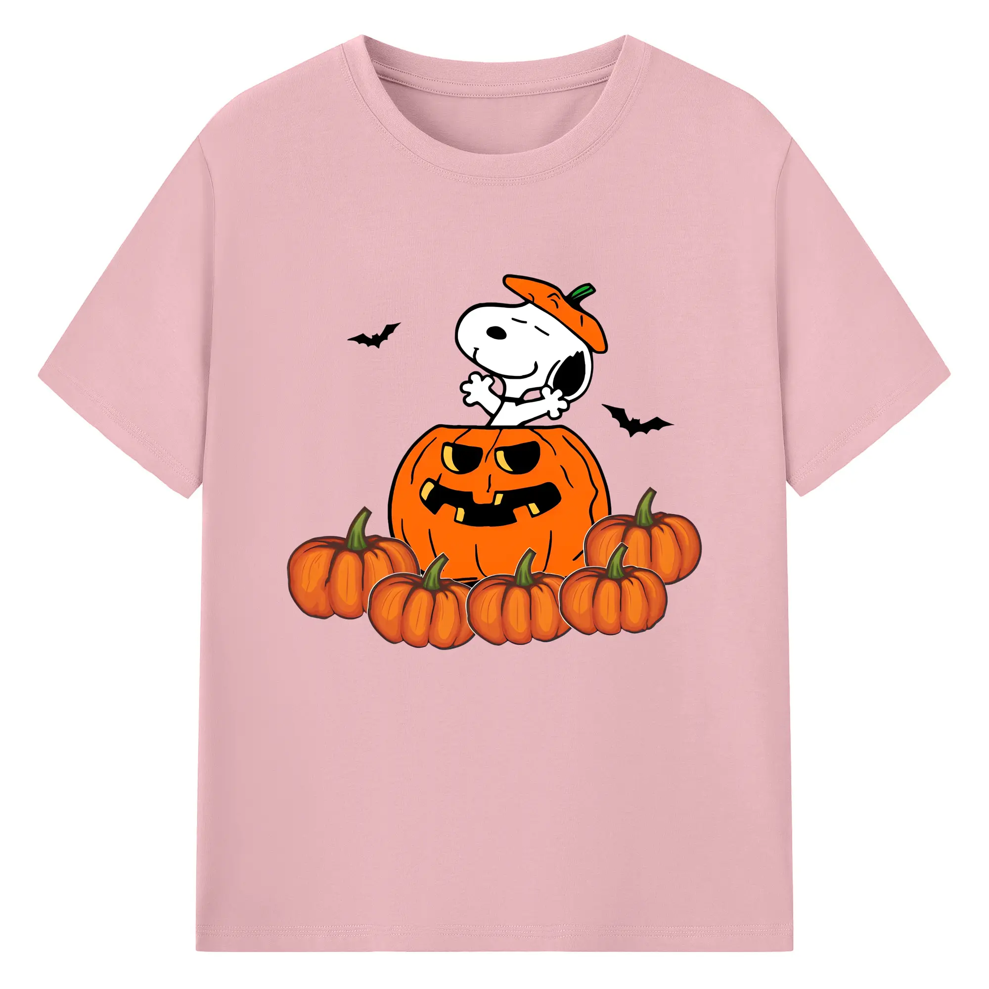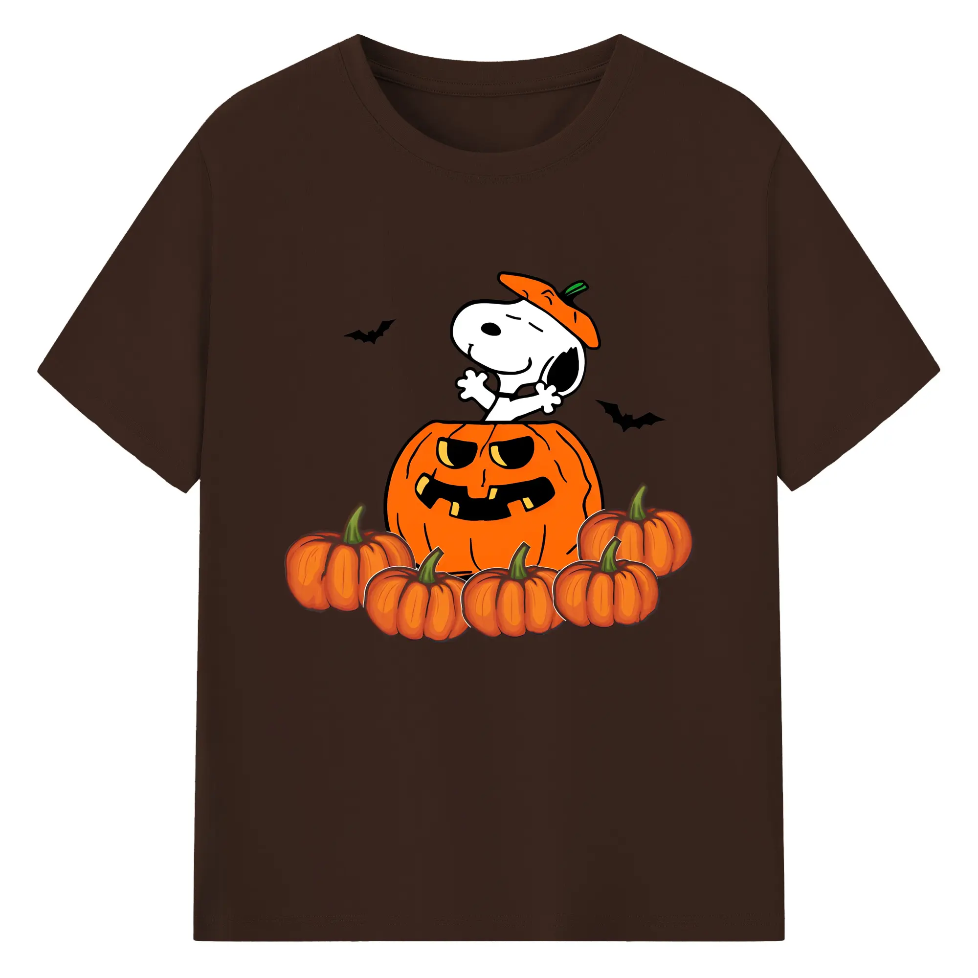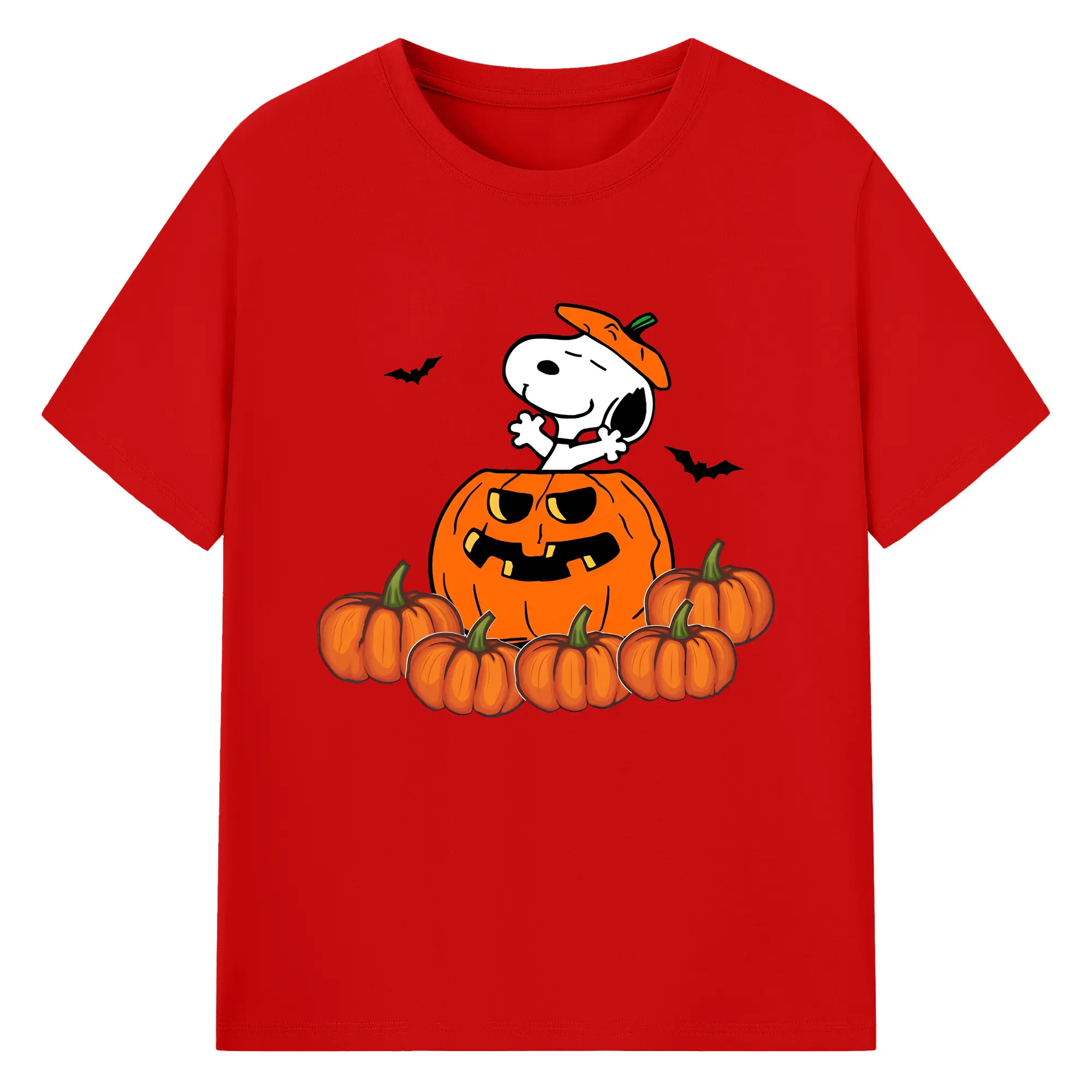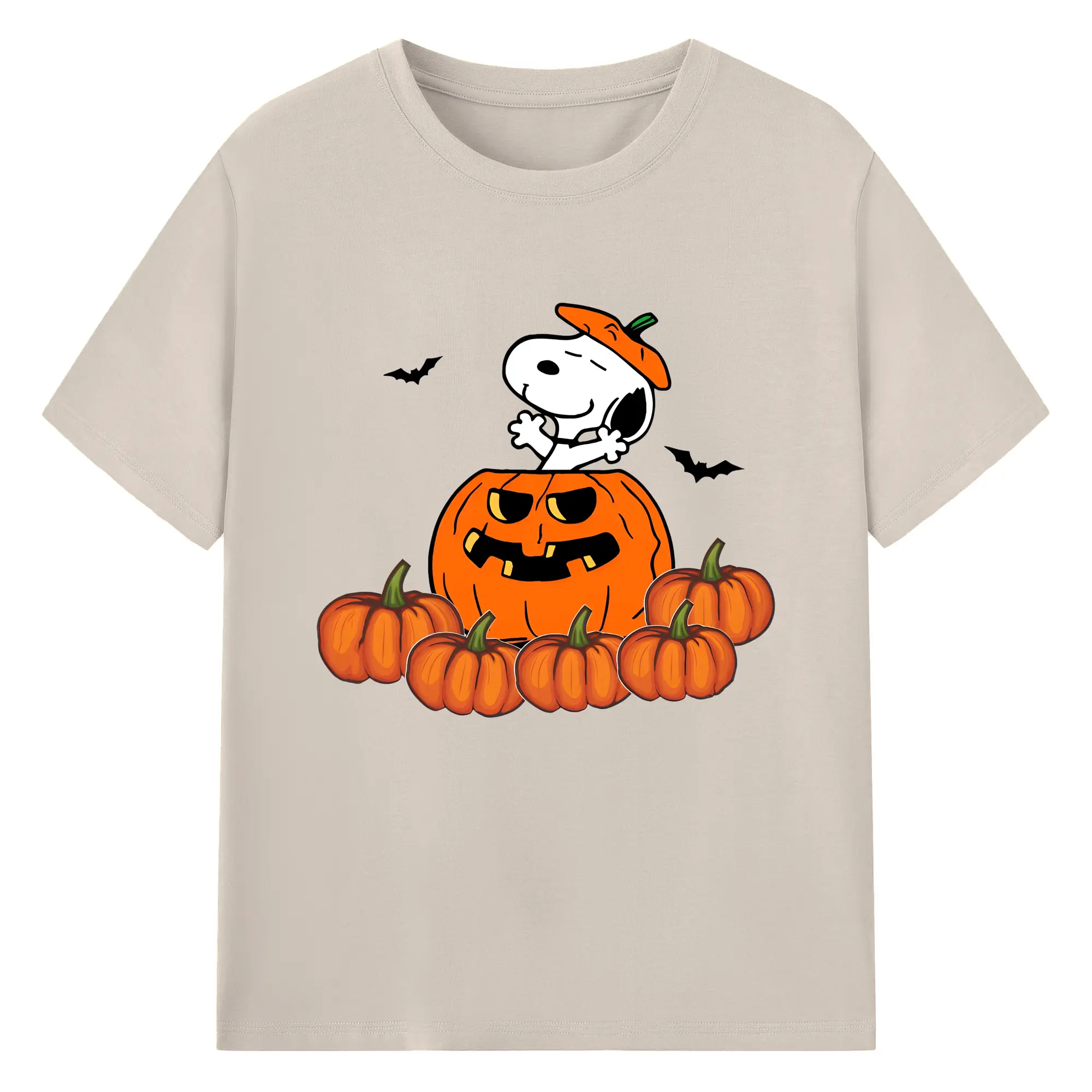 Snoopy Halloween Pumpkin Party - 180g Cotton T-Shirt With Front Heat Transfer Print – Soft, Lightweight, Fitted Design – Comfortable Casual Wear For Sports & Everyday Use