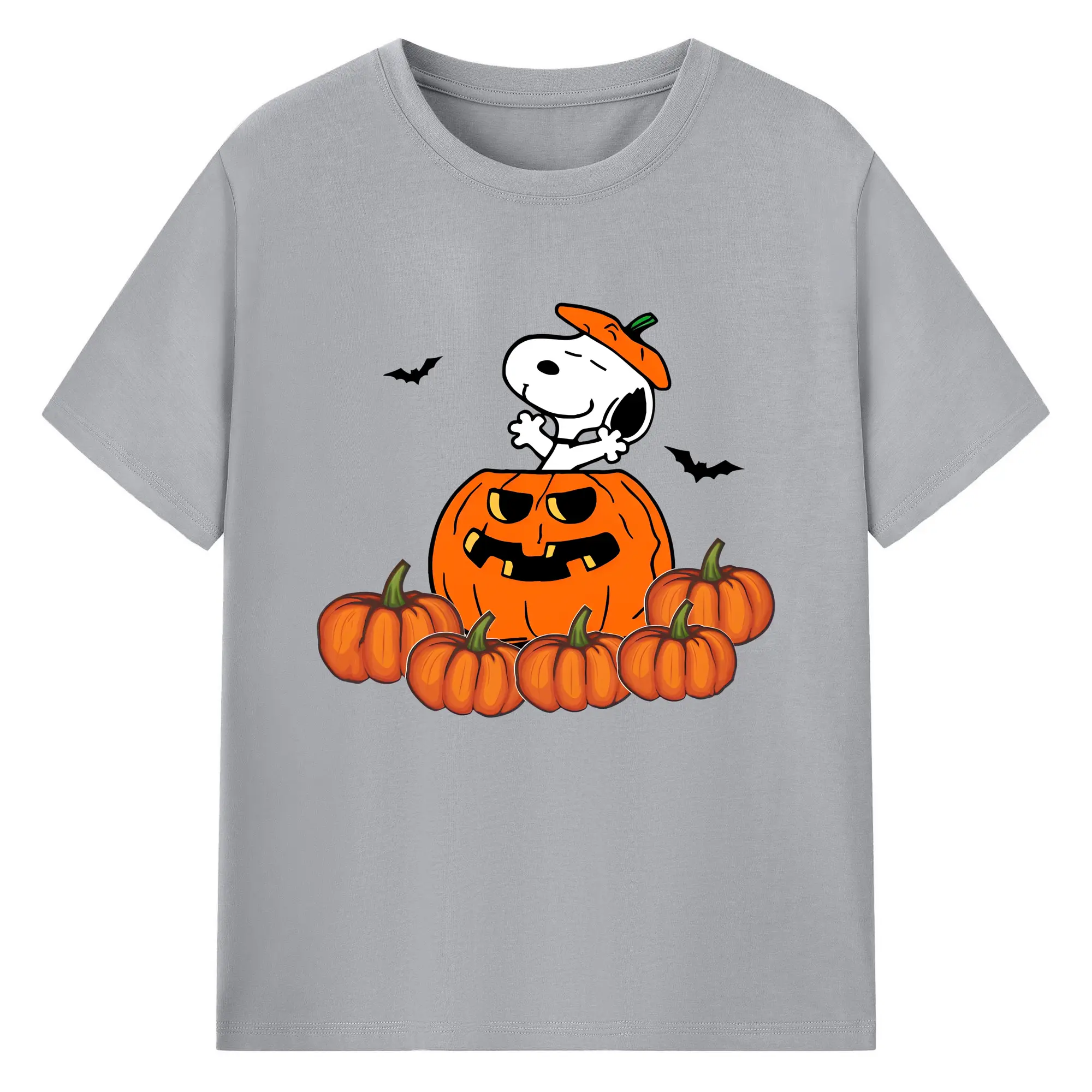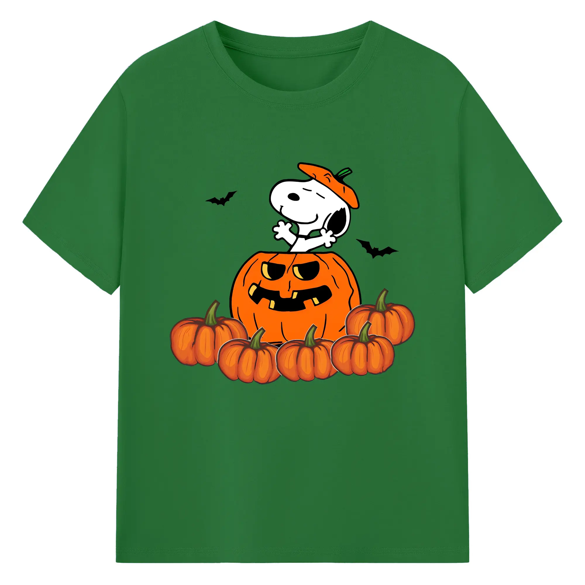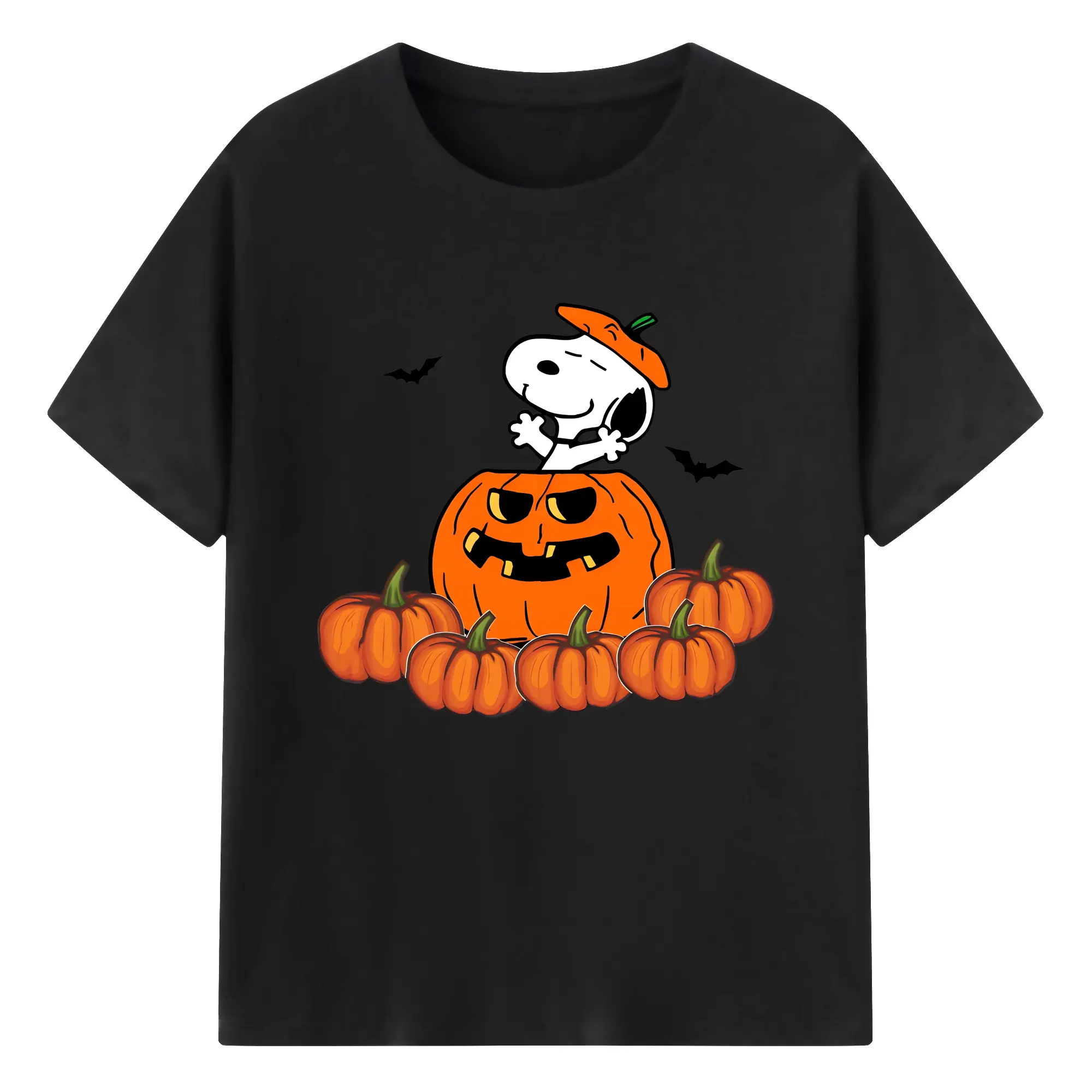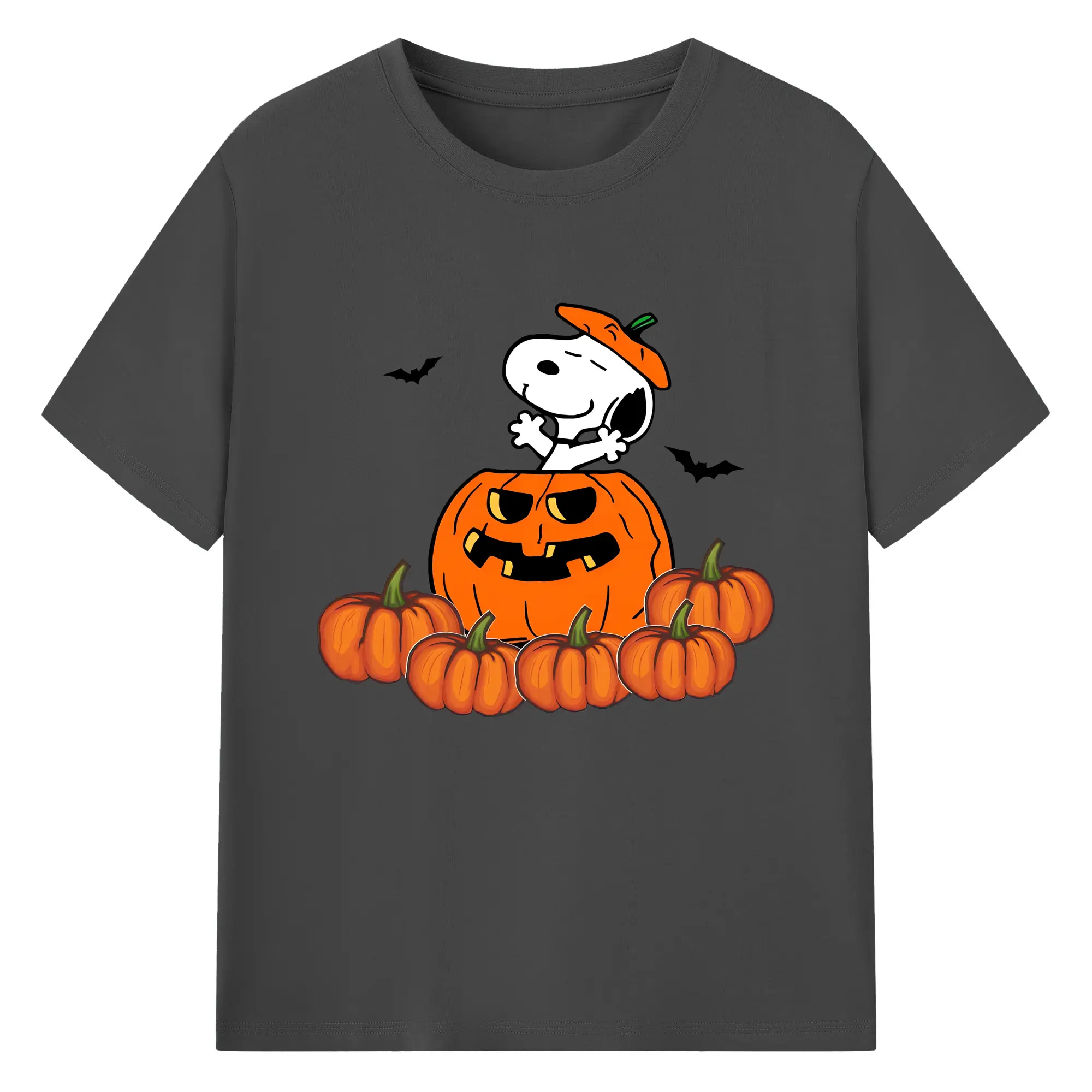 Snoopy Halloween Pumpkin Party - 180g Cotton T-Shirt With Front Heat Transfer Print – Soft, Lightweight, Fitted Design – Comfortable Casual Wear For Sports & Everyday Use