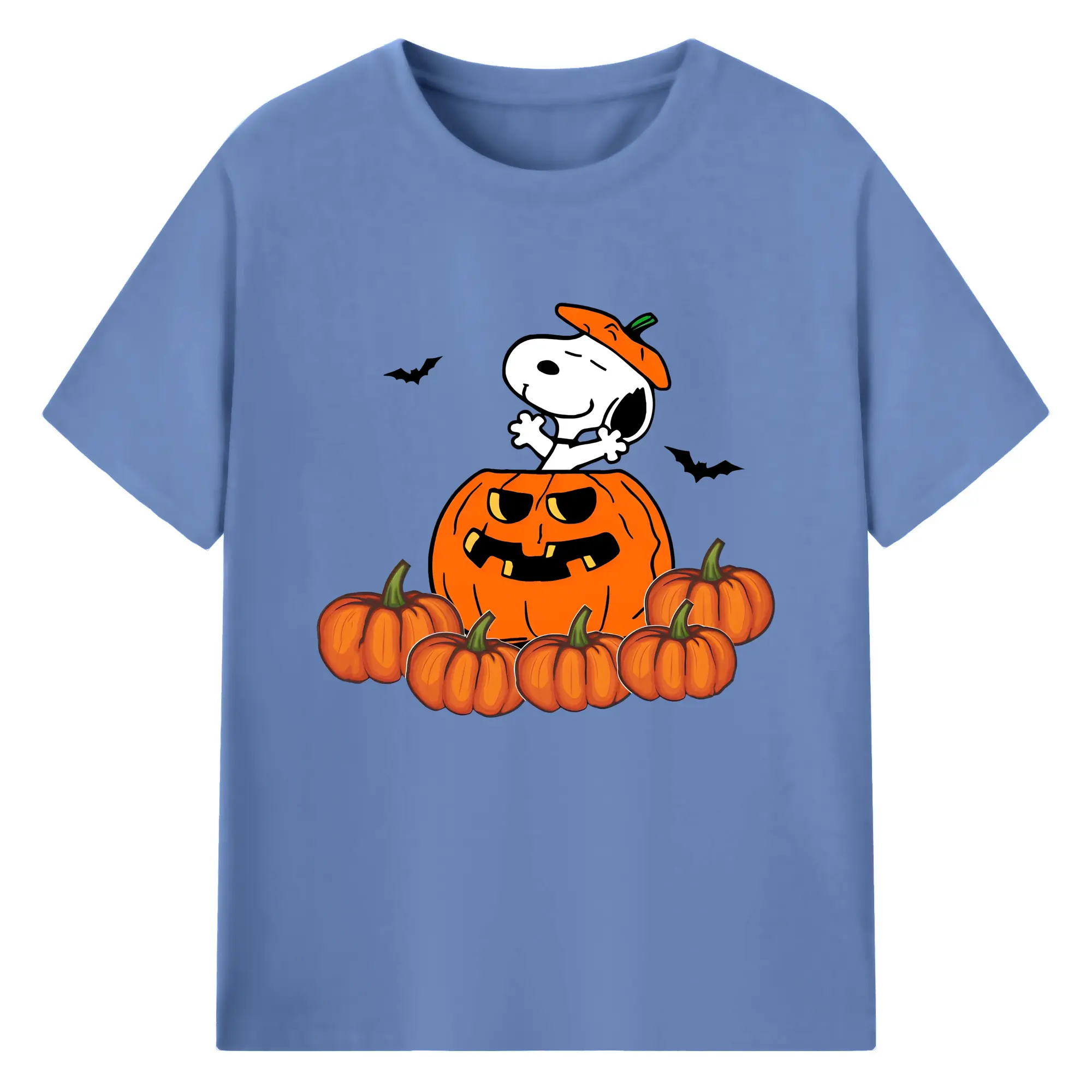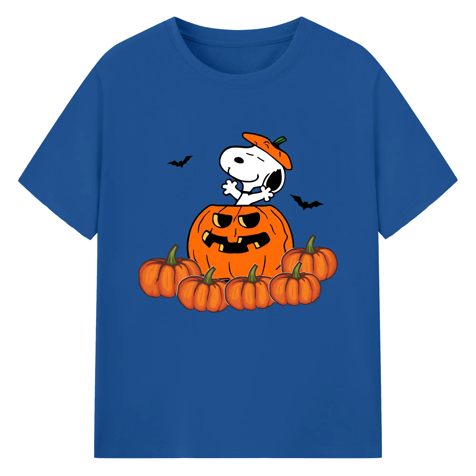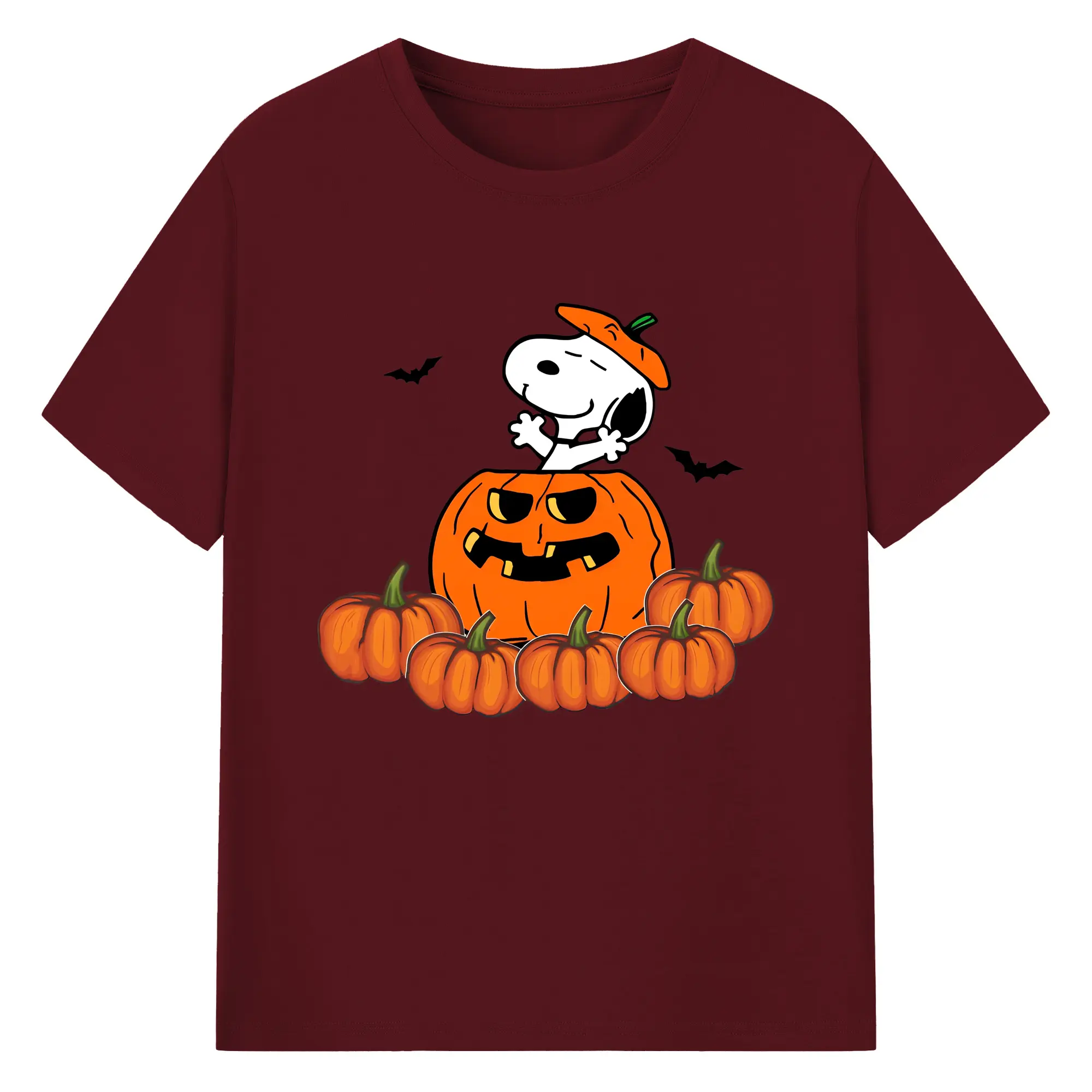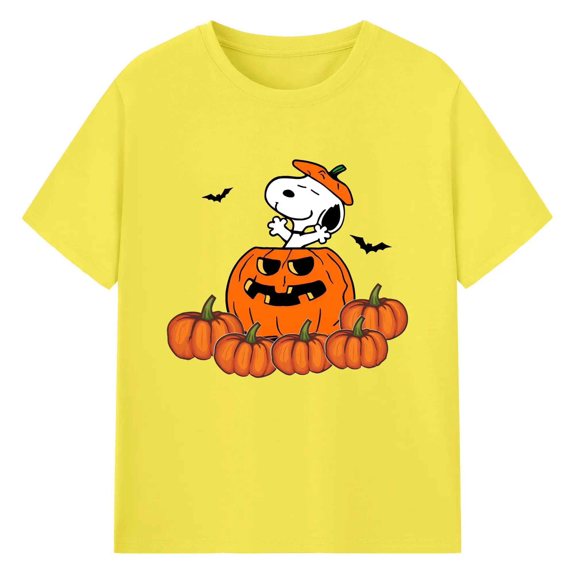Snoopy Halloween Pumpkin Party - 180g Cotton T-Shirt With Front Heat Transfer Print – Soft, Lightweight, Fitted Design – Comfortable Casual Wear For Sports & Everyday Use