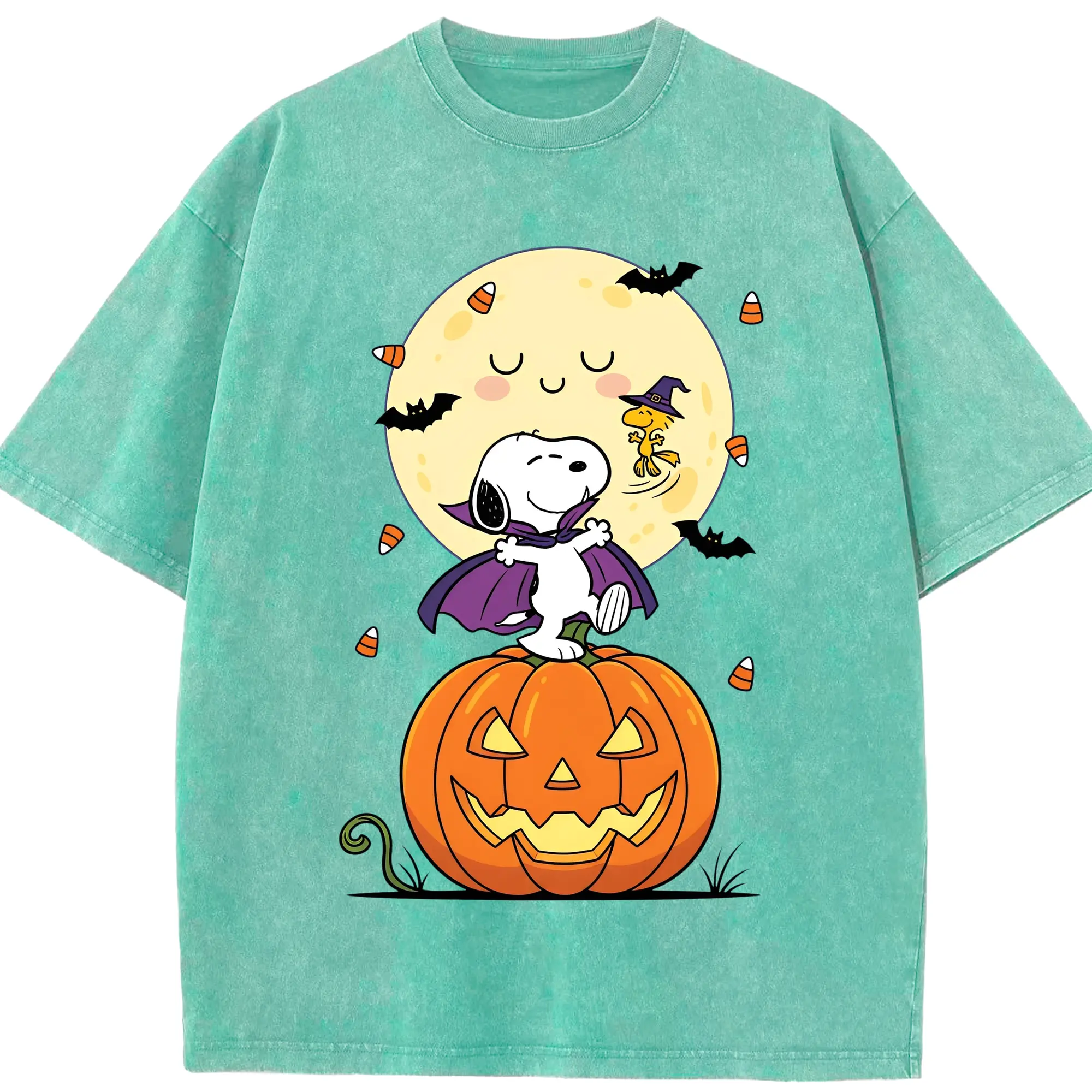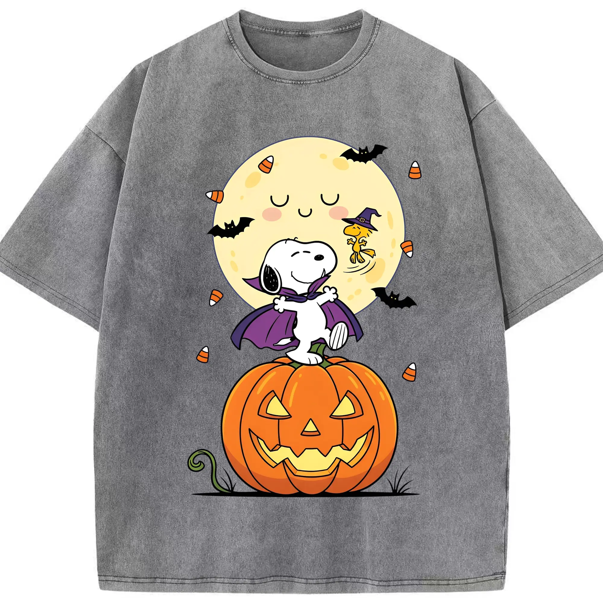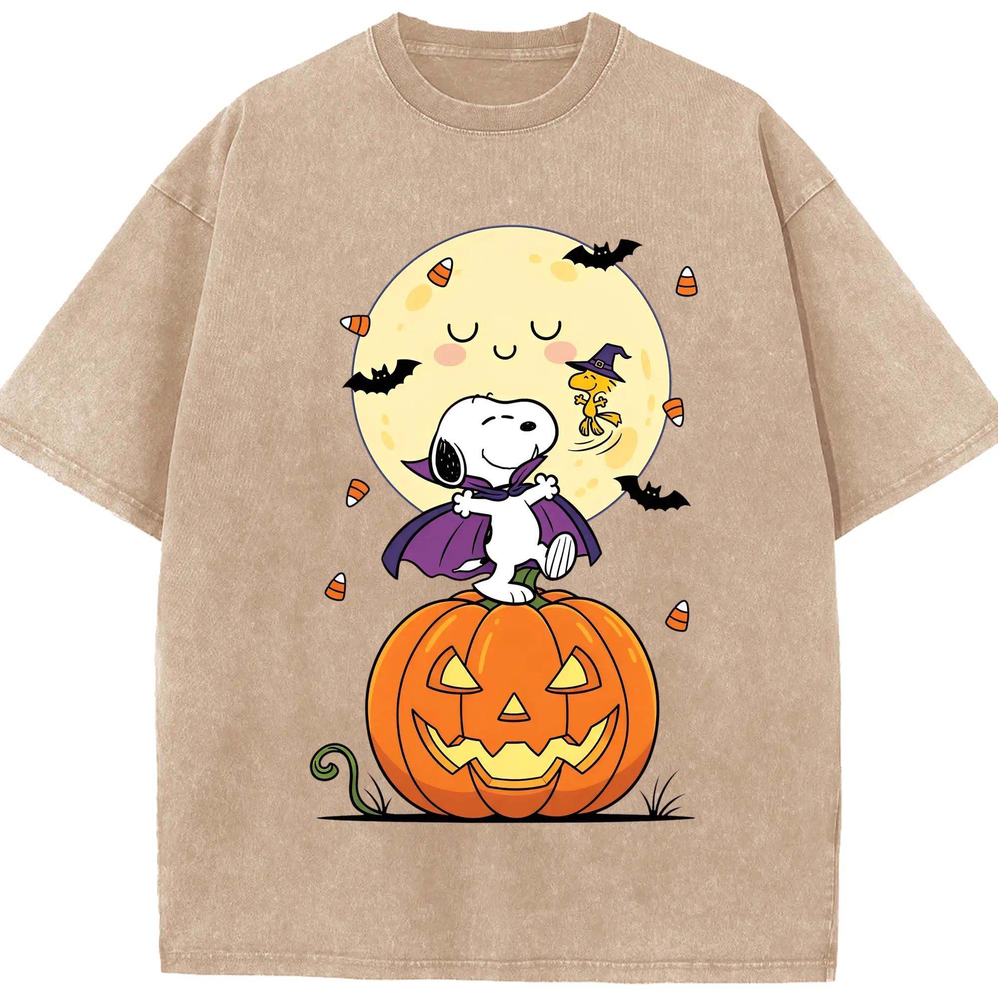 Snoopy Halloween Vampire DIY - Washed Vintage Look 230g Cotton Oversized T-Shirt With Front Heat Transfer Print – Soft, Lightweight, Stylish Fit – Comfortable Casual Wear For Sports & Everyday Use