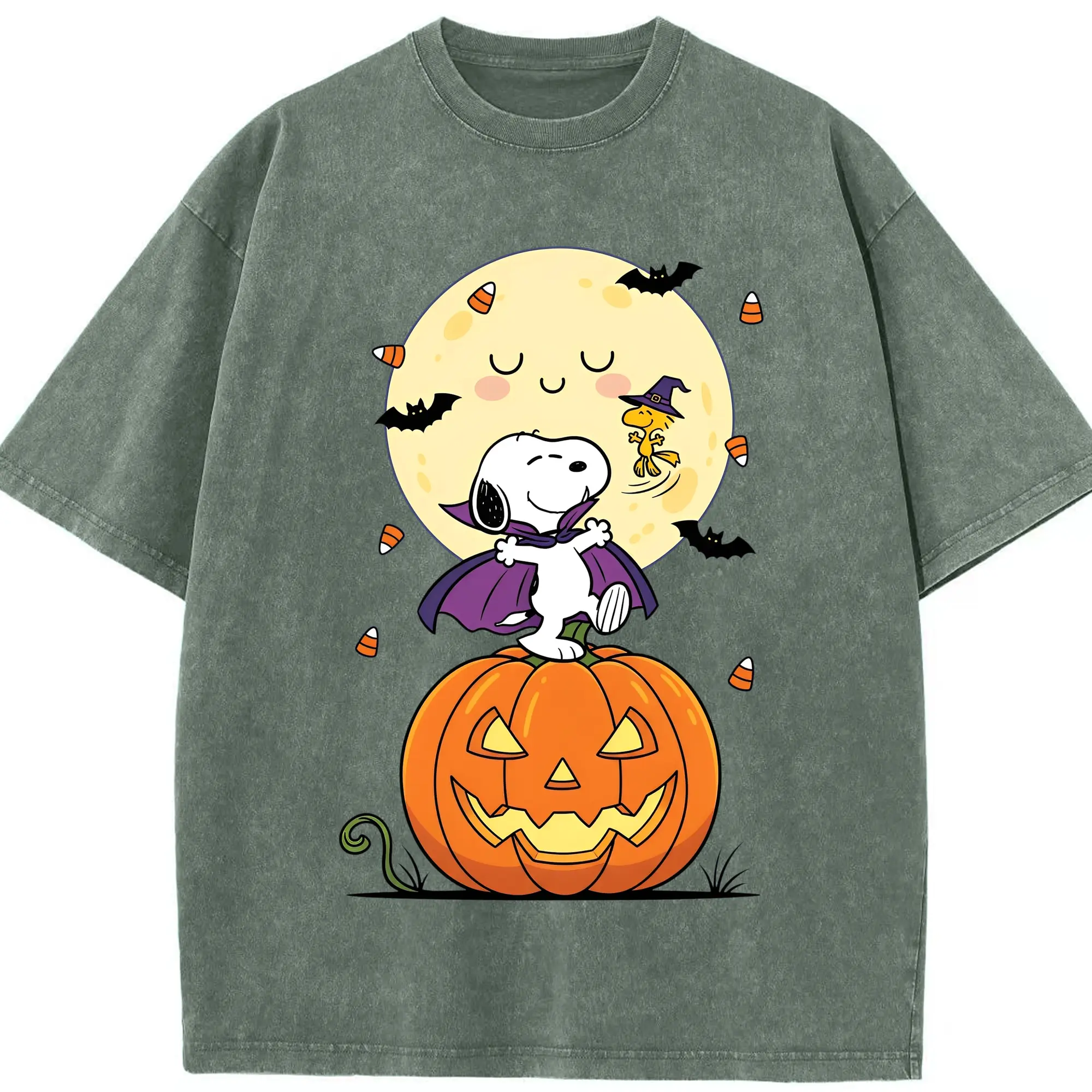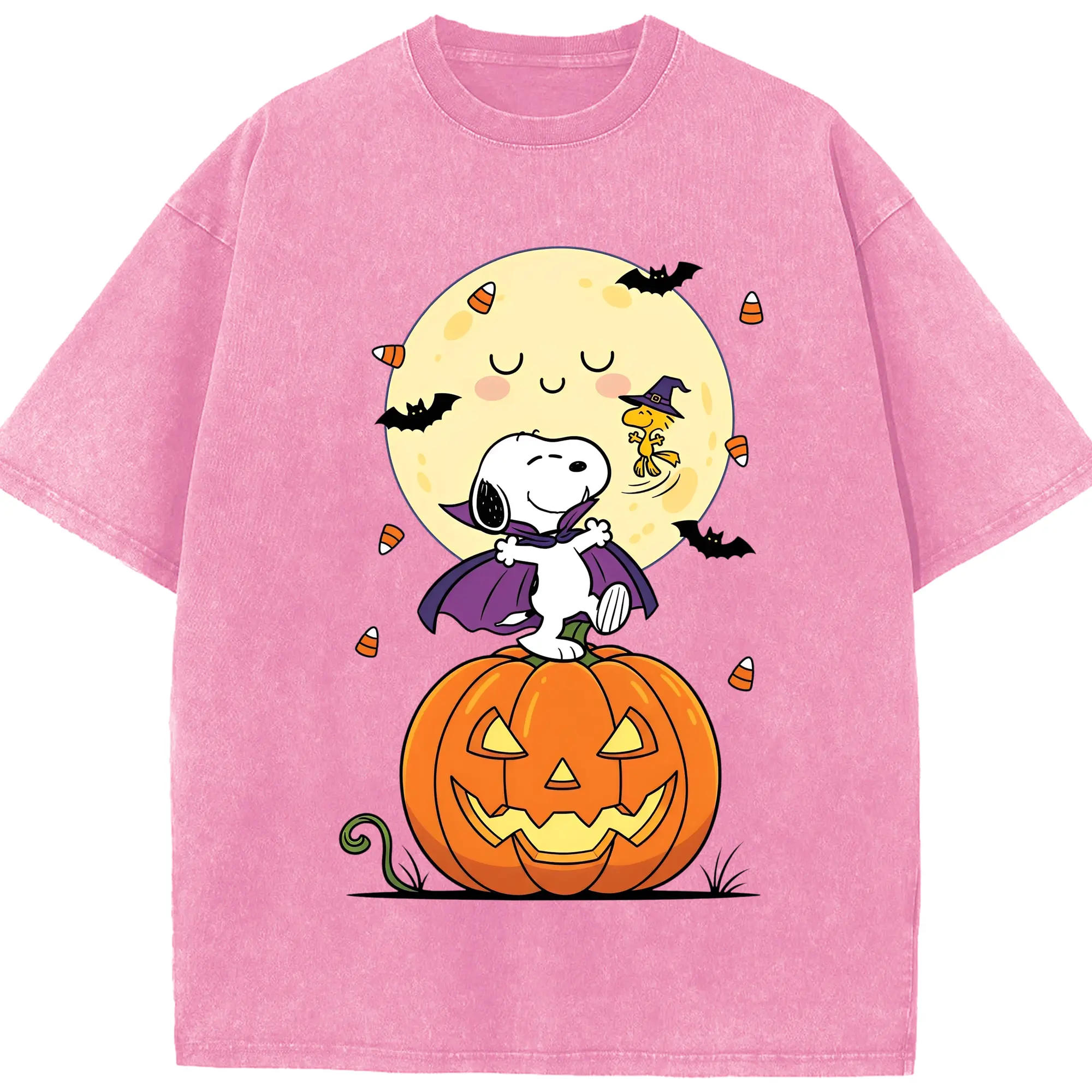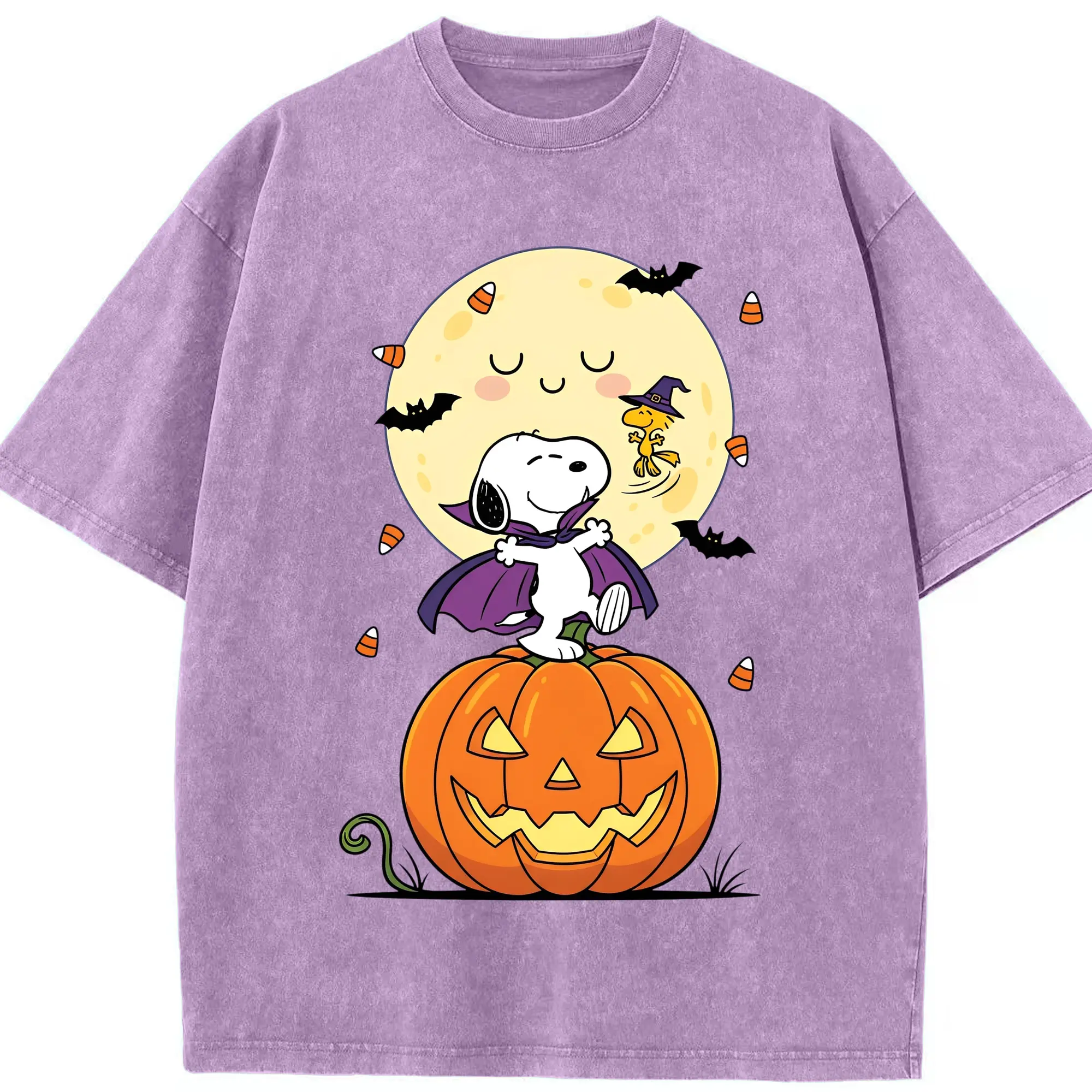 Snoopy Halloween Vampire DIY - Washed Vintage Look 230g Cotton Oversized T-Shirt With Front Heat Transfer Print – Soft, Lightweight, Stylish Fit – Comfortable Casual Wear For Sports & Everyday Use