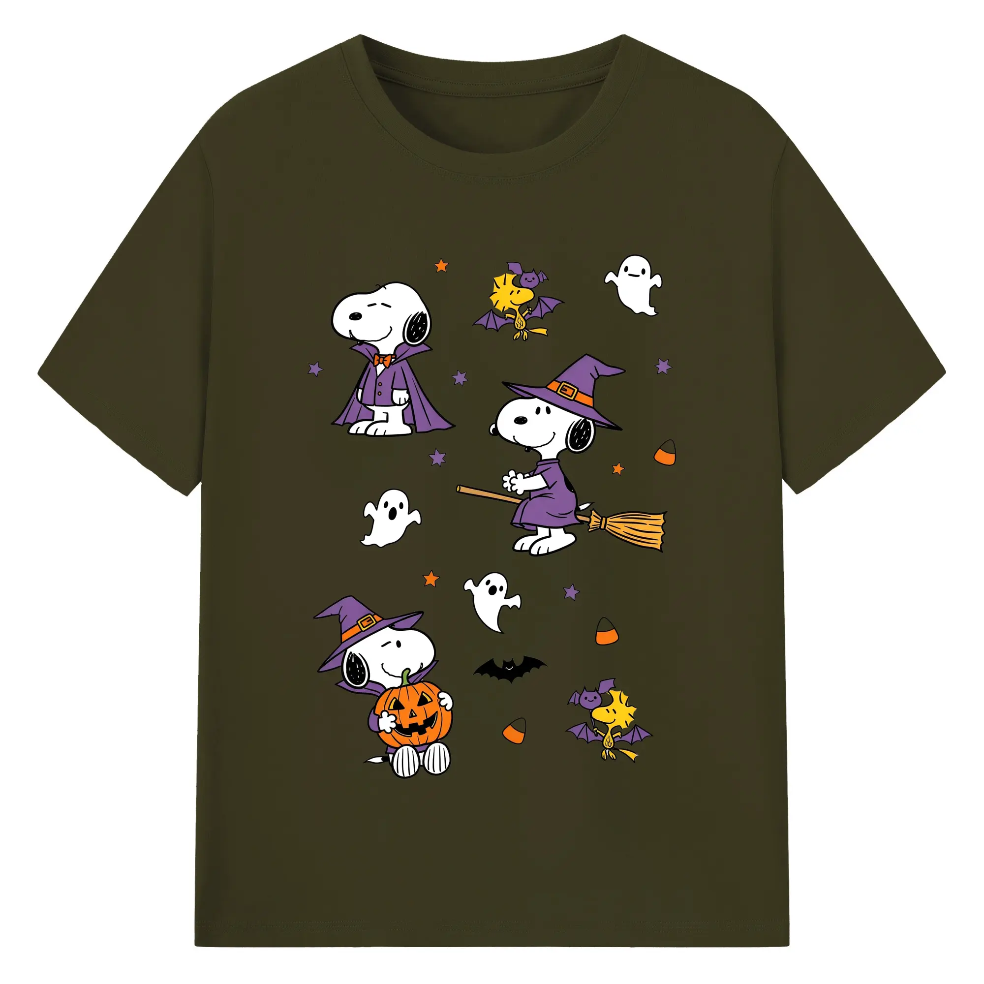 Snoopy Halloween Variety Styles DIY - 180g Cotton T-Shirt With Front Heat Transfer Print – Soft, Lightweight, Fitted Design – Comfortable Casual Wear For Sports & Everyday Use