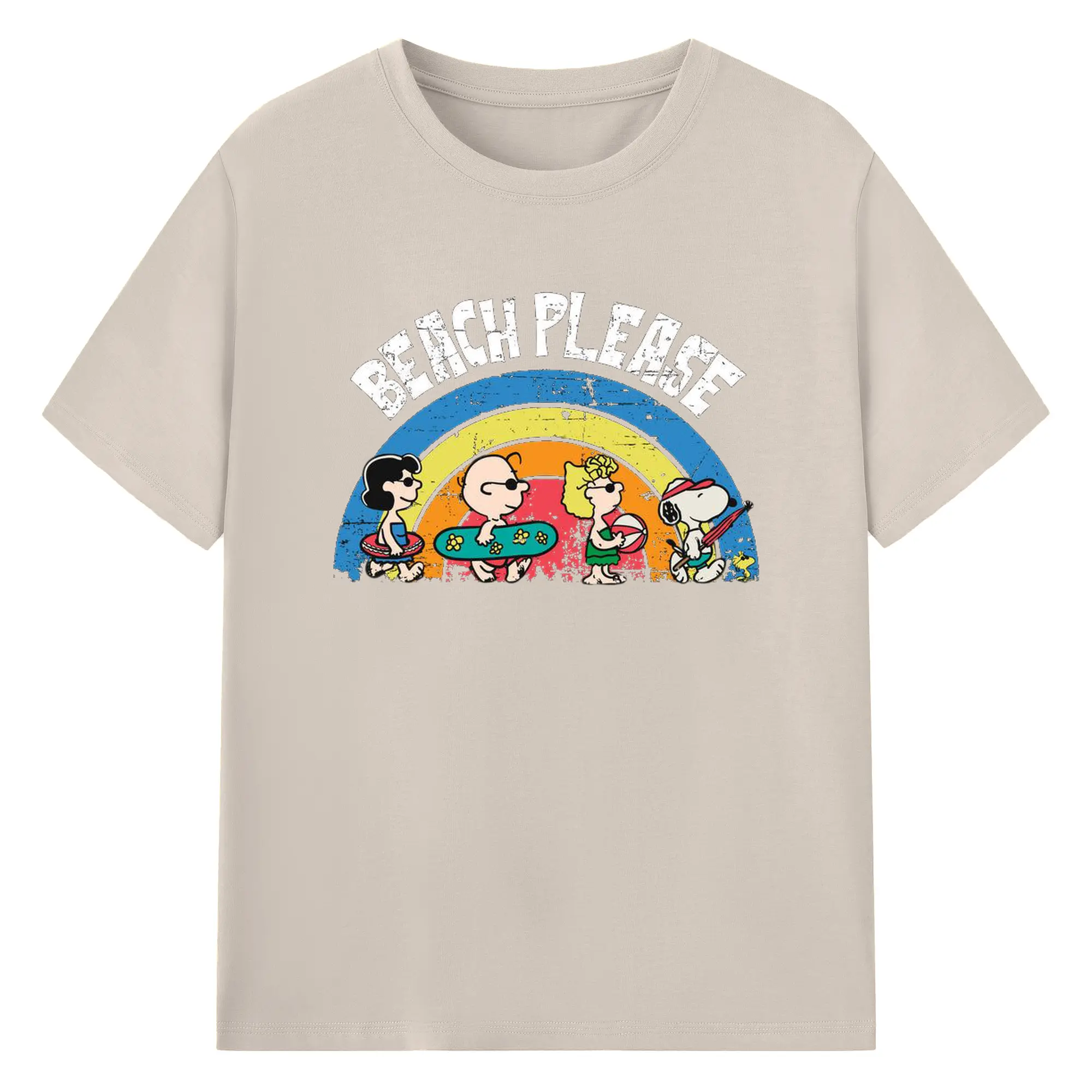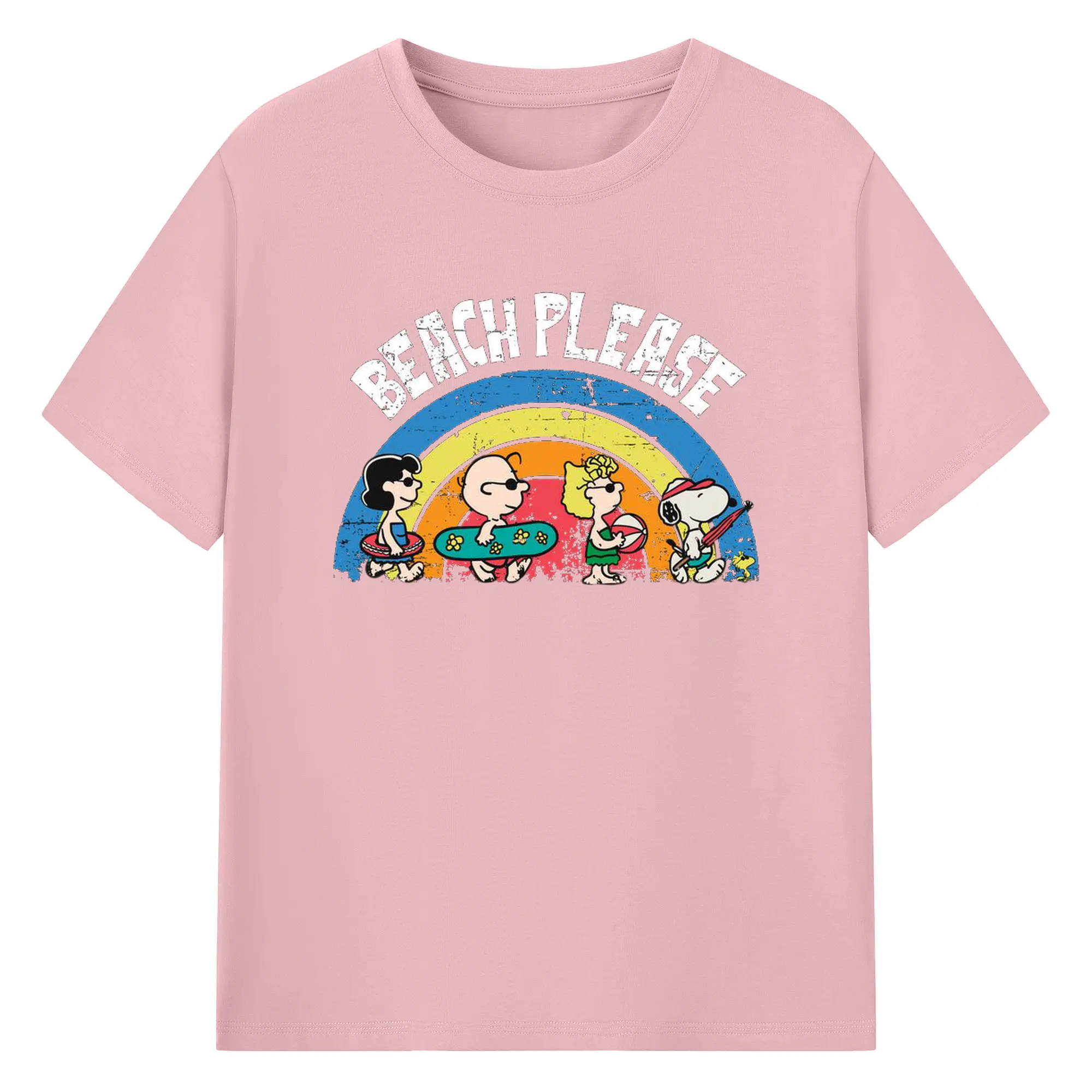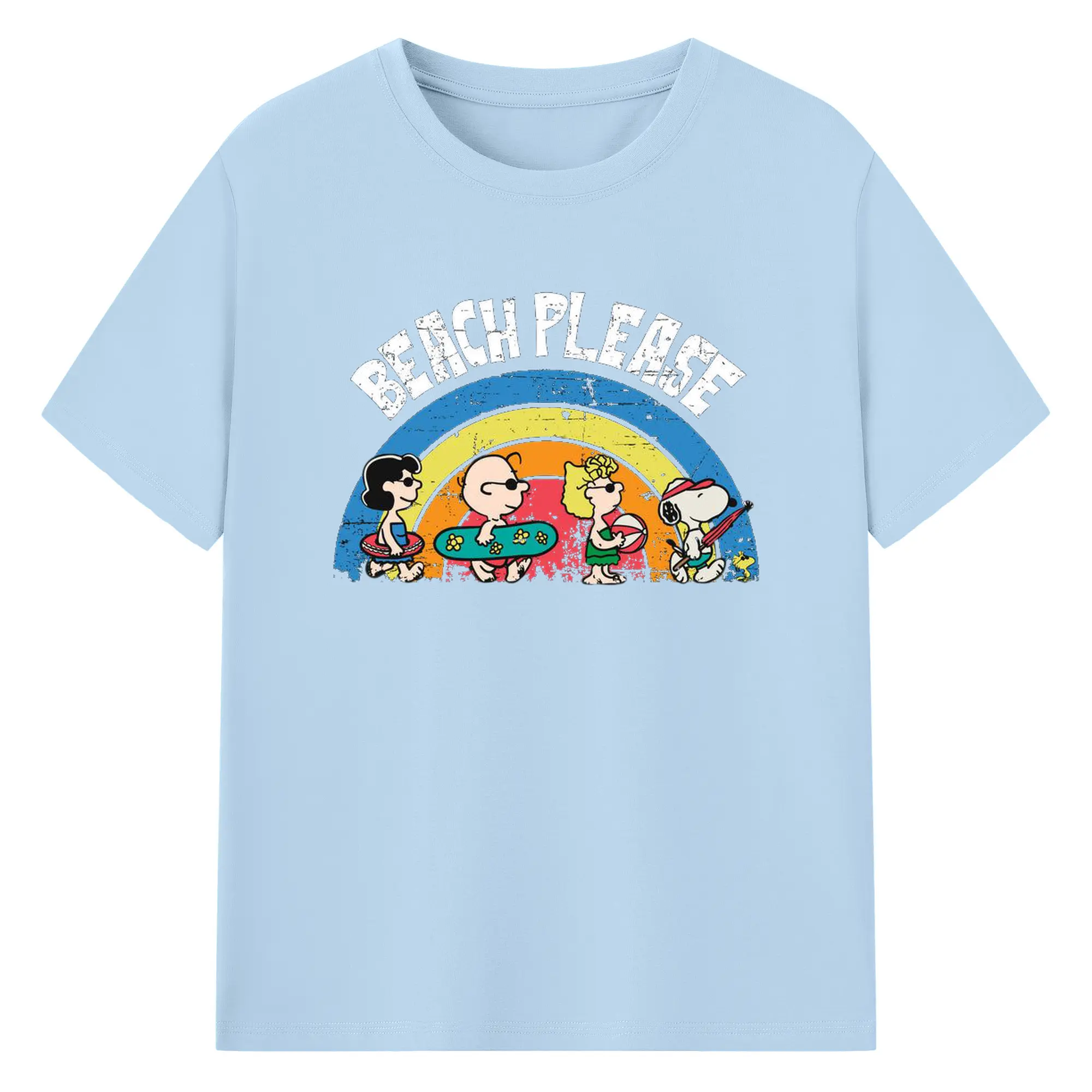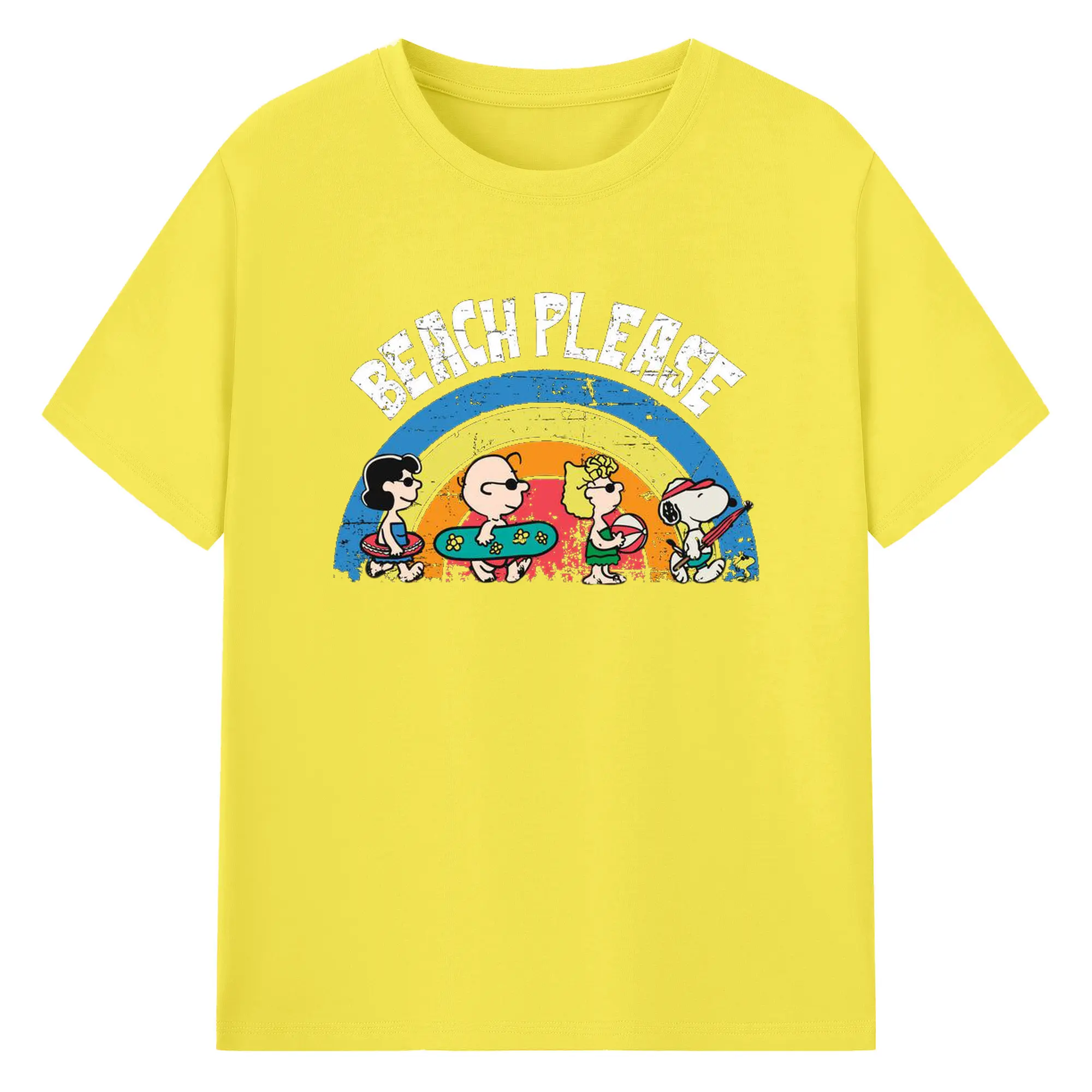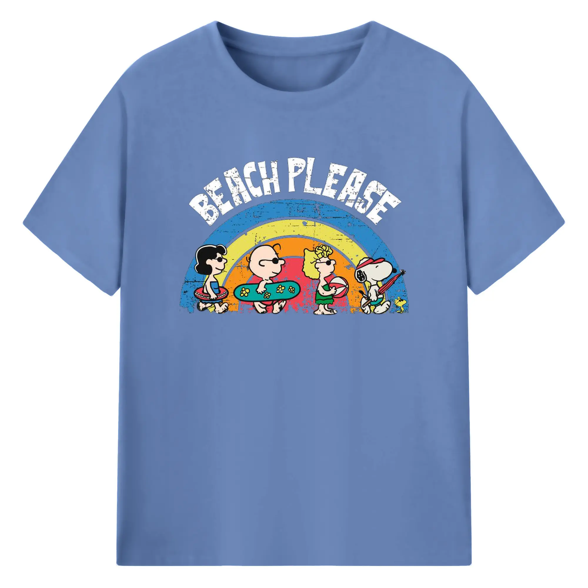 Snoopy Peanuts Beach Please DIY - 180g Cotton T-Shirt With Front Heat Transfer Print – Soft, Lightweight, Fitted Design – Comfortable Casual Wear For Sports & Everyday Use
