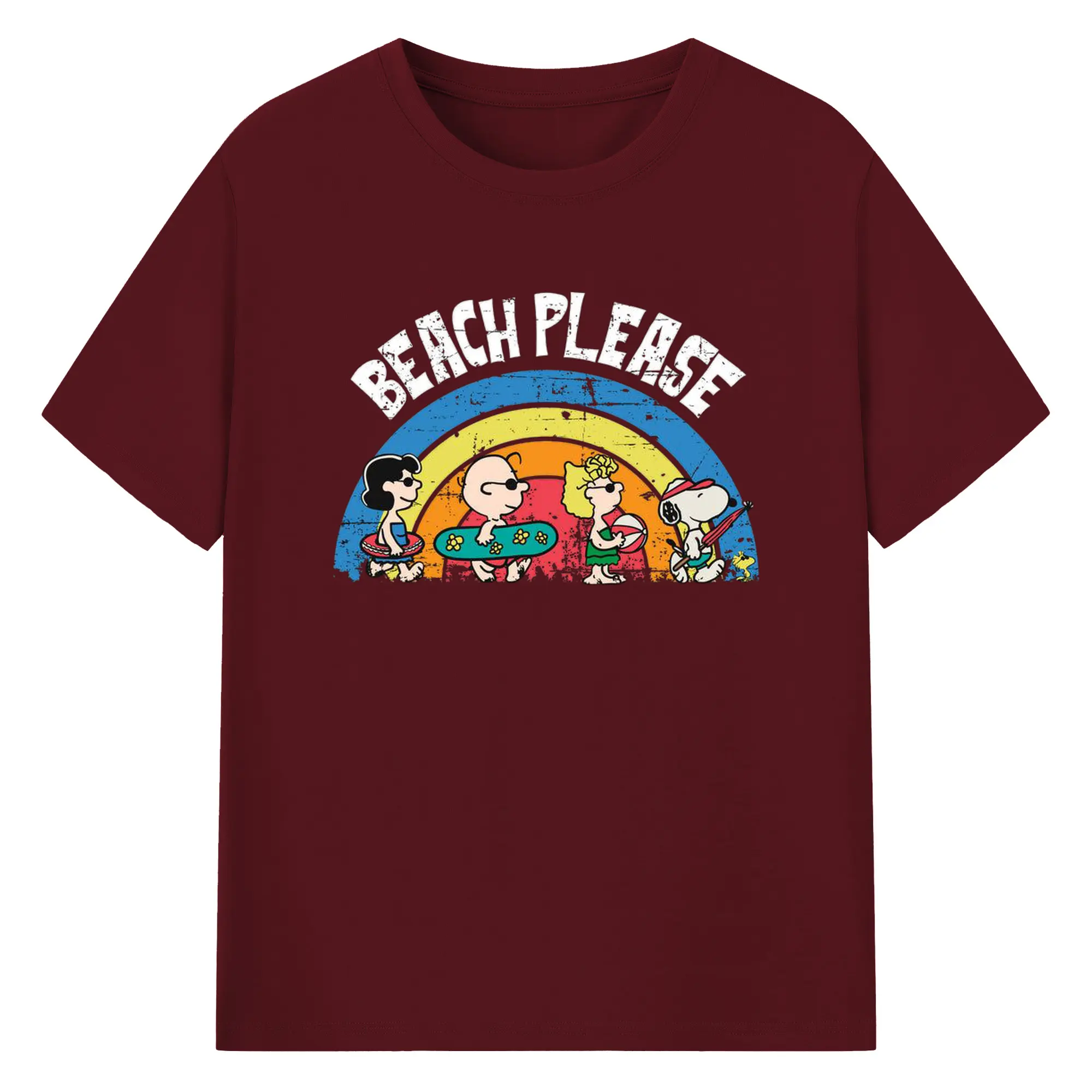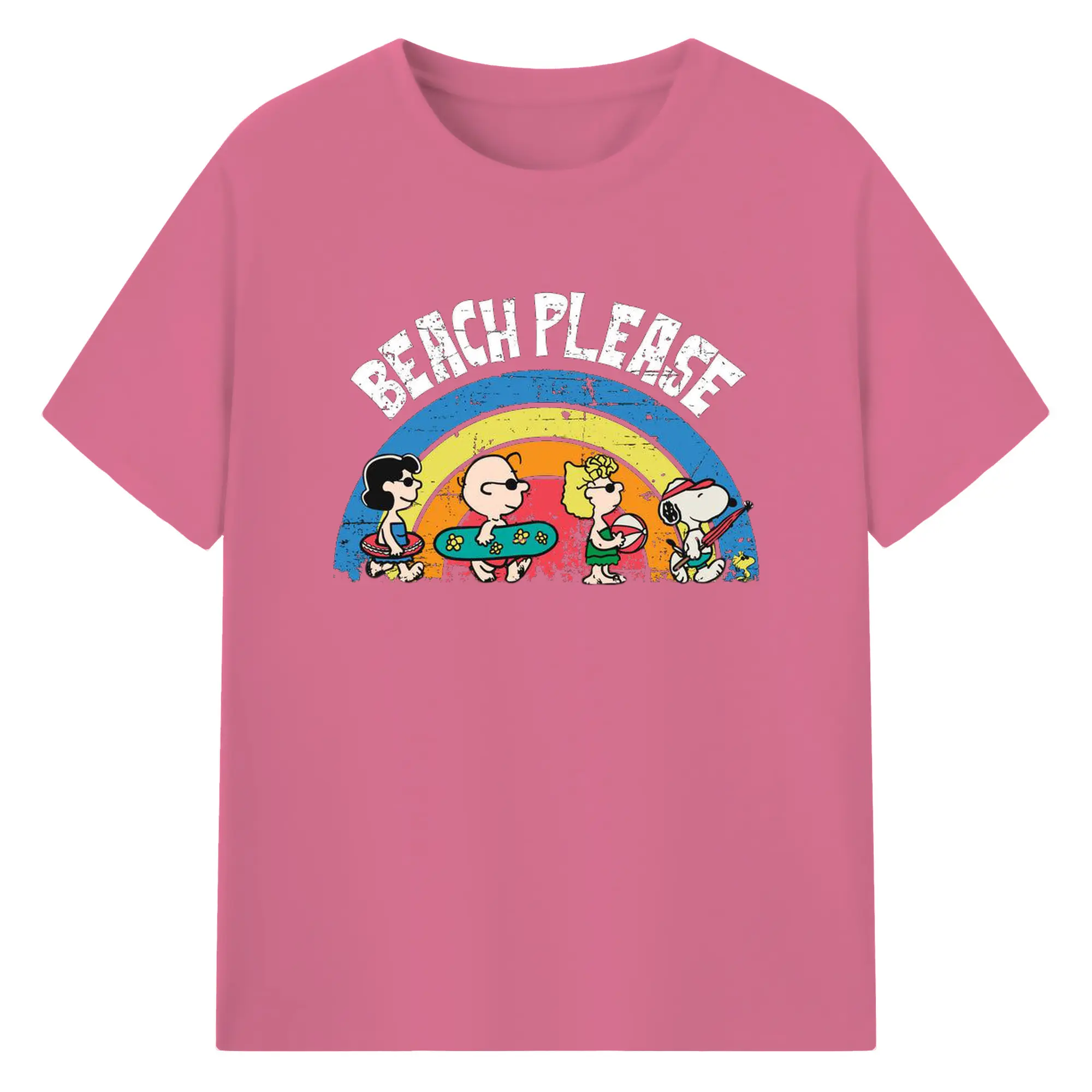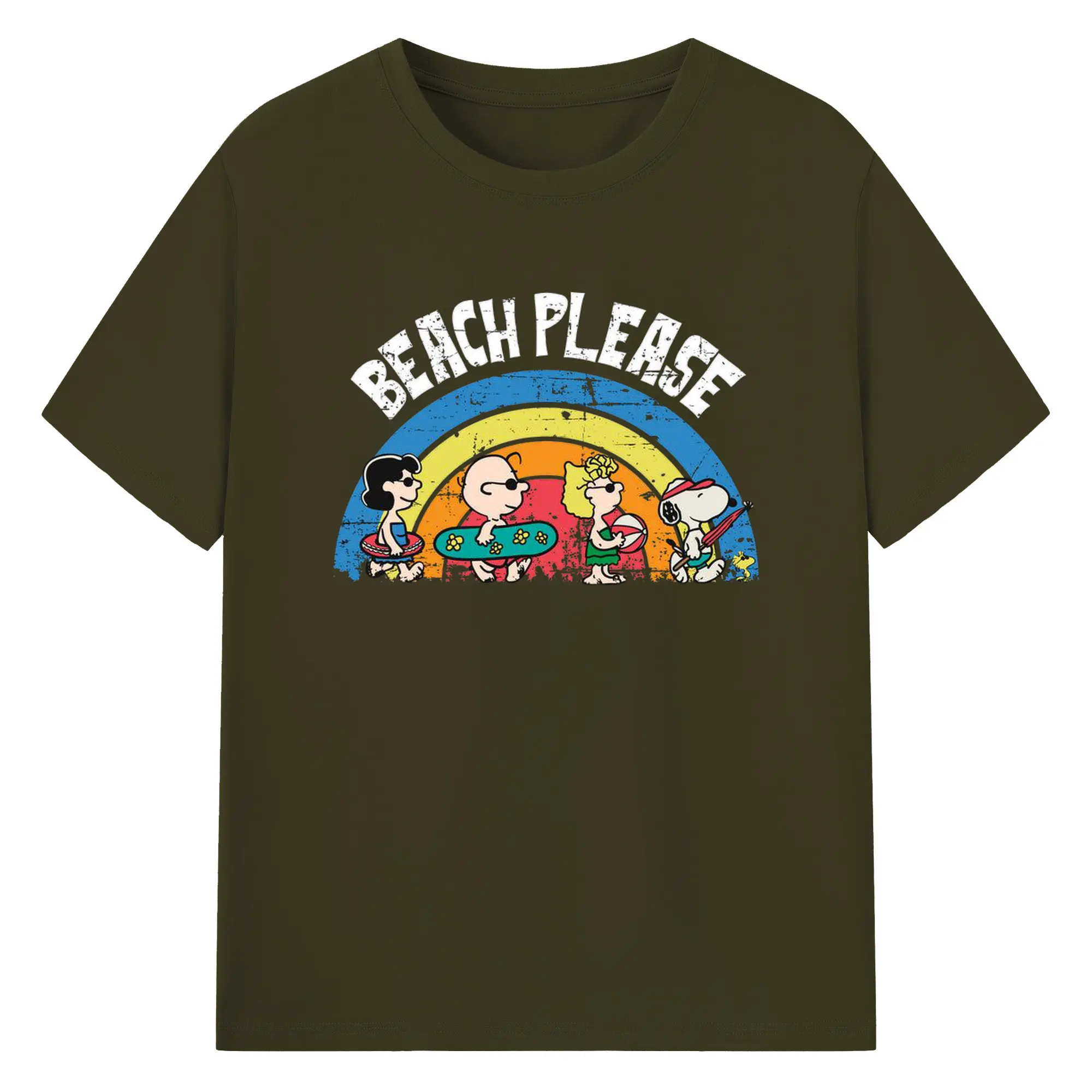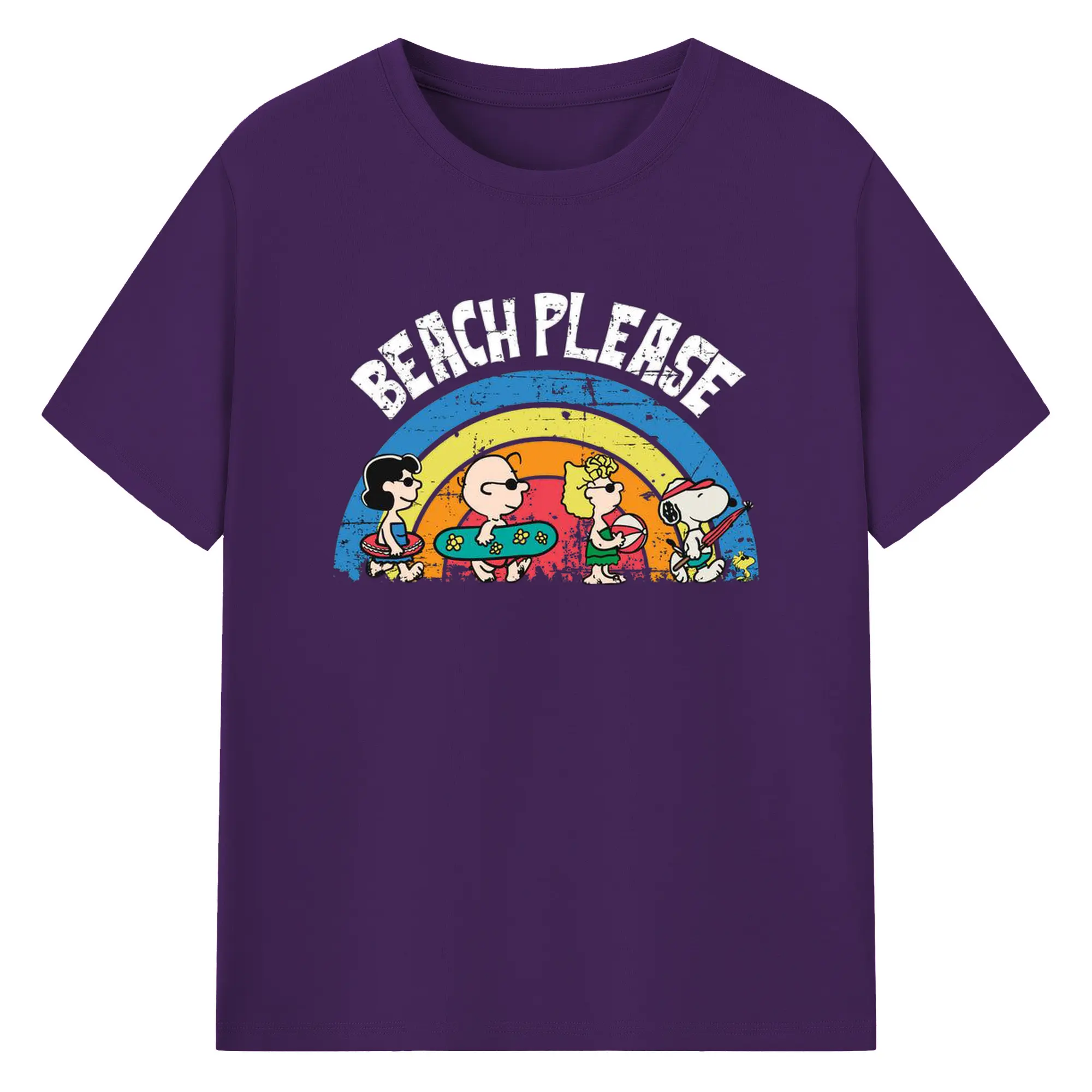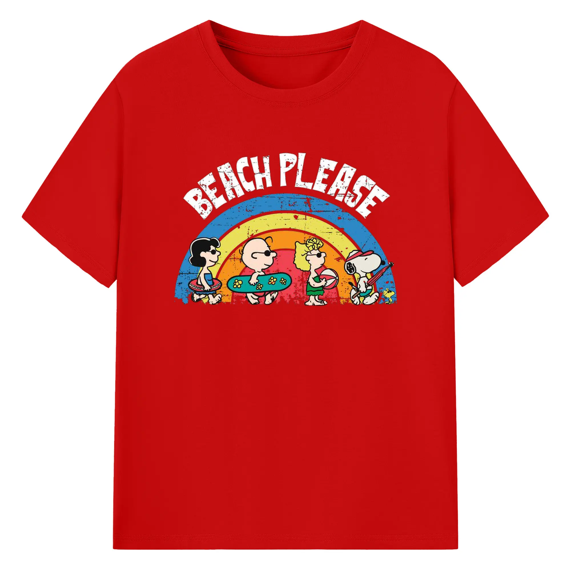 Snoopy Peanuts Beach Please DIY - 180g Cotton T-Shirt With Front Heat Transfer Print – Soft, Lightweight, Fitted Design – Comfortable Casual Wear For Sports & Everyday Use