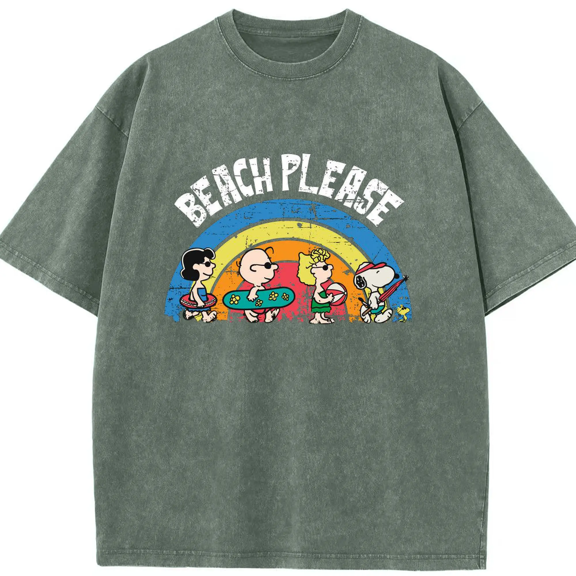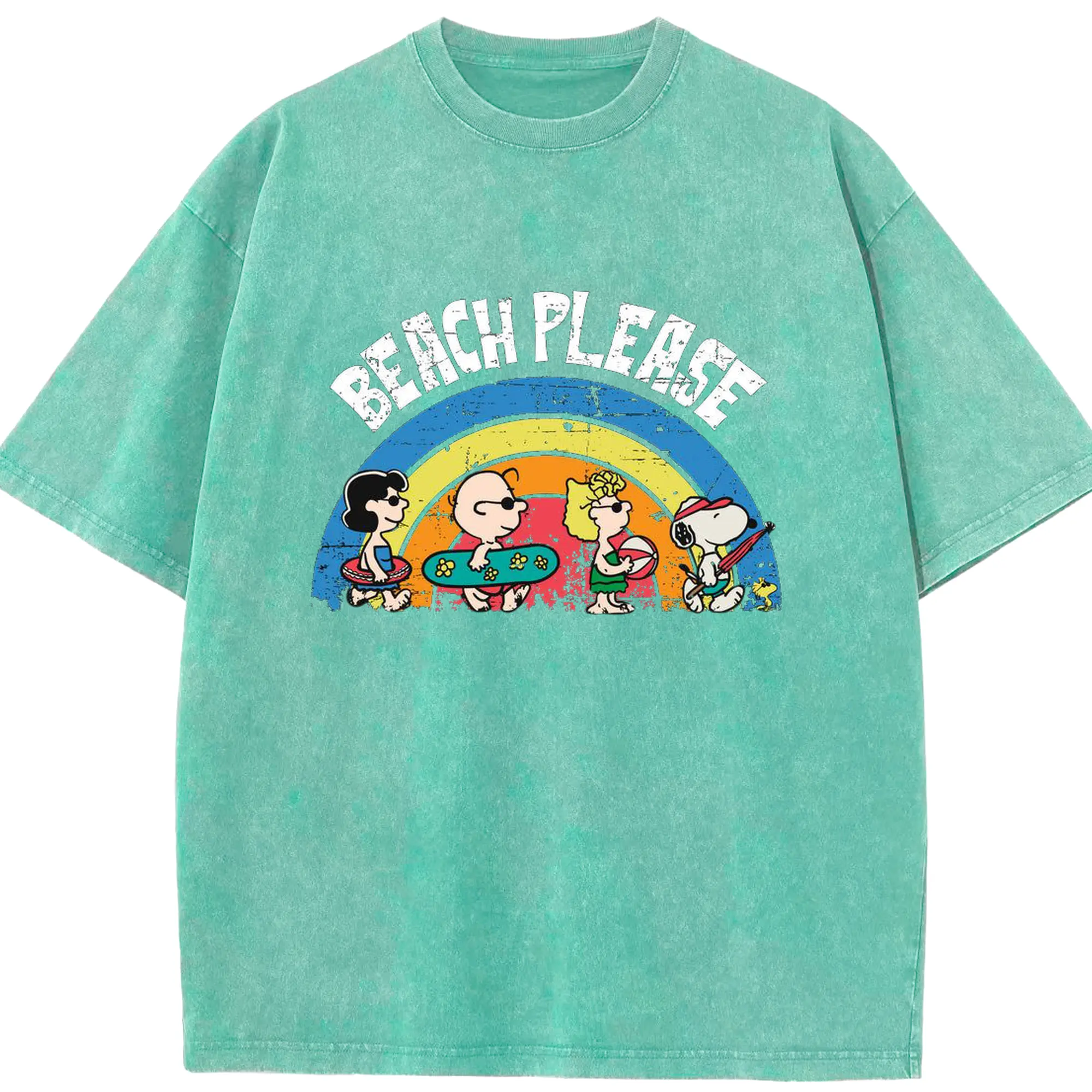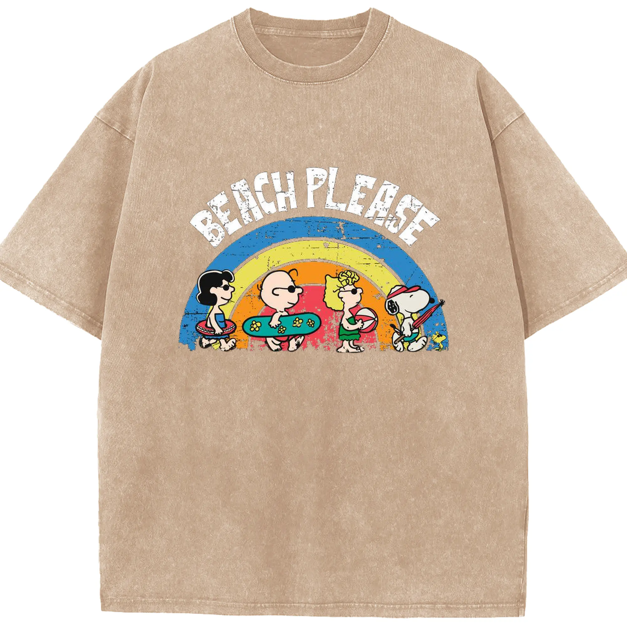 Snoopy Peanuts Beach Please DIY - Washed Vintage Look 230g Cotton Oversized T-Shirt With Front Heat Transfer Print – Soft, Lightweight, Stylish Fit – Comfortable Casual Wear For Sports & Everyday Use
