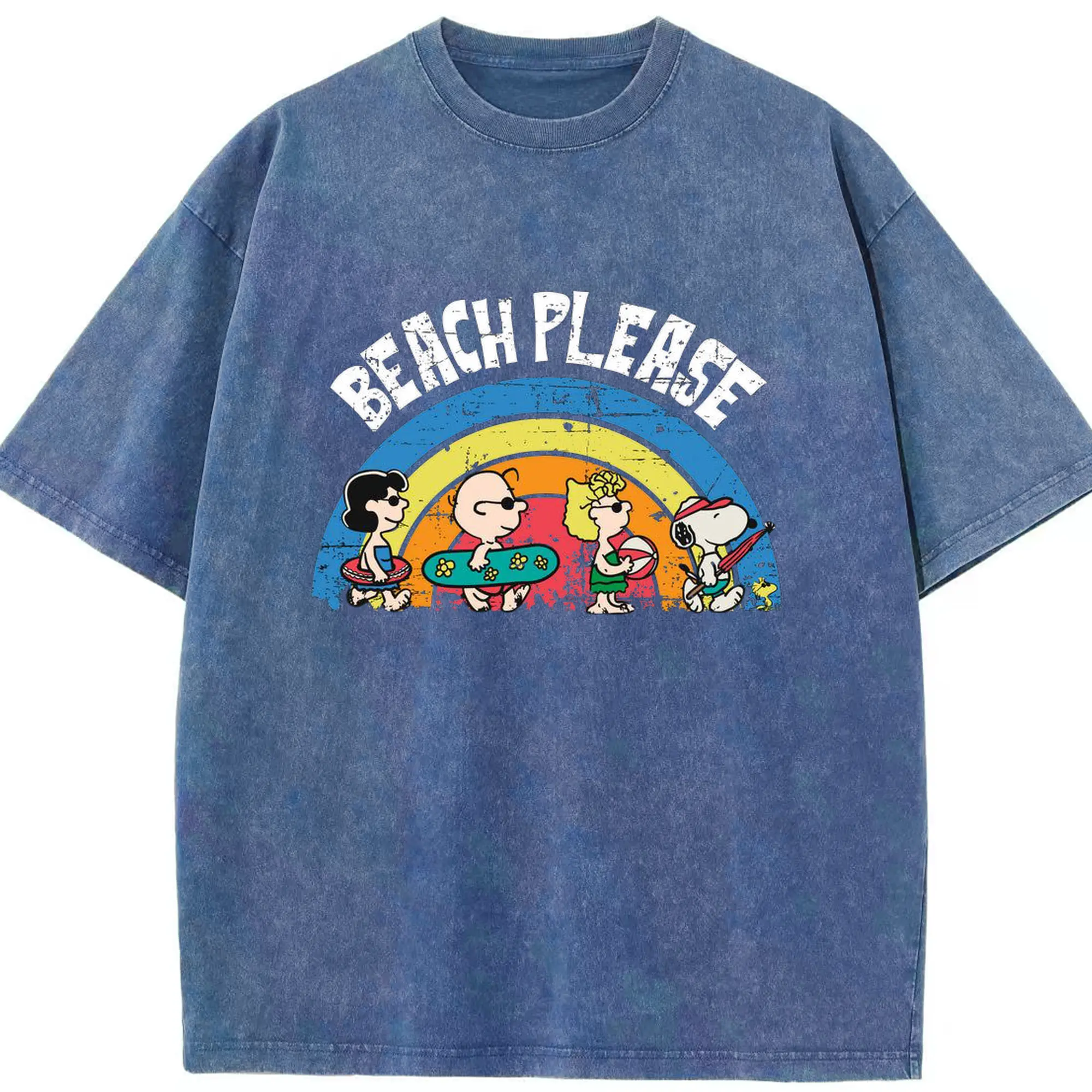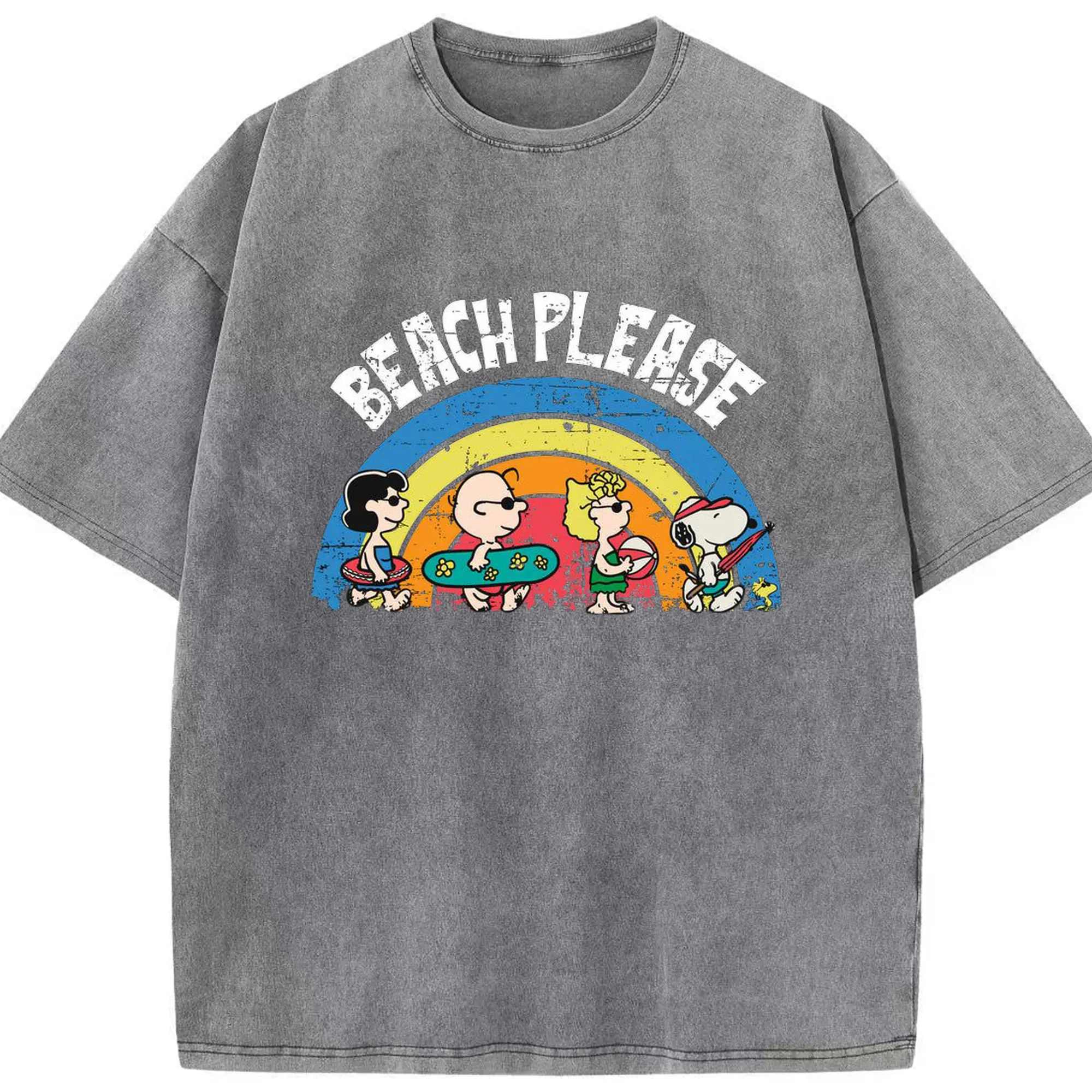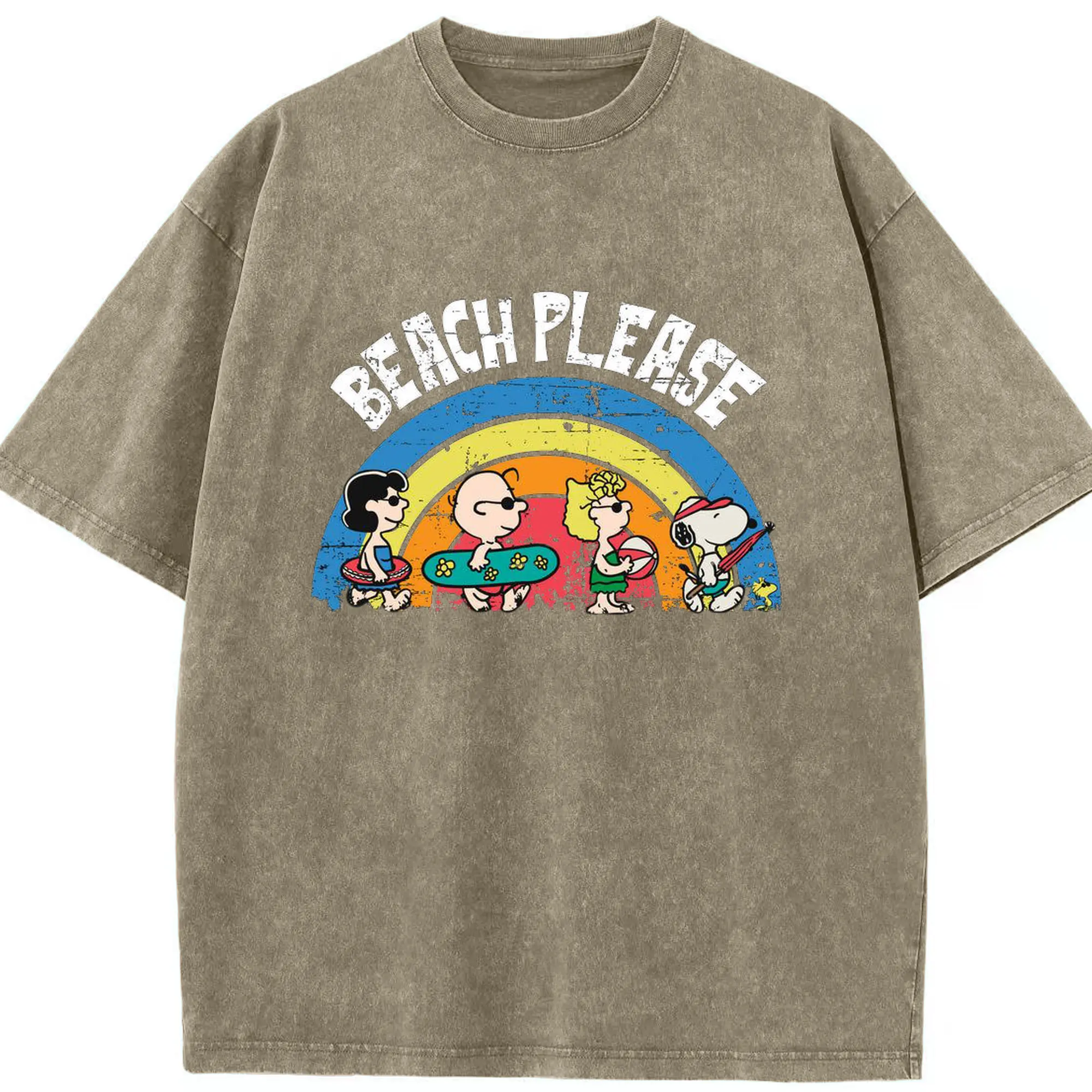 Snoopy Peanuts Beach Please DIY - Washed Vintage Look 230g Cotton Oversized T-Shirt With Front Heat Transfer Print – Soft, Lightweight, Stylish Fit – Comfortable Casual Wear For Sports & Everyday Use