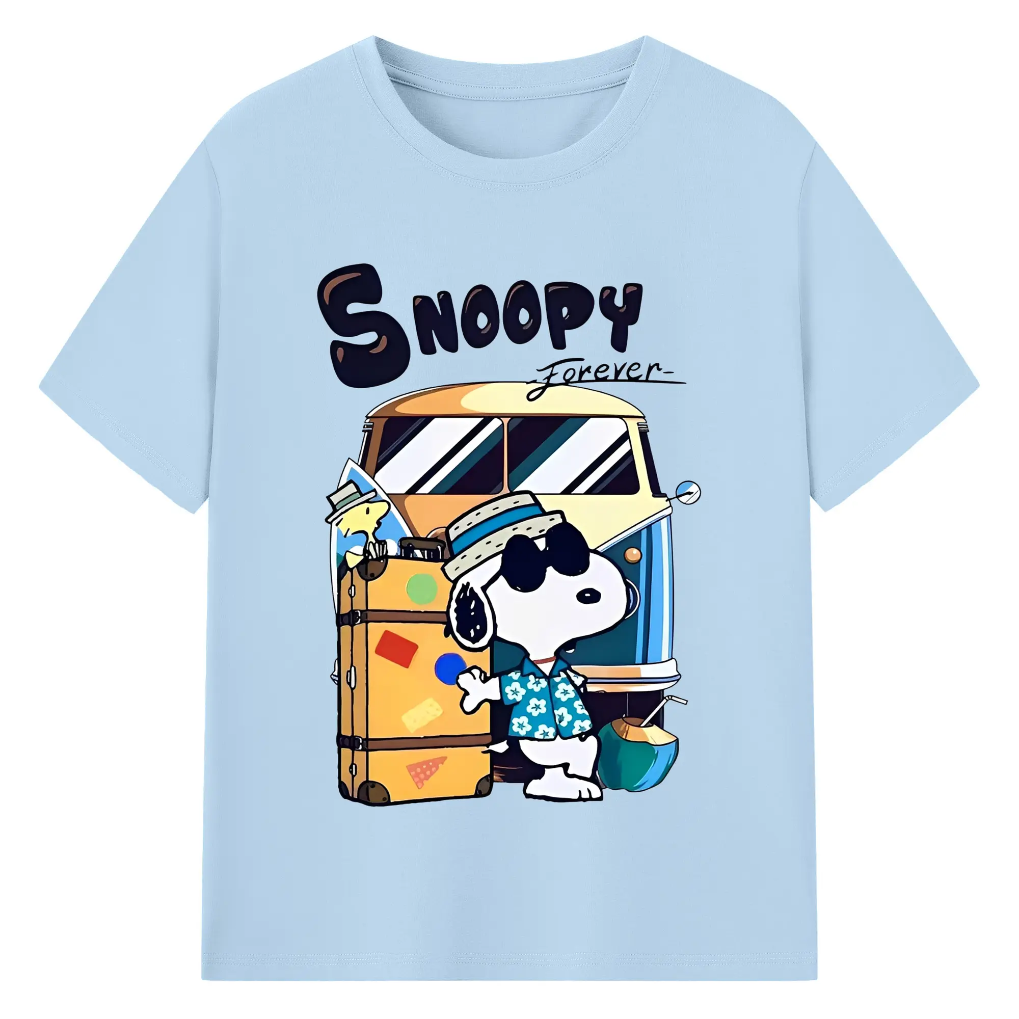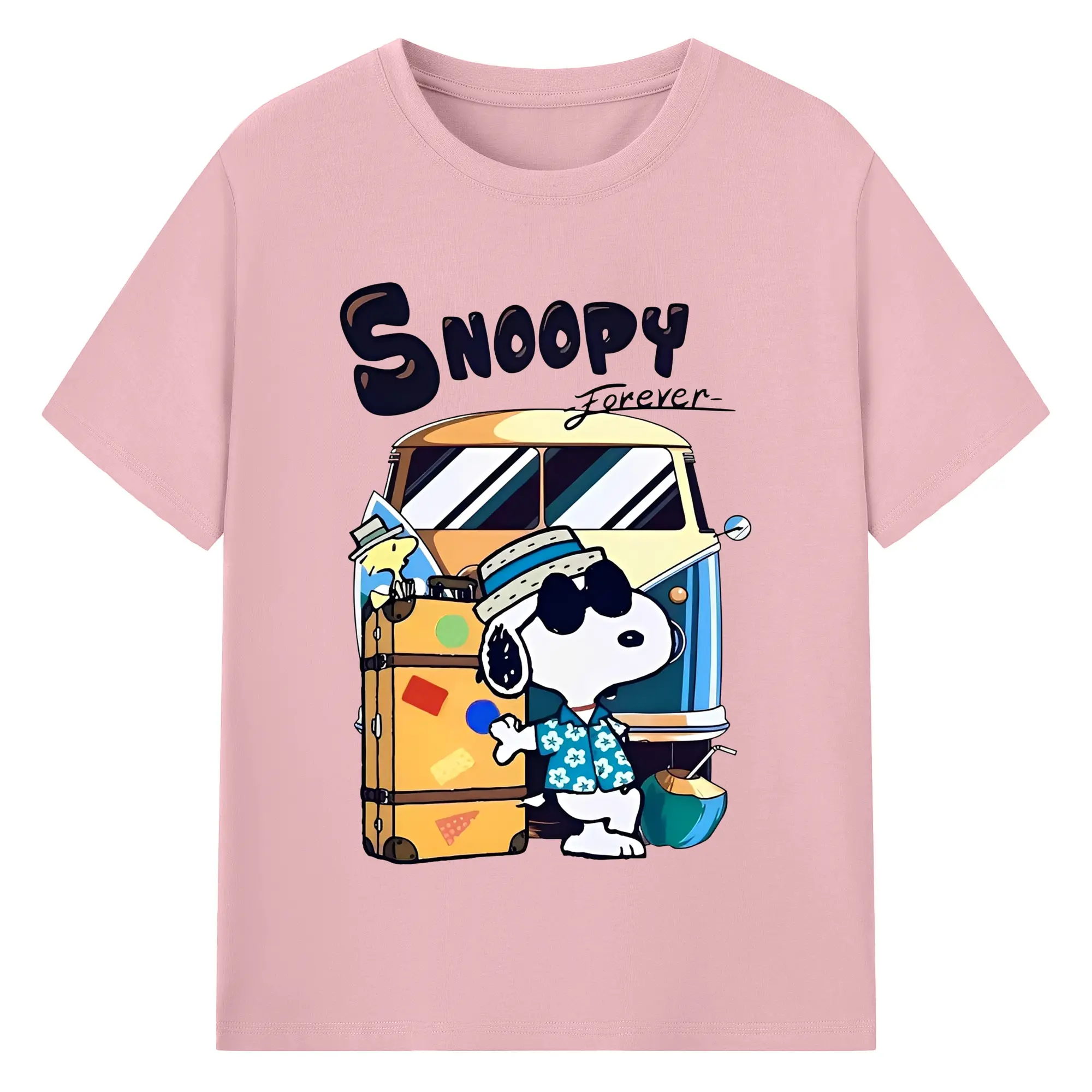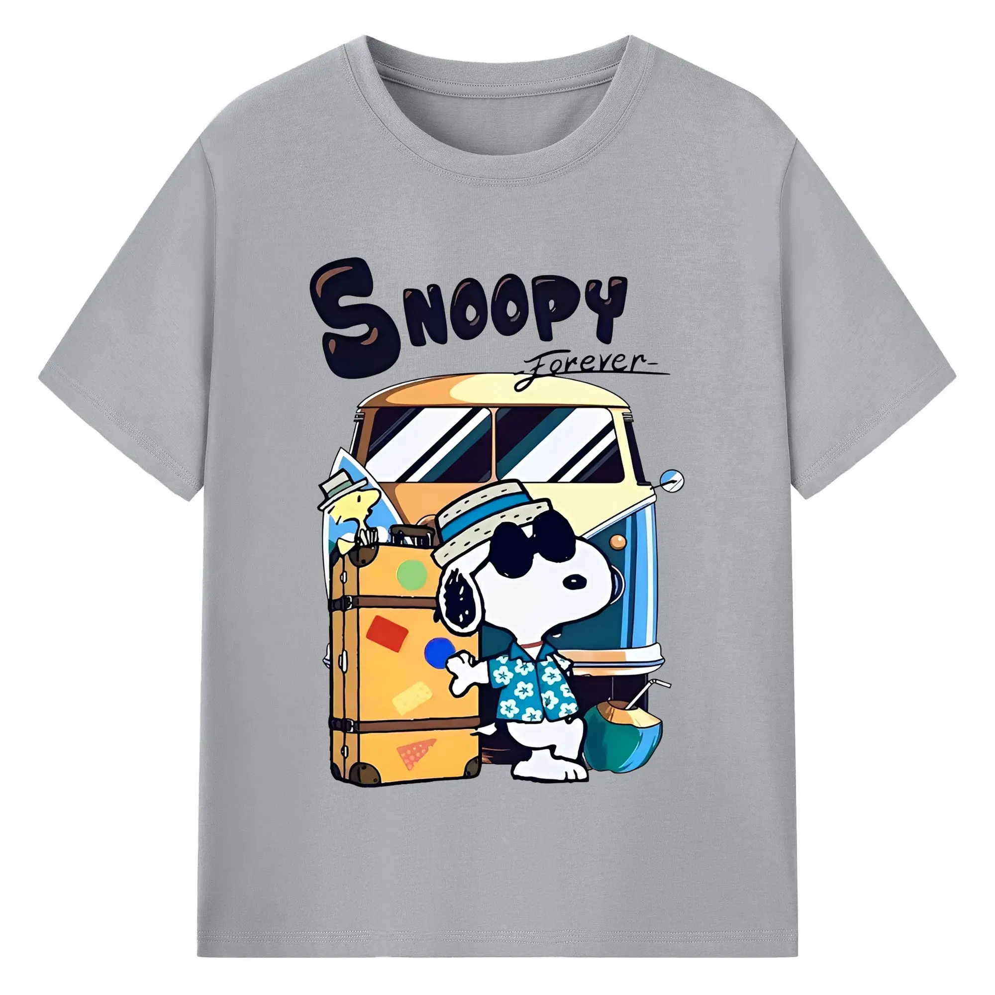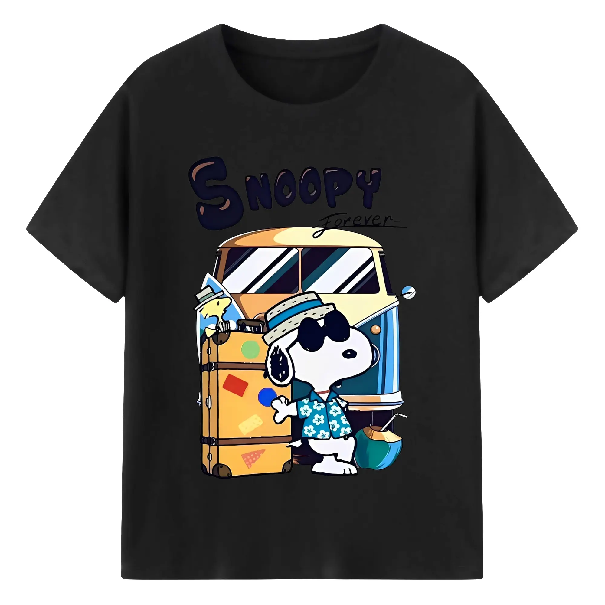 Snoopy Summer Travel DIY - 180g Cotton T-Shirt With Front Heat Transfer Print – Soft, Lightweight, Fitted Design – Comfortable Casual Wear For Sports & Everyday Use