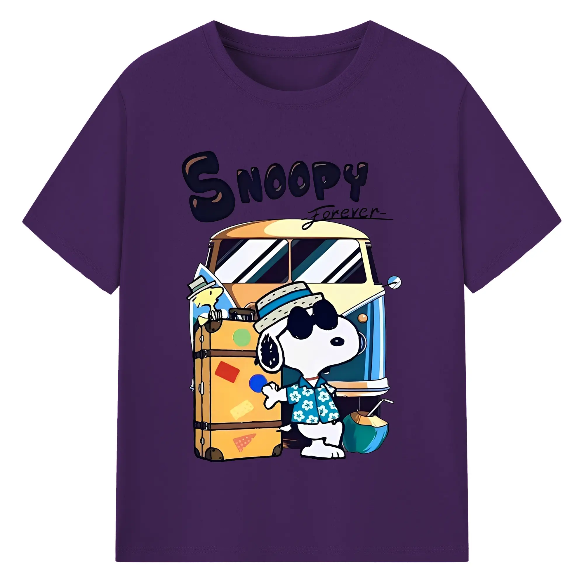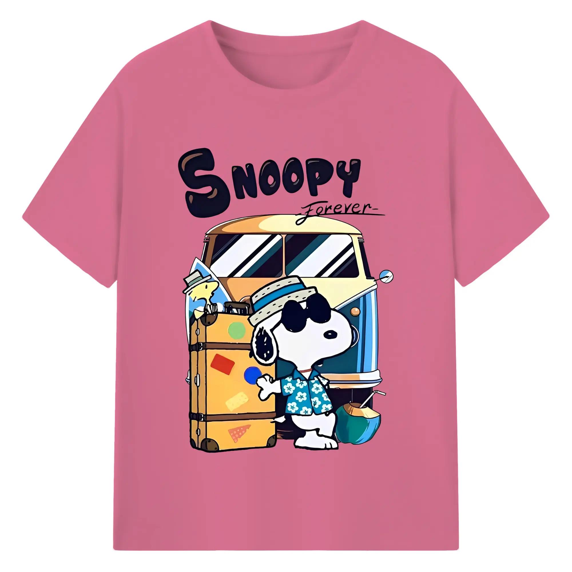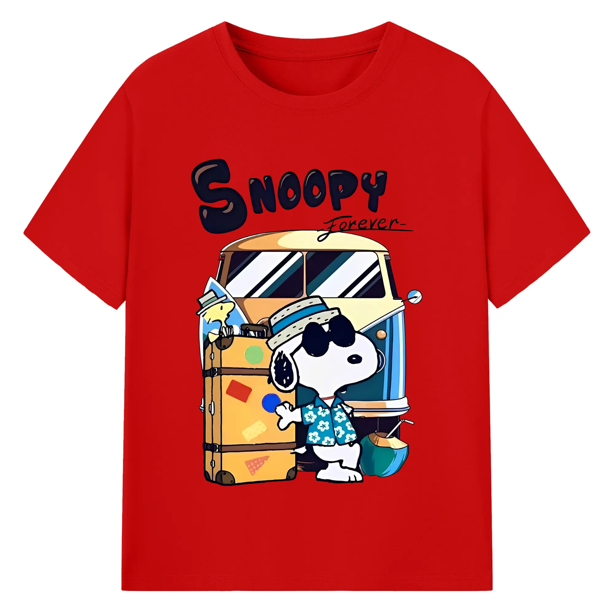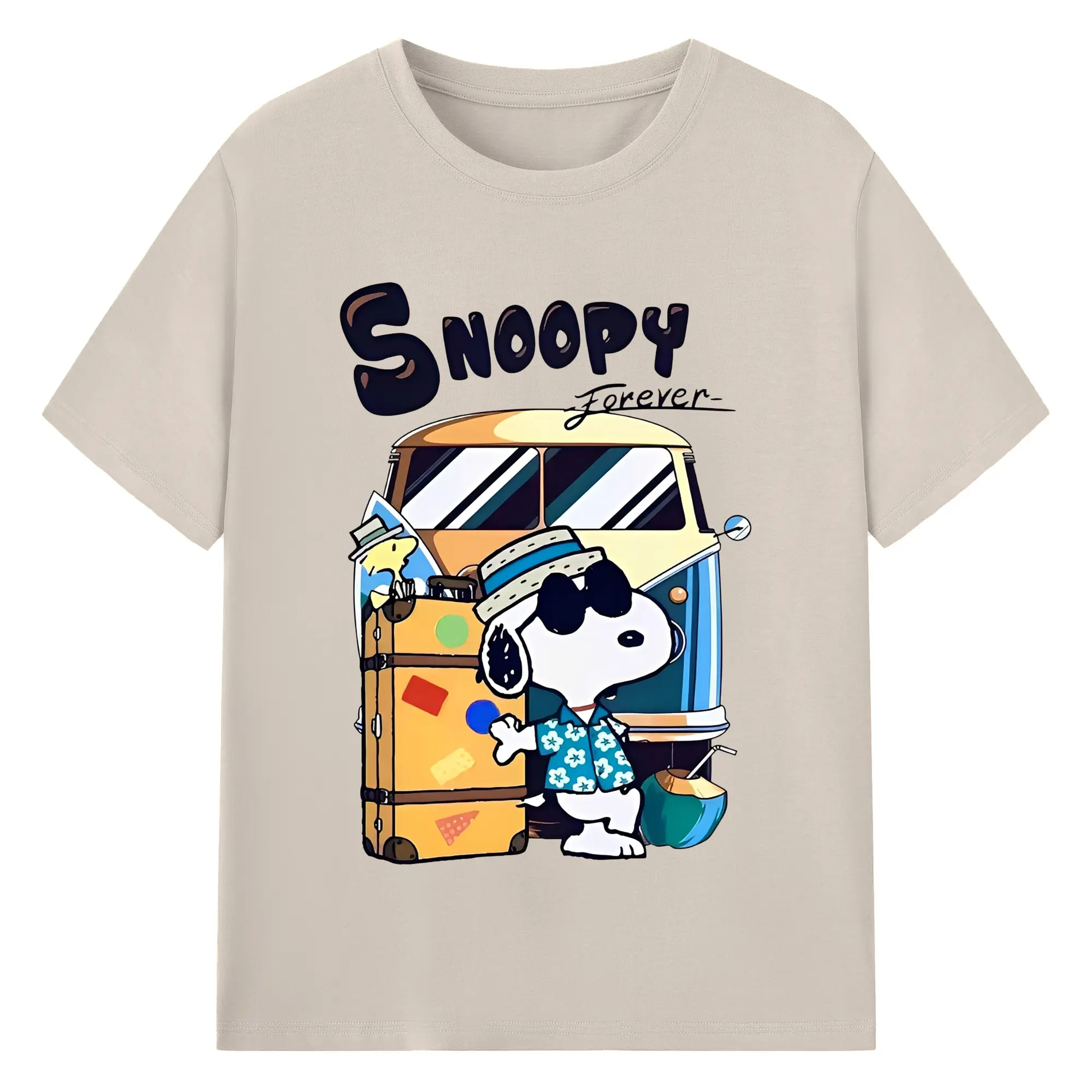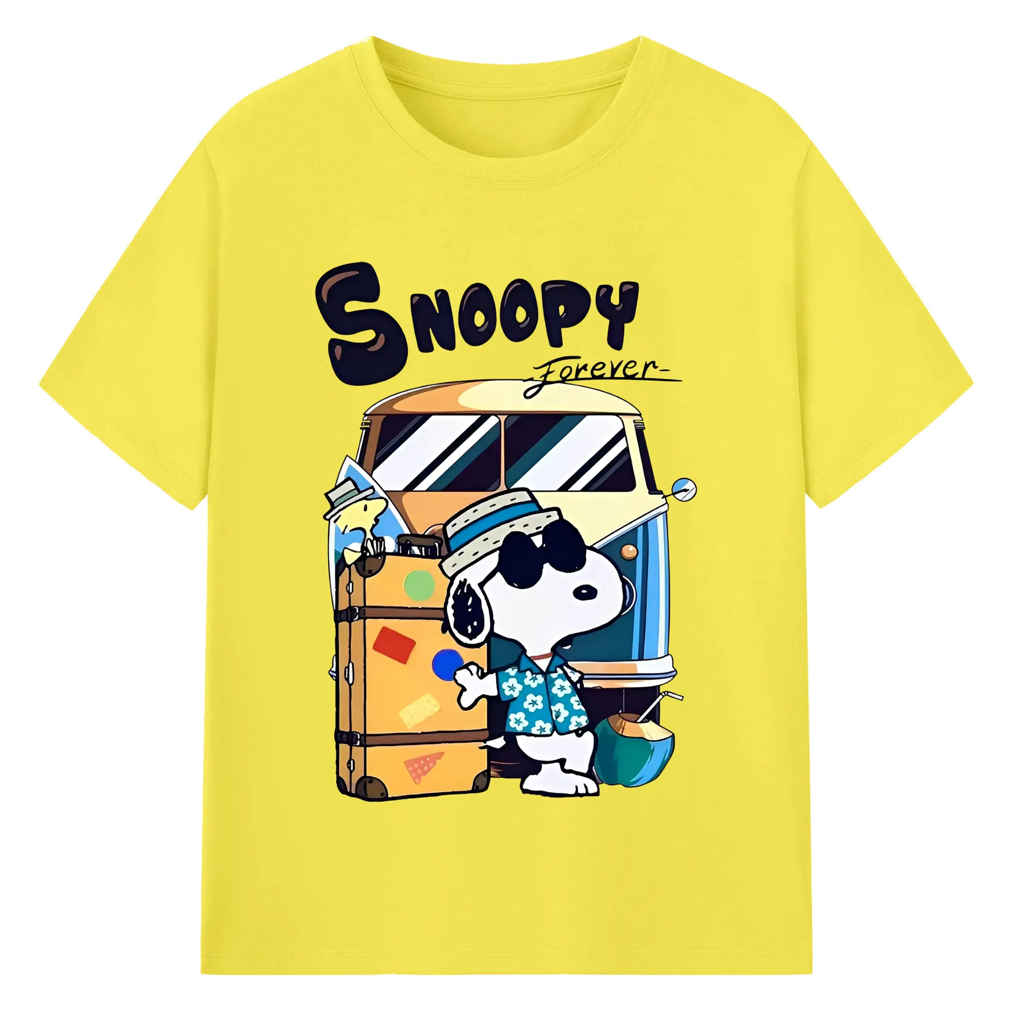 Snoopy Summer Travel DIY - 180g Cotton T-Shirt With Front Heat Transfer Print – Soft, Lightweight, Fitted Design – Comfortable Casual Wear For Sports & Everyday Use