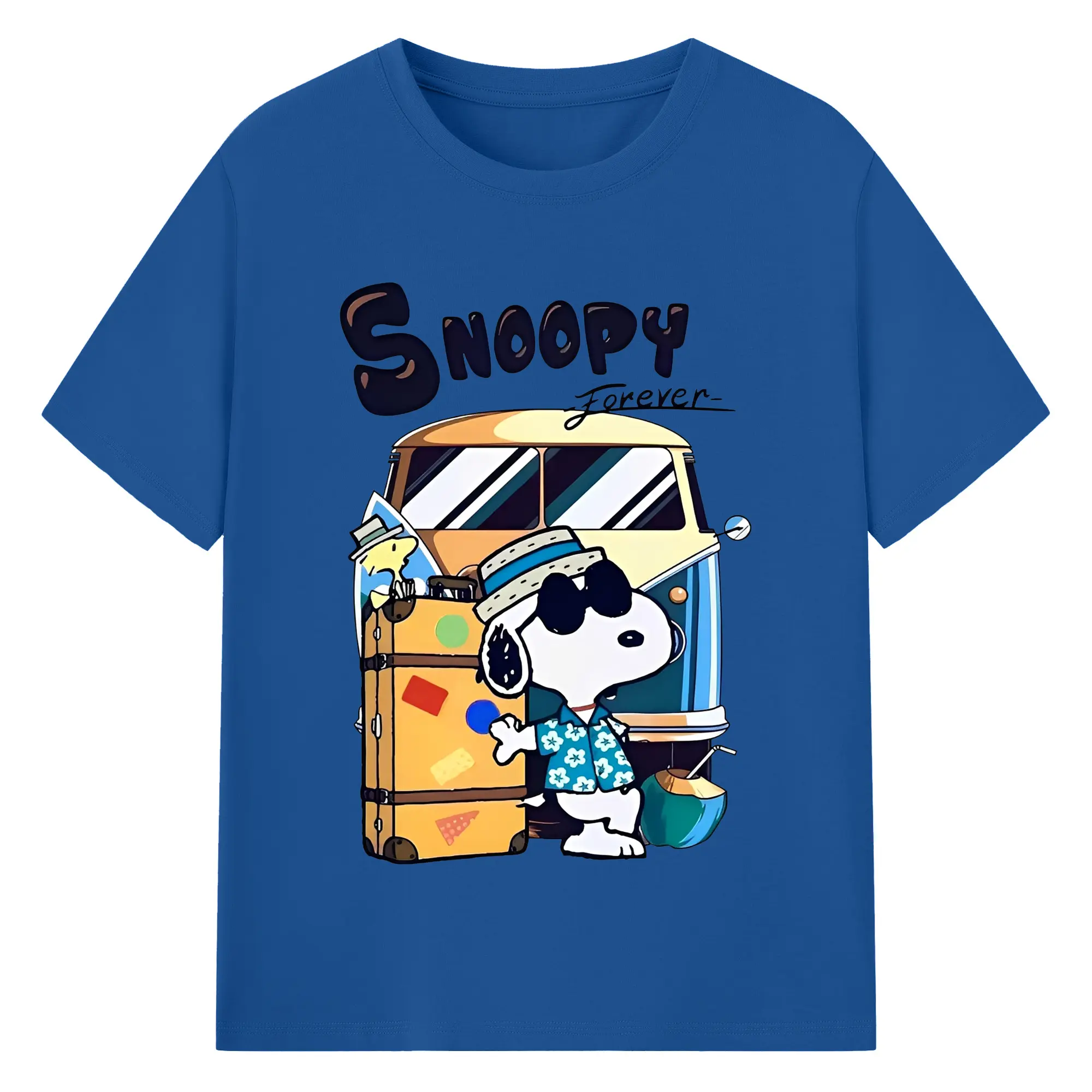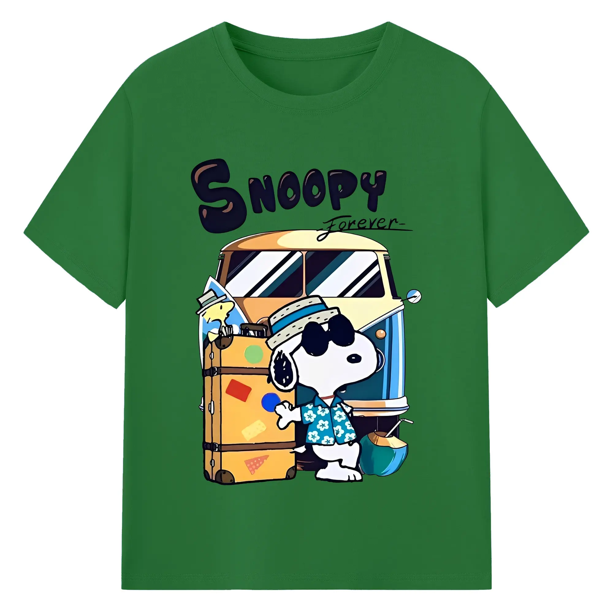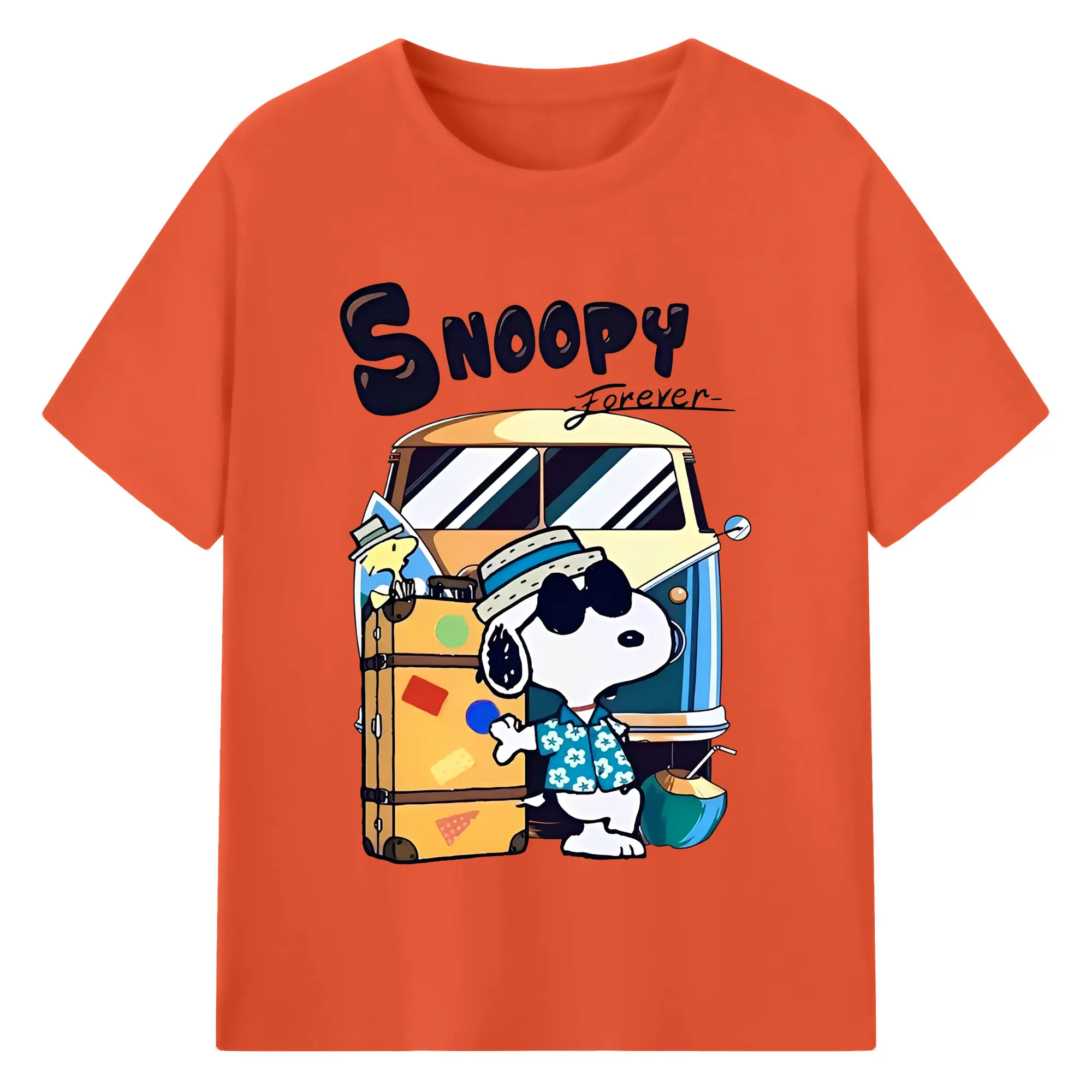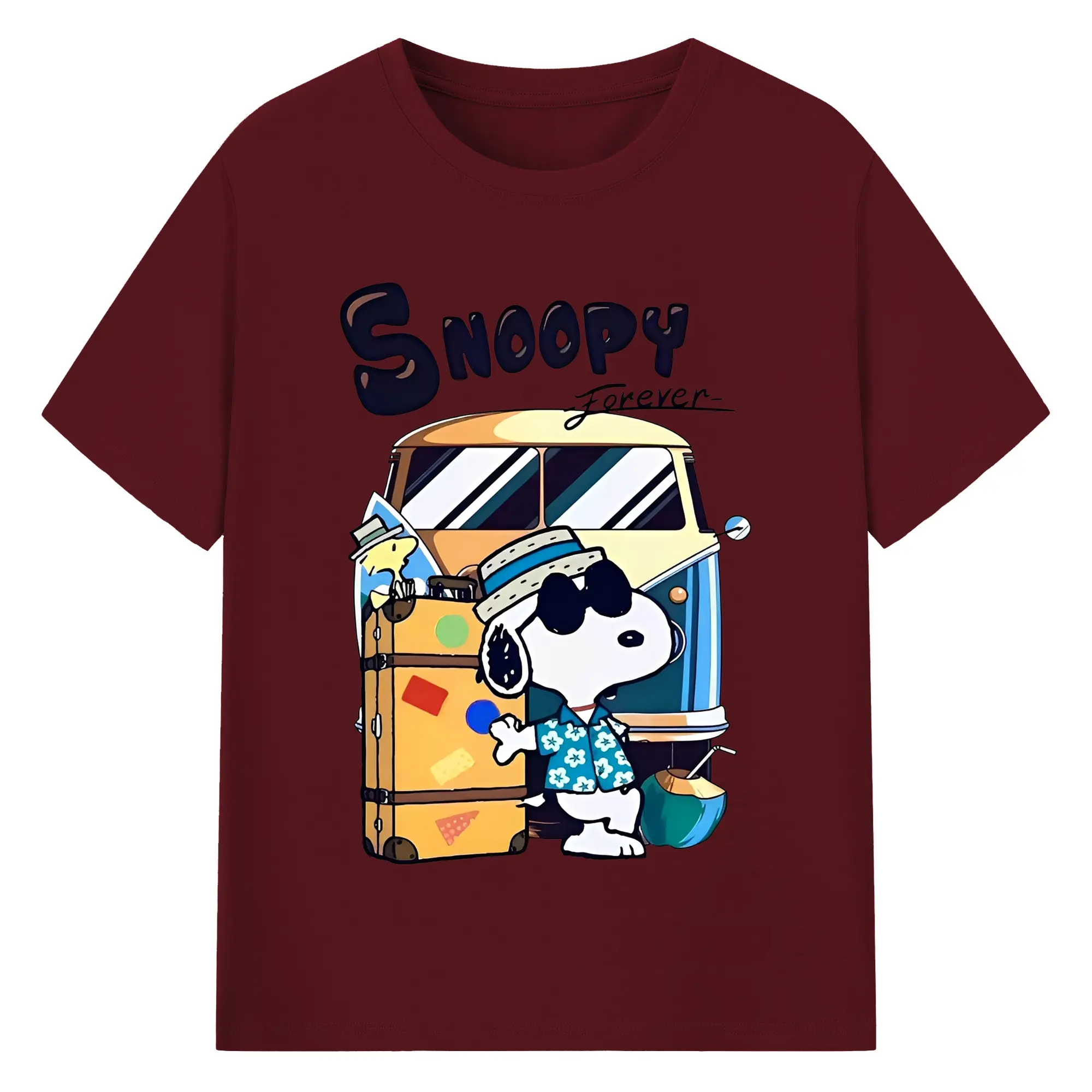 Snoopy Summer Travel DIY - 180g Cotton T-Shirt With Front Heat Transfer Print – Soft, Lightweight, Fitted Design – Comfortable Casual Wear For Sports & Everyday Use