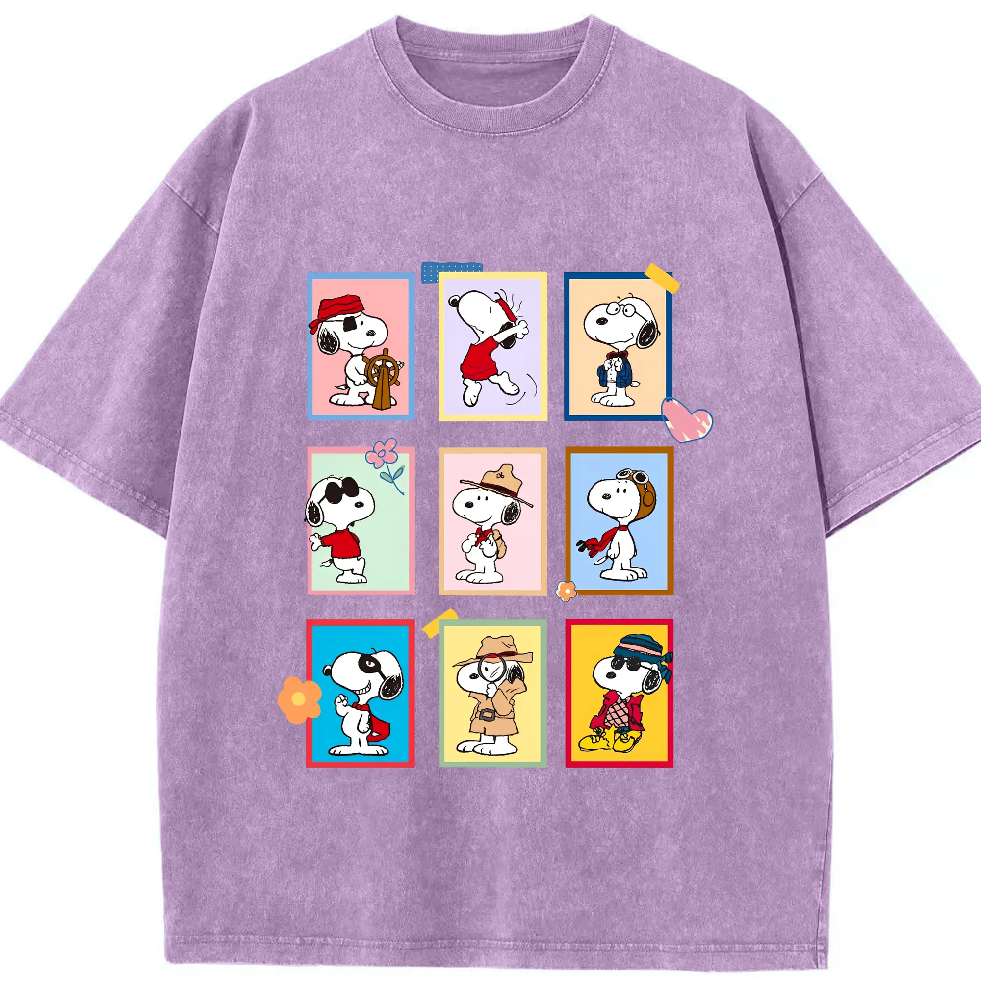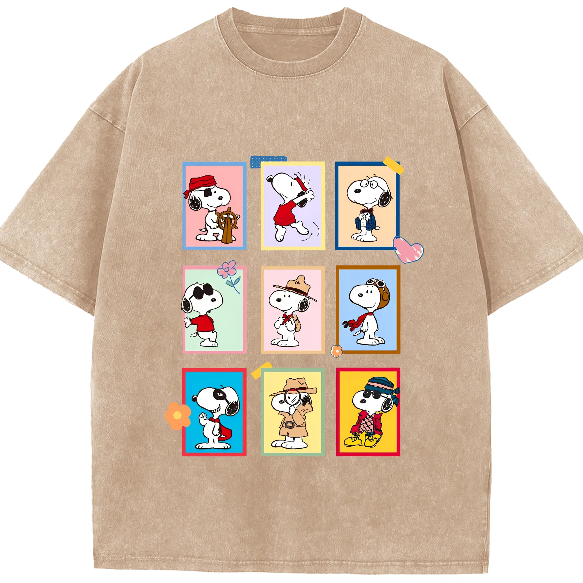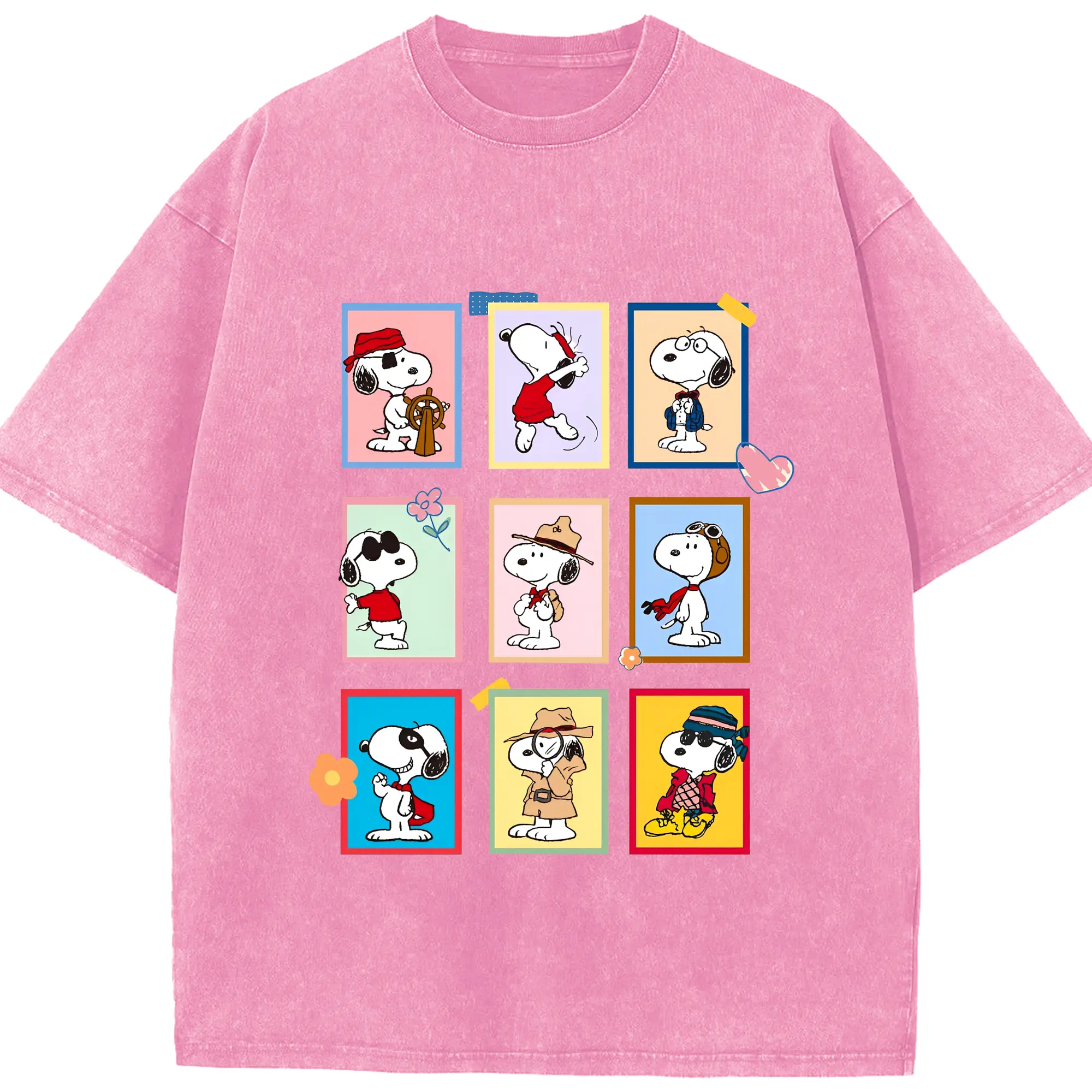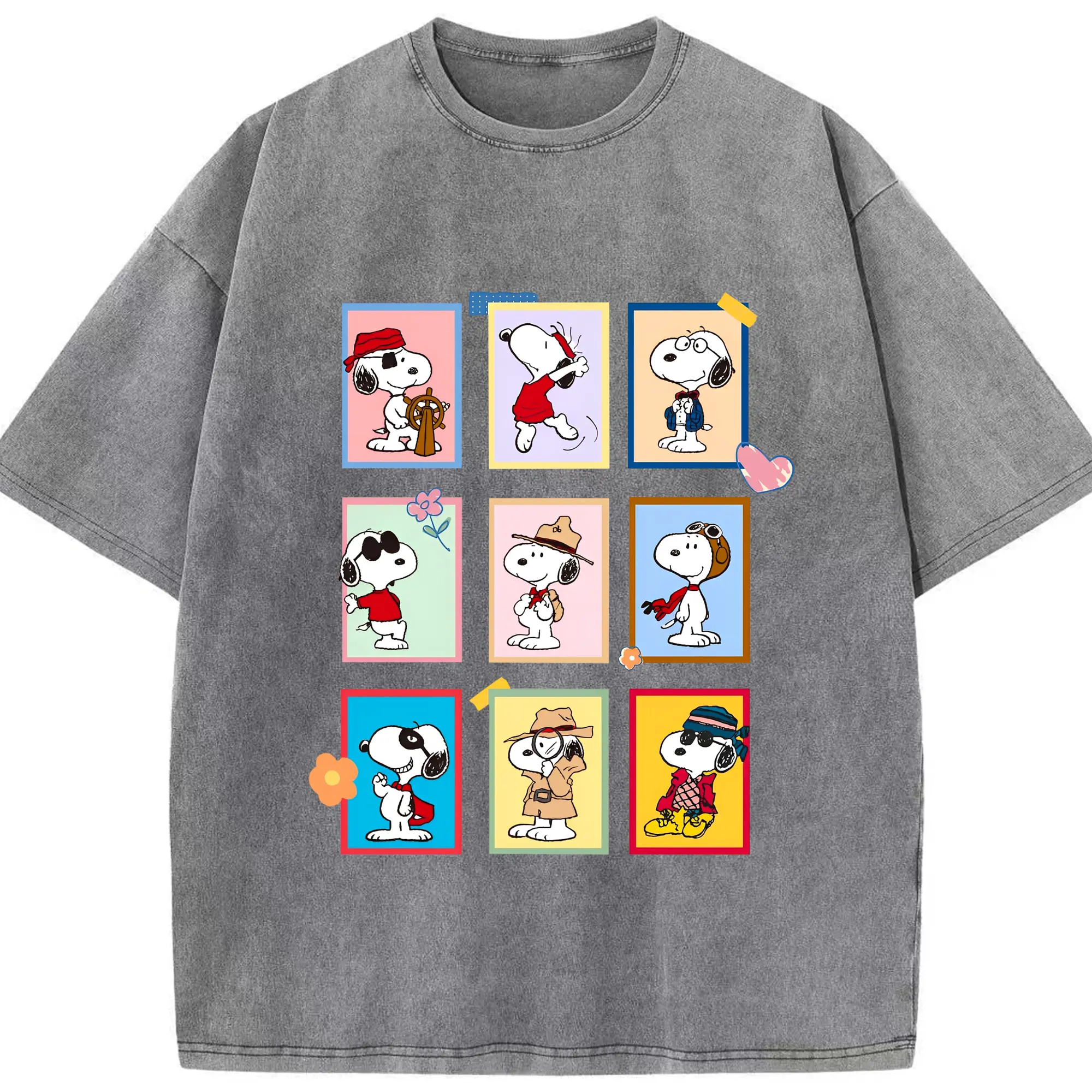 Snoopy-Inspired Creative Cartoon DIY - Washed Vintage Look 230g Cotton Oversized T-Shirt With Front Heat Transfer Print – Soft, Lightweight, Stylish Fit – Comfortable Casual Wear For Sports & Everyday Use