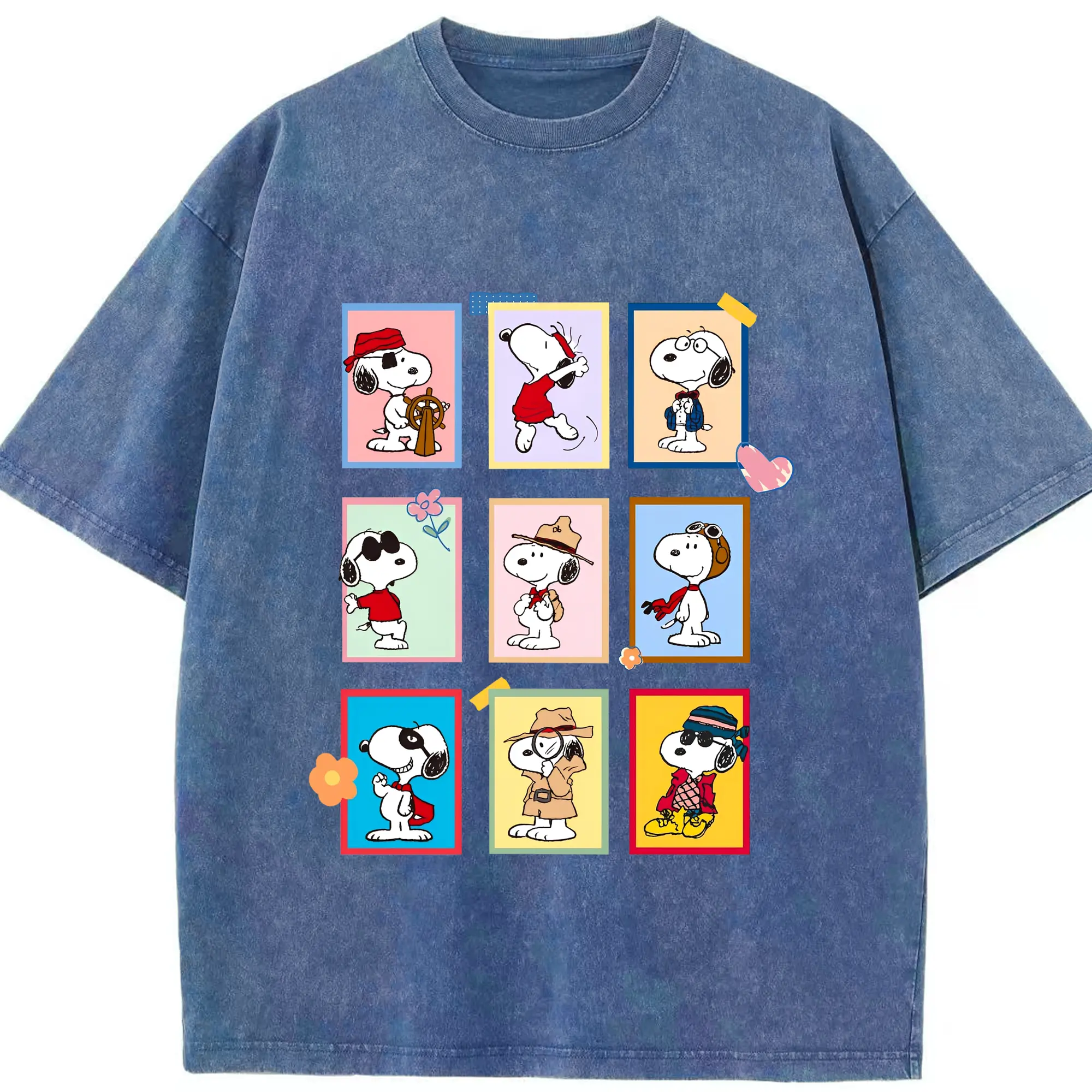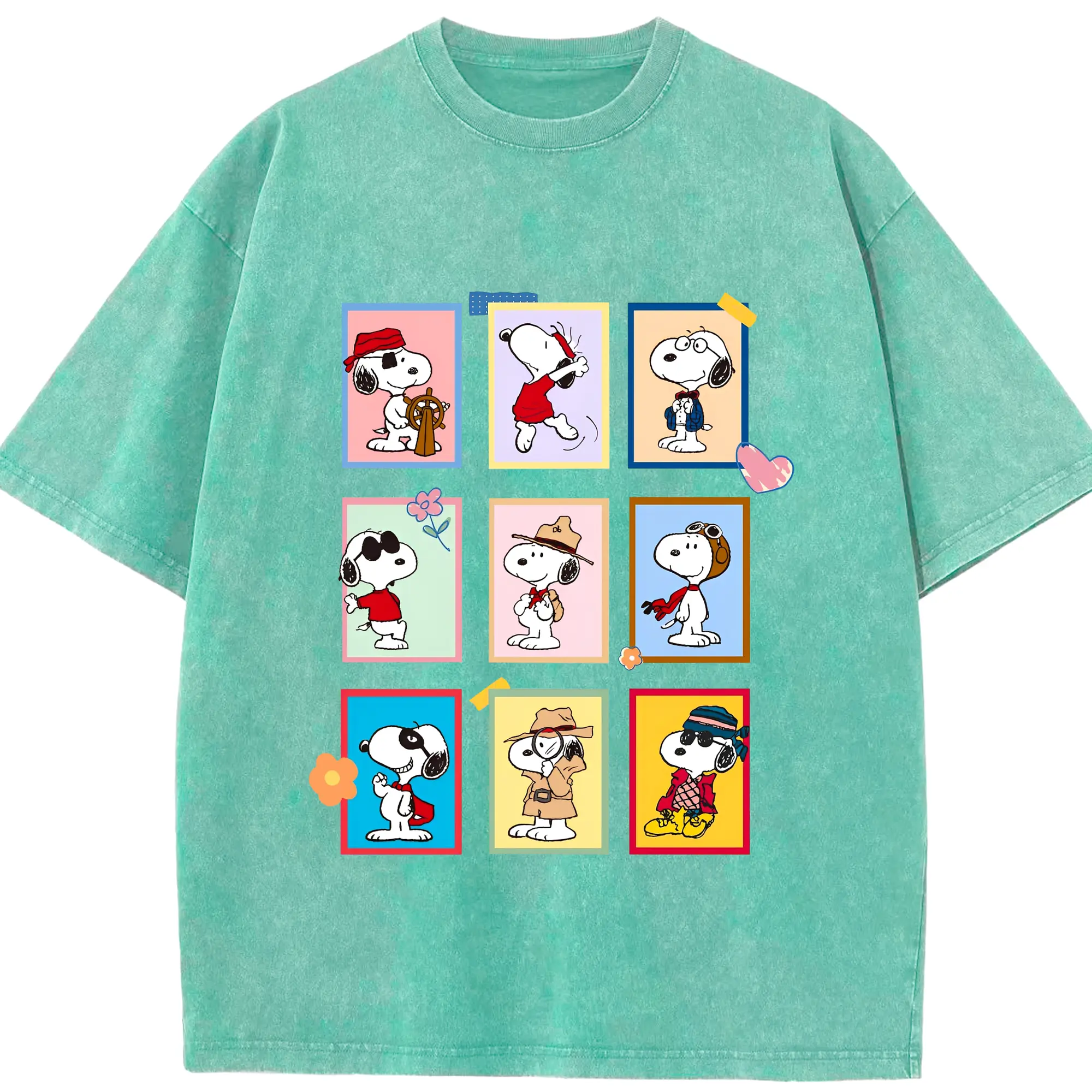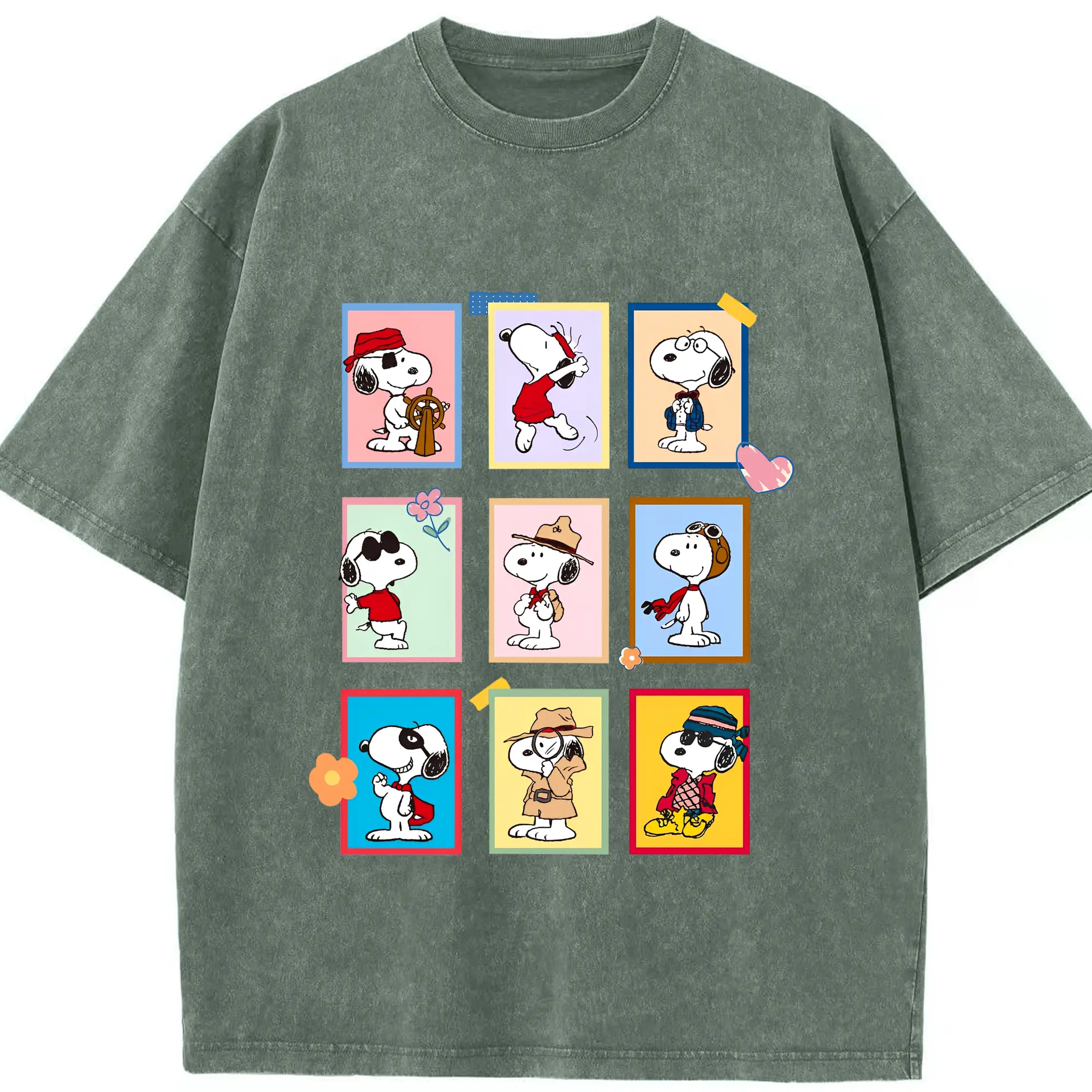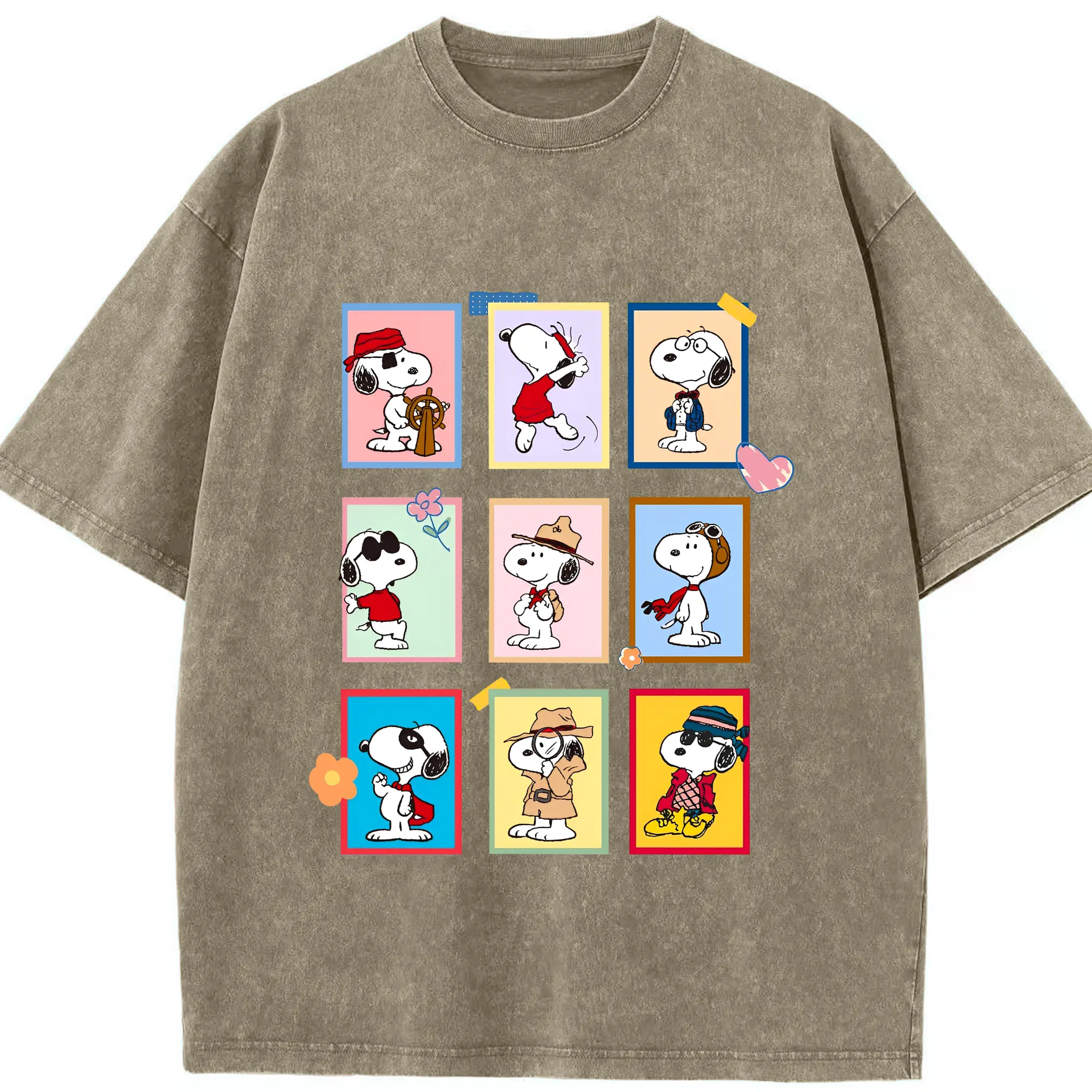 Snoopy-Inspired Creative Cartoon DIY - Washed Vintage Look 230g Cotton Oversized T-Shirt With Front Heat Transfer Print – Soft, Lightweight, Stylish Fit – Comfortable Casual Wear For Sports & Everyday Use