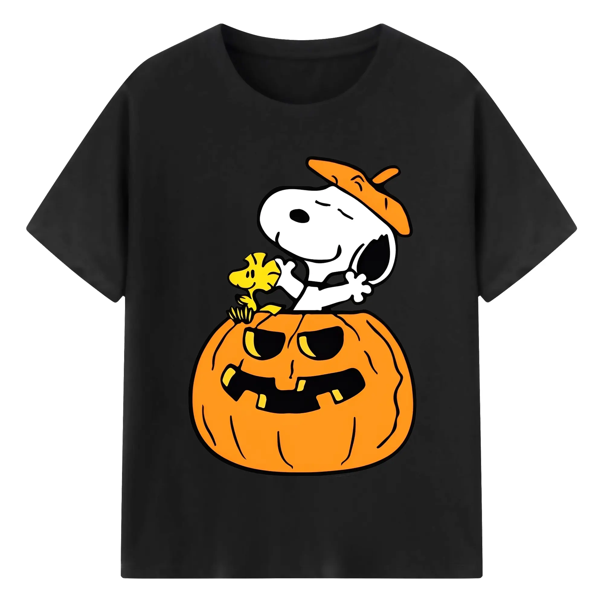 Snoopy-Inspired Halloween Fun Trendy DIY - 180g Cotton T-Shirt With Front Heat Transfer Print – Soft, Lightweight, Fitted Design – Comfortable Casual Wear For Sports & Everyday Use