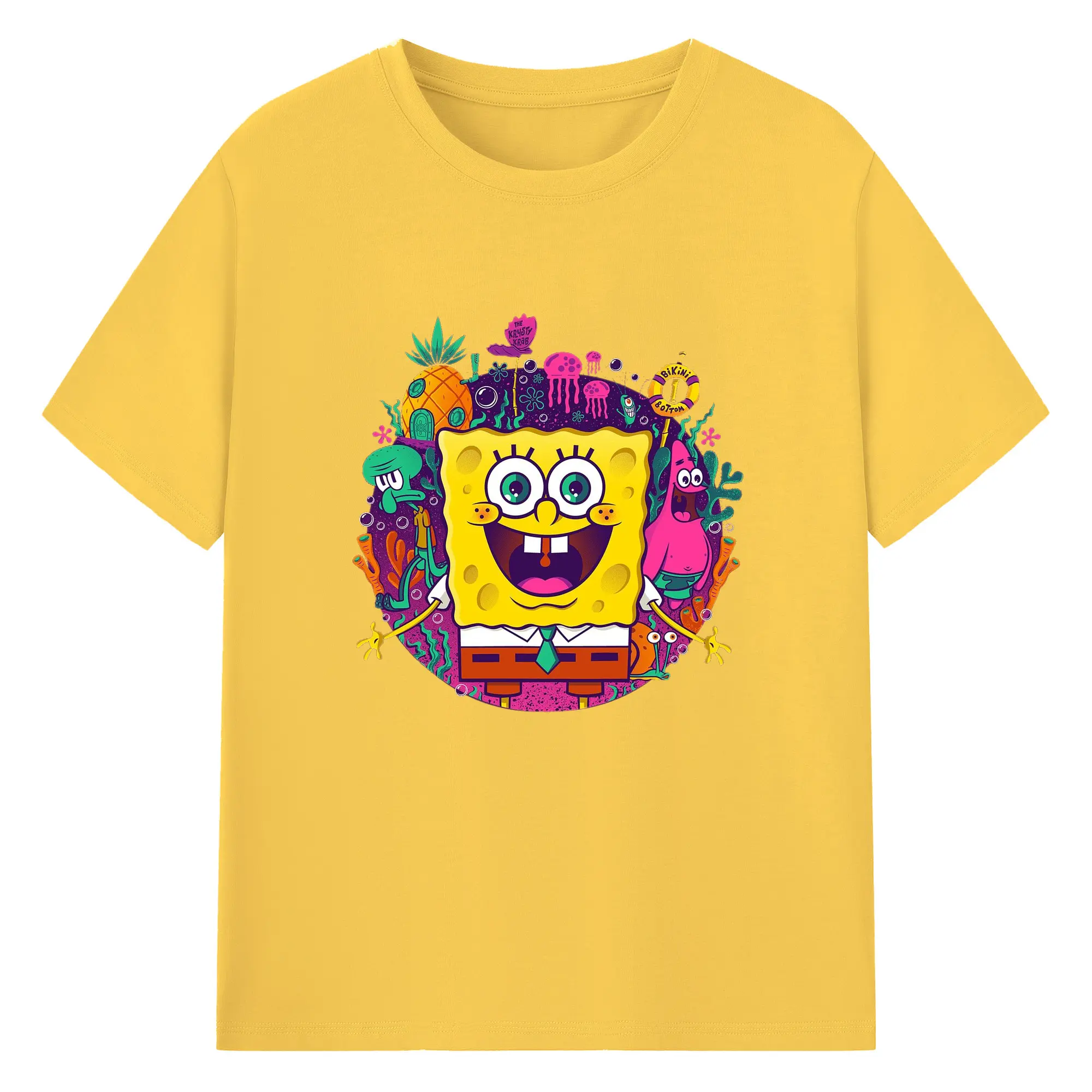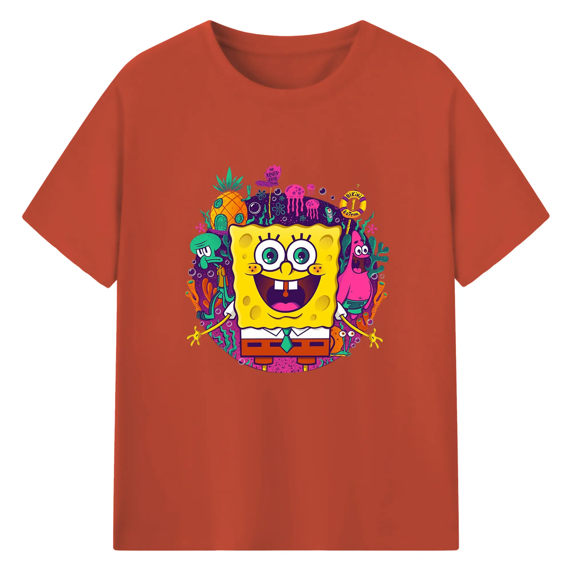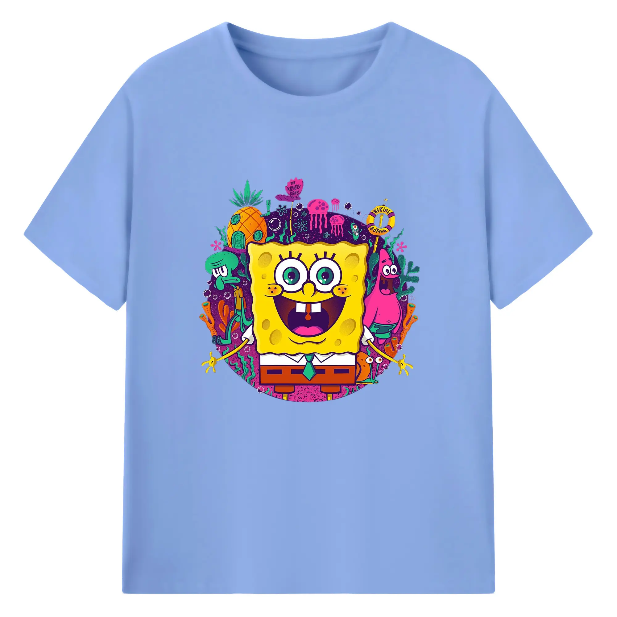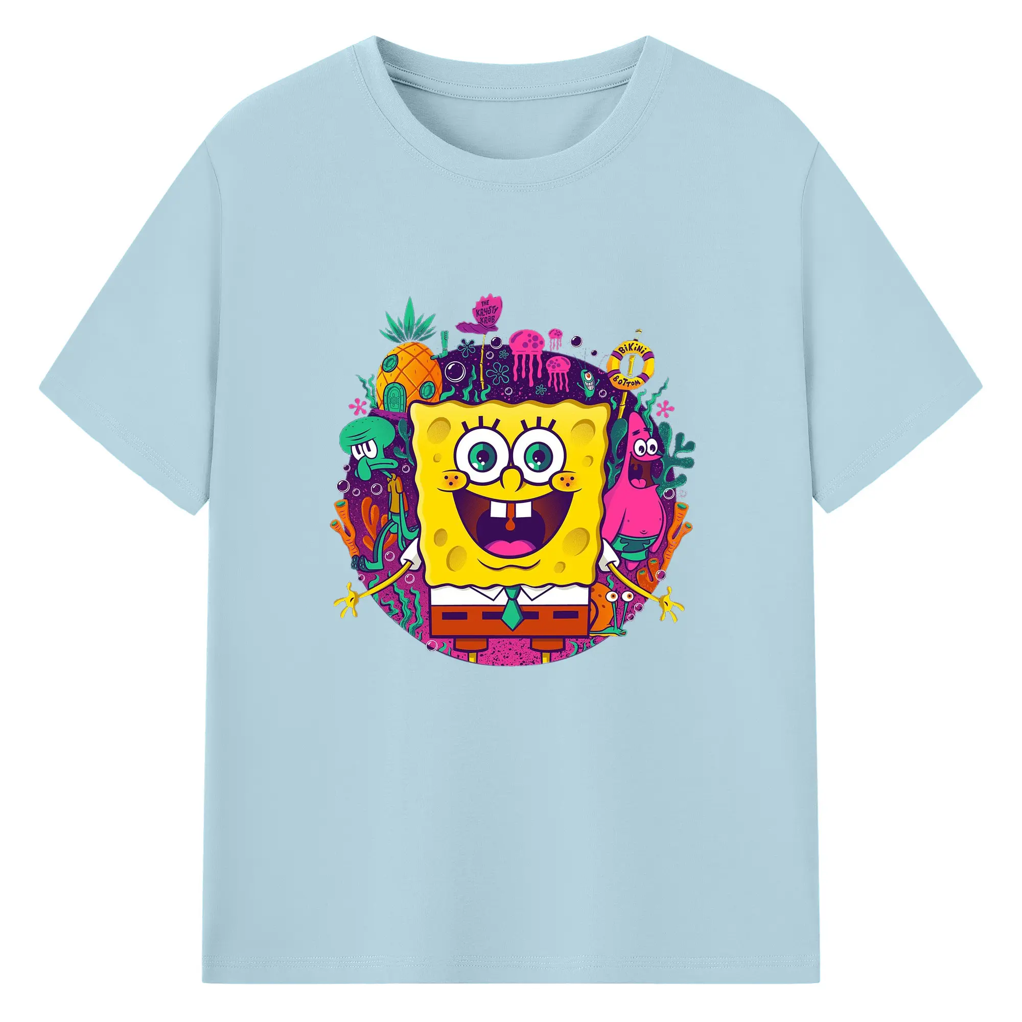 SpongeBob Bikini Bottom Cartoon Group DIY - 180g Cotton T-Shirt With Front Heat Transfer Print – Soft, Lightweight, Fitted Design – Comfortable Casual Wear For Sports & Everyday Use