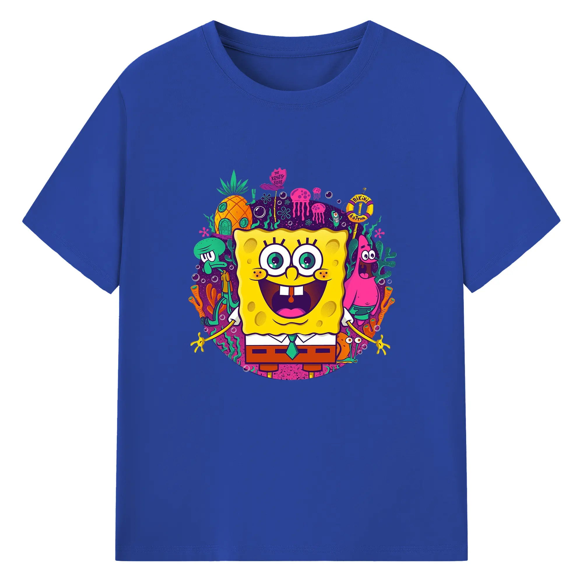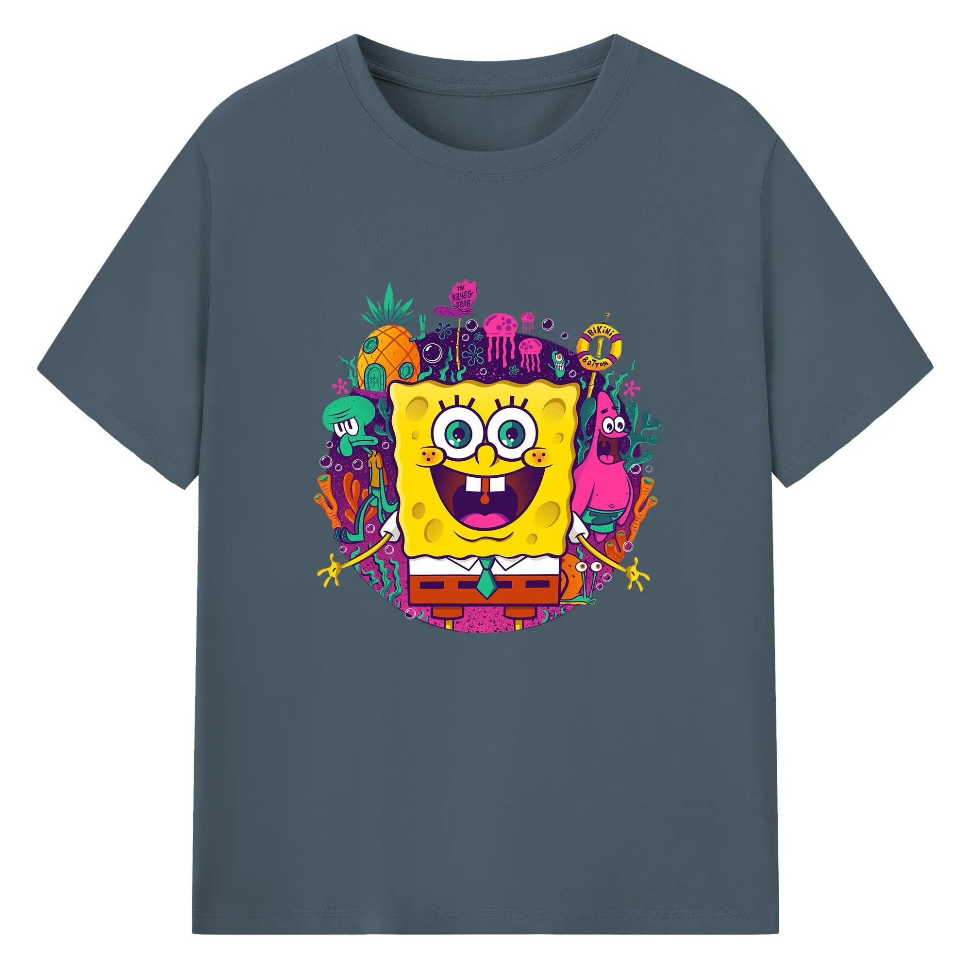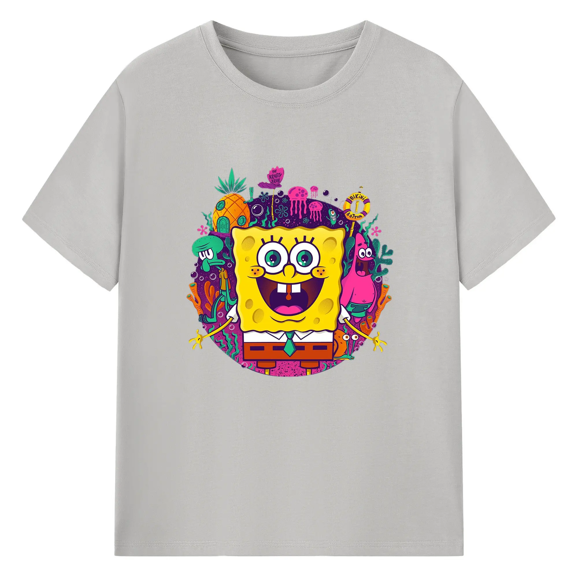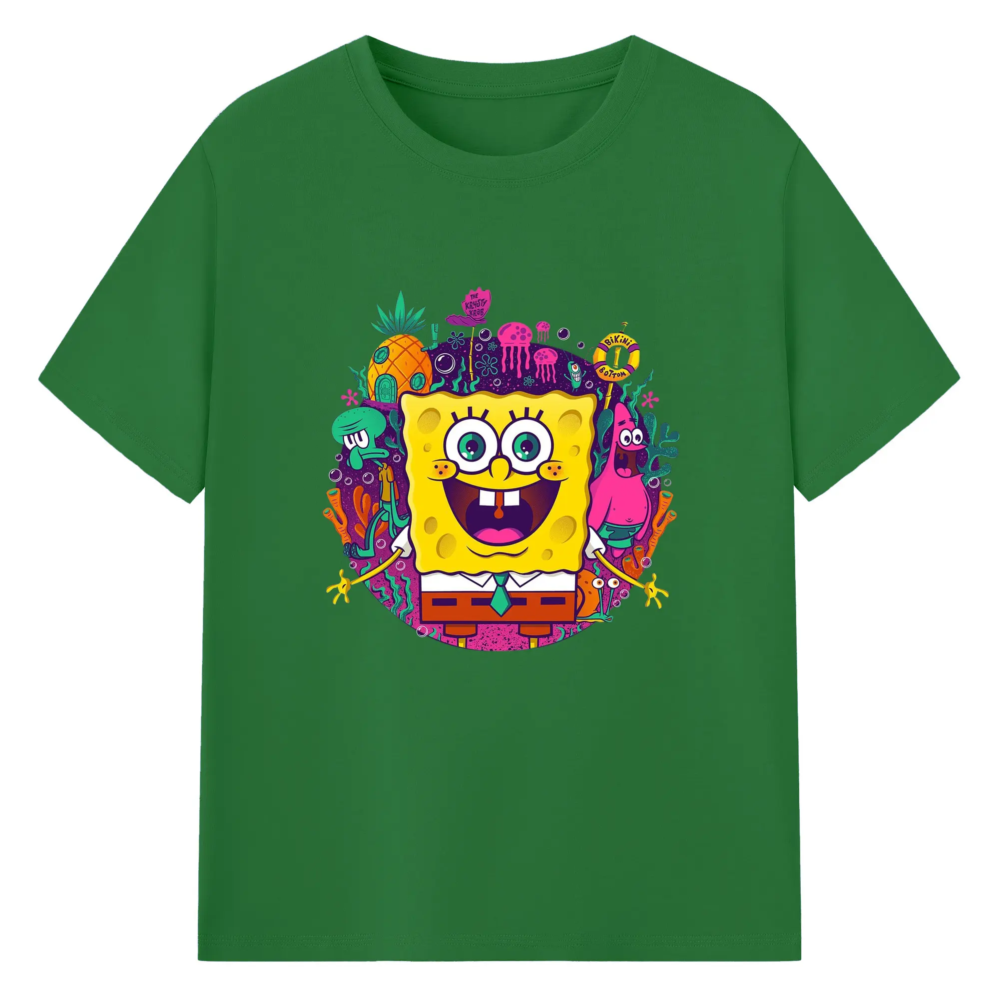 SpongeBob Bikini Bottom Cartoon Group DIY - 180g Cotton T-Shirt With Front Heat Transfer Print – Soft, Lightweight, Fitted Design – Comfortable Casual Wear For Sports & Everyday Use