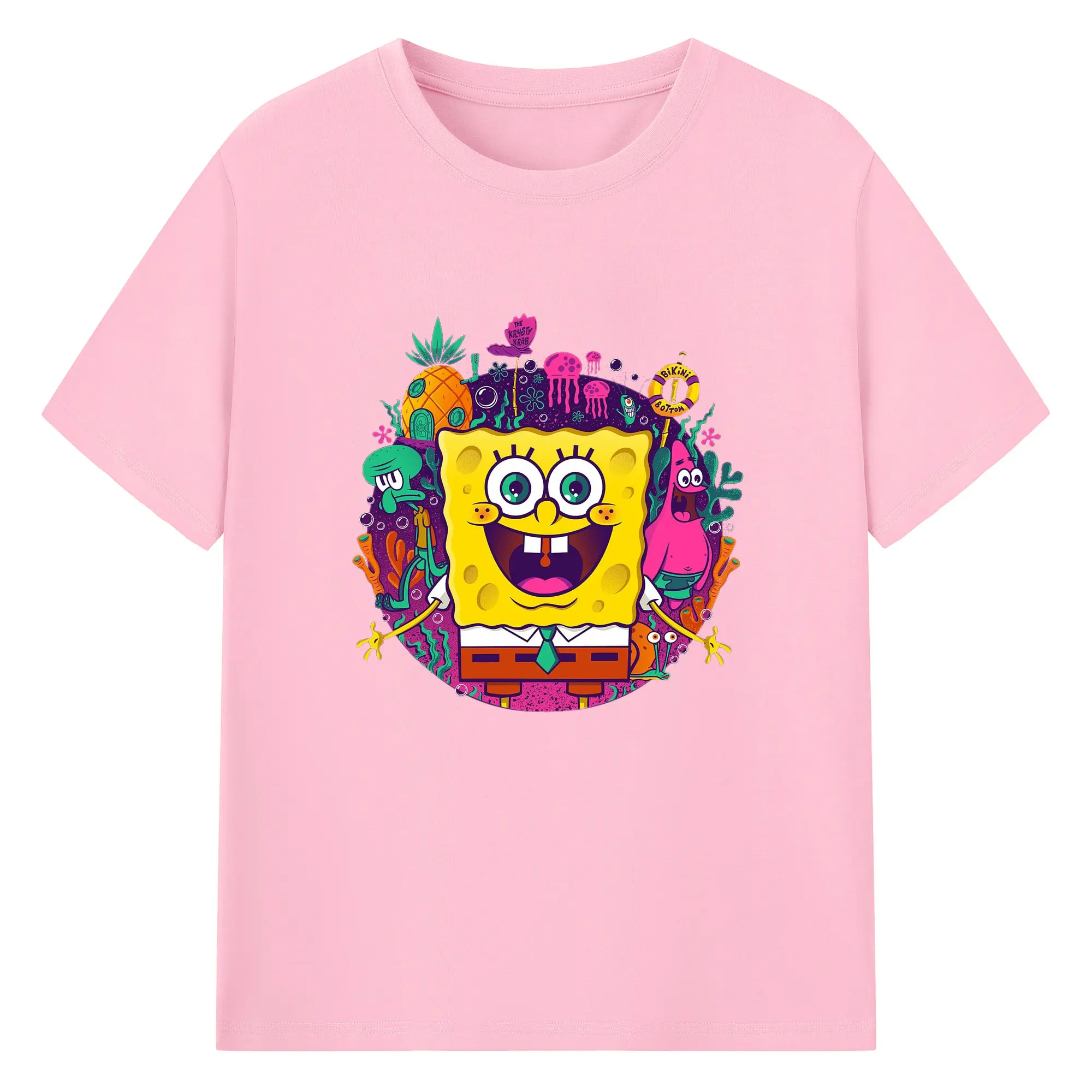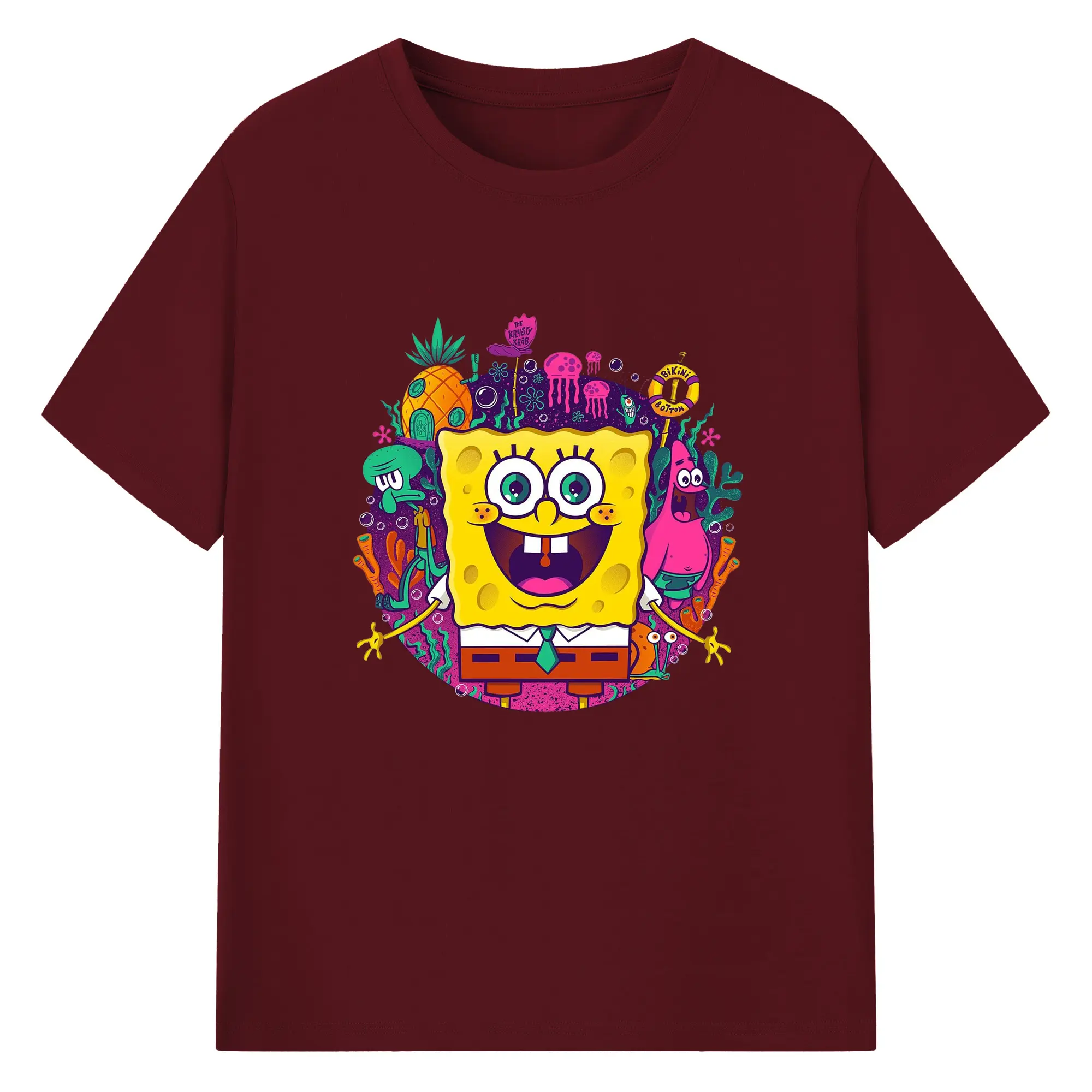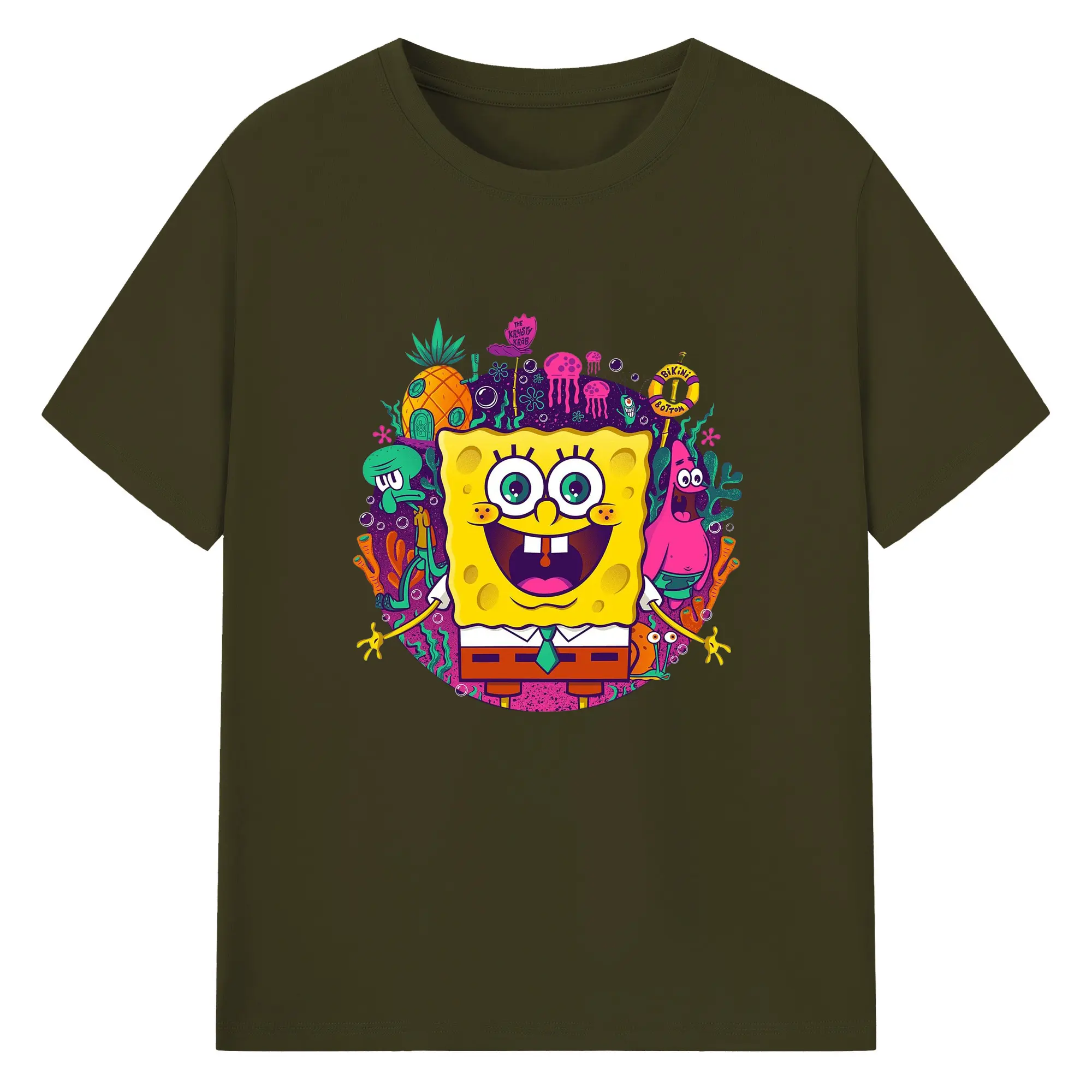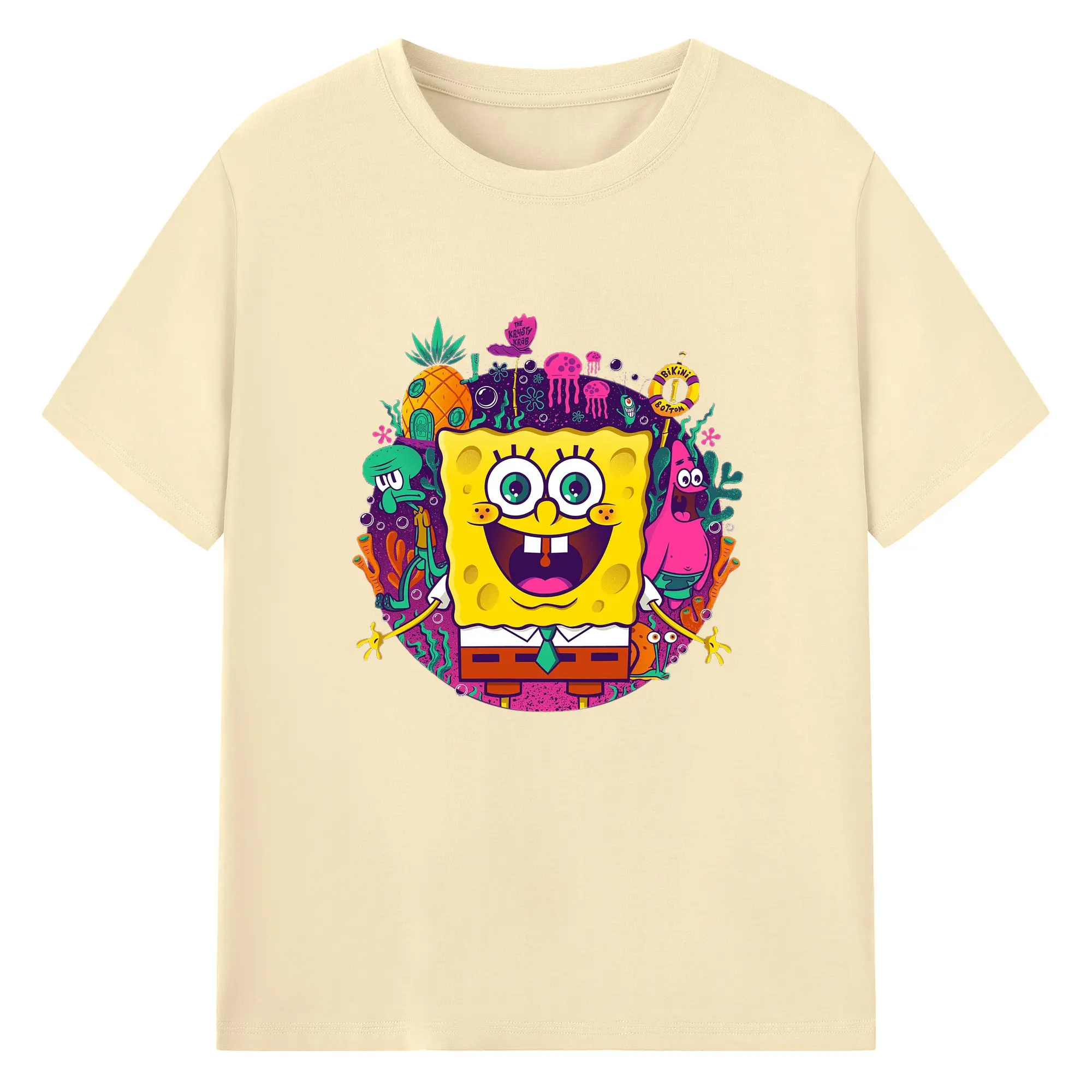 SpongeBob Bikini Bottom Cartoon Group DIY - 180g Cotton T-Shirt With Front Heat Transfer Print – Soft, Lightweight, Fitted Design – Comfortable Casual Wear For Sports & Everyday Use