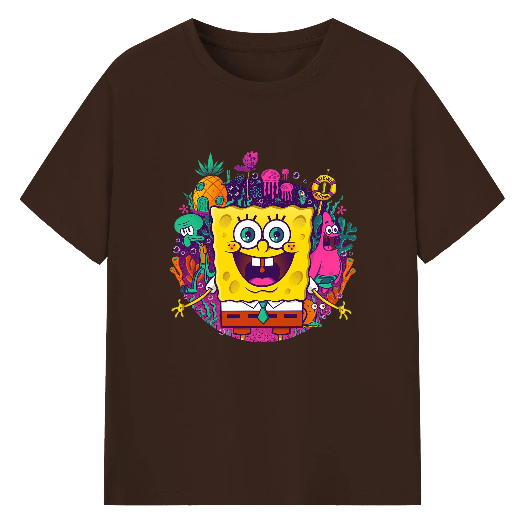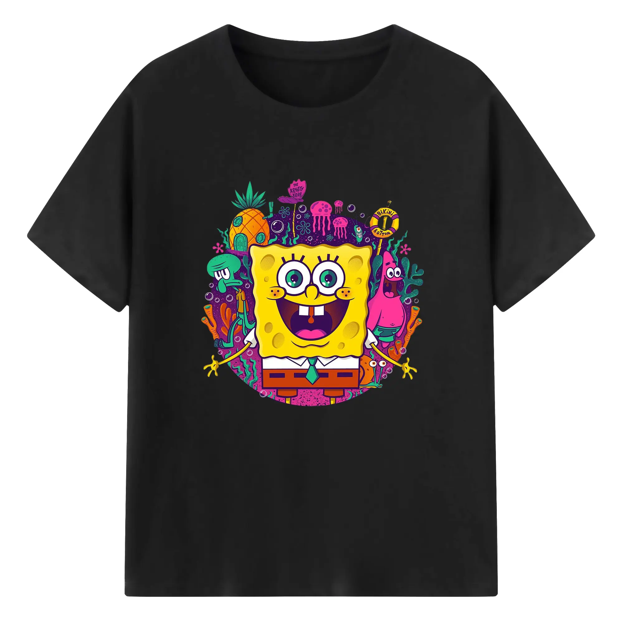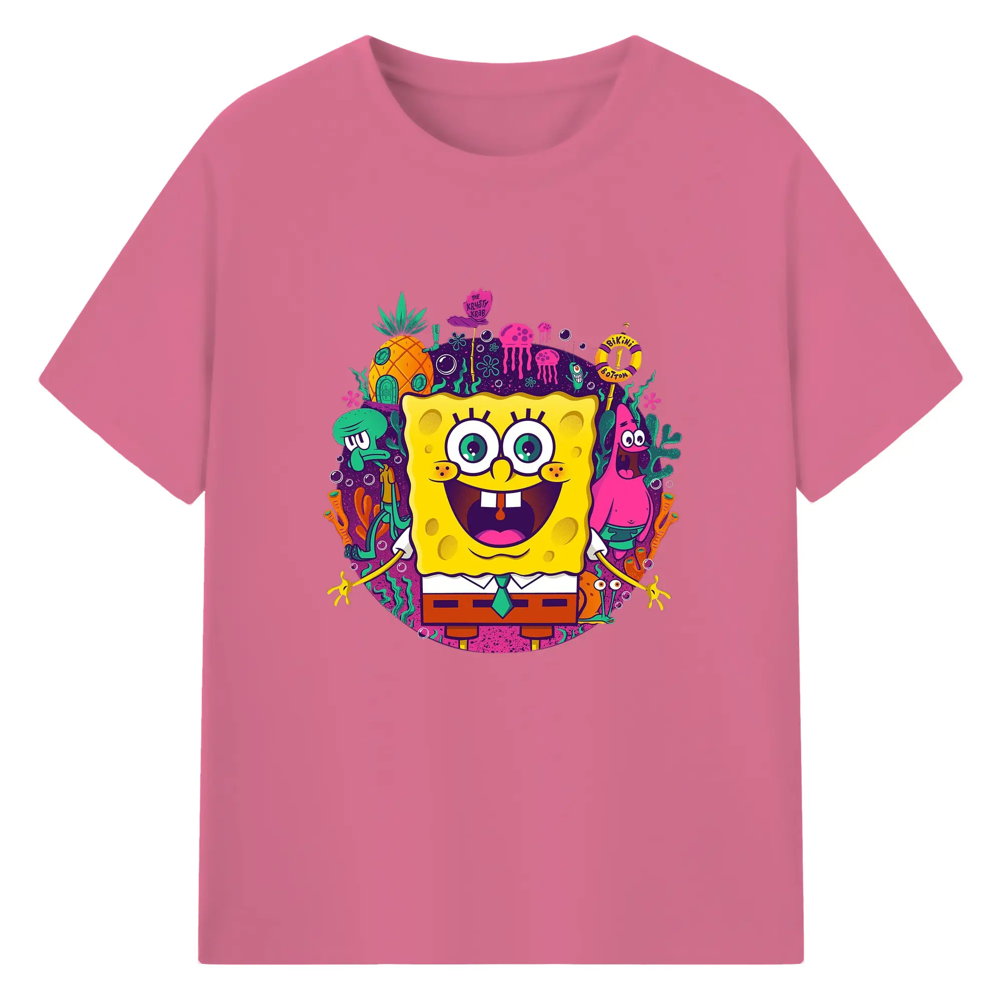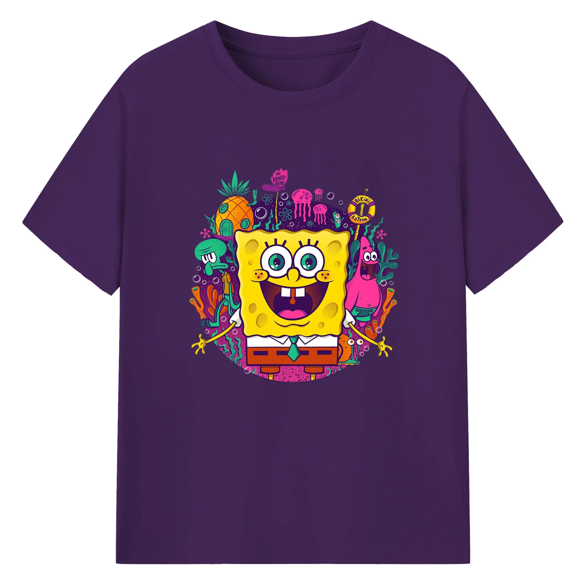 SpongeBob Bikini Bottom Cartoon Group DIY - 180g Cotton T-Shirt With Front Heat Transfer Print – Soft, Lightweight, Fitted Design – Comfortable Casual Wear For Sports & Everyday Use
