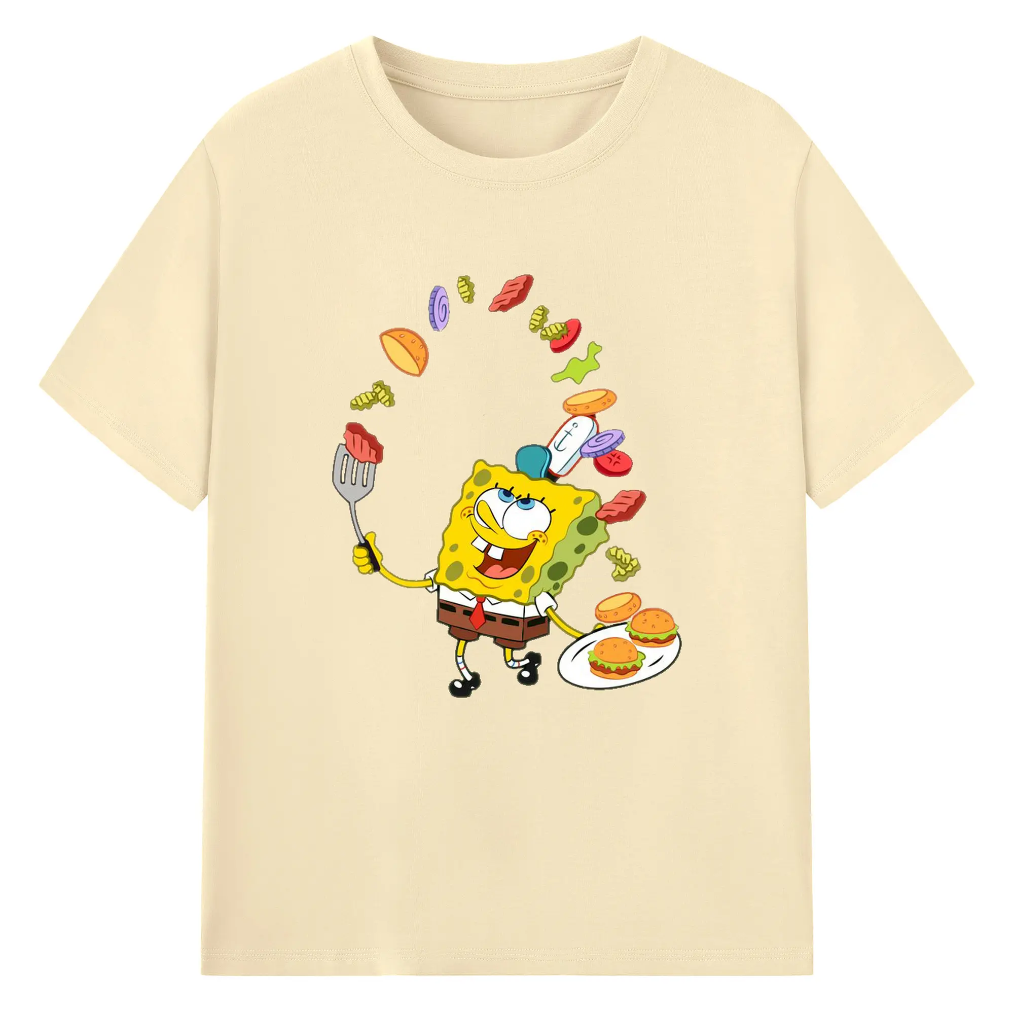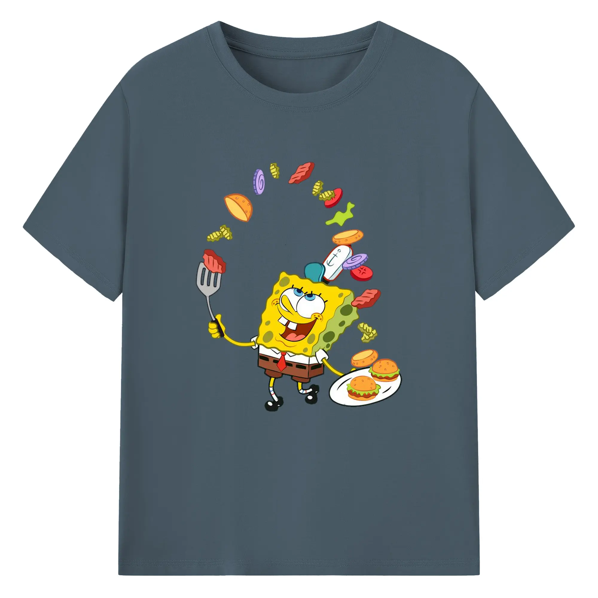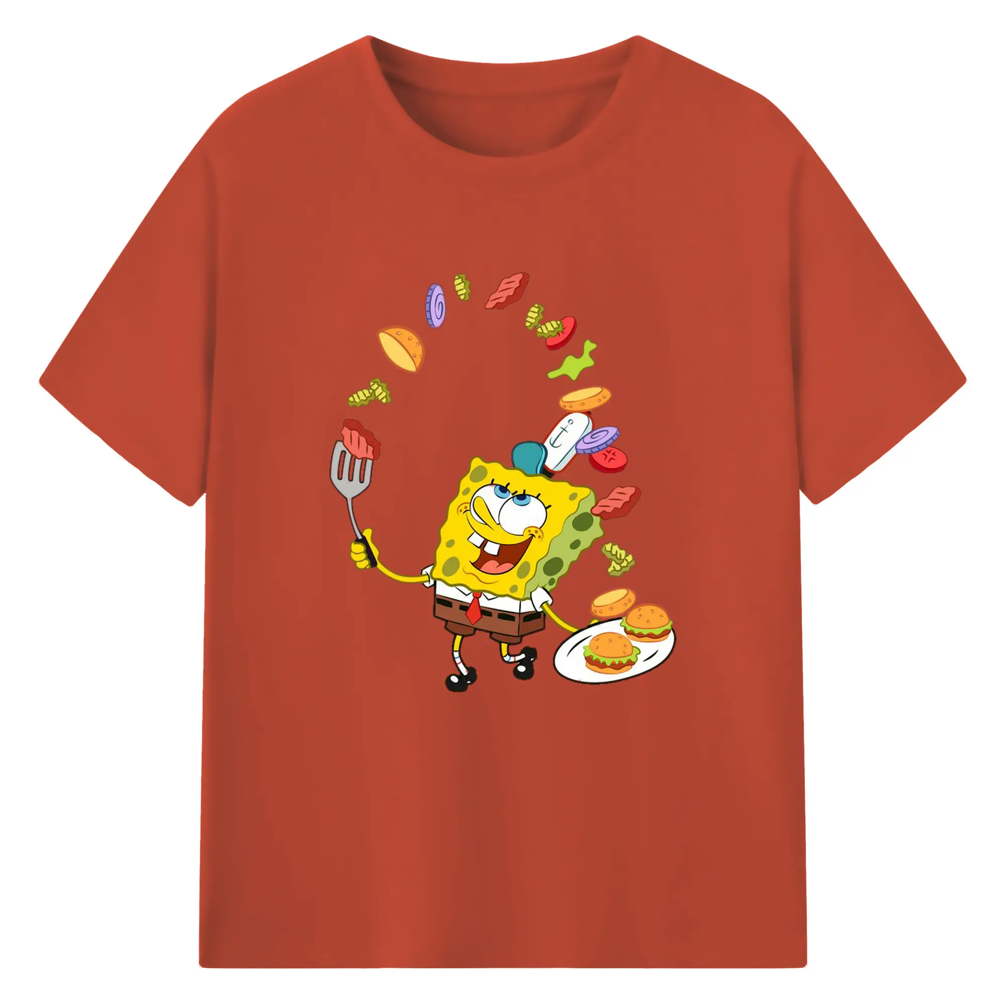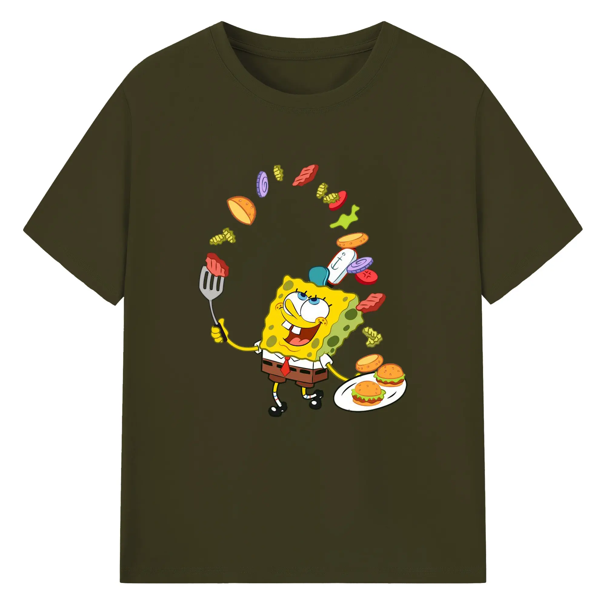 SpongeBob Cooking Krusty Krab Burgers DIY - 180g Cotton T-Shirt With Front Heat Transfer Print – Soft, Lightweight, Fitted Design – Comfortable Casual Wear For Sports & Everyday Use