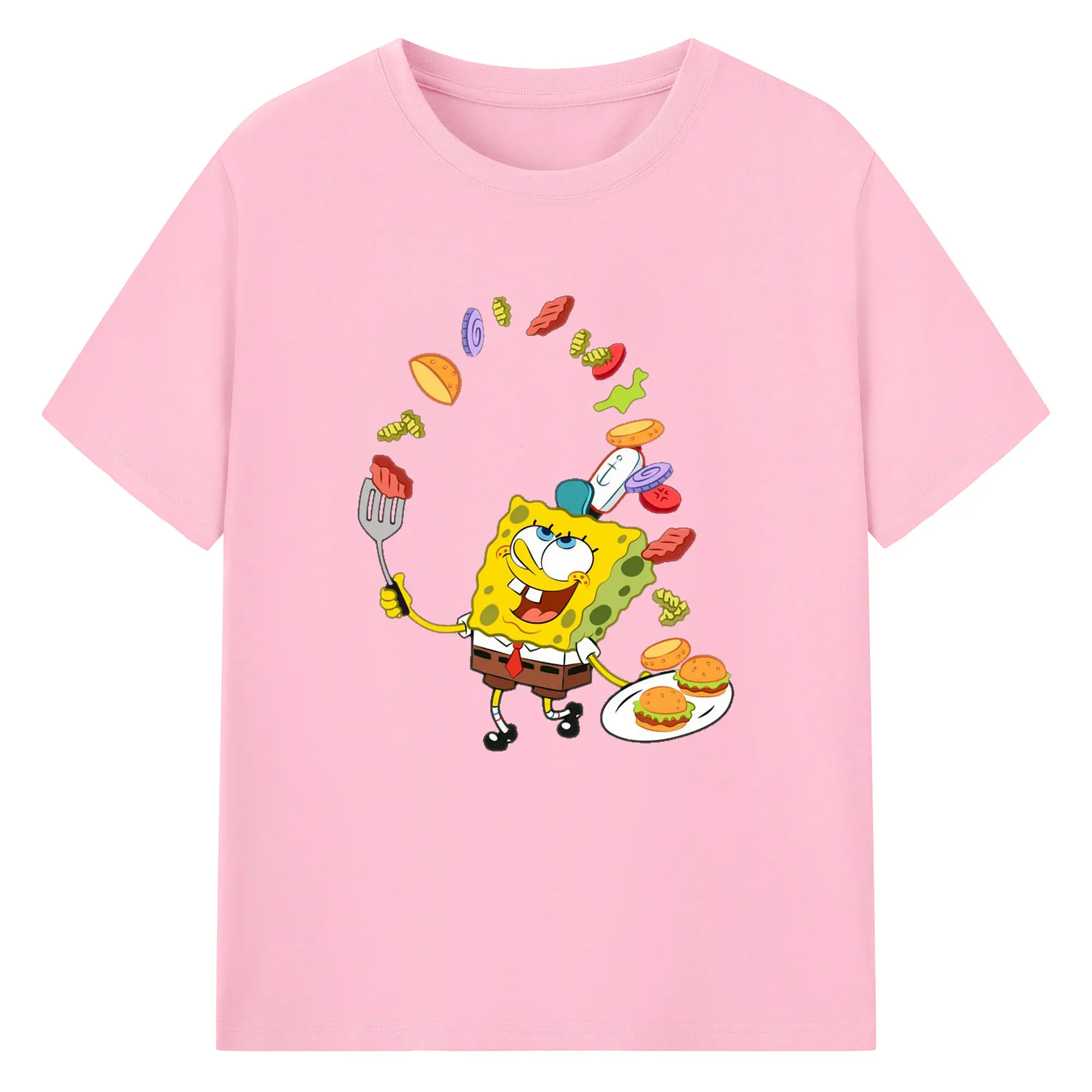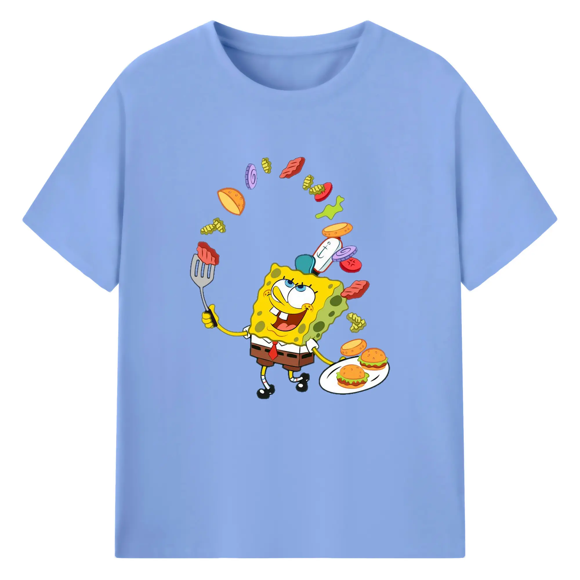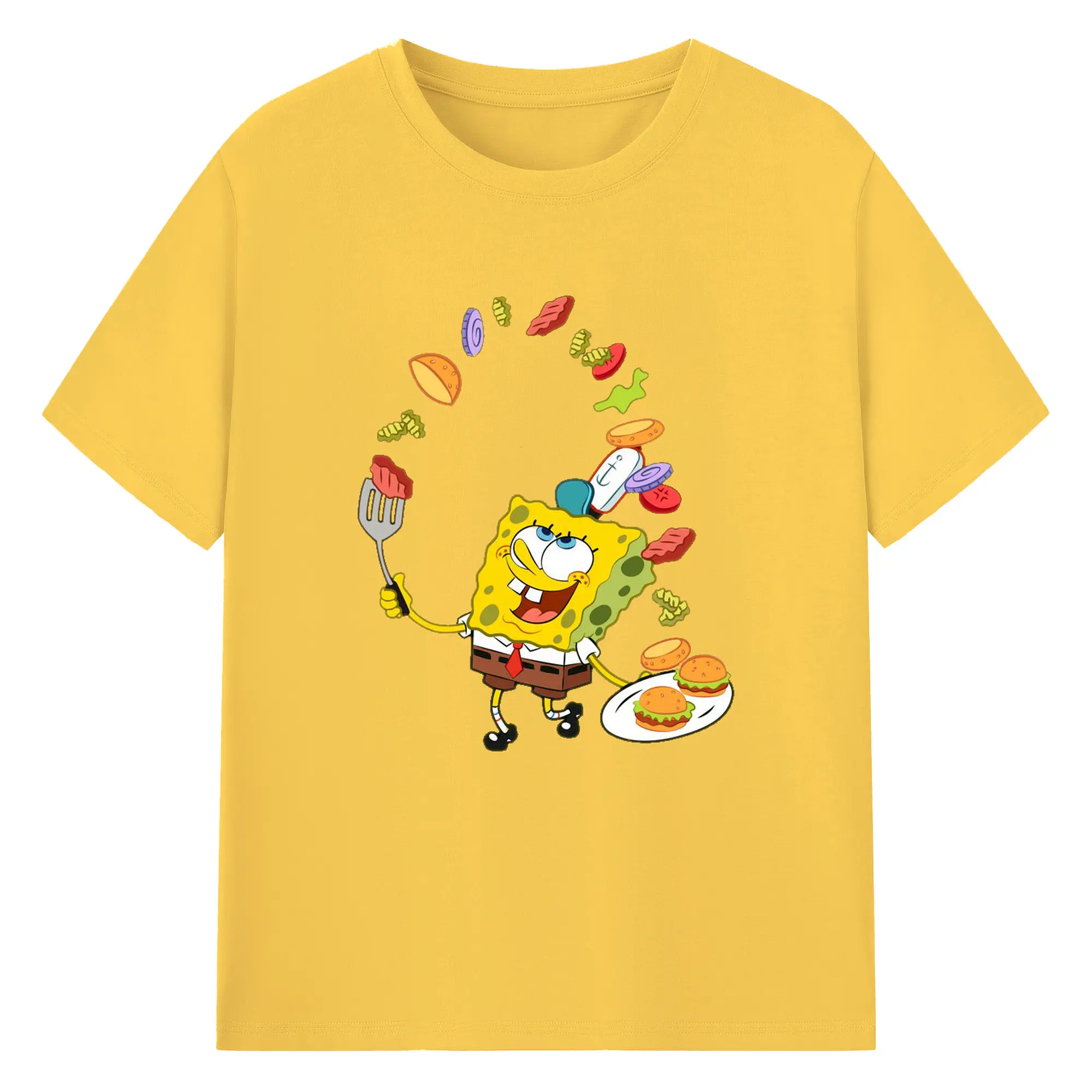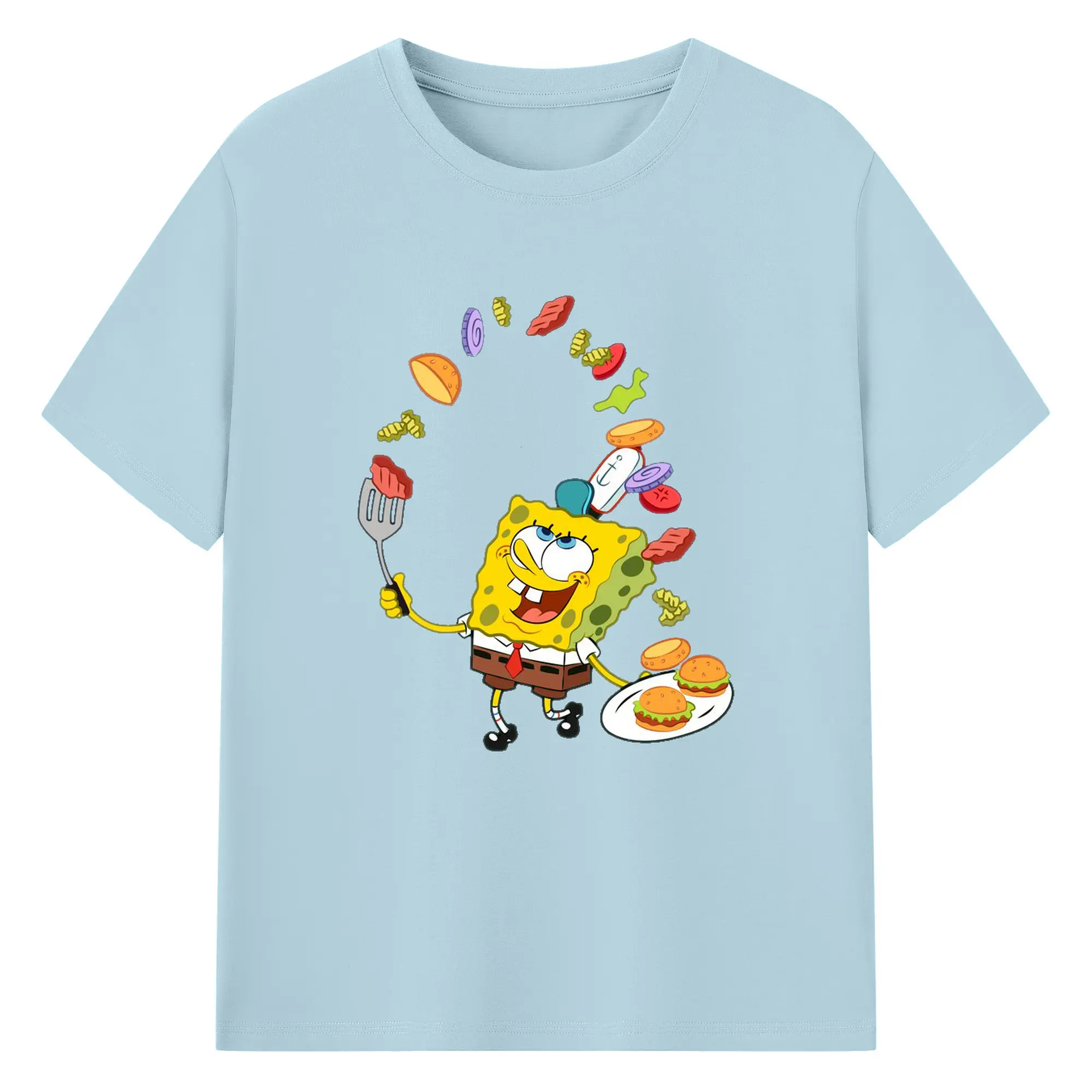 SpongeBob Cooking Krusty Krab Burgers DIY - 180g Cotton T-Shirt With Front Heat Transfer Print – Soft, Lightweight, Fitted Design – Comfortable Casual Wear For Sports & Everyday Use
