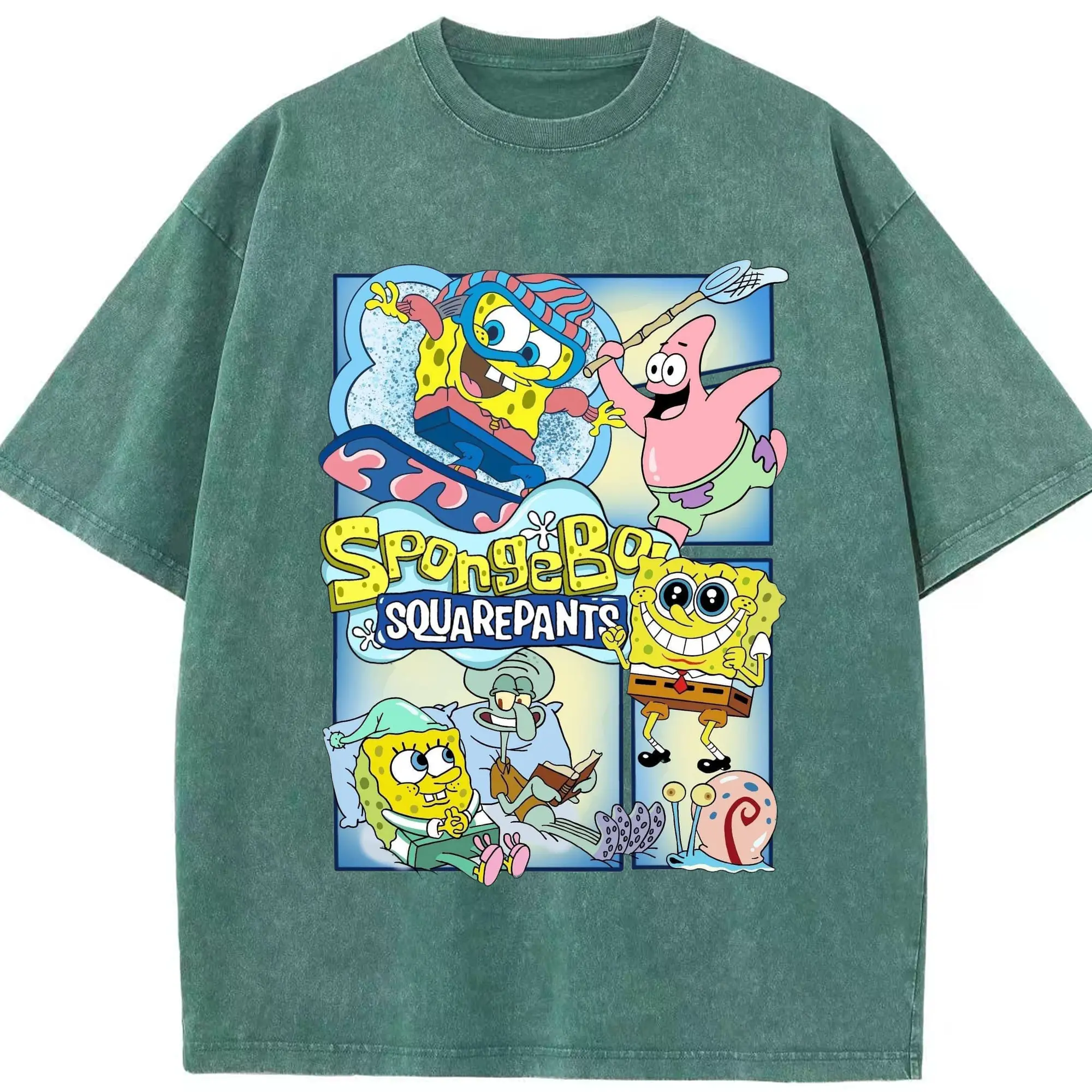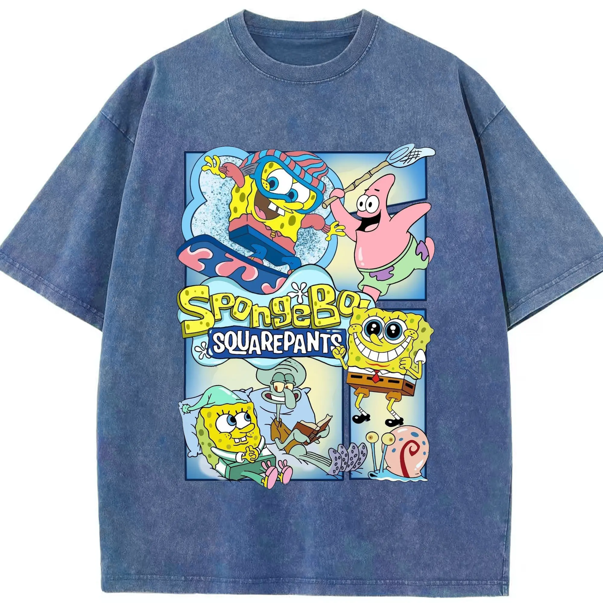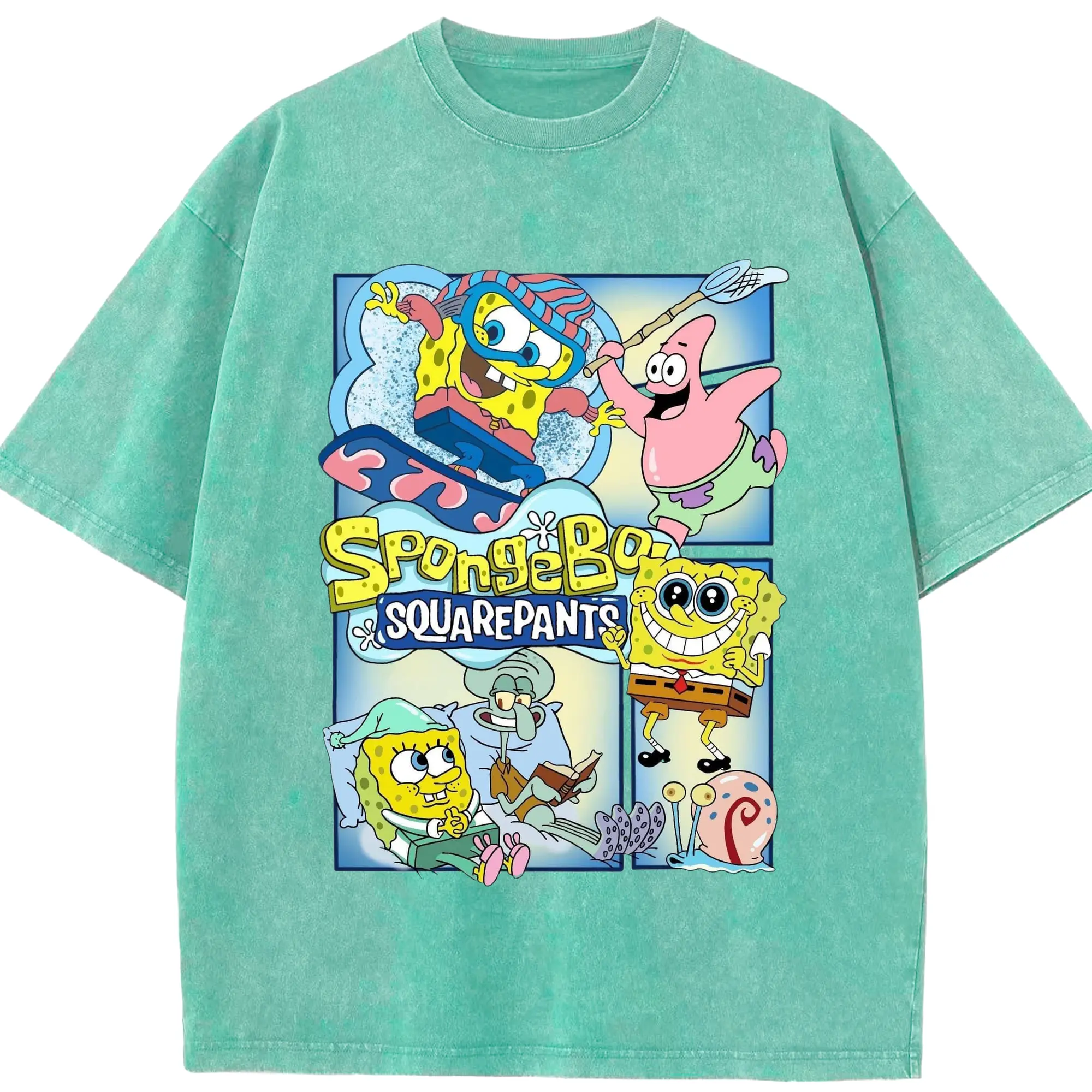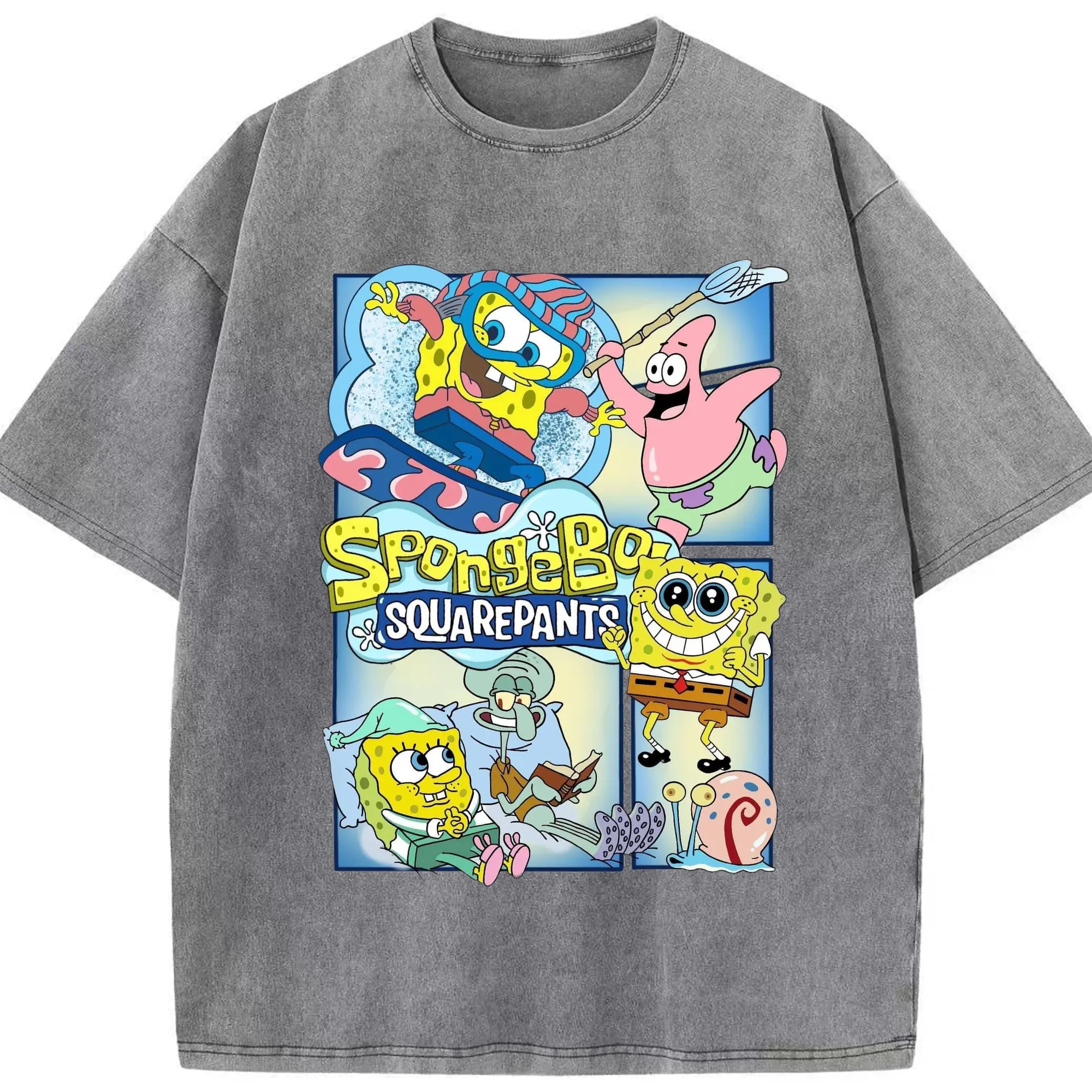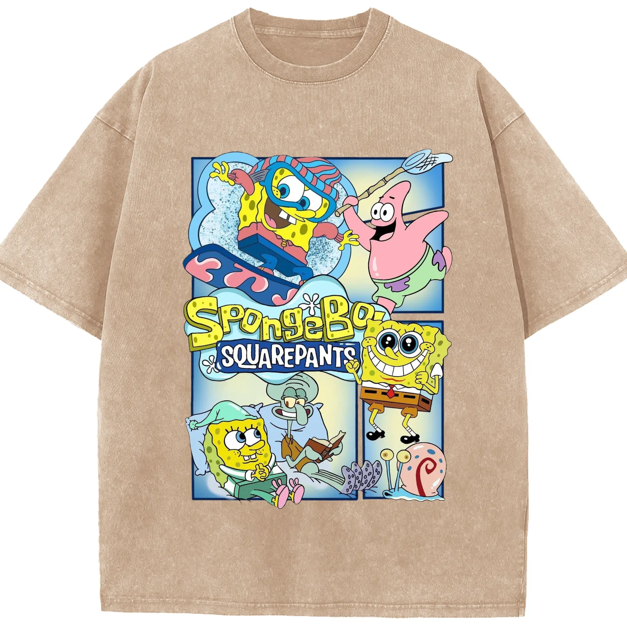 SpongeBob Fun Moments Trendy DIY - Washed Vintage Look 230g Cotton Oversized T-Shirt With Front Heat Transfer Print – Soft, Lightweight, Stylish Fit – Comfortable Casual Wear For Sports & Everyday Use