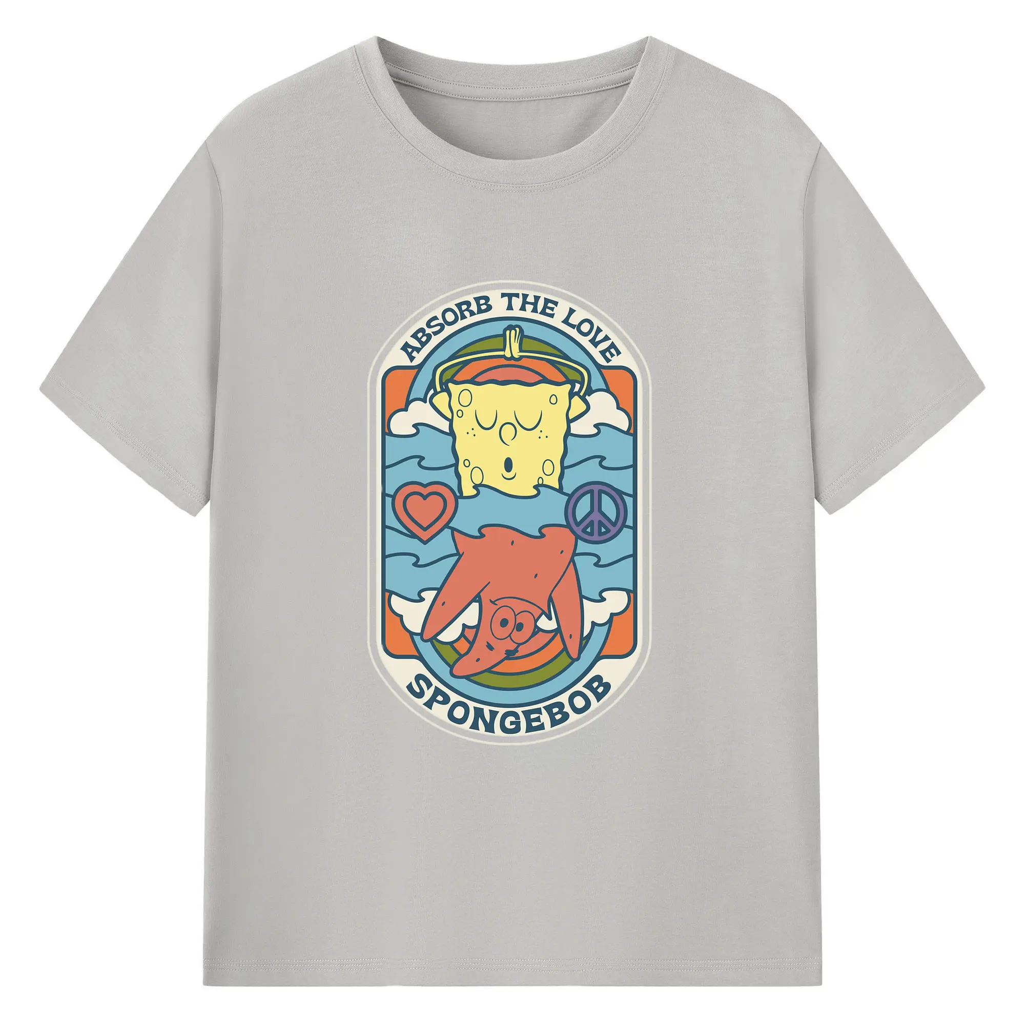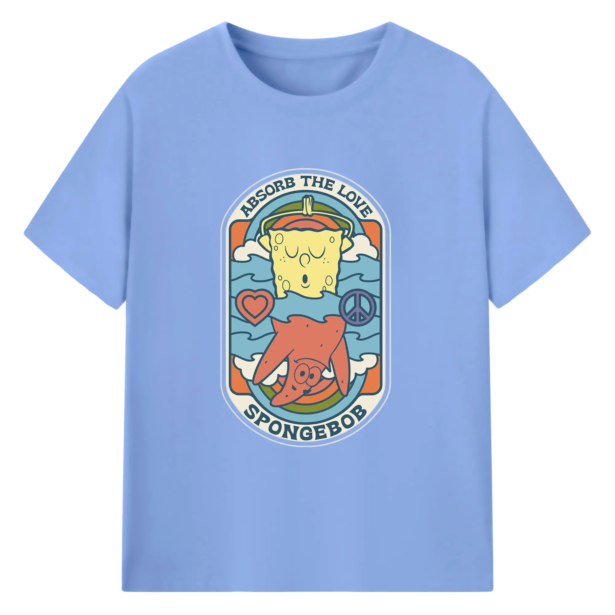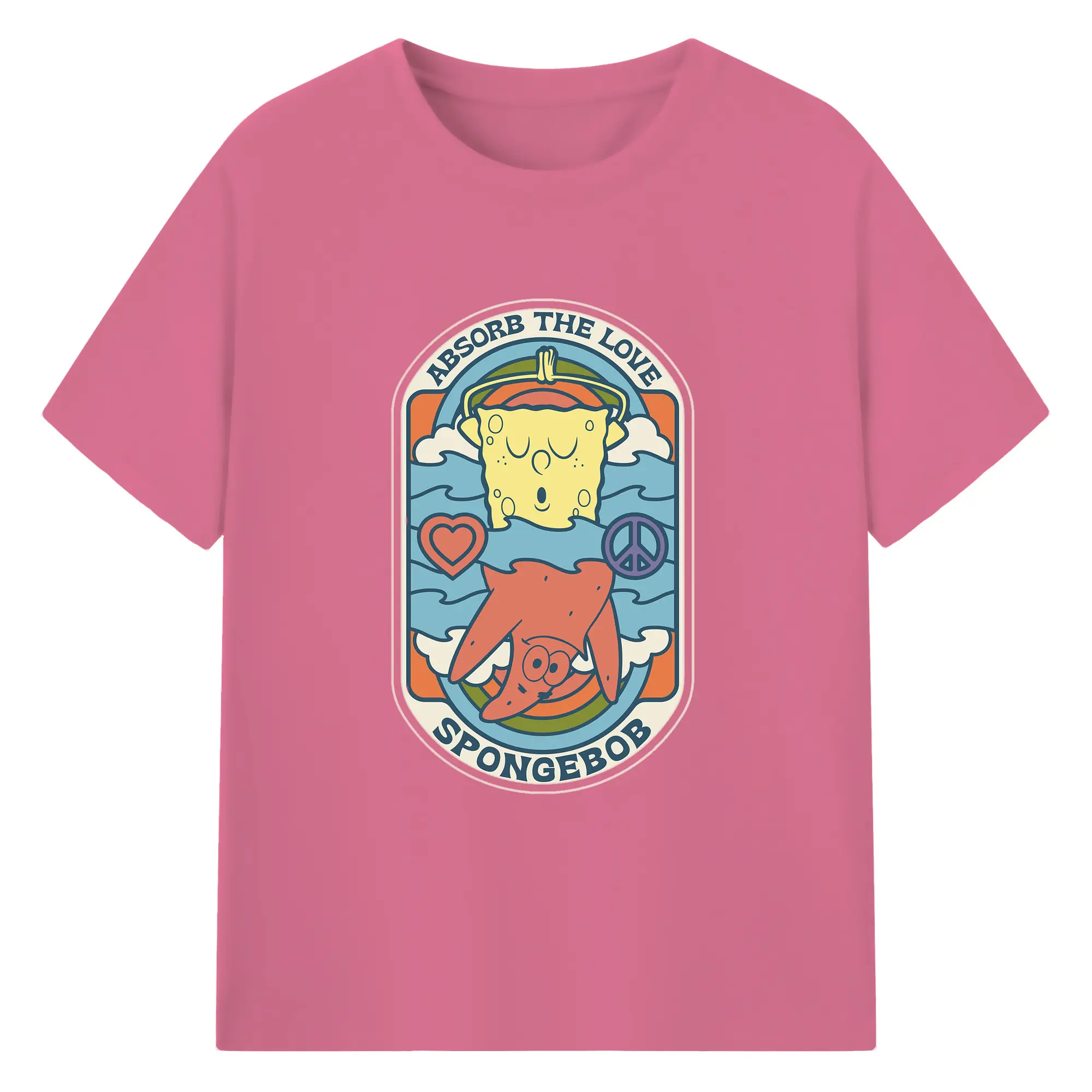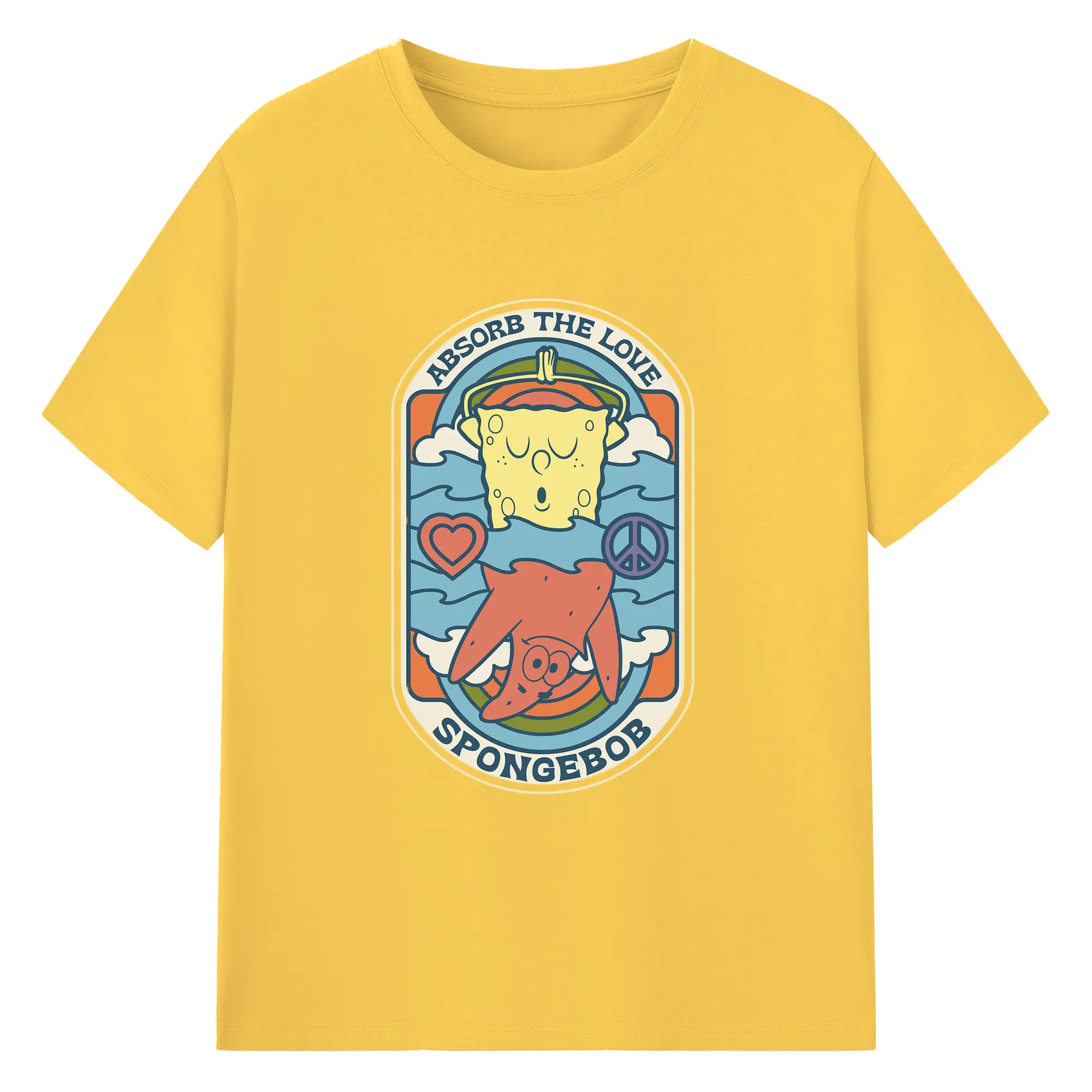SpongeBob Peace & Love Trendy DIY - 180g Cotton T-Shirt With Front Heat Transfer Print – Soft, Lightweight, Fitted Design – Comfortable Casual Wear For Sports & Everyday Use