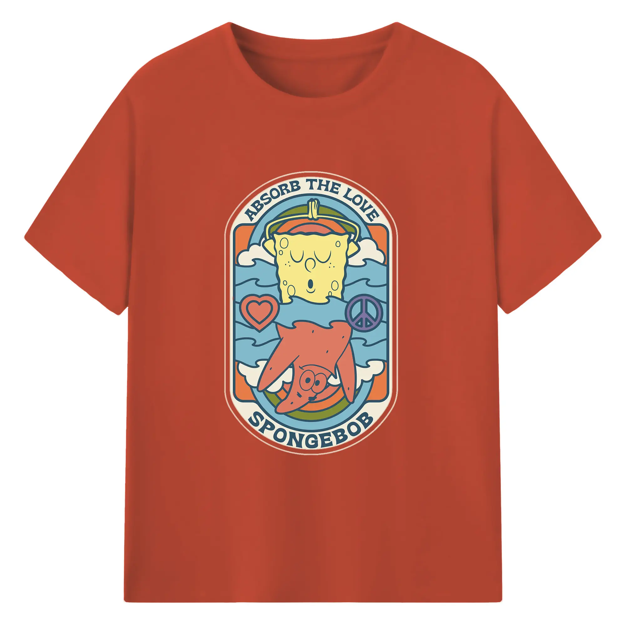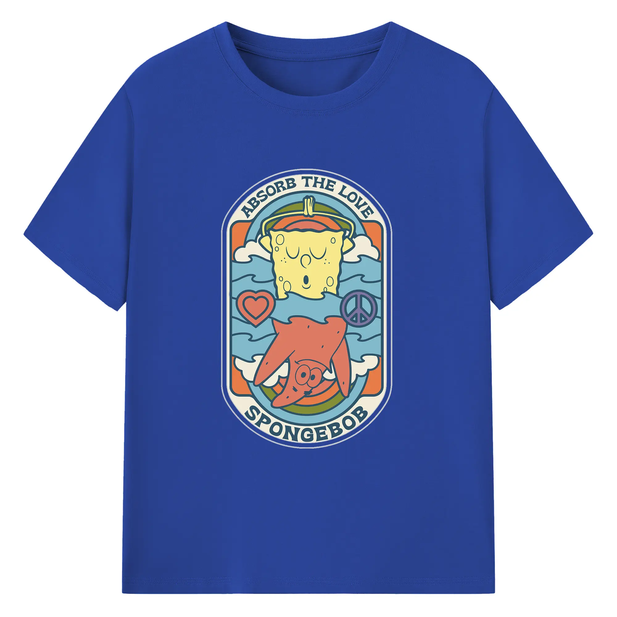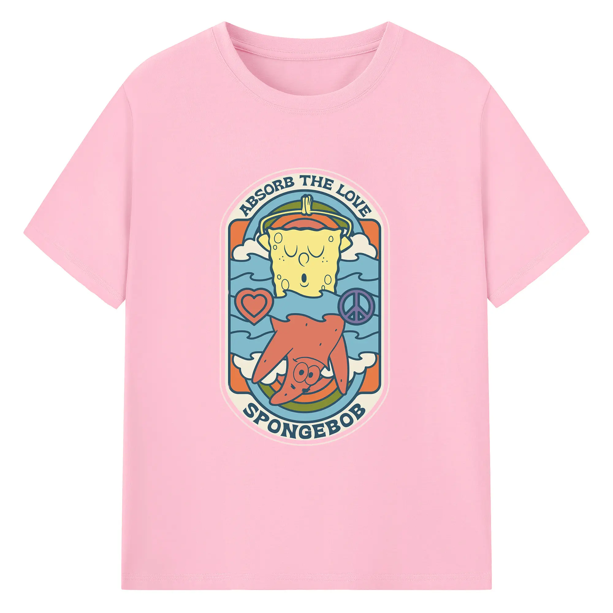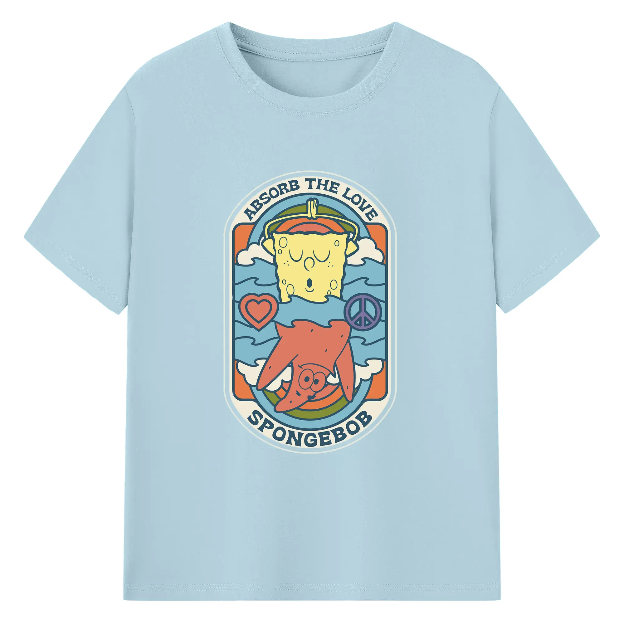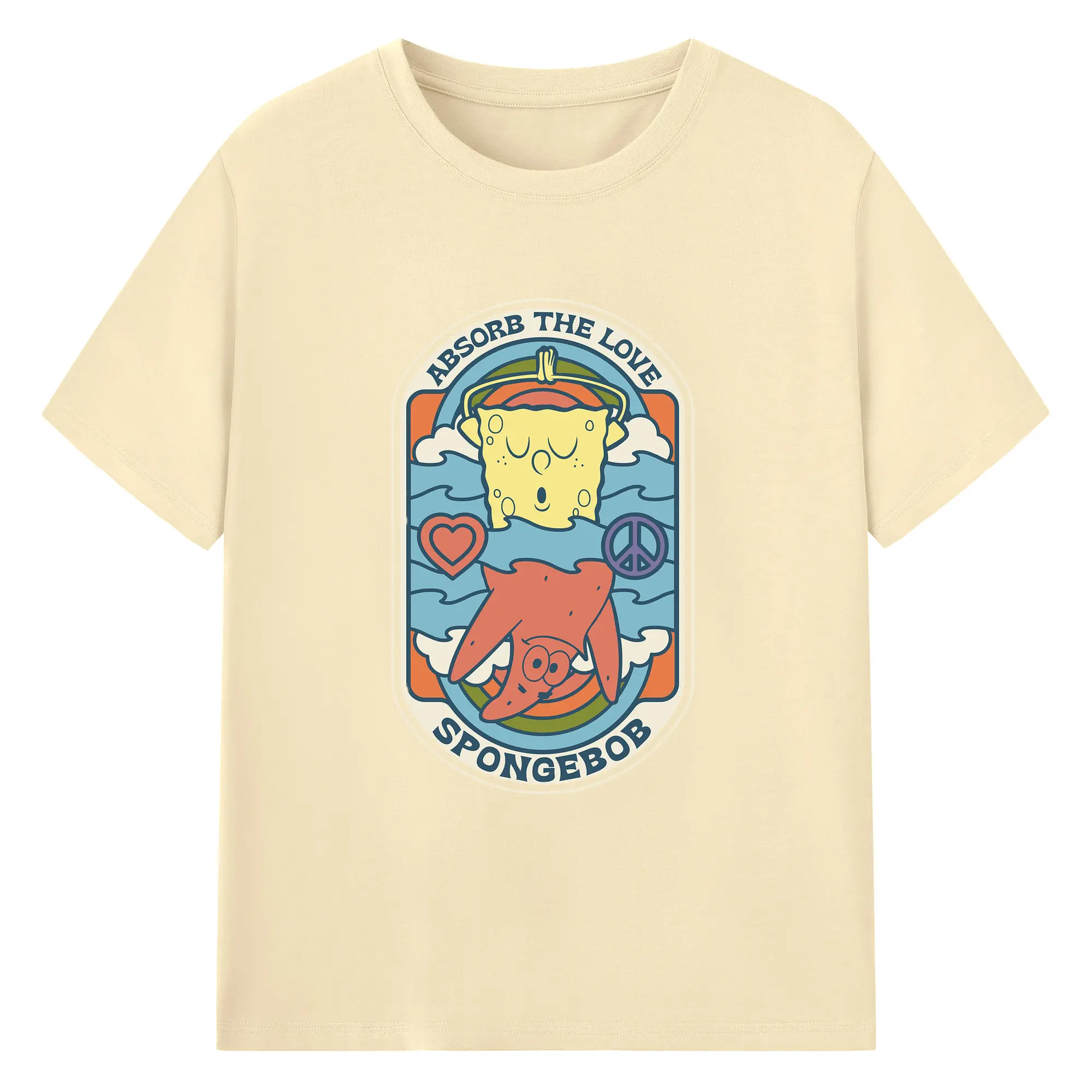 SpongeBob Peace & Love Trendy DIY - 180g Cotton T-Shirt With Front Heat Transfer Print – Soft, Lightweight, Fitted Design – Comfortable Casual Wear For Sports & Everyday Use
