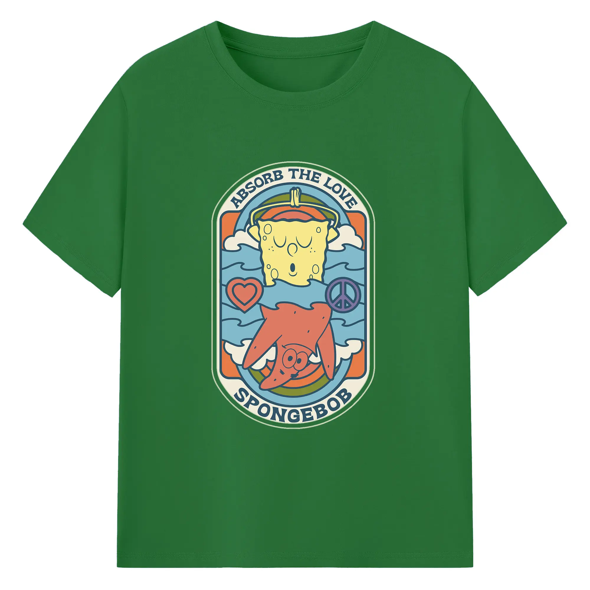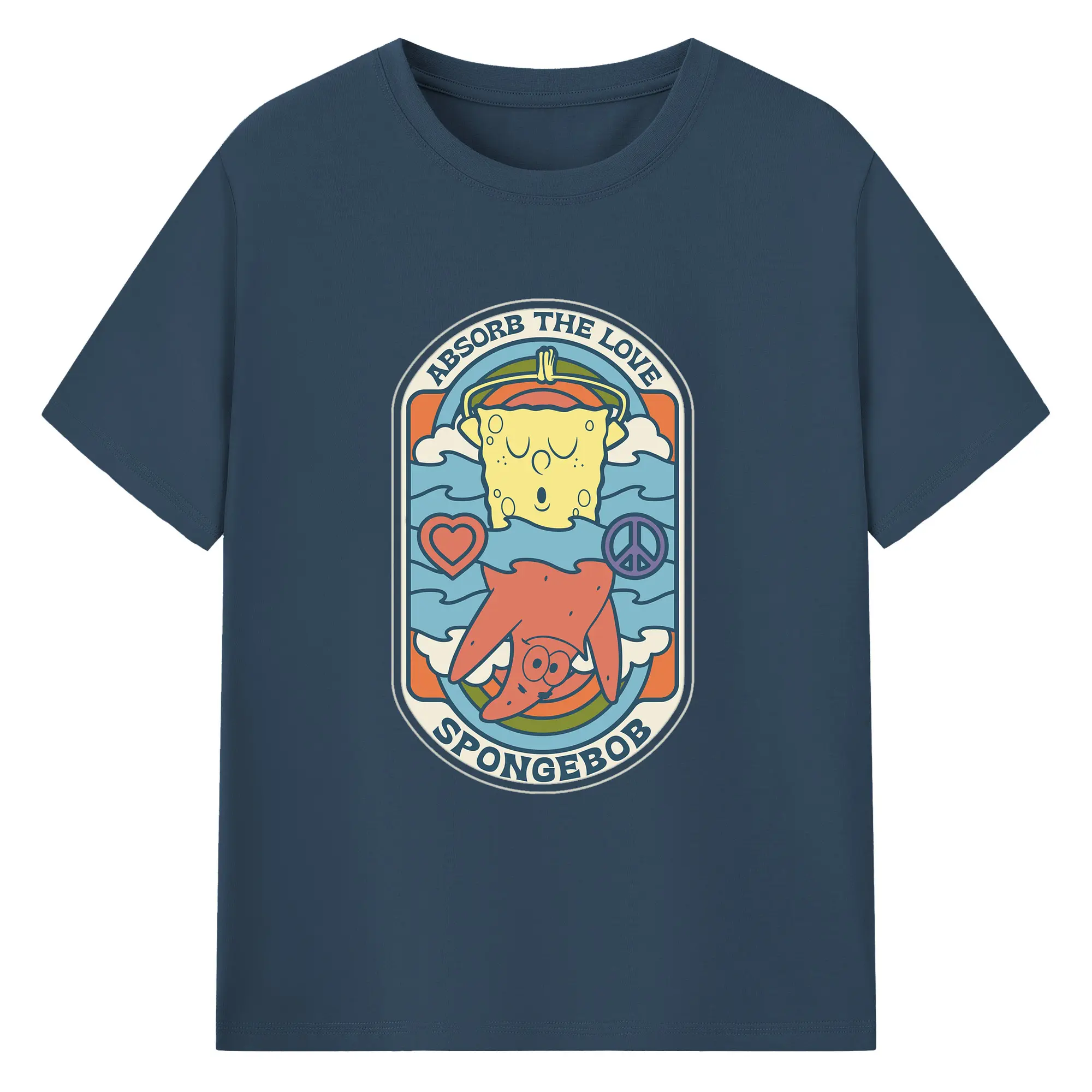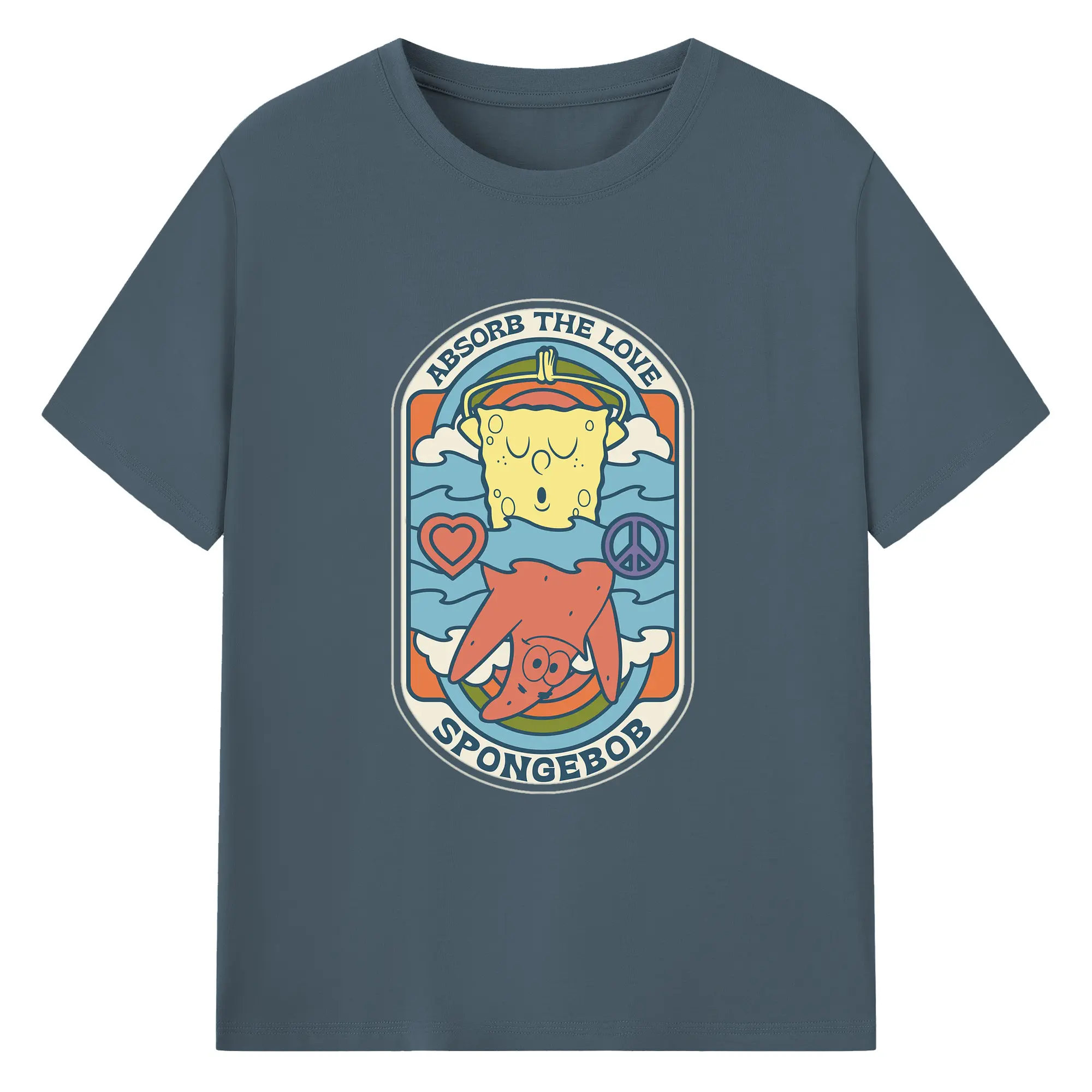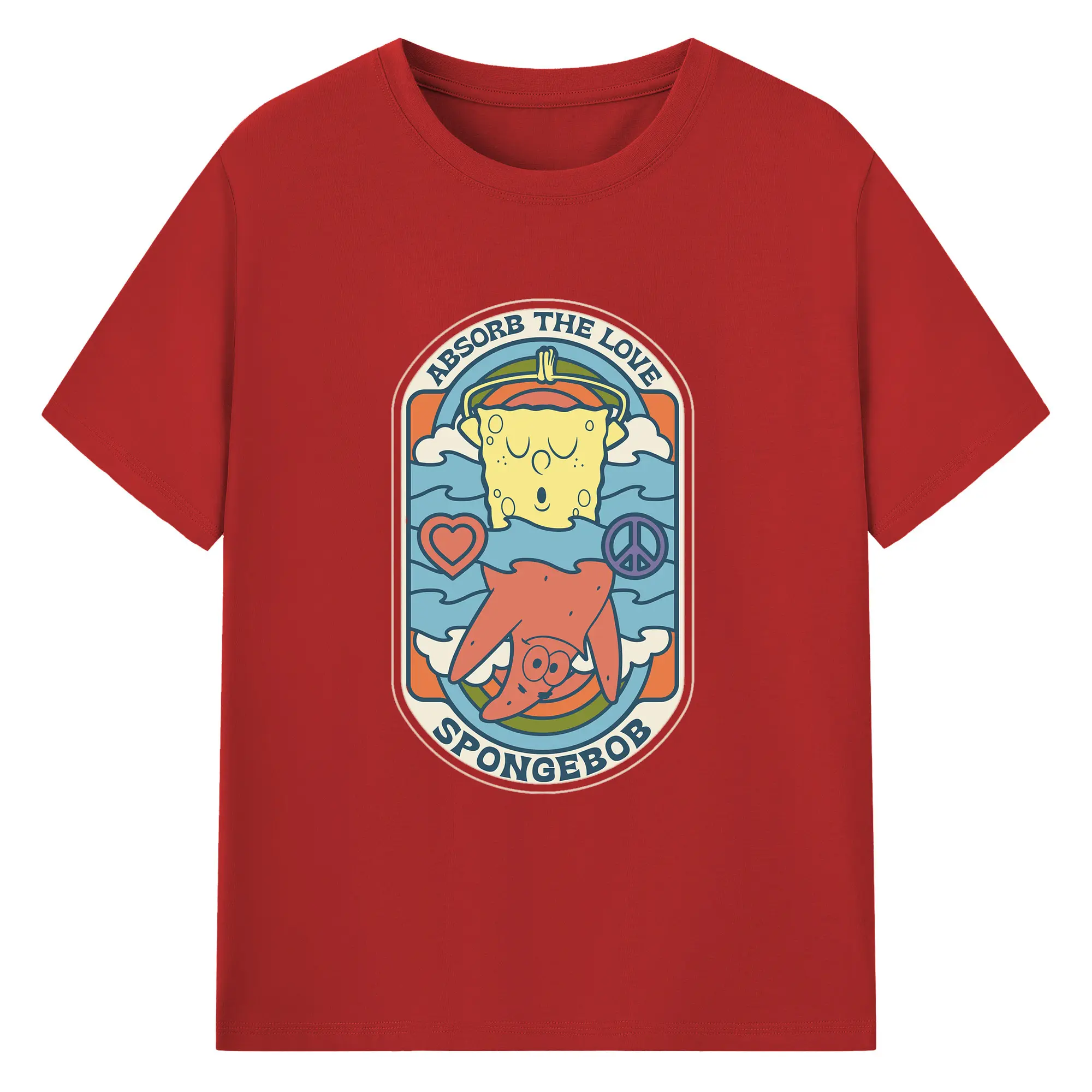 SpongeBob Peace & Love Trendy DIY - 180g Cotton T-Shirt With Front Heat Transfer Print – Soft, Lightweight, Fitted Design – Comfortable Casual Wear For Sports & Everyday Use