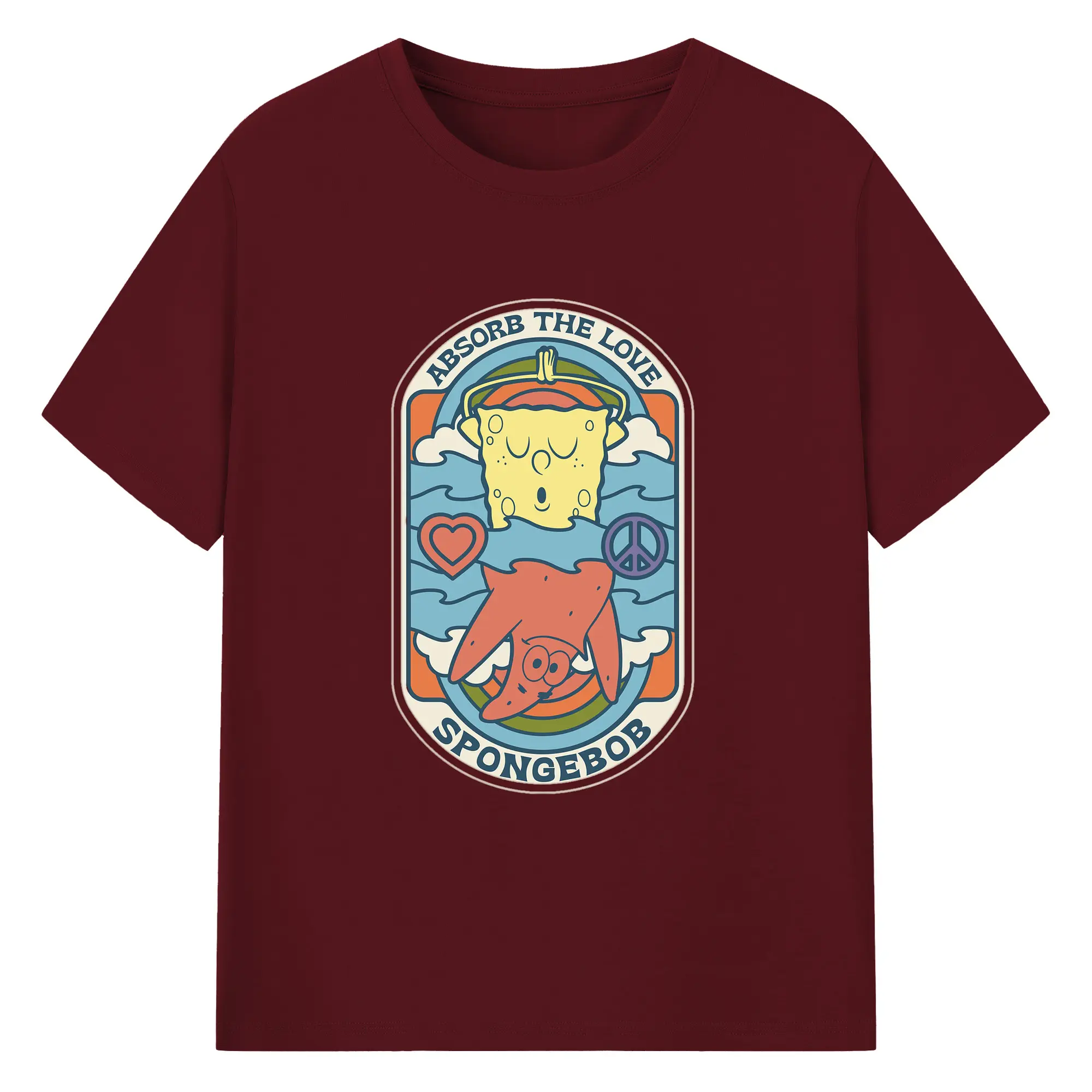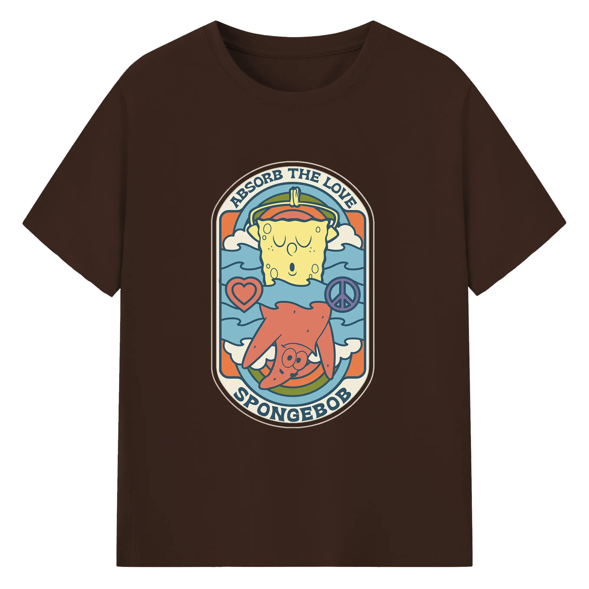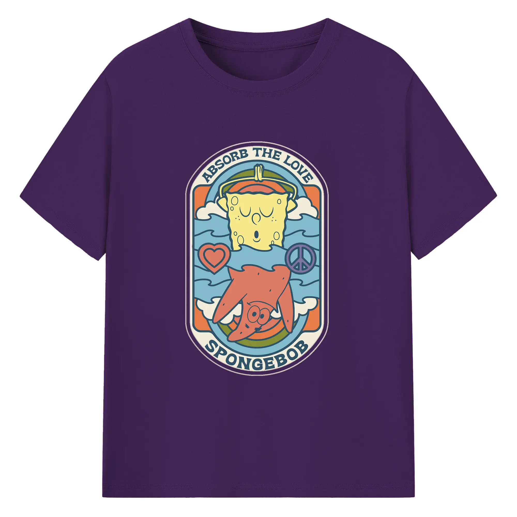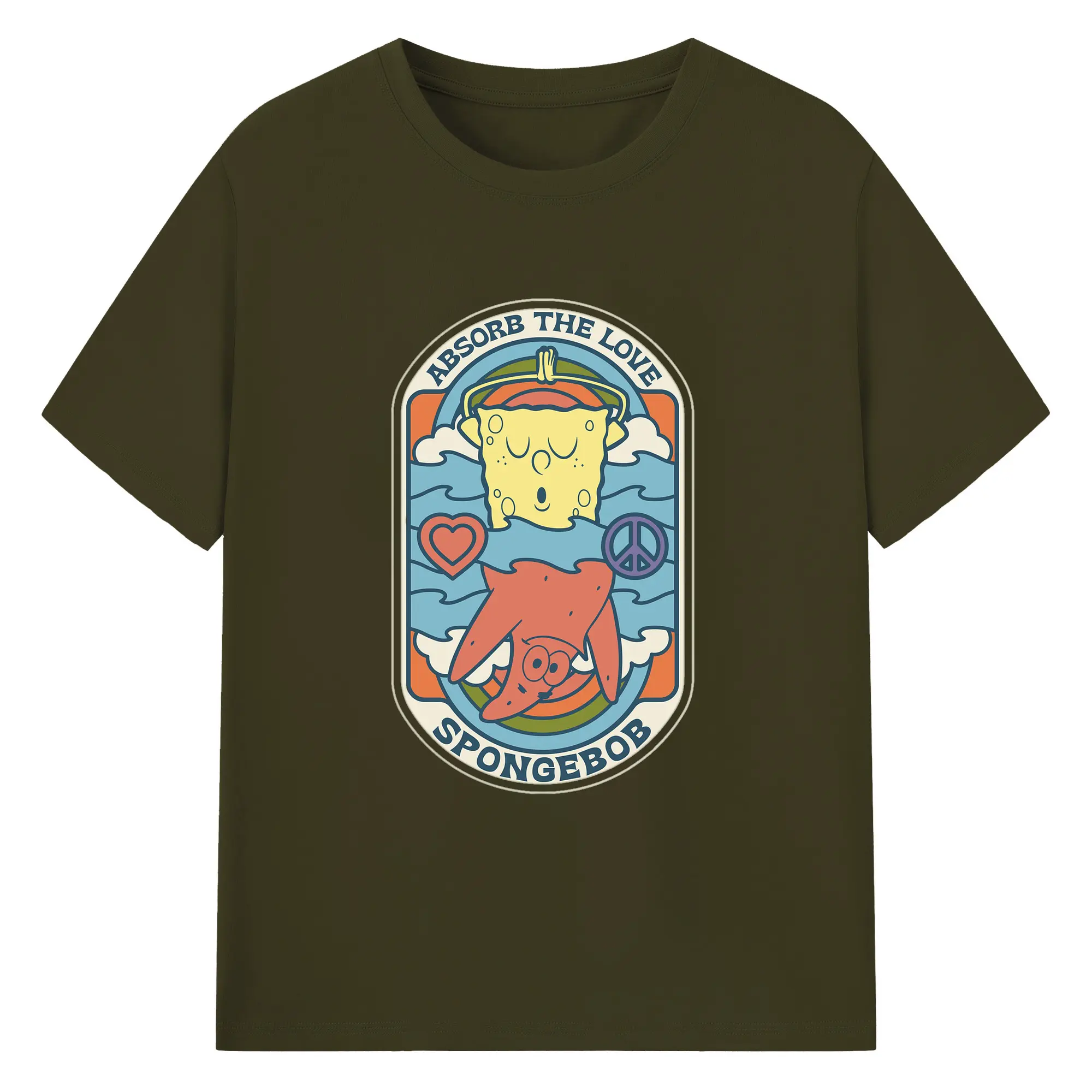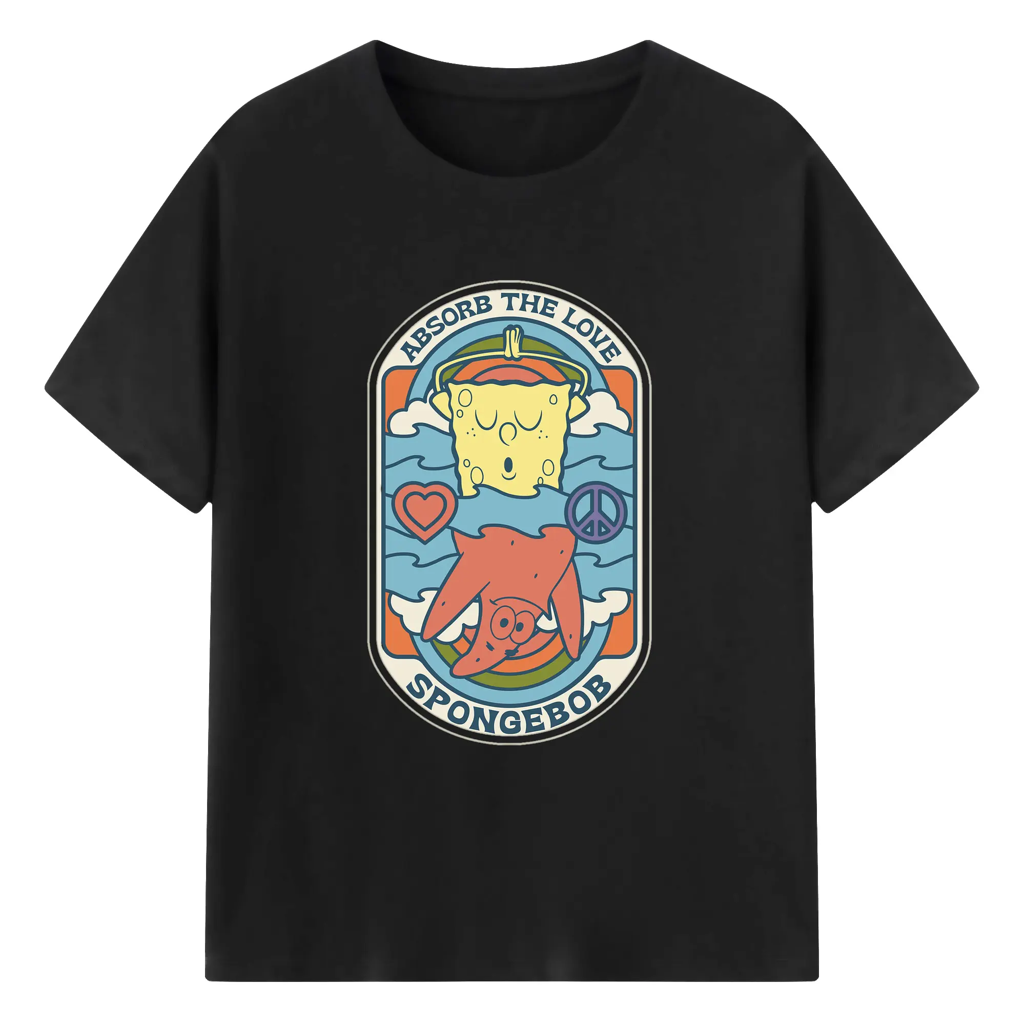 SpongeBob Peace & Love Trendy DIY - 180g Cotton T-Shirt With Front Heat Transfer Print – Soft, Lightweight, Fitted Design – Comfortable Casual Wear For Sports & Everyday Use