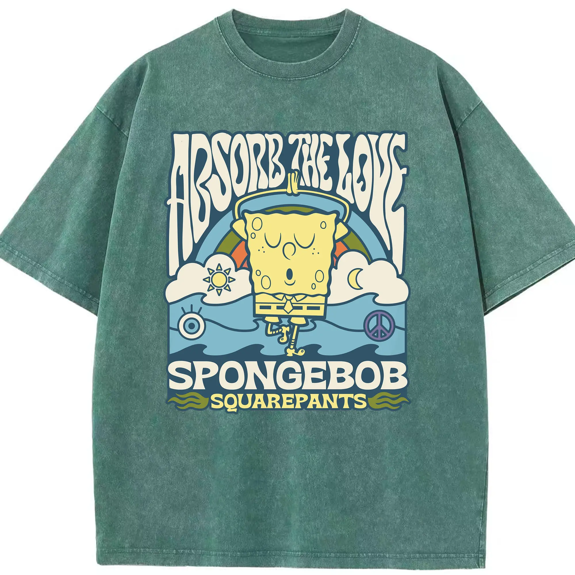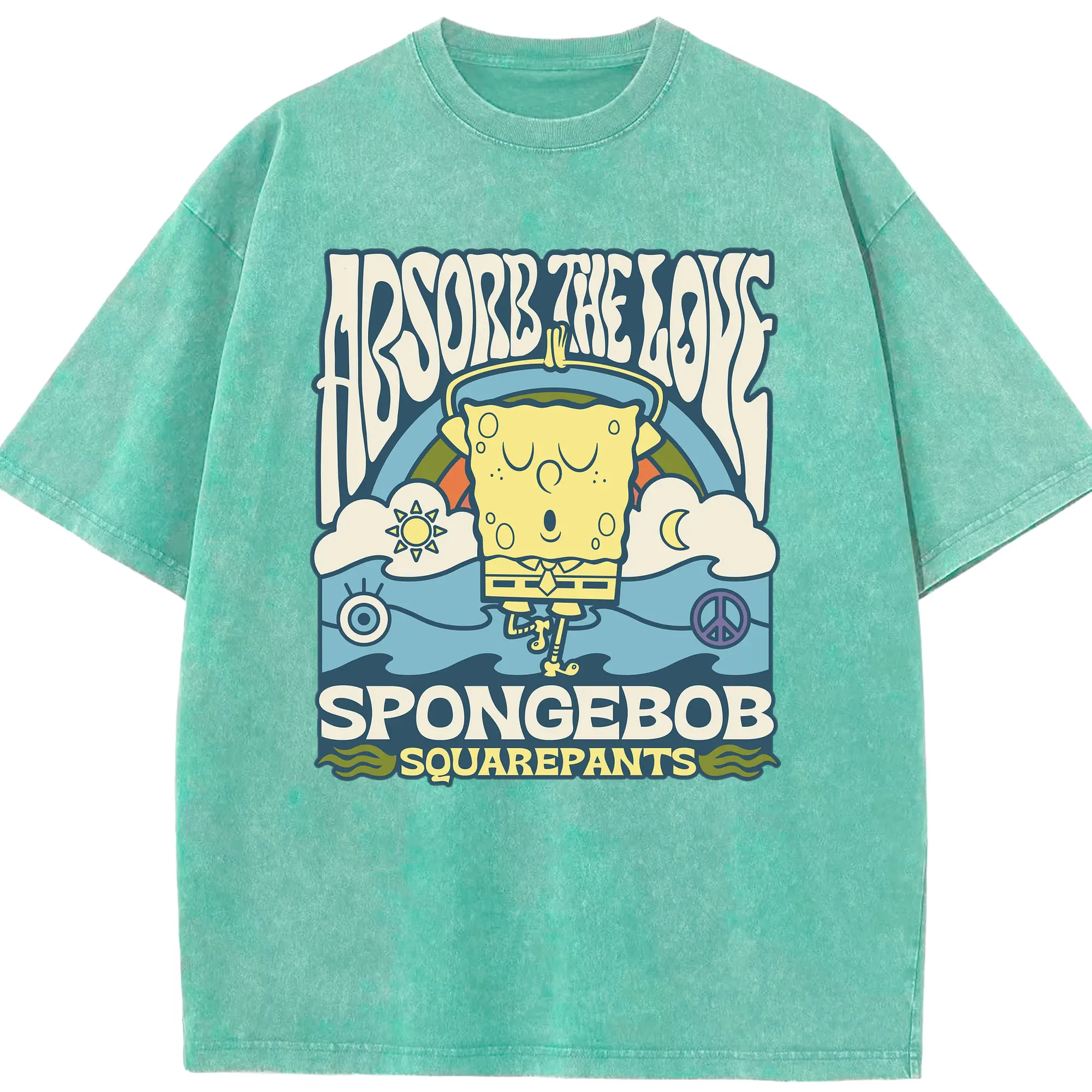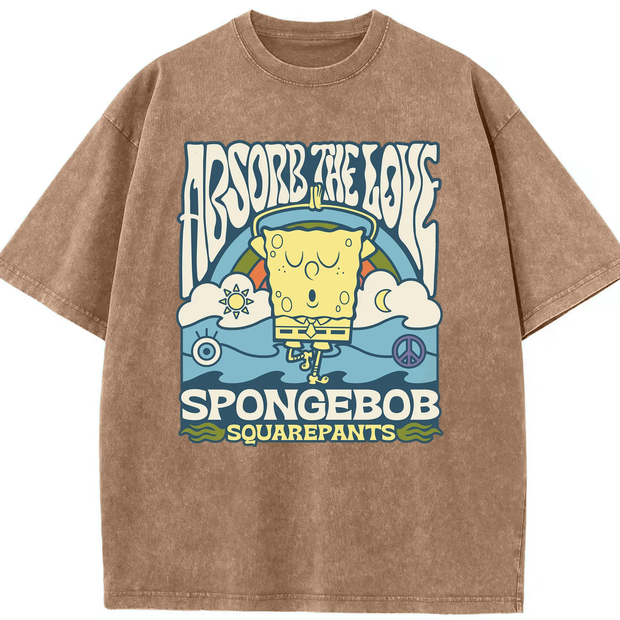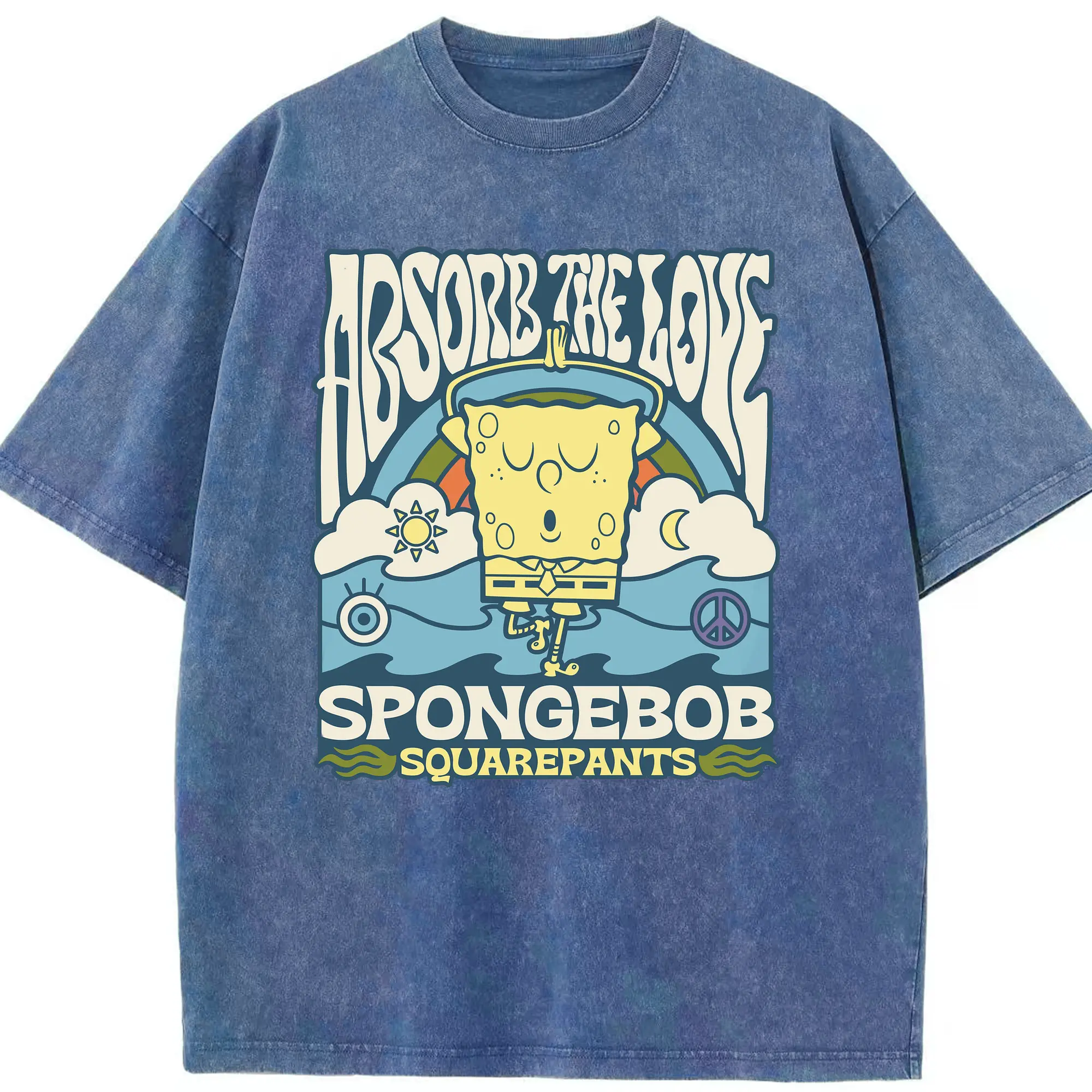 SpongeBob Retro Psychedelic Absorb The Love DIY - Washed Vintage Look 230g Cotton Oversized T-Shirt With Front Heat Transfer Print – Soft, Lightweight, Stylish Fit – Comfortable Casual Wear For Sports & Everyday Use